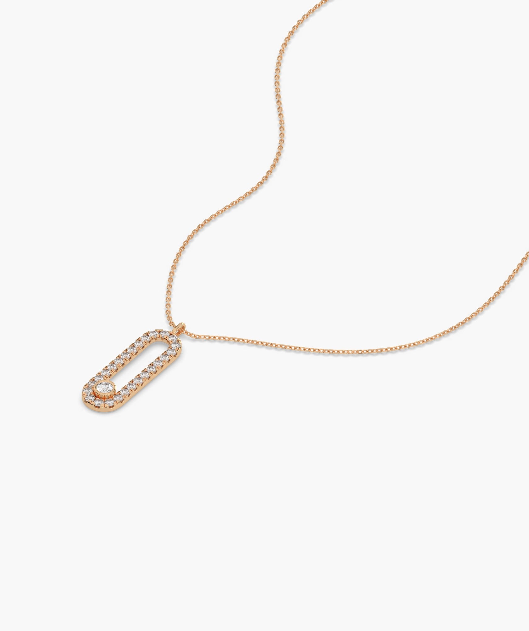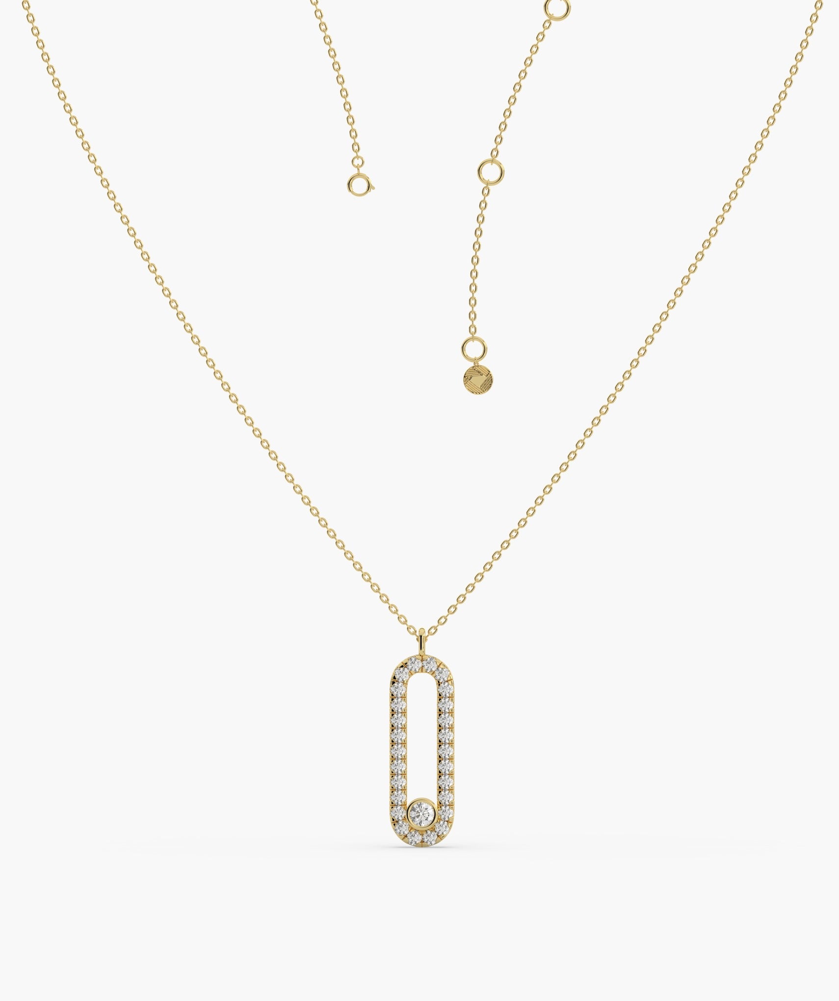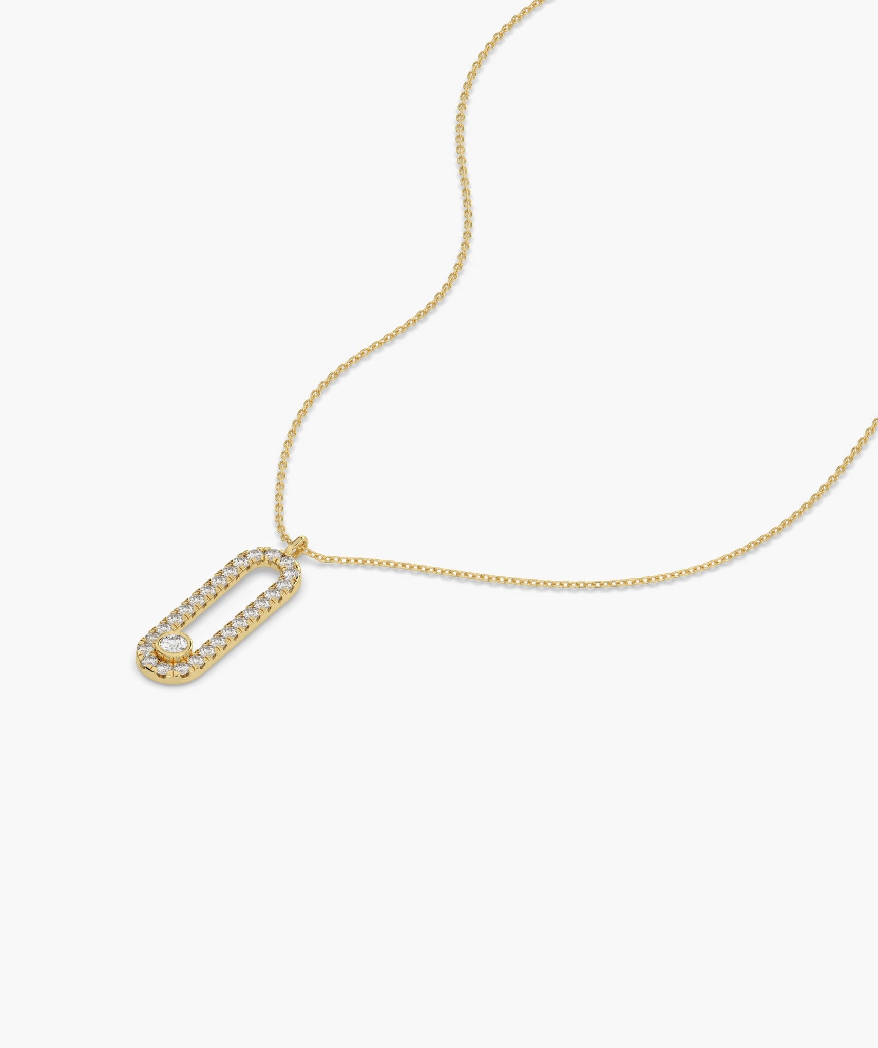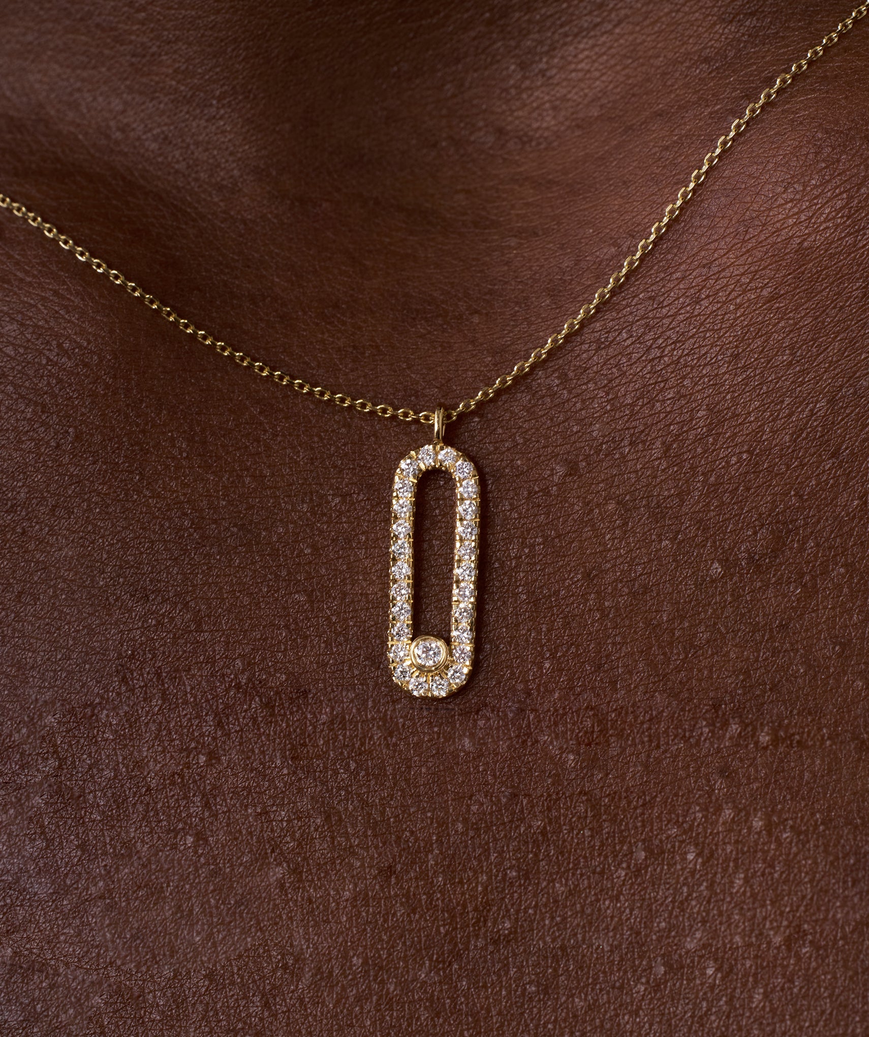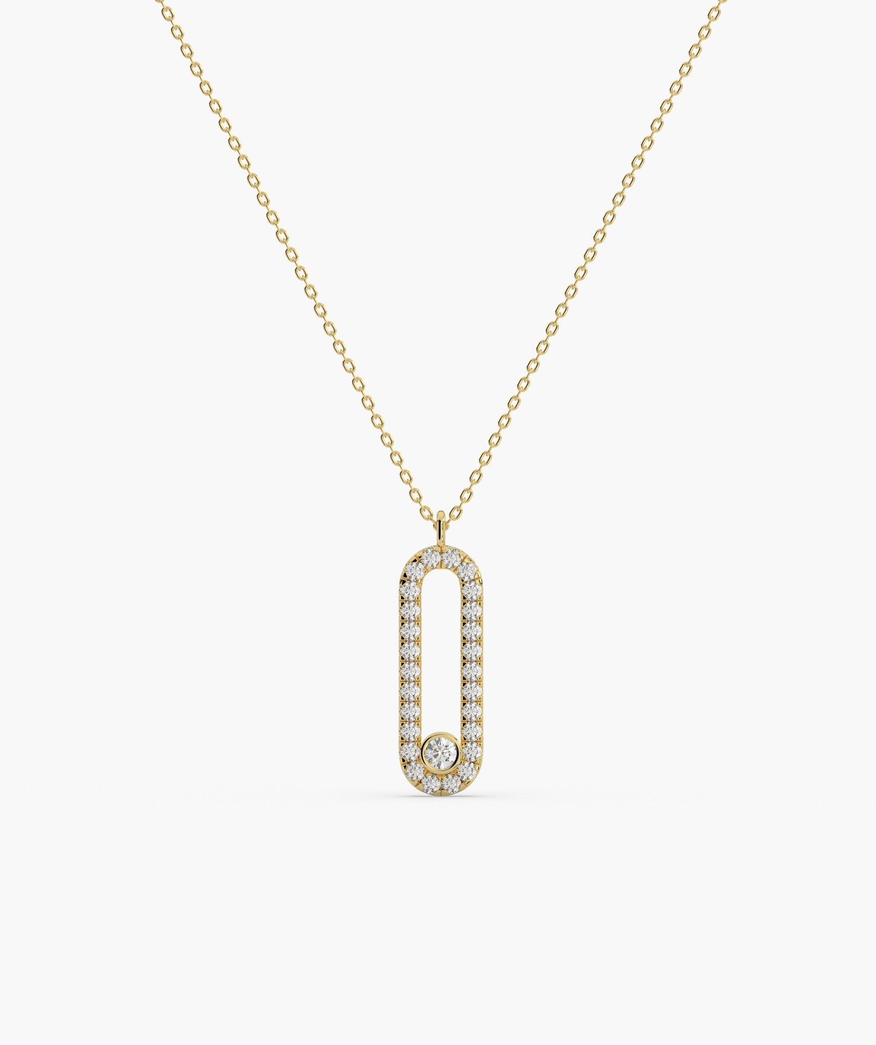 Chic 14K gold necklace featuring a diamond-studded loop pendant, blending contemporary style with timeless sparkle.