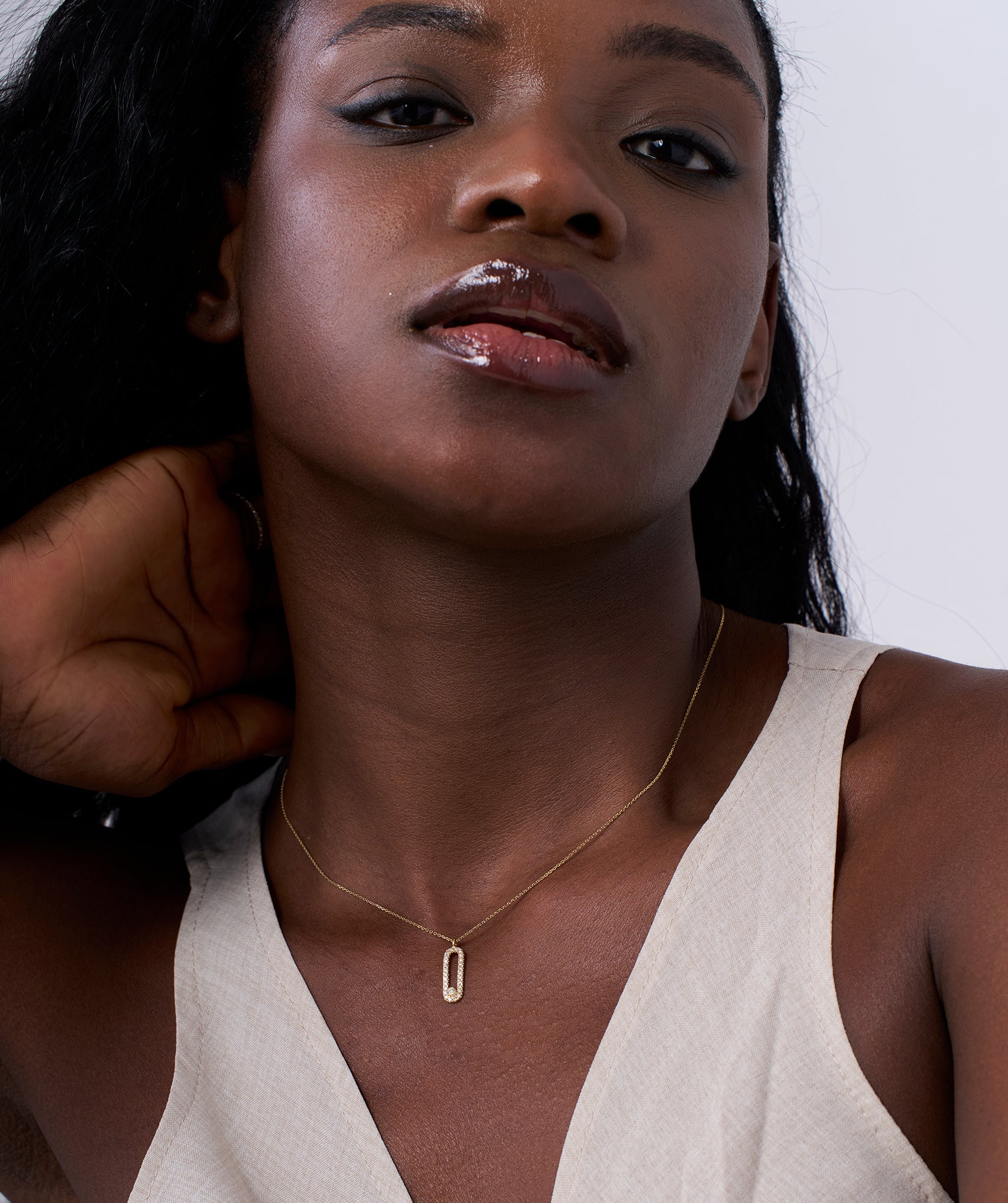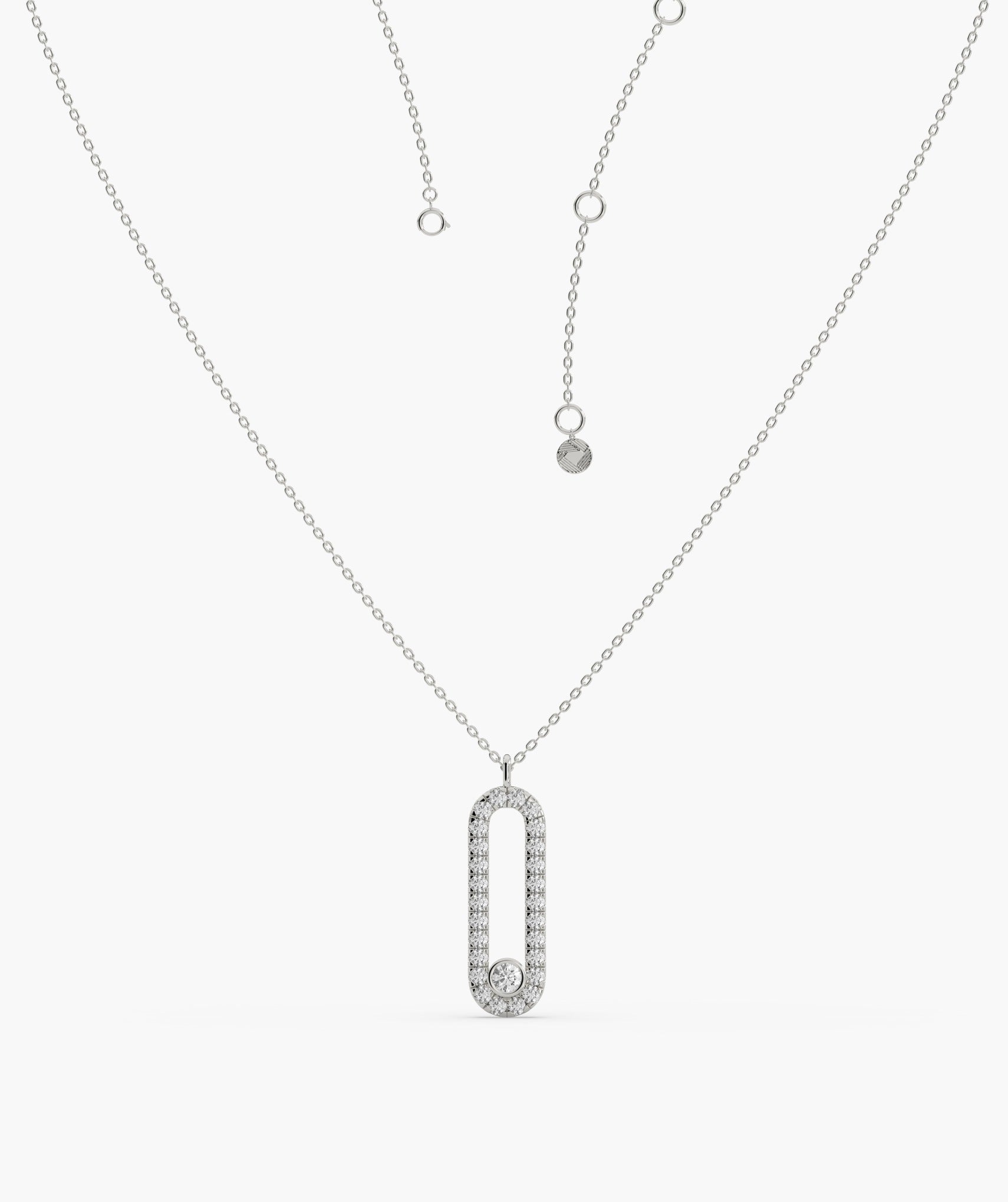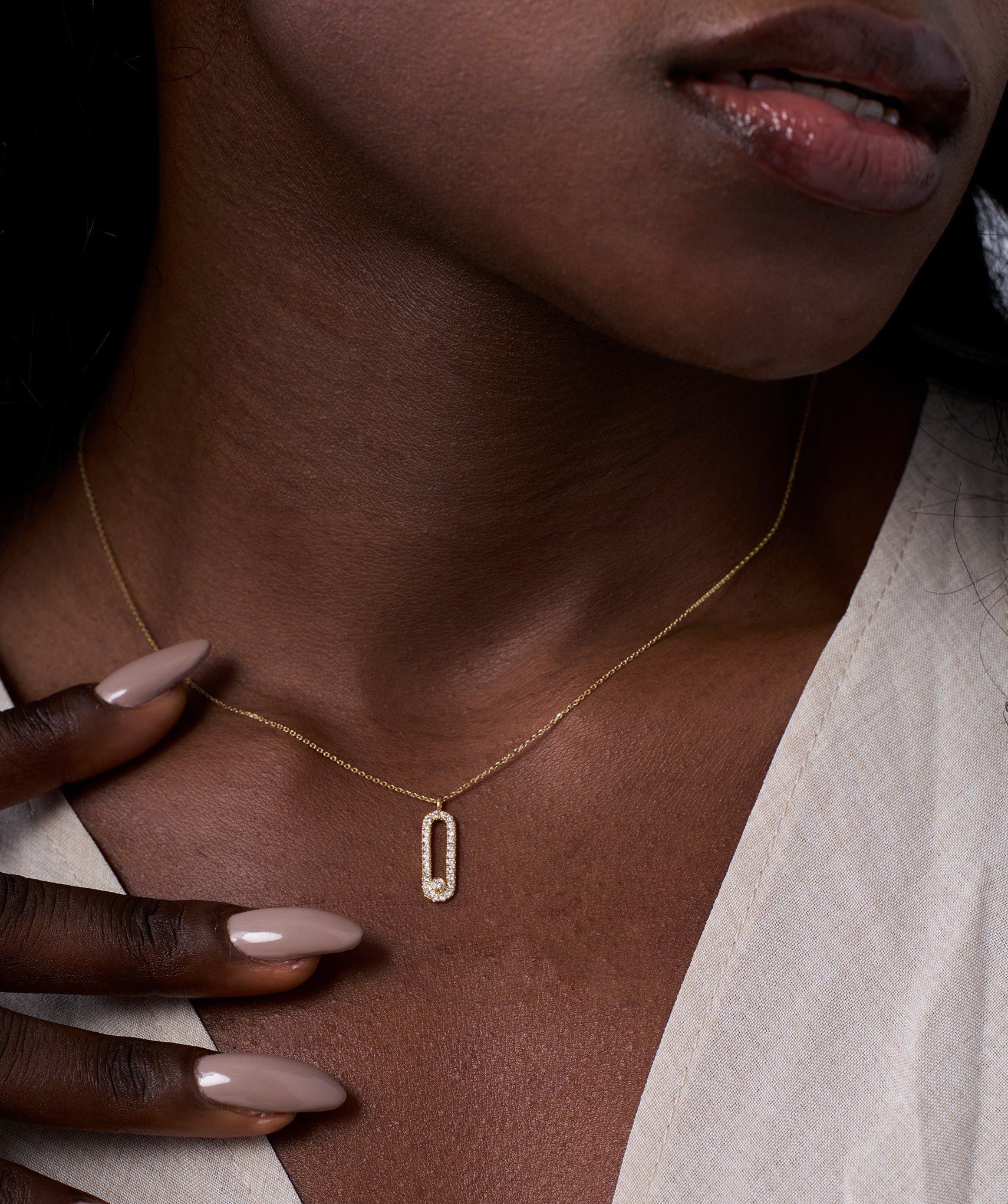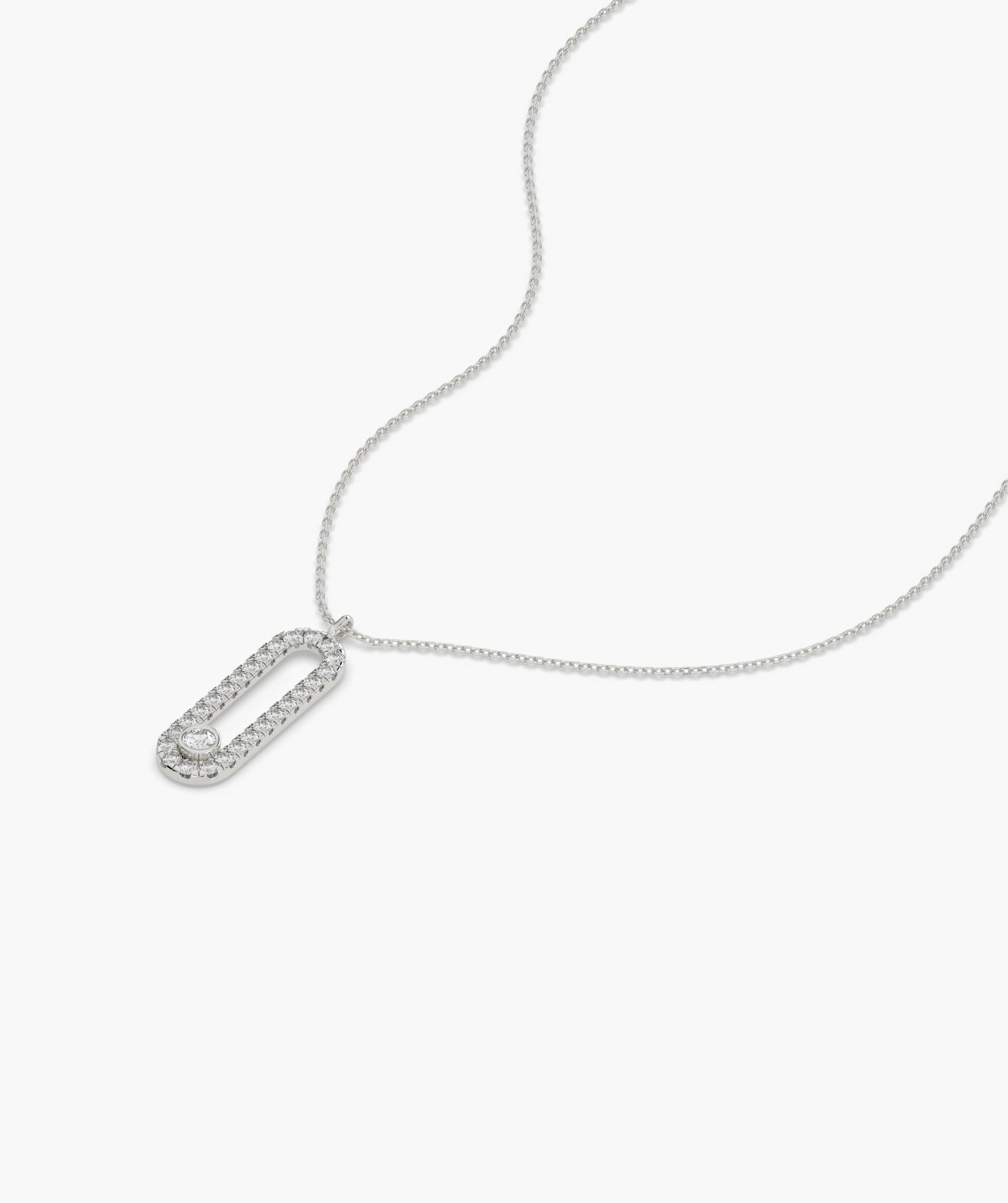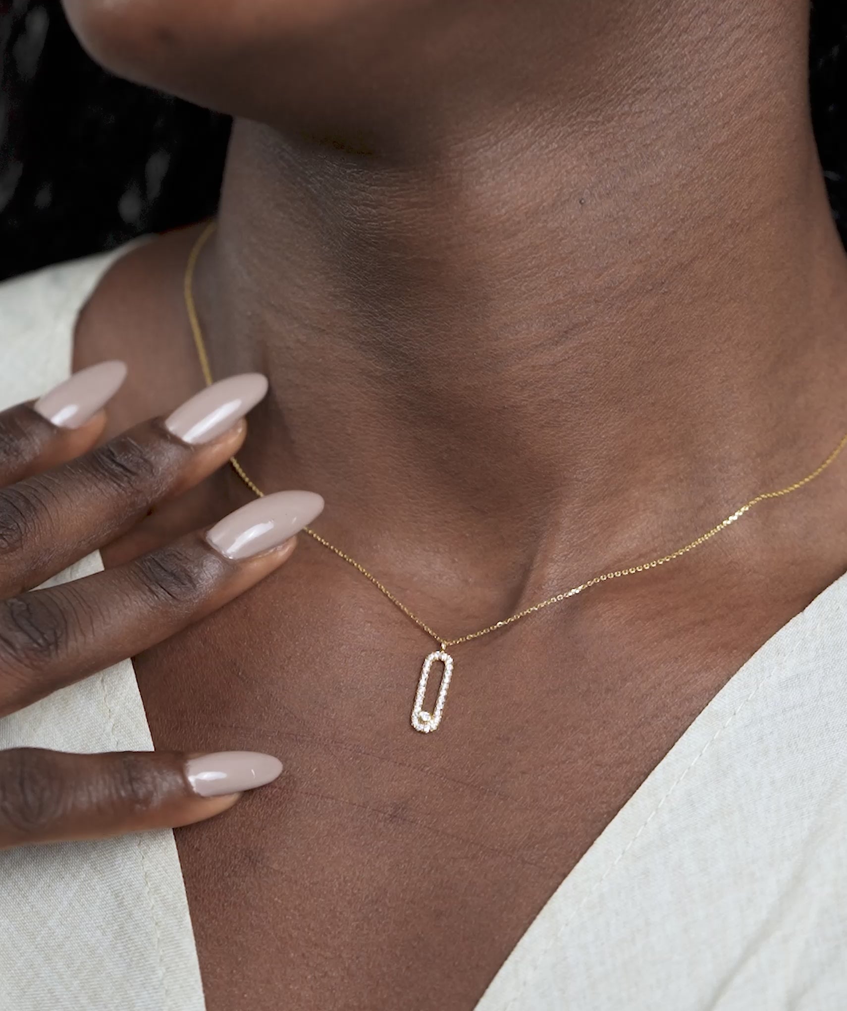 Chic 14K gold necklace featuring a diamond-studded loop pendant, blending contemporary style with timeless sparkle.