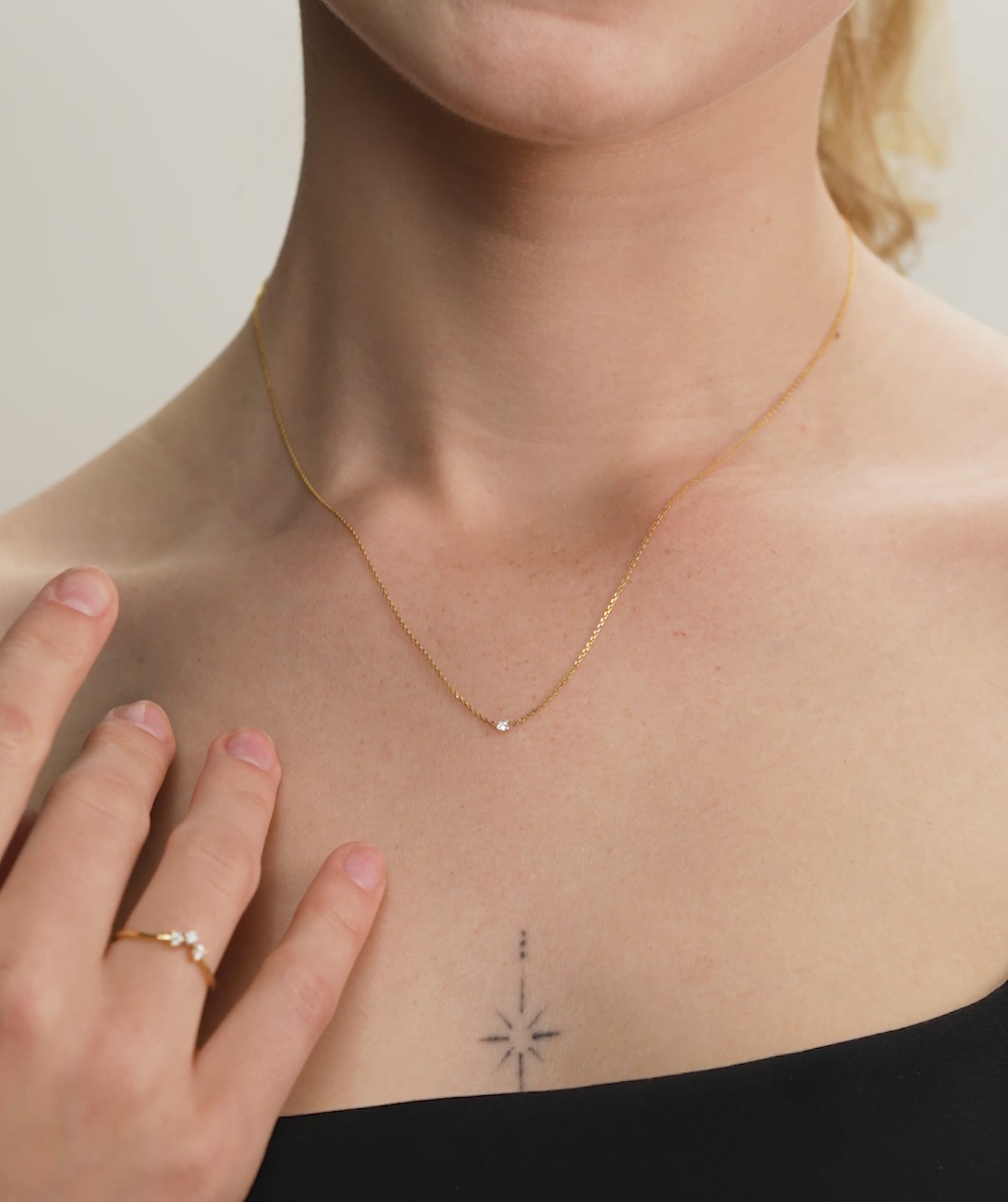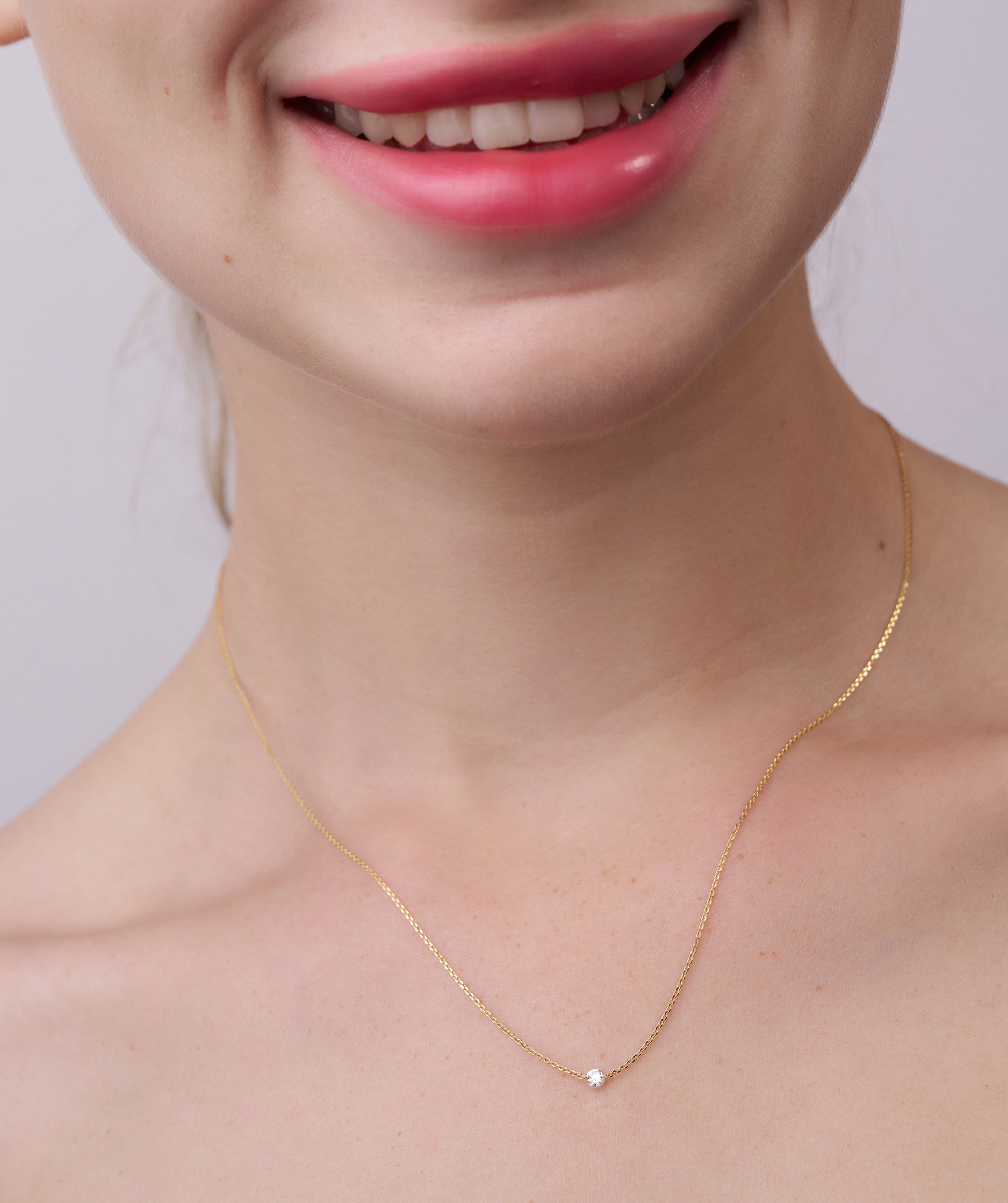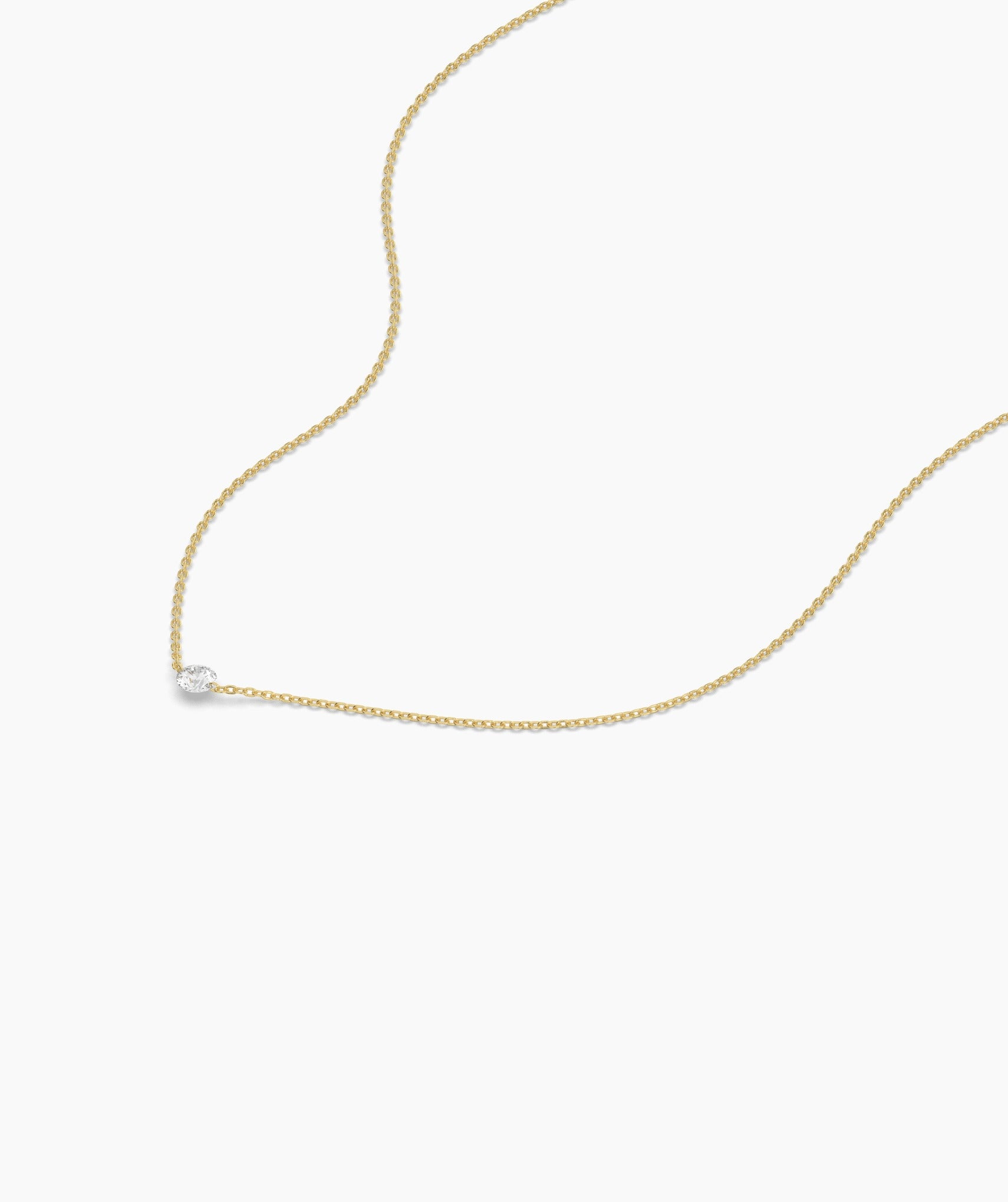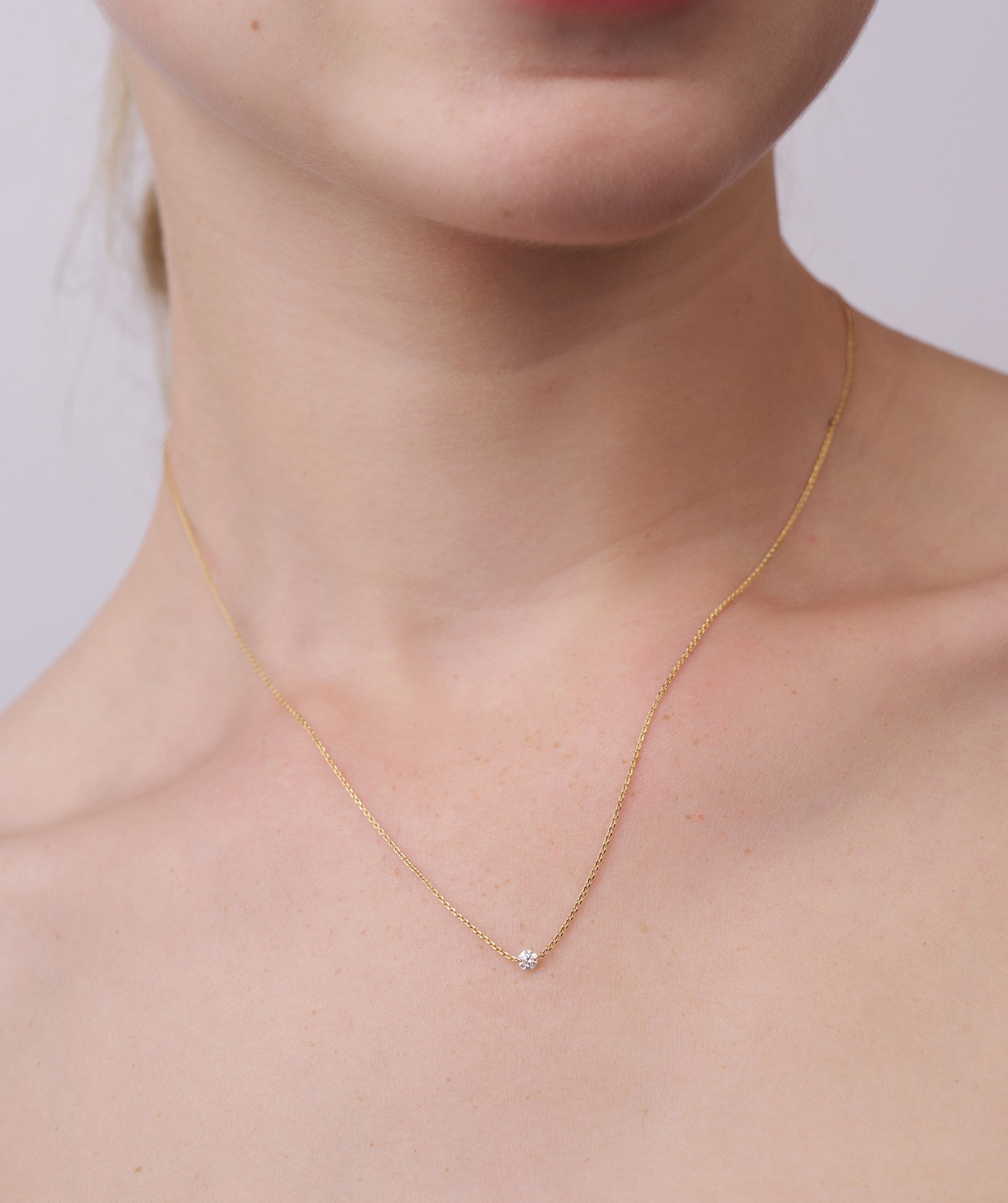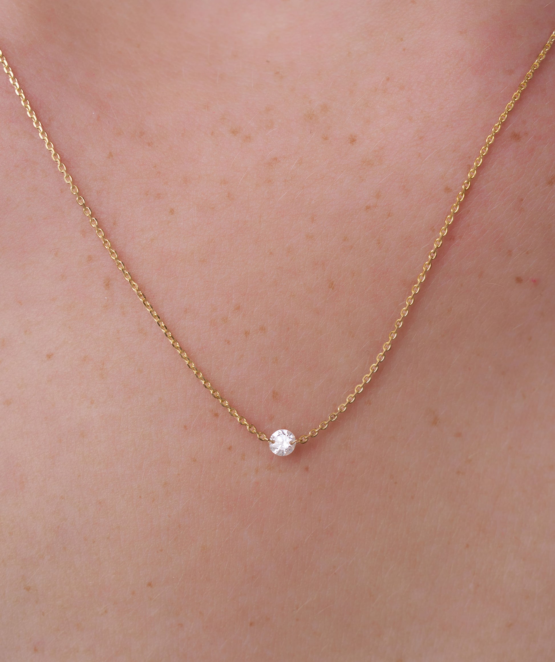 Minimalist yet eye-catching, this solitaire diamond pendant features a floating effect, making it the perfect everyday luxury piece.
