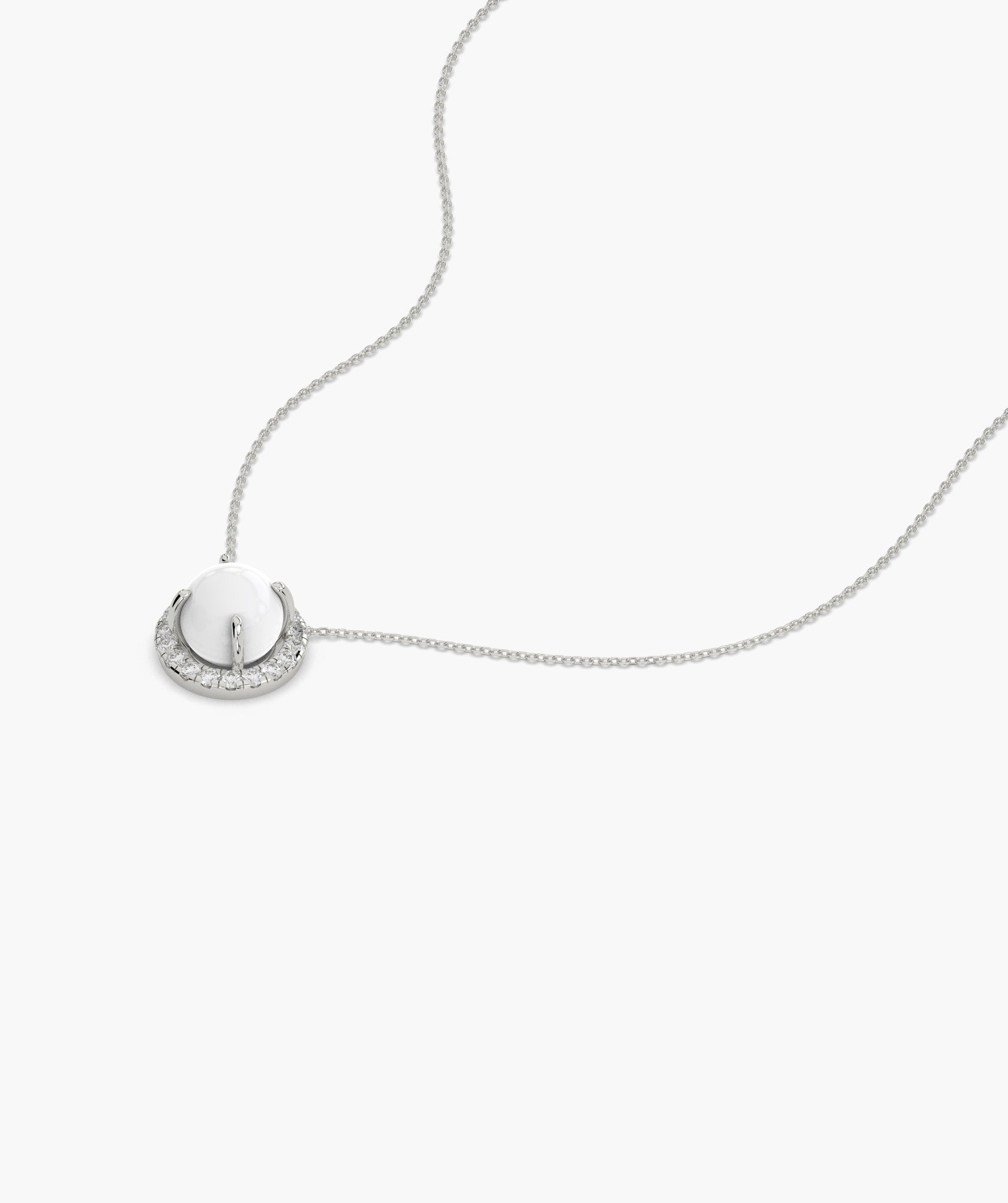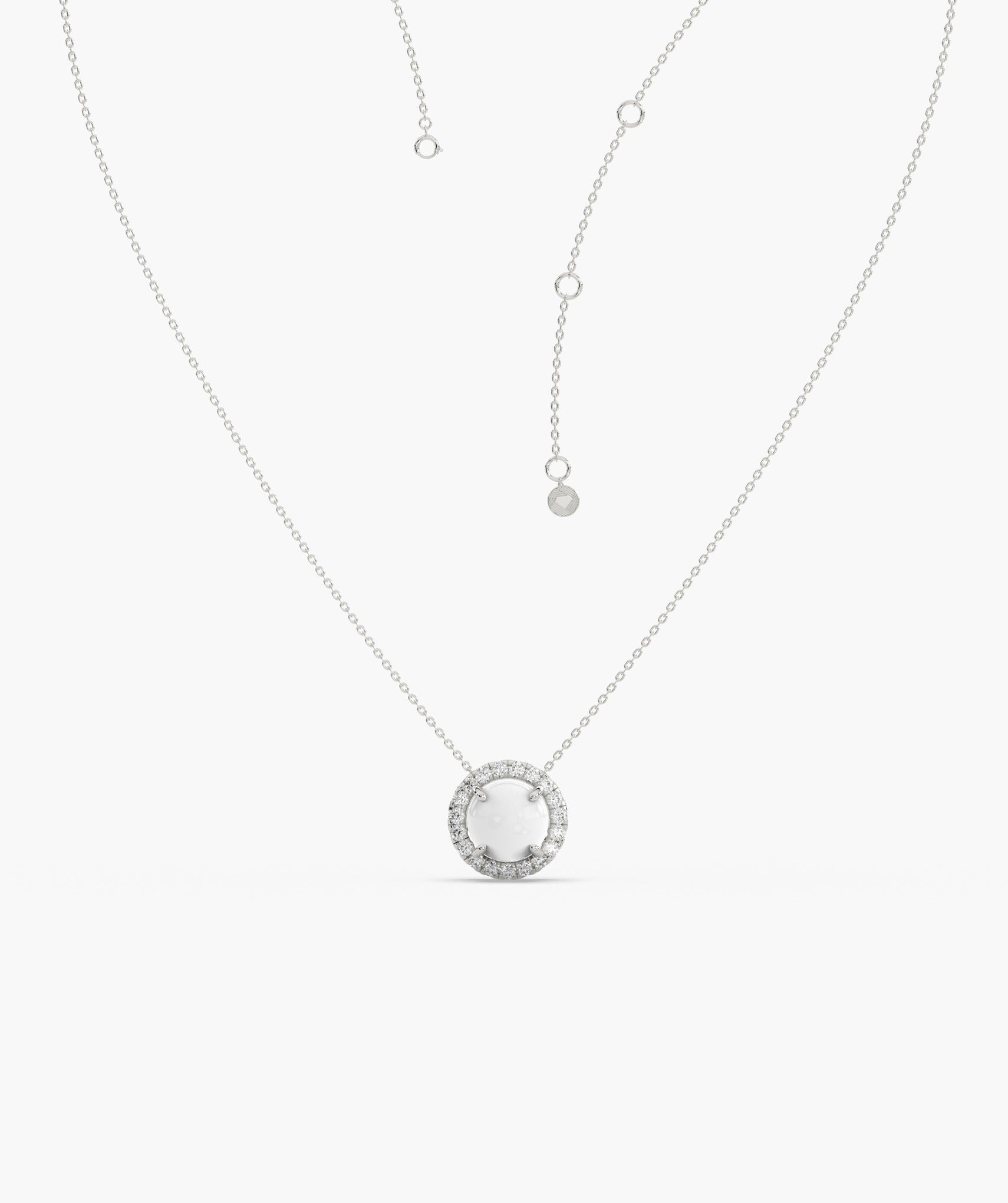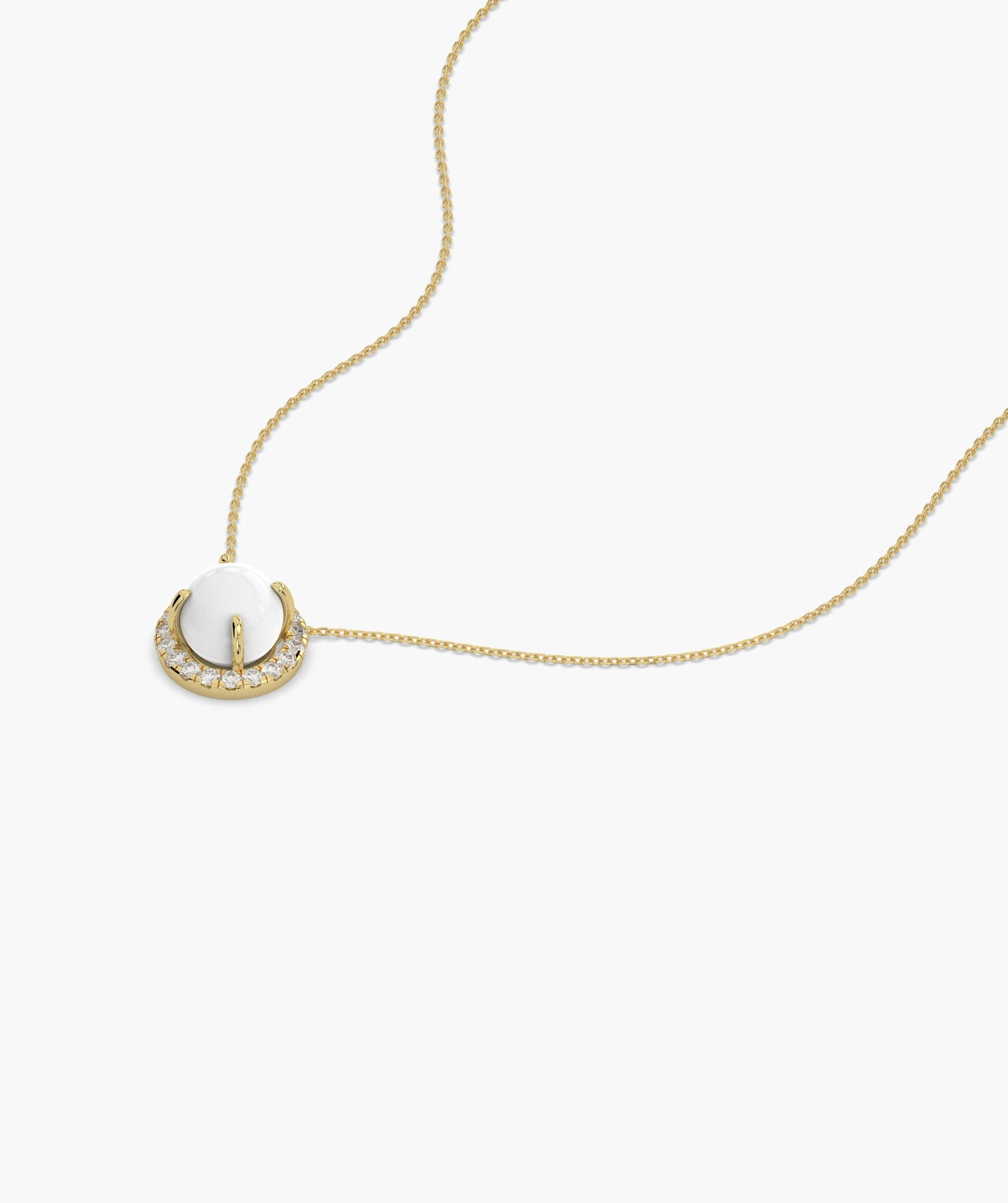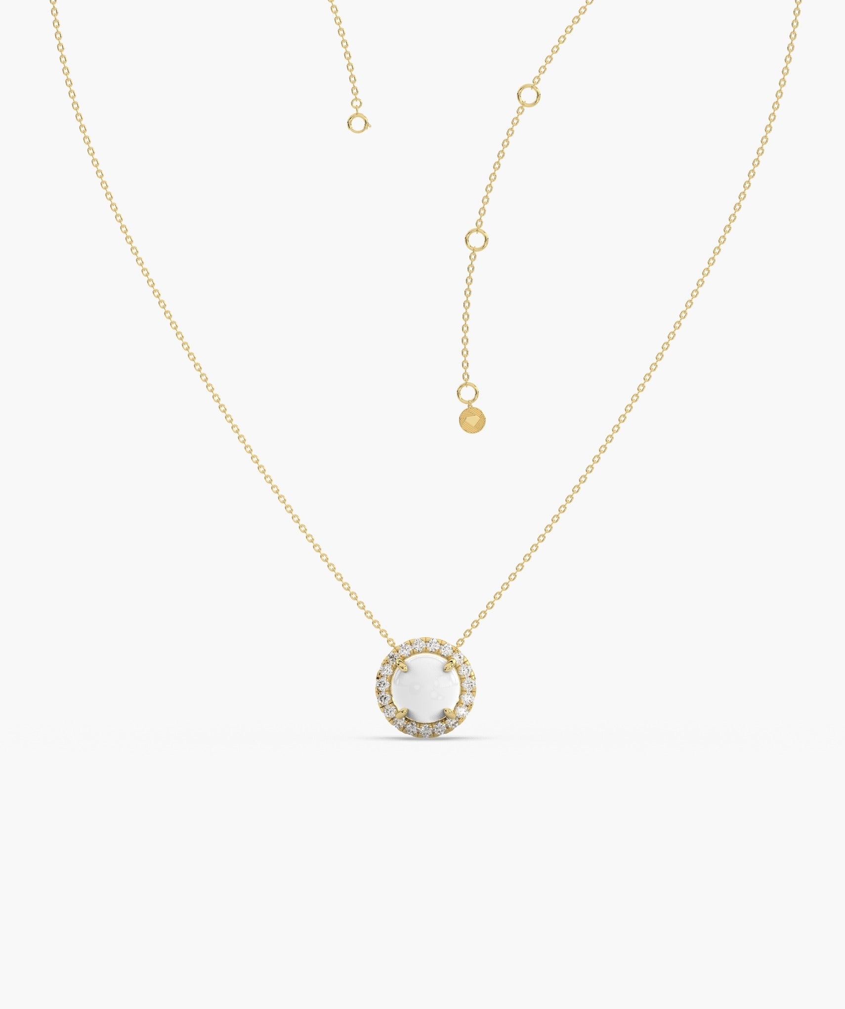 Crafted in 14K gold, this necklace showcases a stunning white pearl with a diamond halo, embodying classic elegance.