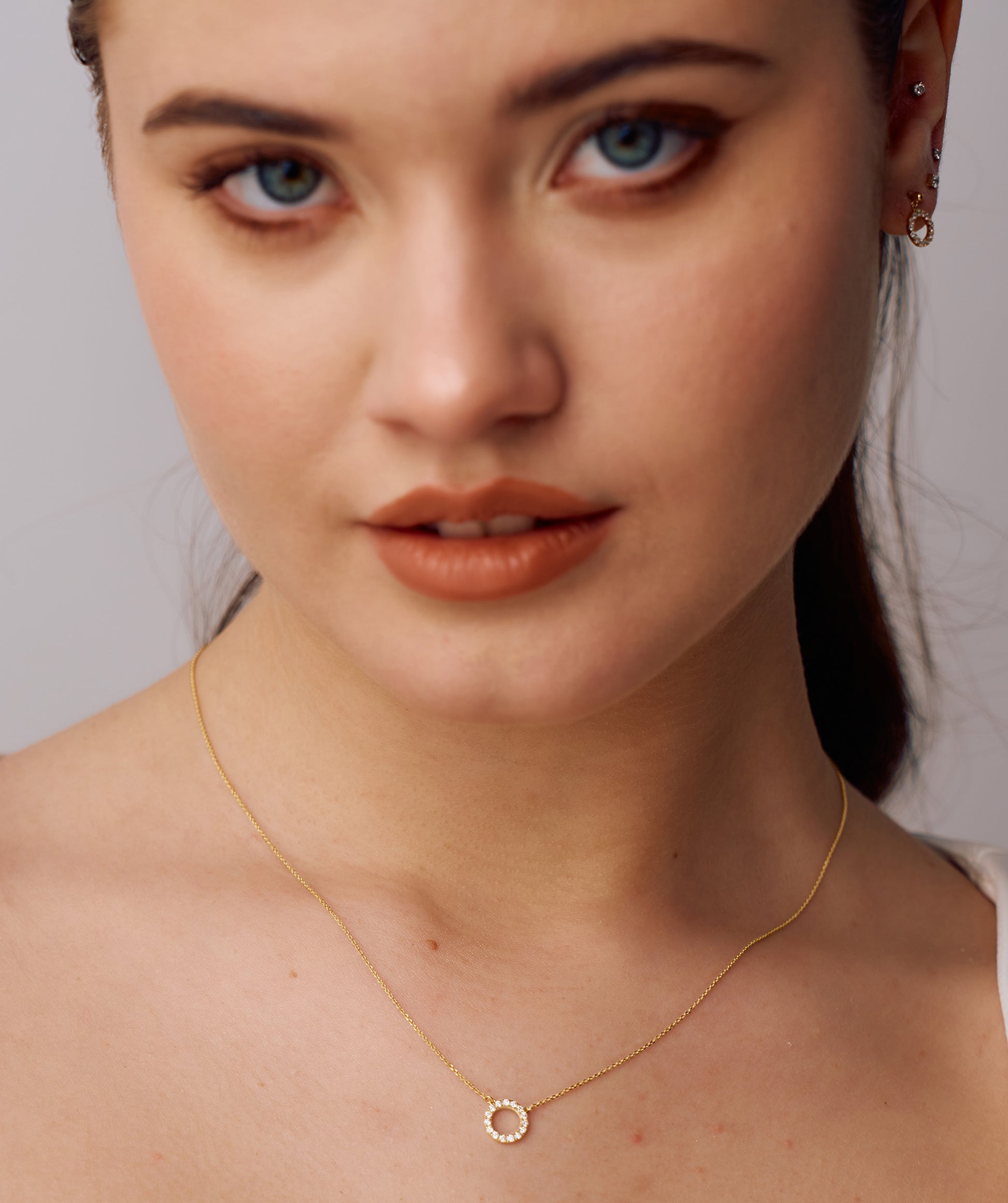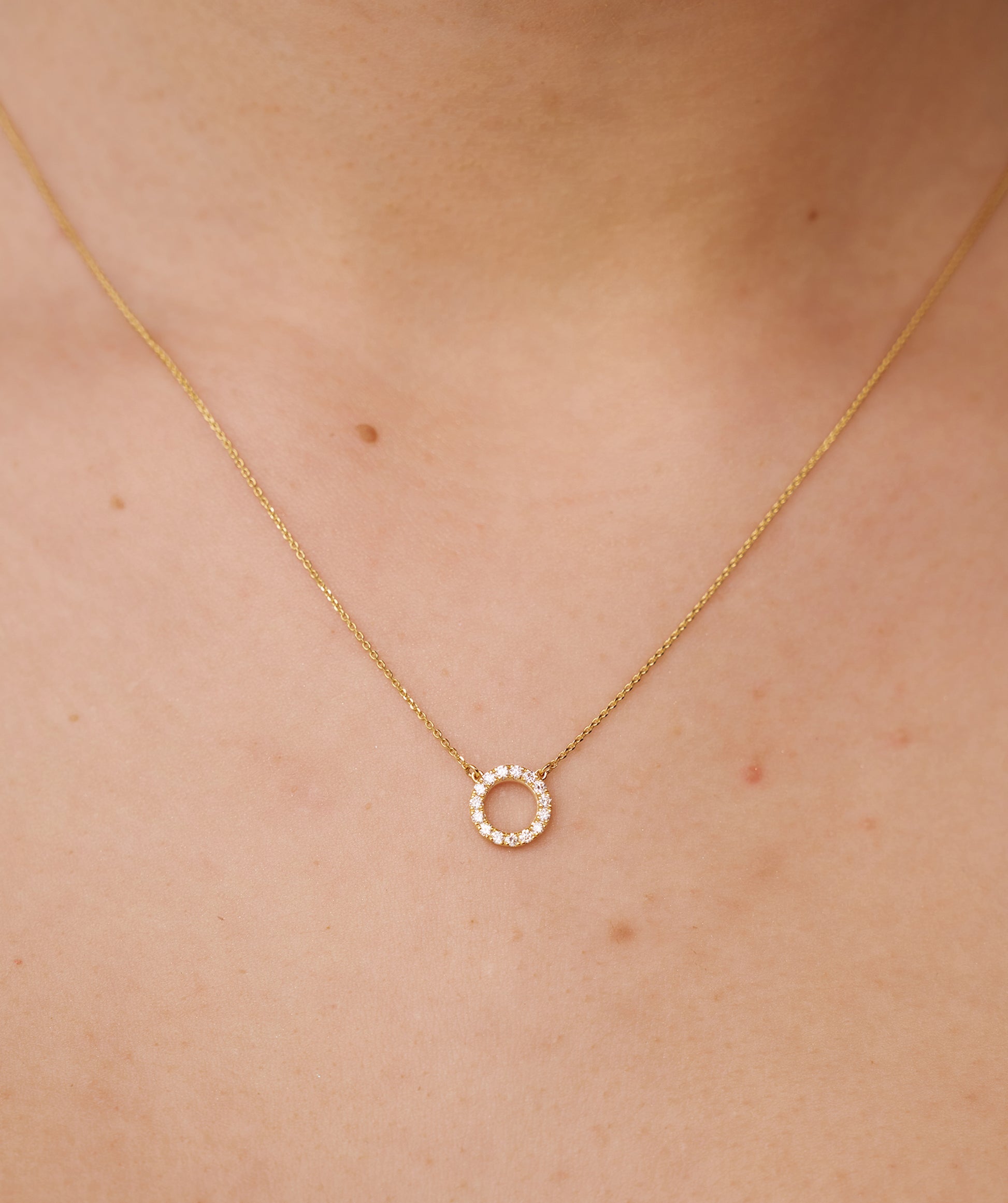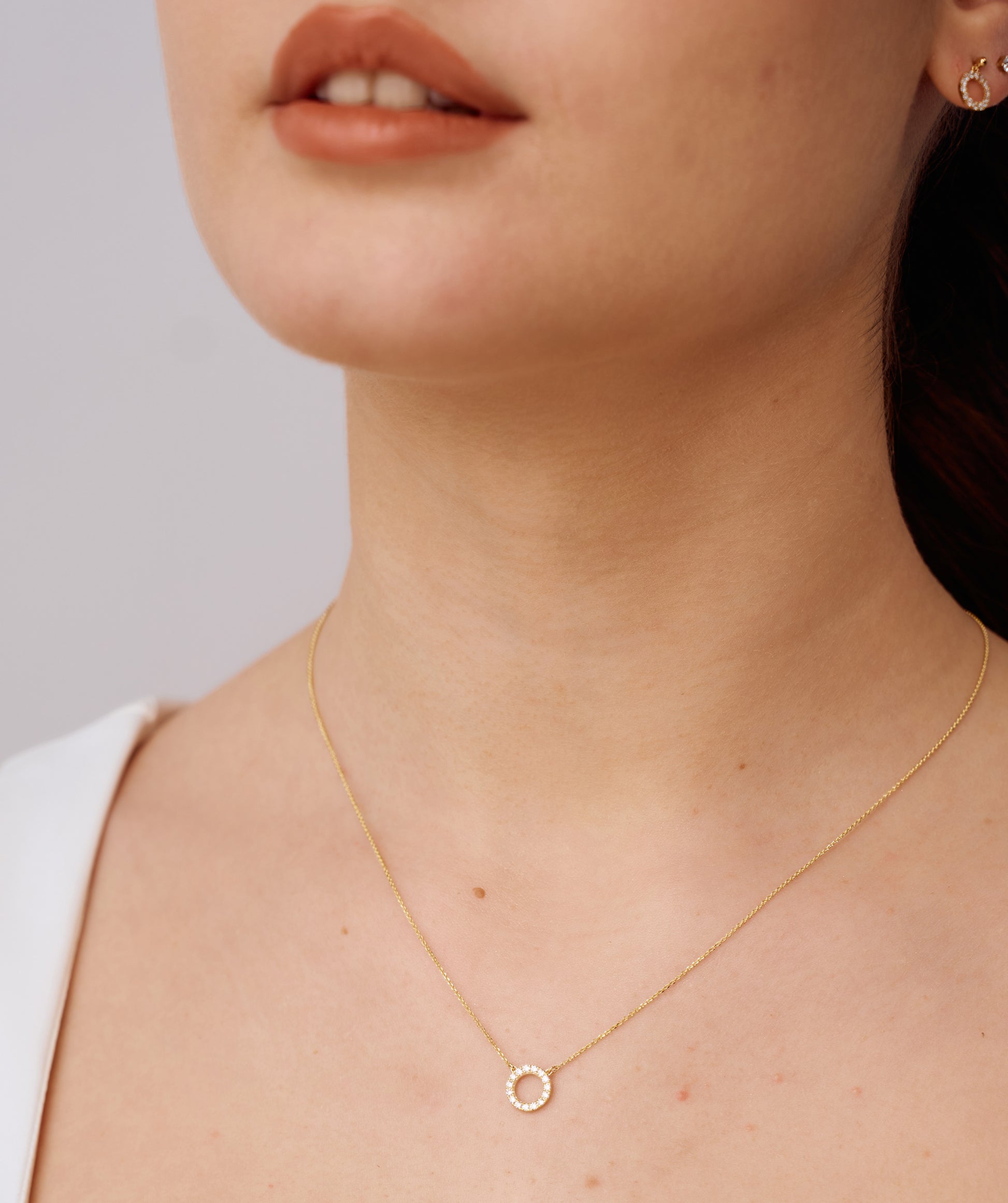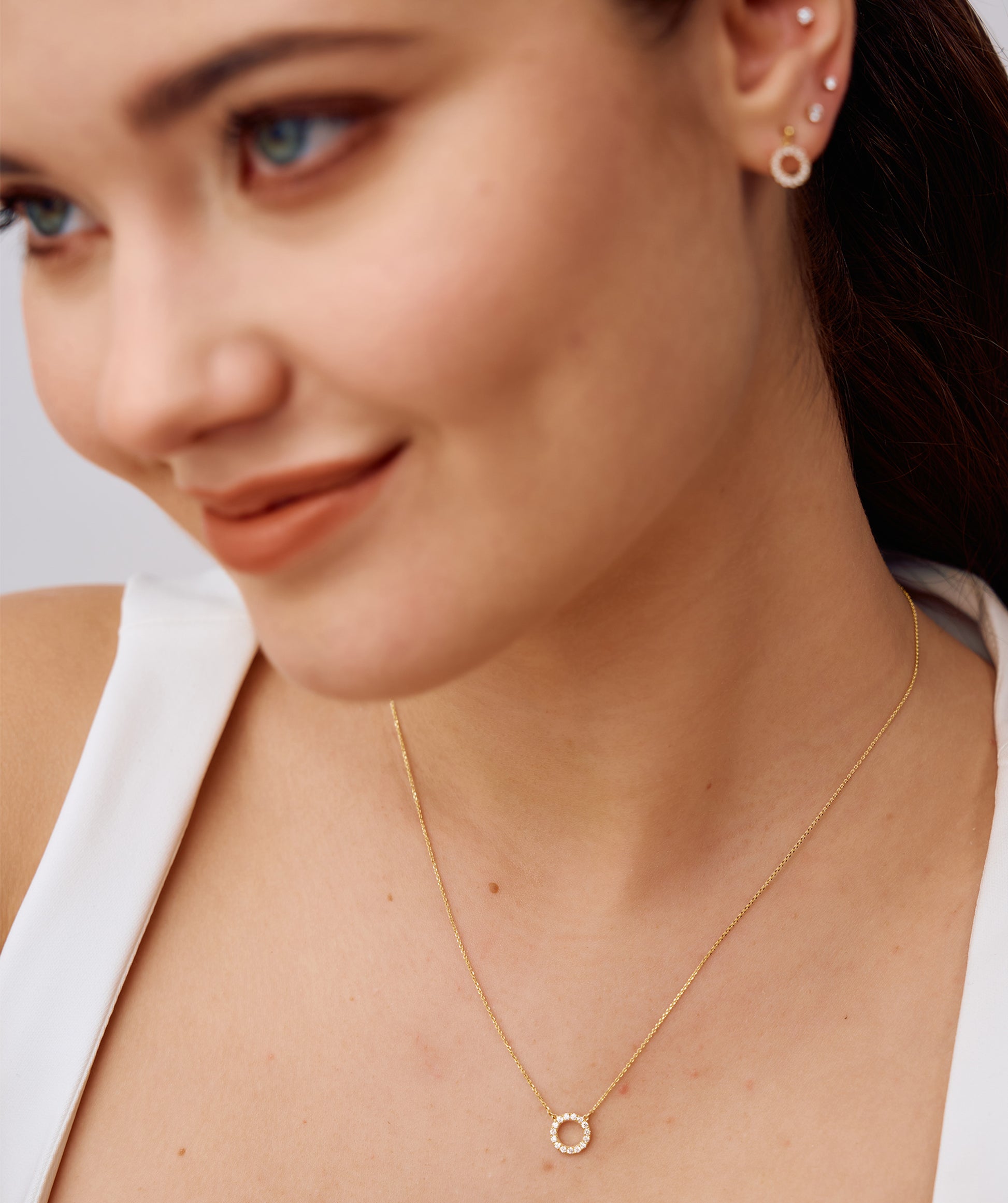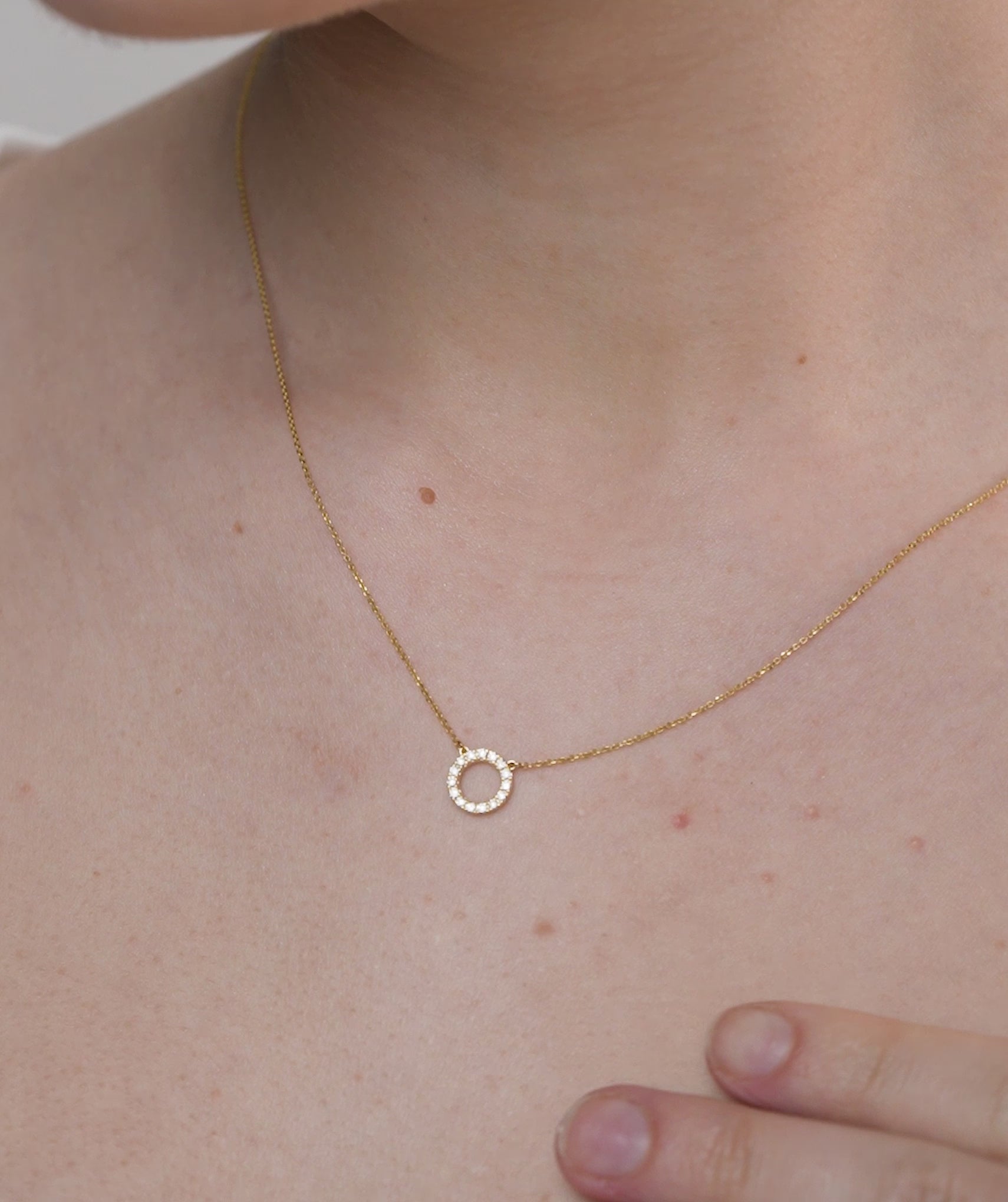 A timeless symbol of eternity, this 14K gold diamond circle necklace sparkles with brilliance. Perfect for everyday elegance or a special gift