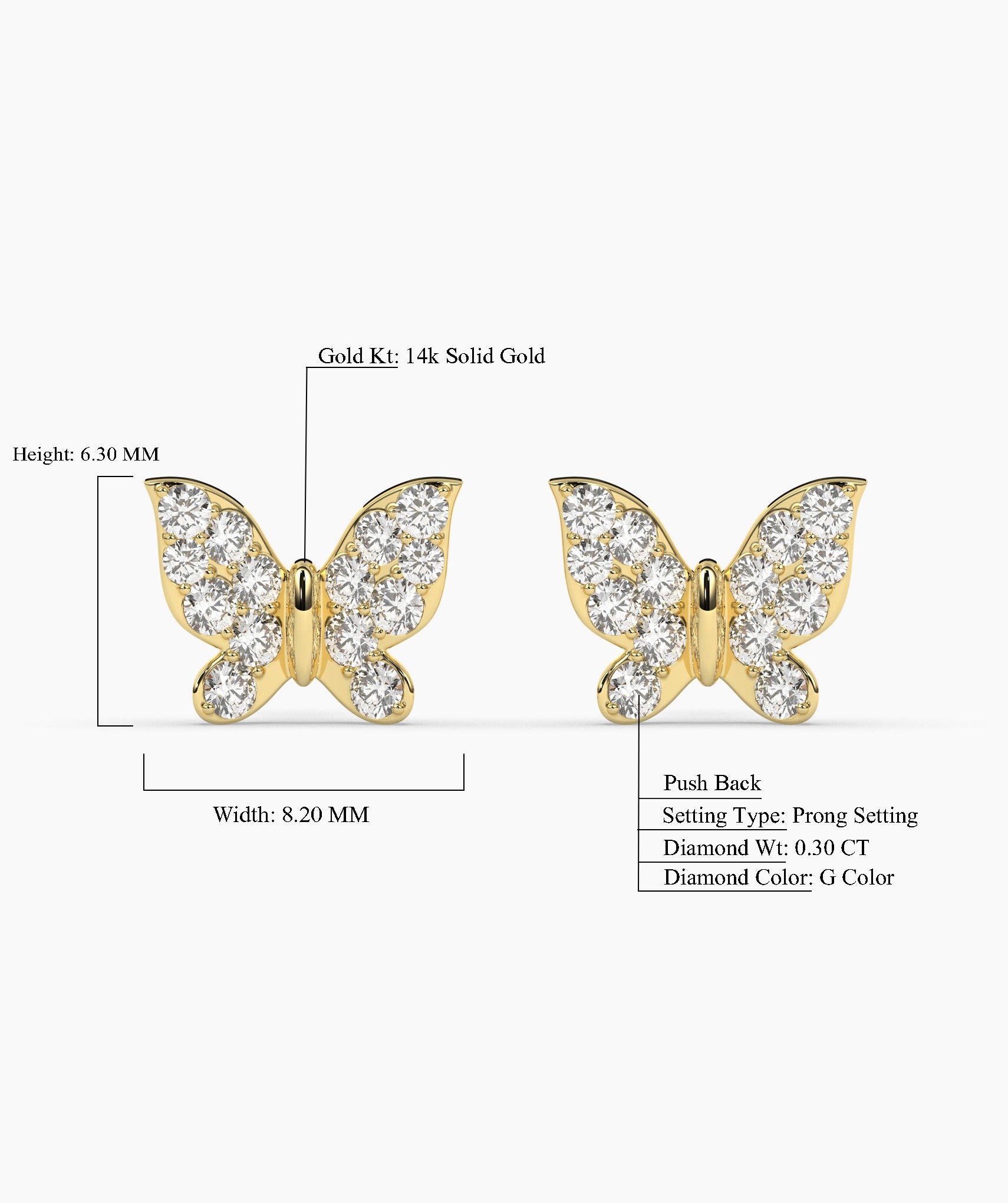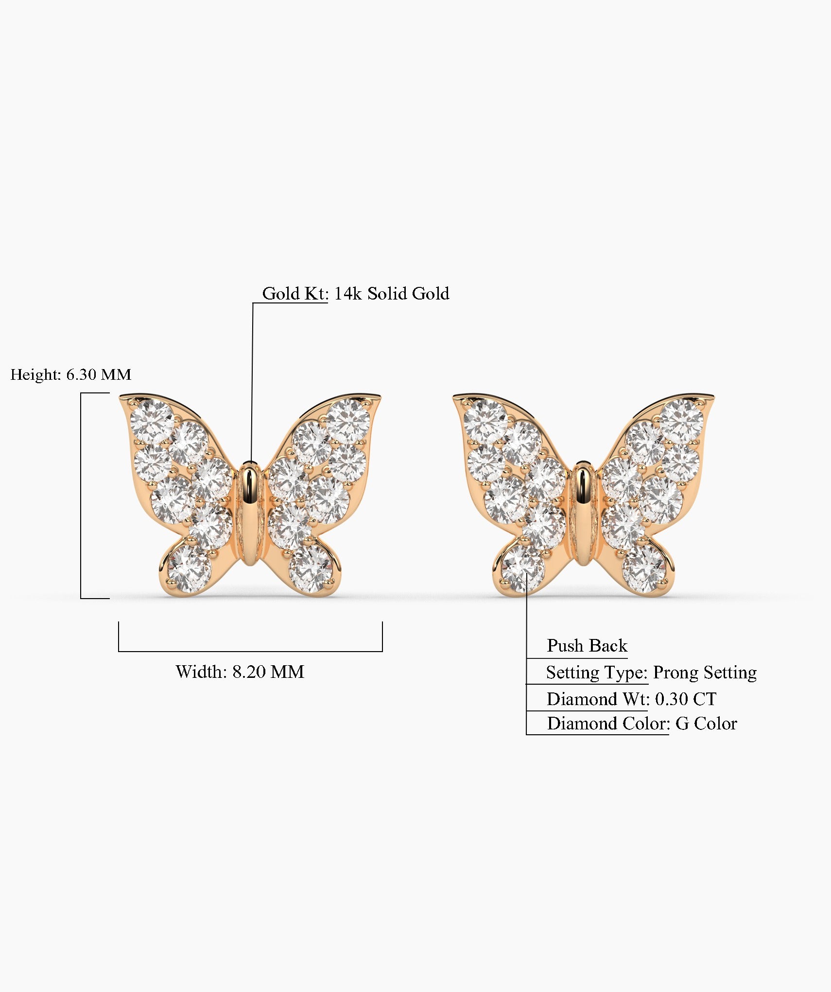 Embrace the elegance and grace of these beautifully crafted 14K solid gold butterfly stud earrings.