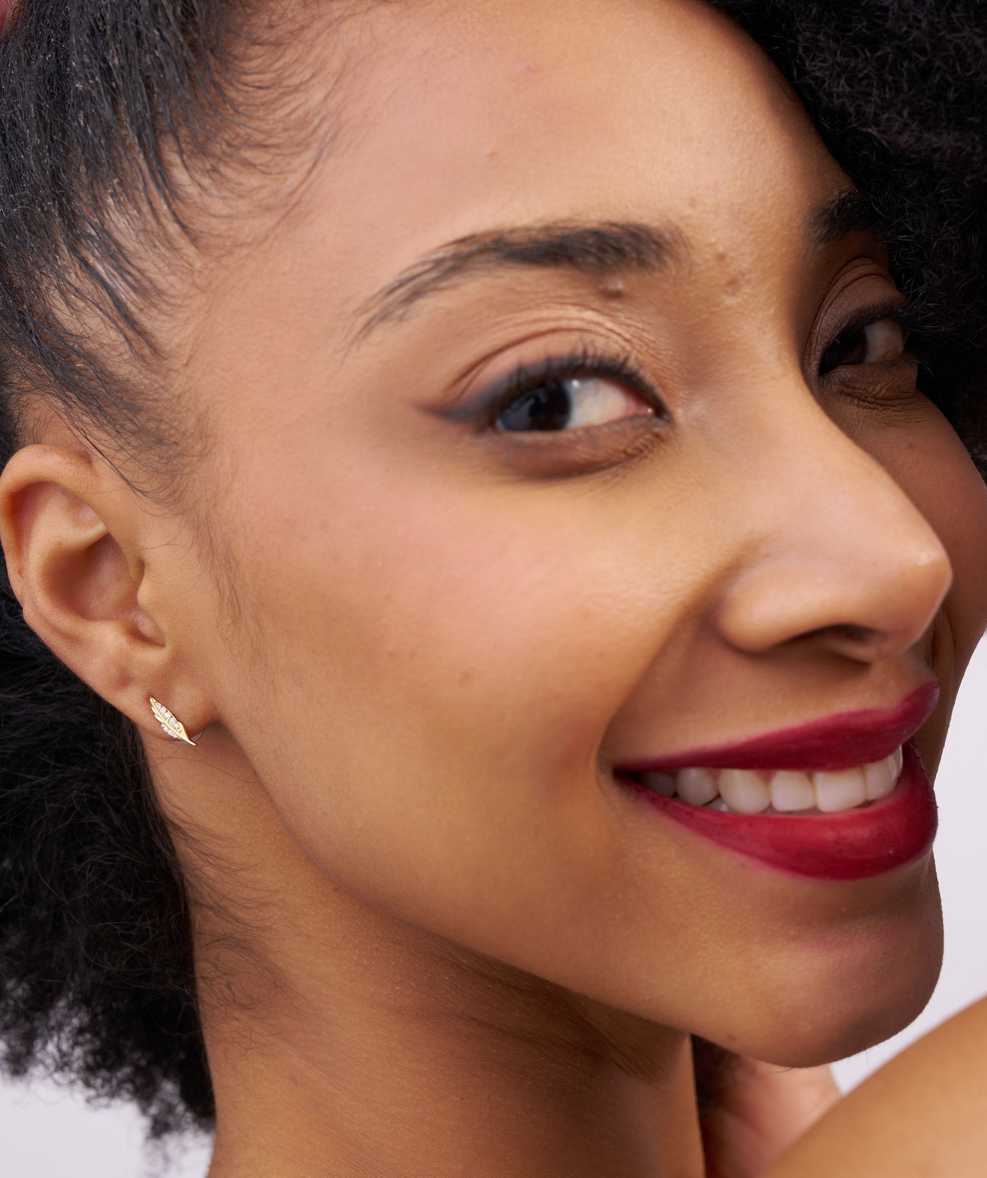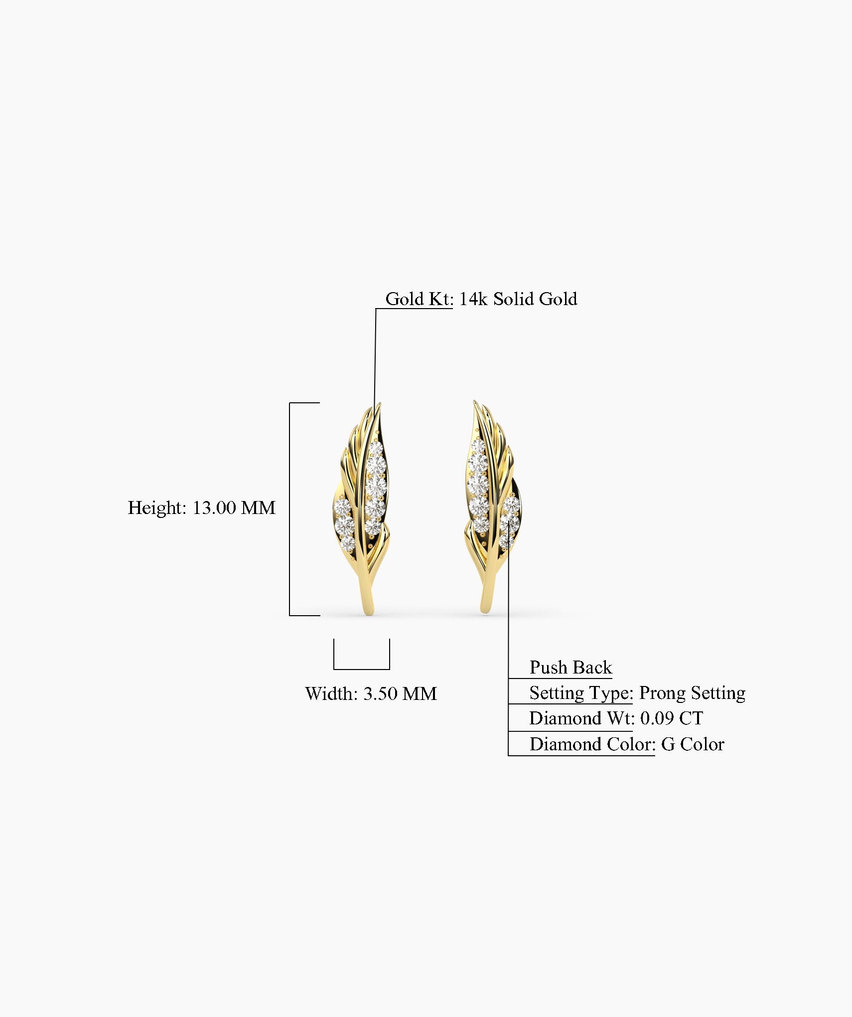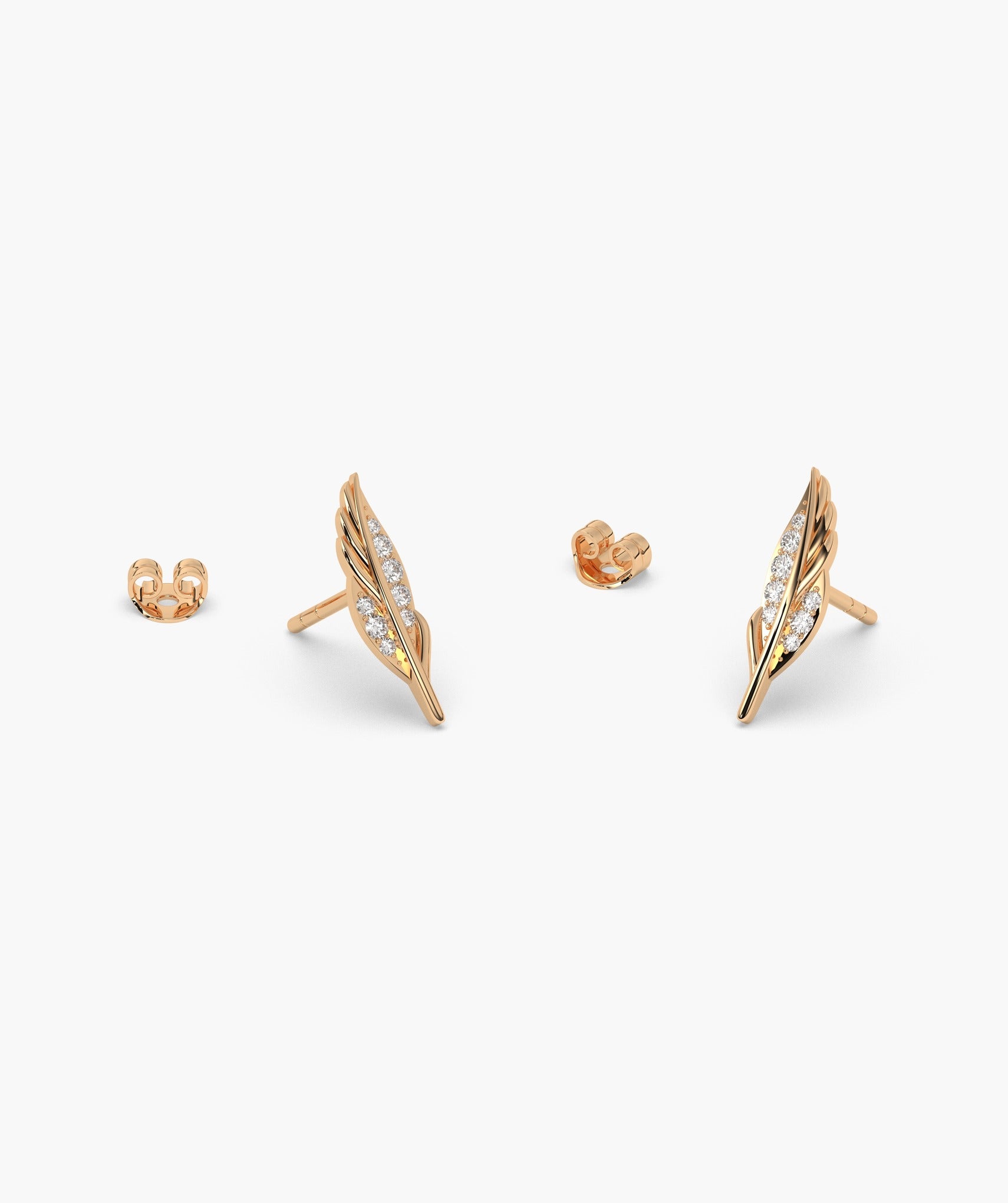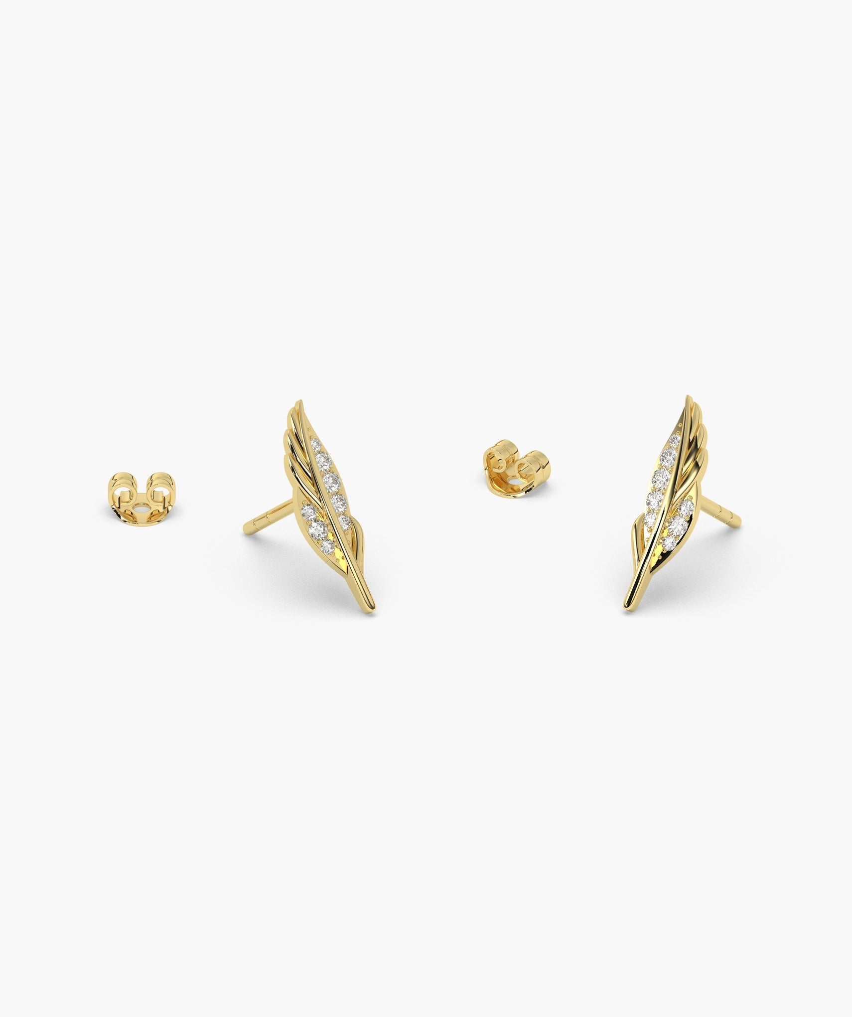 A symbol of freedom and grace, these dainty gold feather earrings sparkle with diamonds, adding effortless elegance to any outfit.