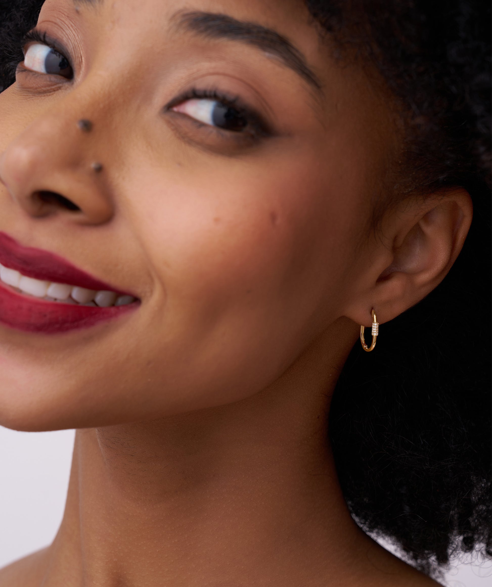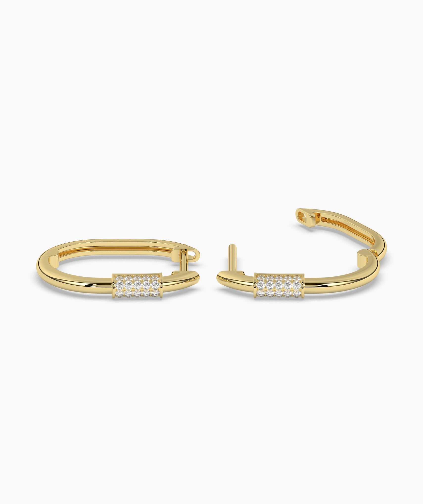 A refined twist on a classic staple, these gold hoops add subtle sparkle thanks to their elegant diamond accents.