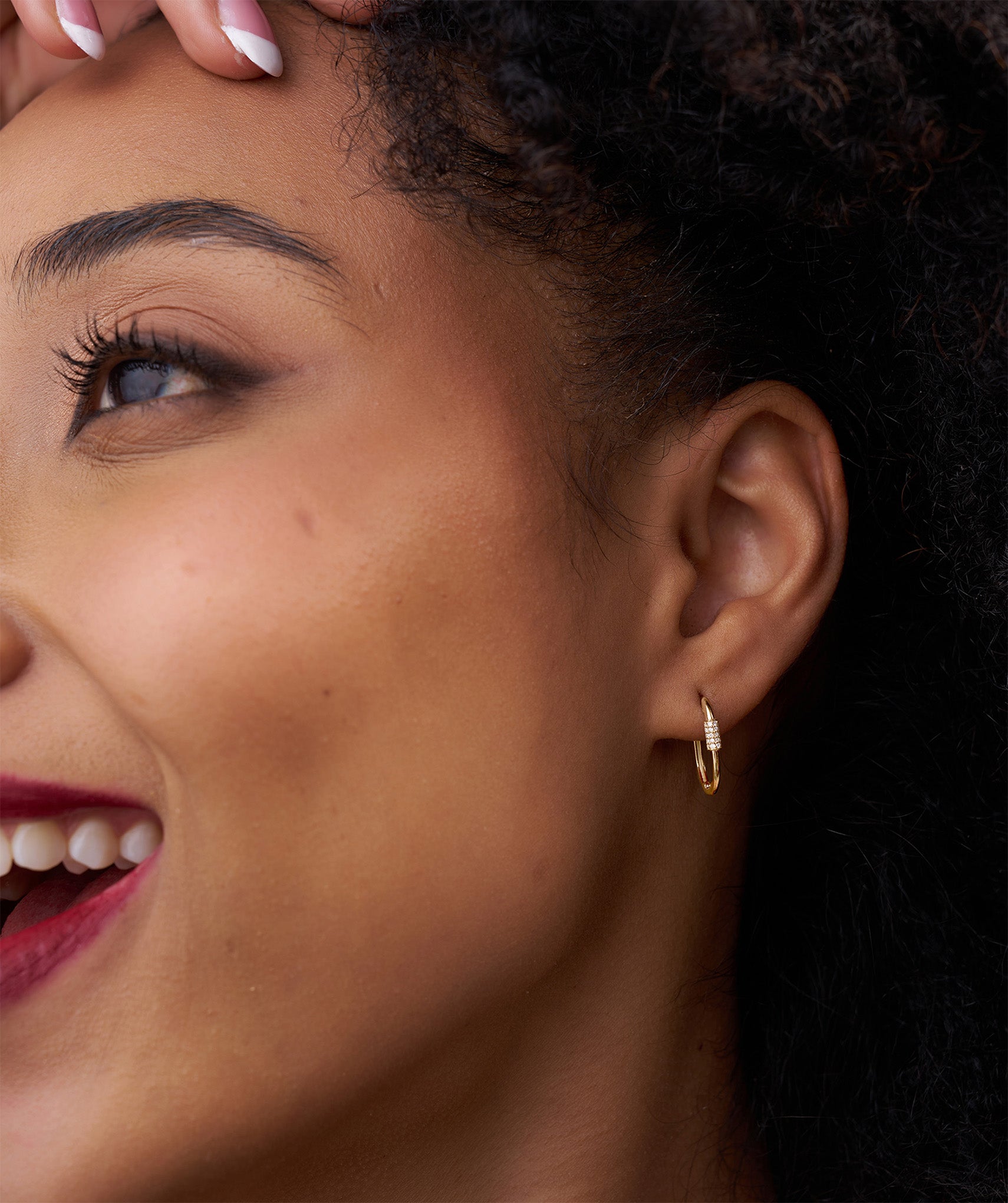 14K Gold Diamond Hamsa Huggie Earrings
