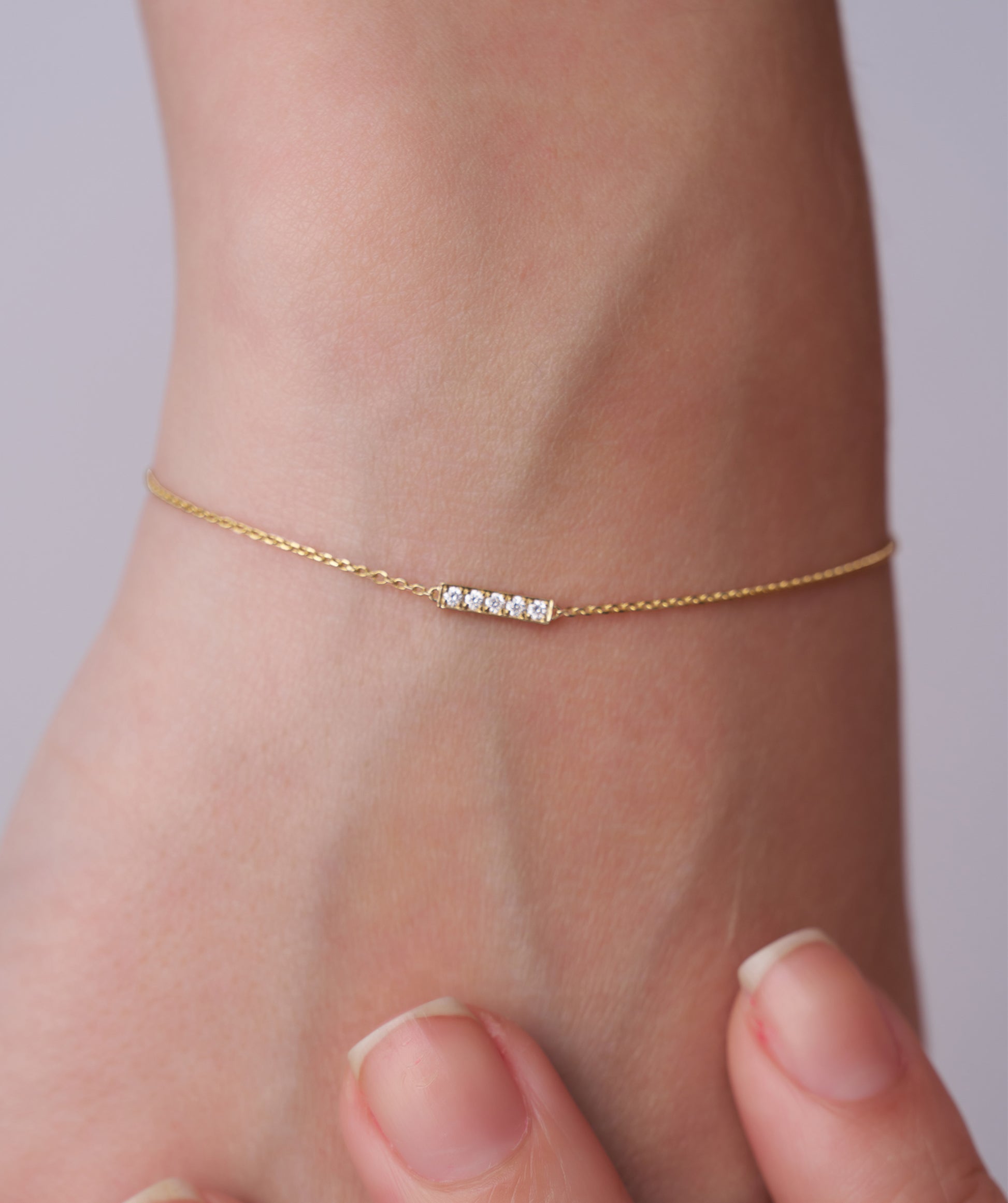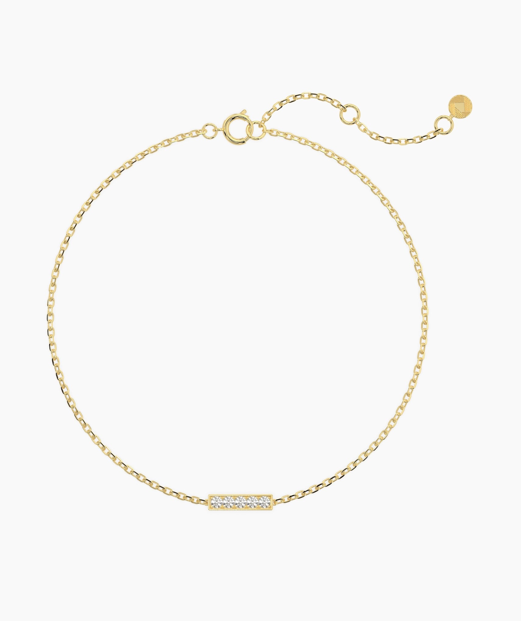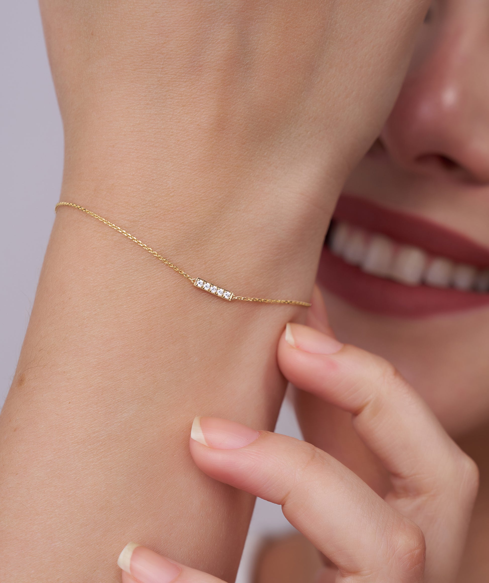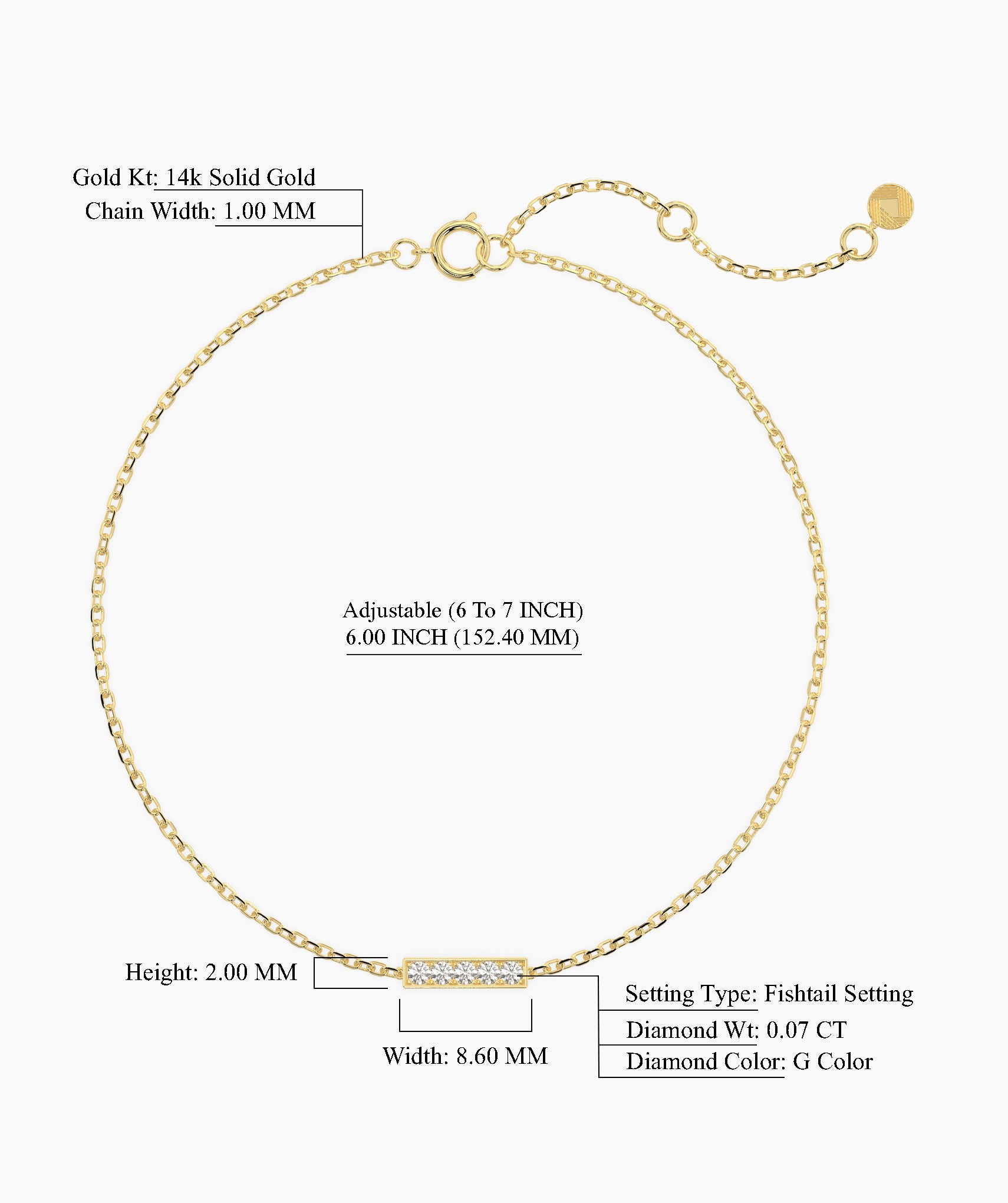 Crafted in 14K solid gold, this dainty chain bracelet showcases a stunning bar of shimmering diamonds.