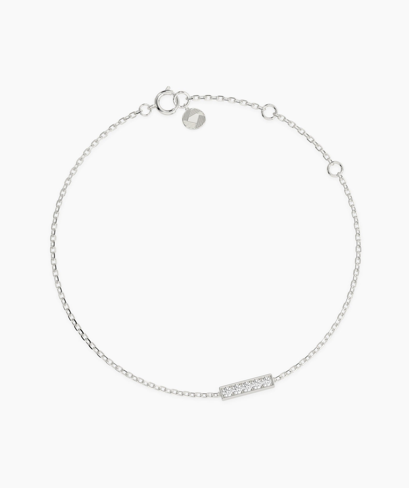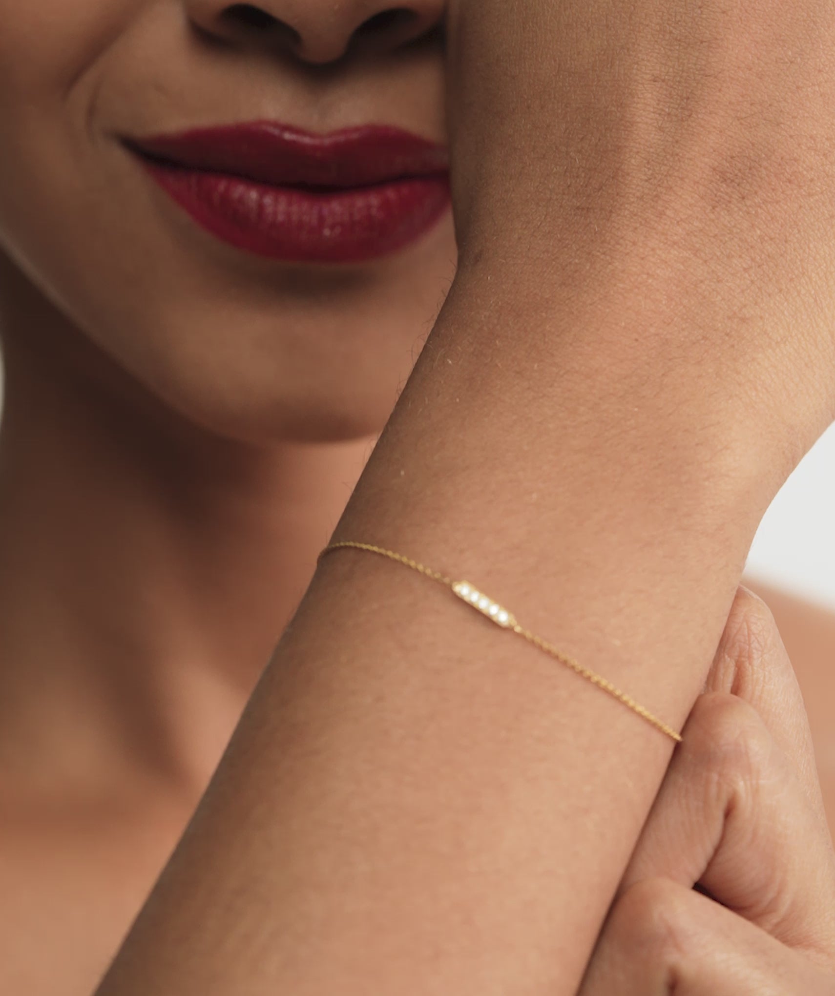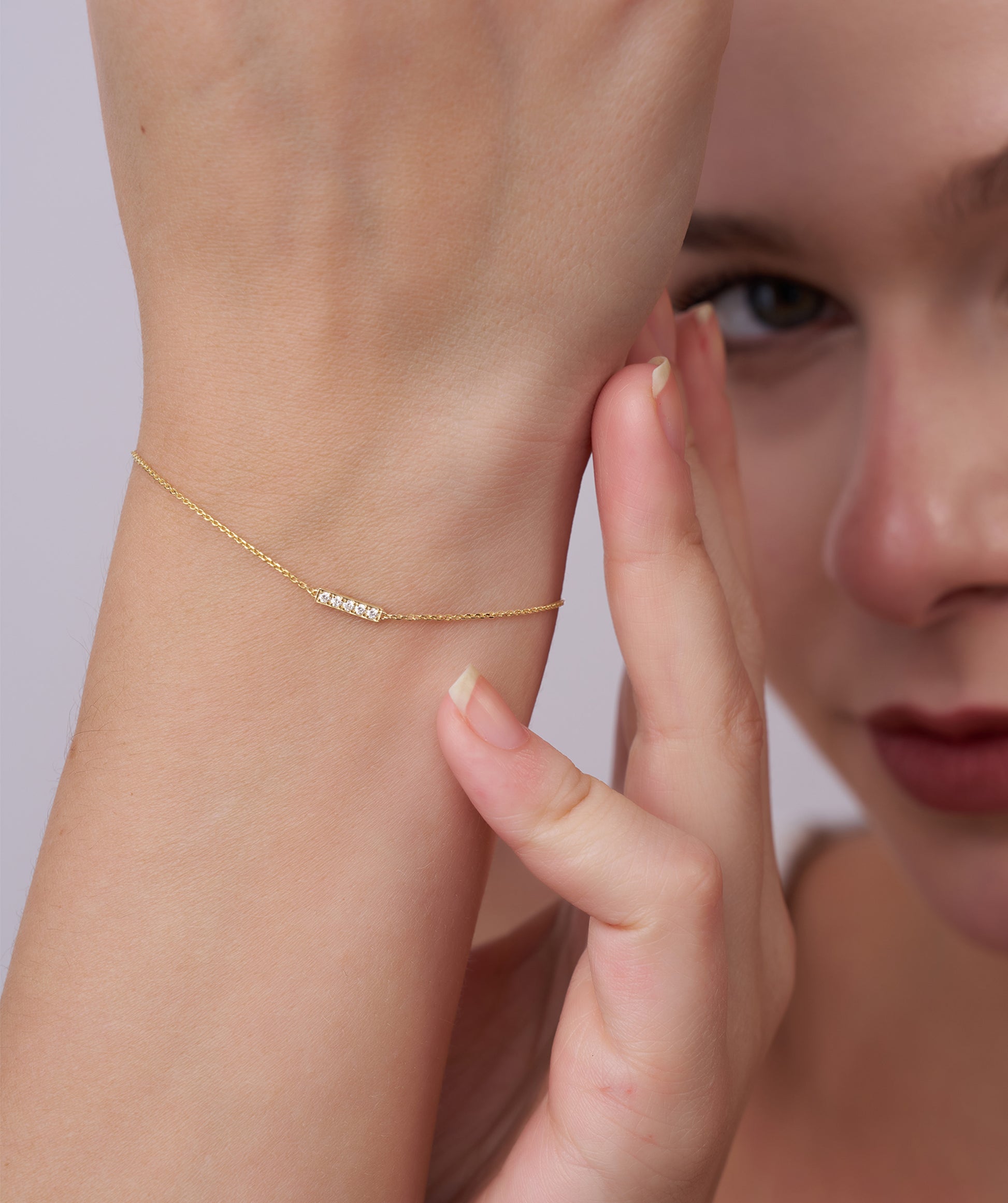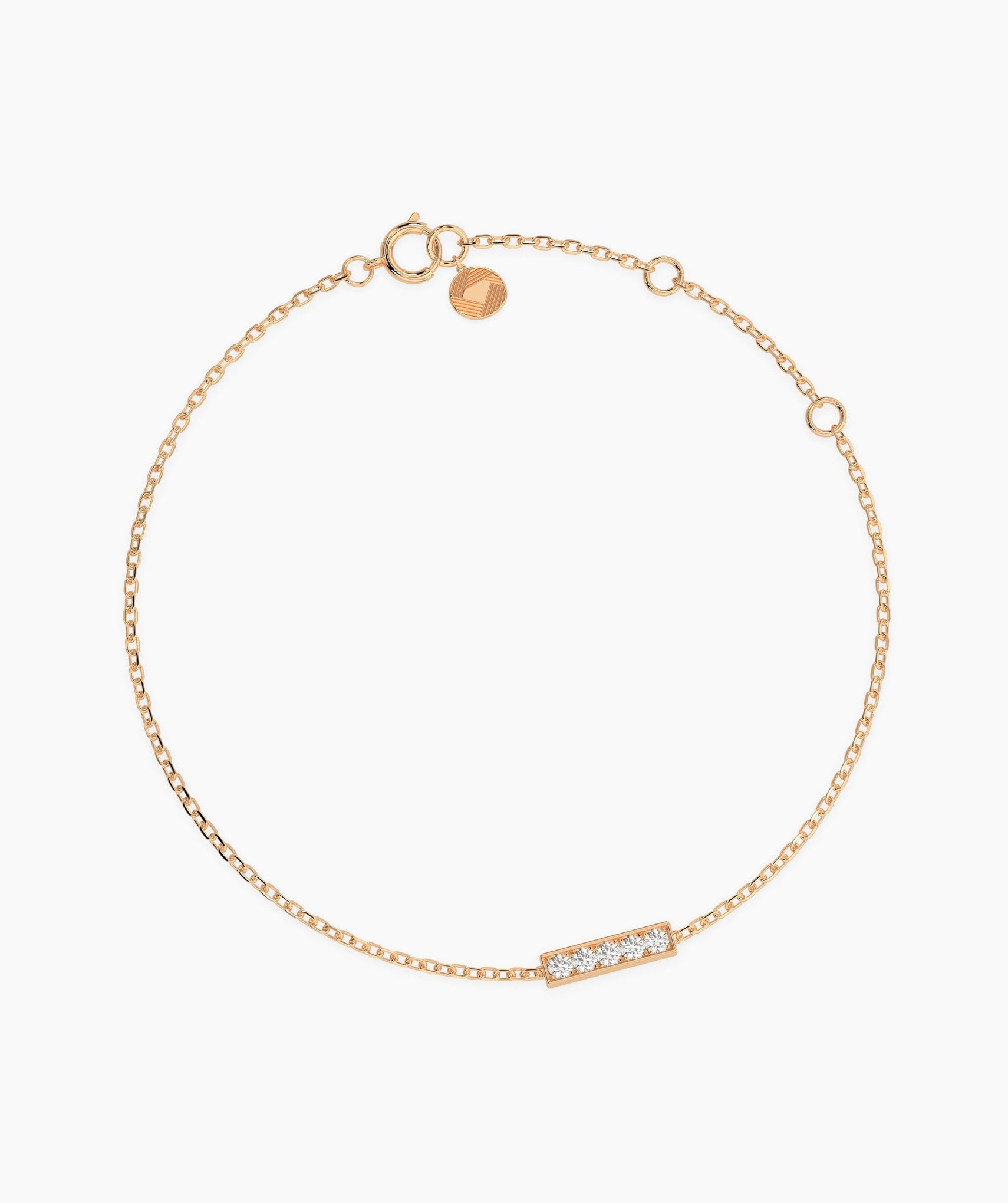 Crafted in 14K solid gold, this dainty chain bracelet showcases a stunning bar of shimmering diamonds.