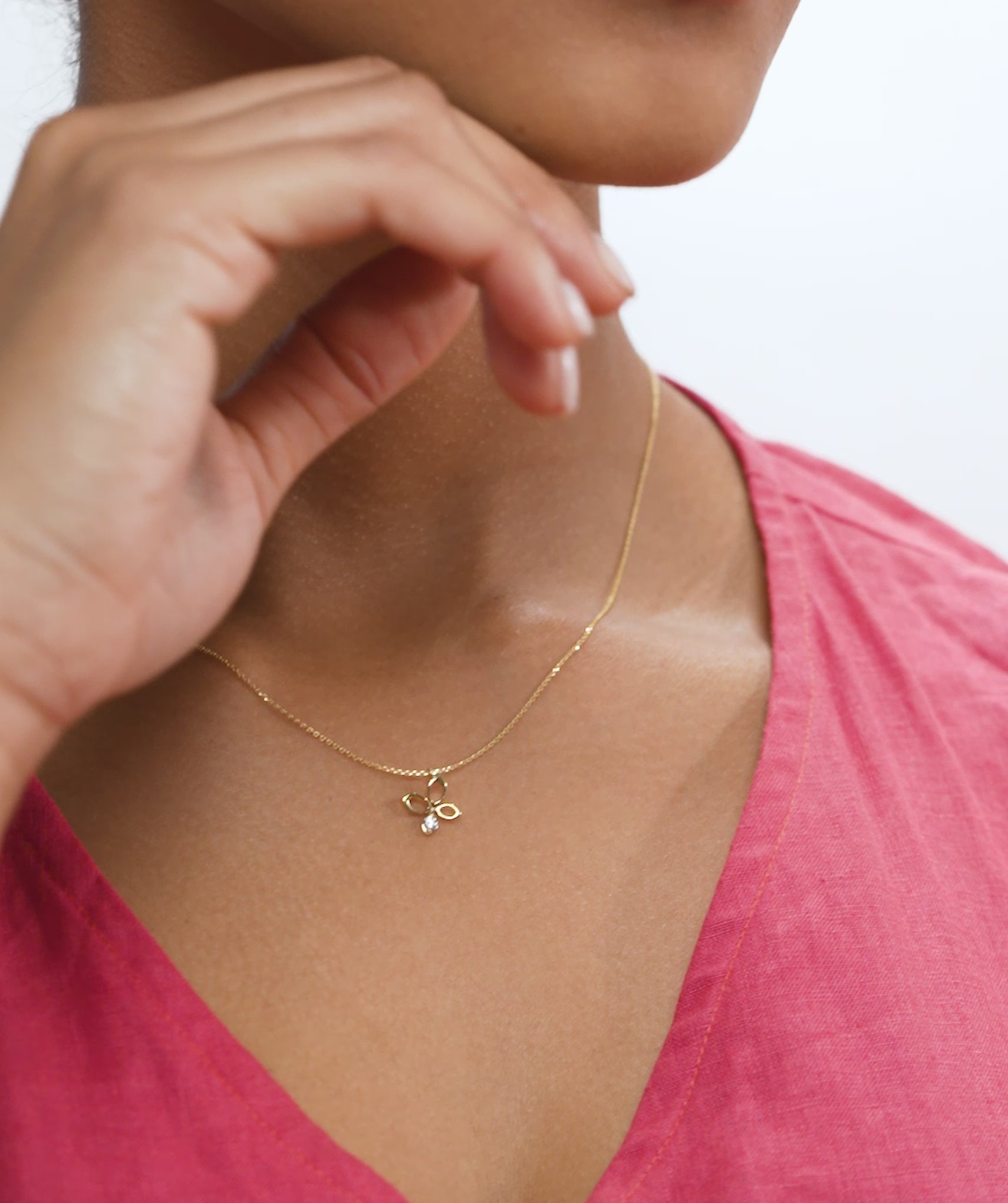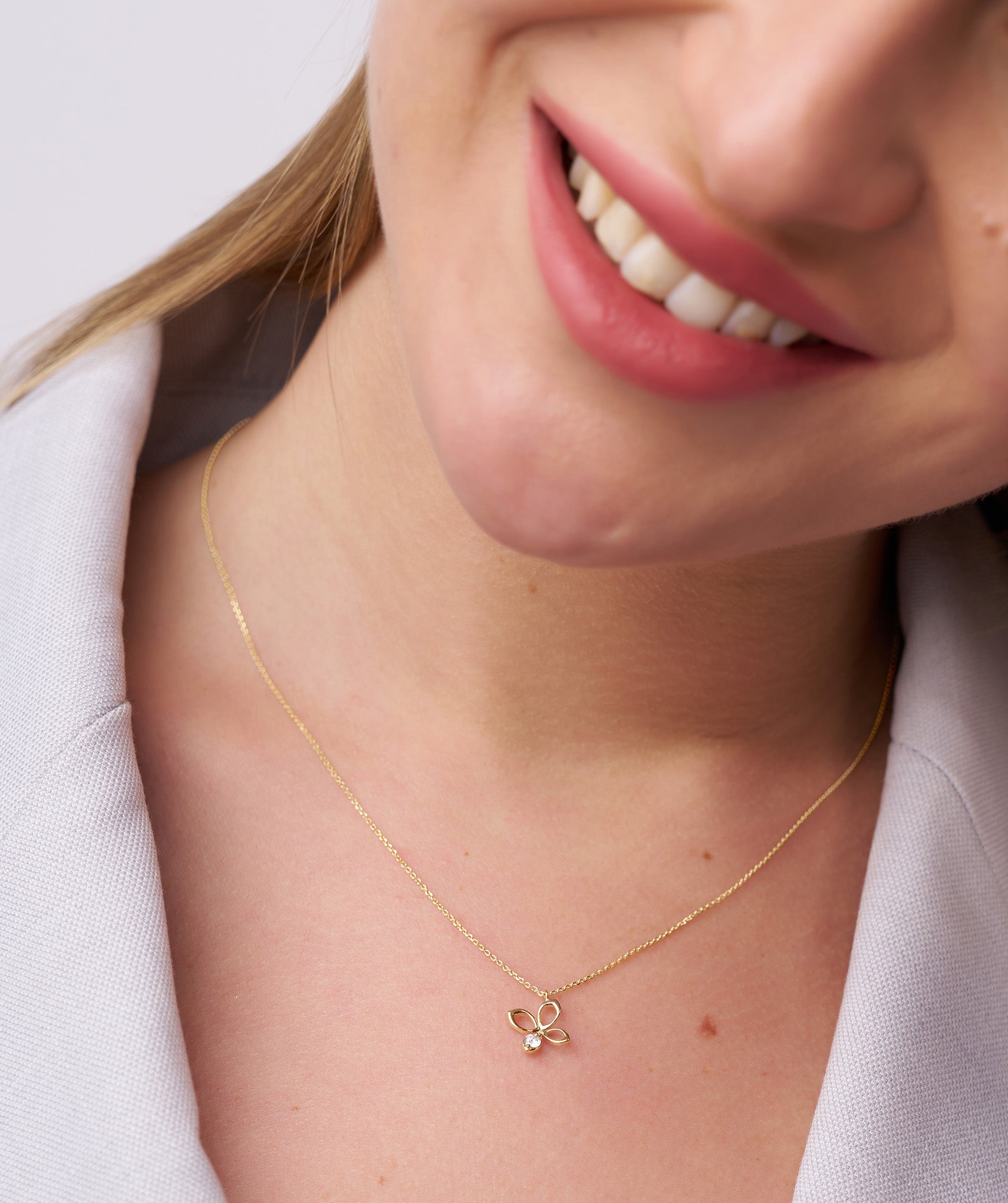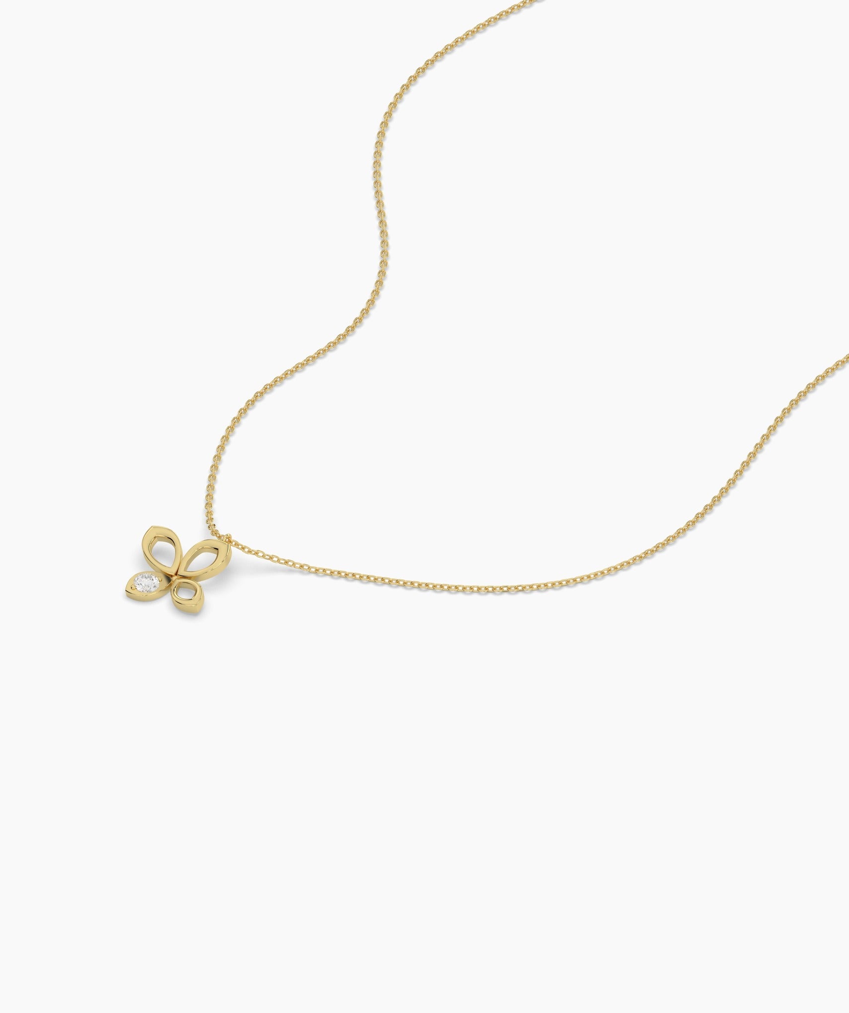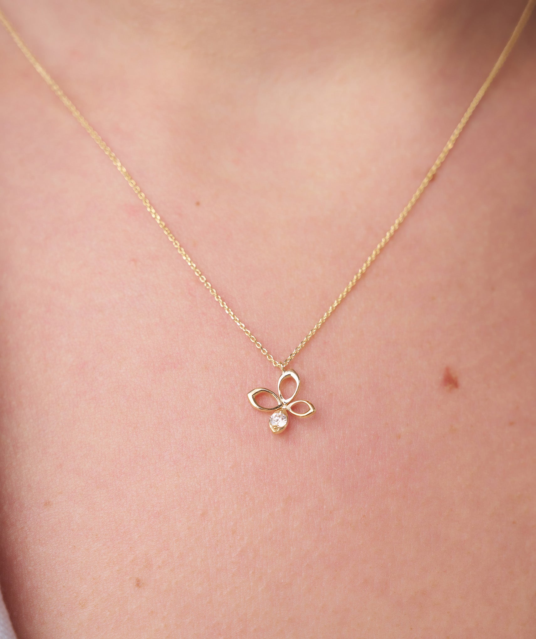 A modern take on a classic motif, this 14k gold butterfly necklace showcases a delicate design and a radiant gemstone for added charm.