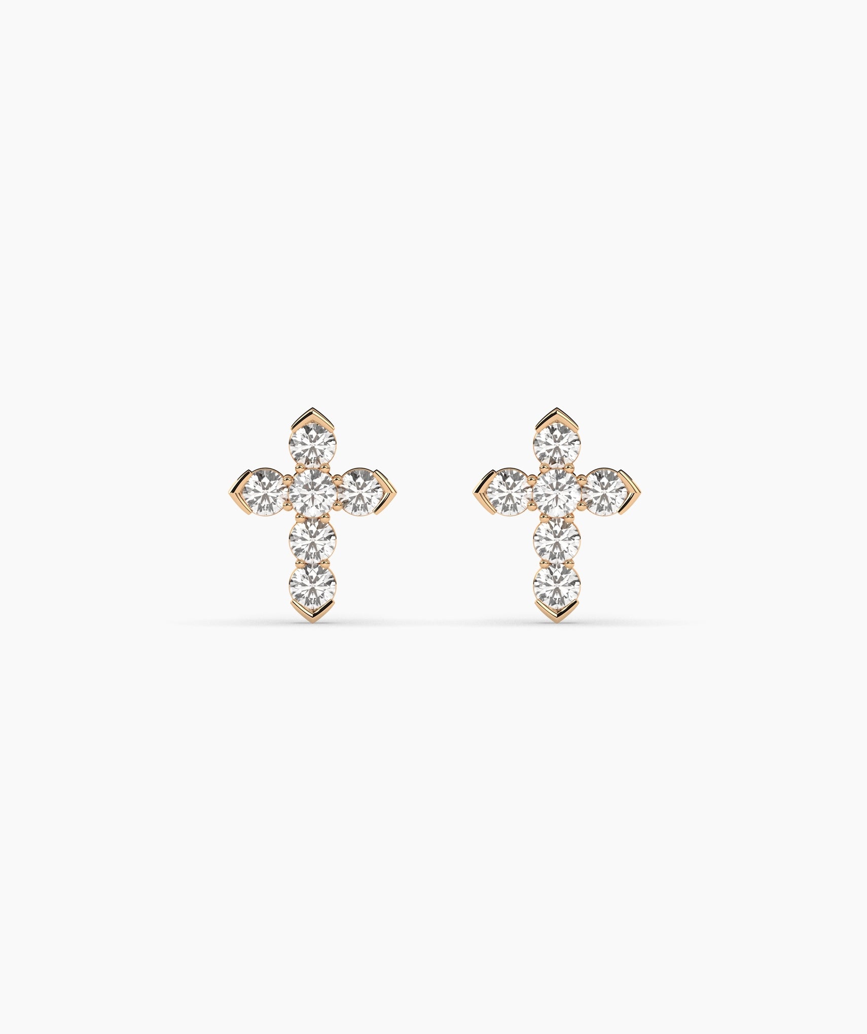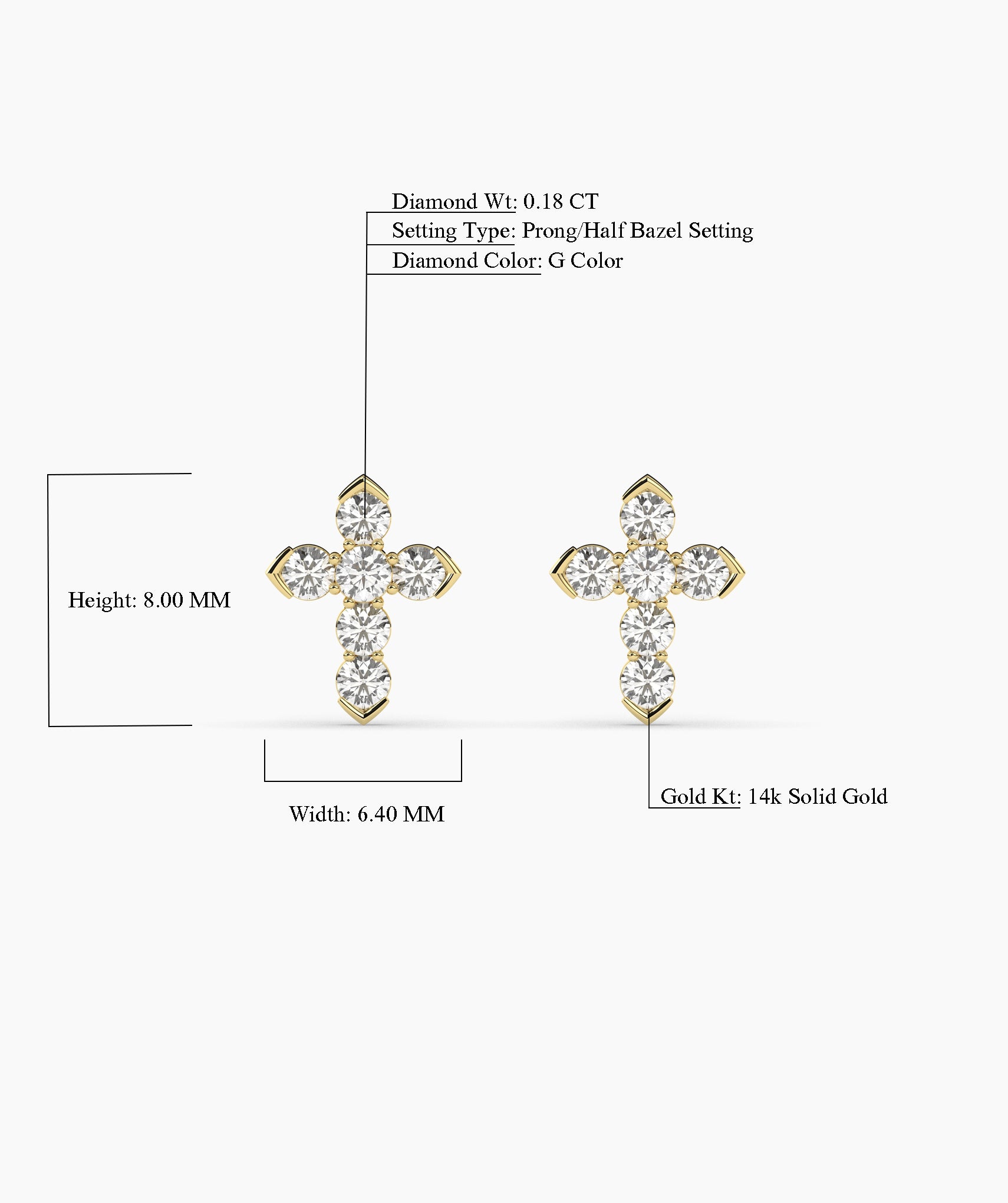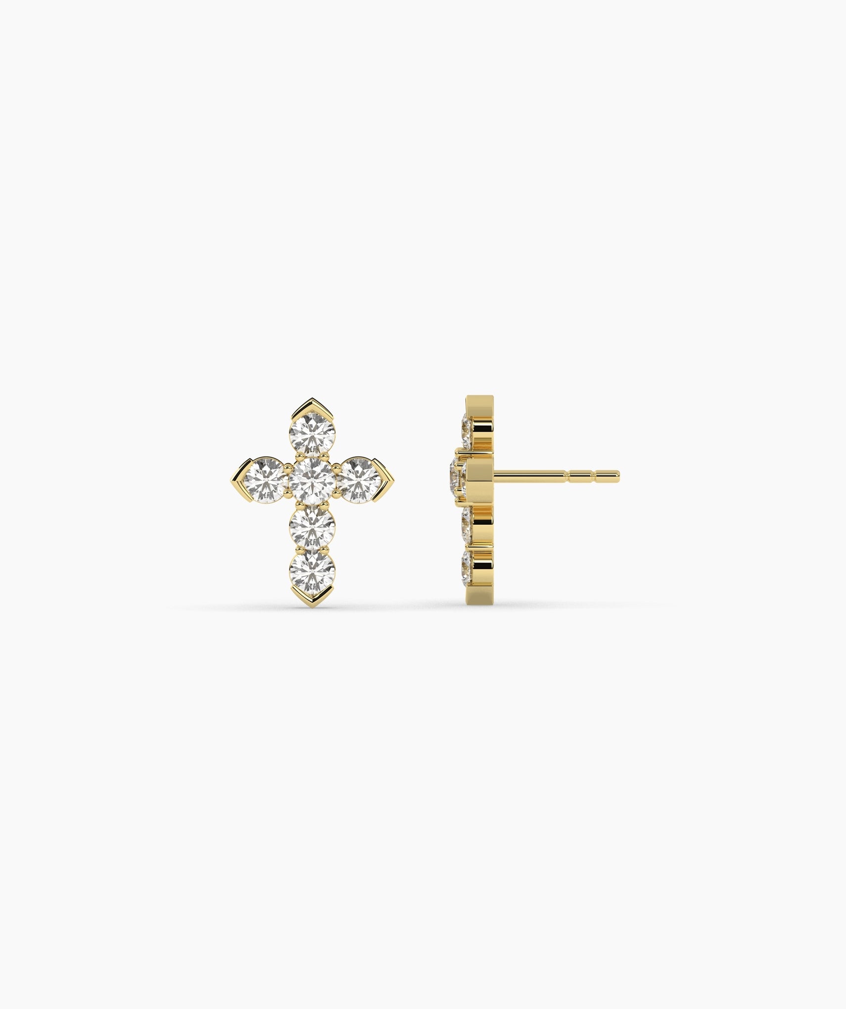 Delicately crafted in 14K yellow gold, these elegant cross stud earrings feature round brilliant-cut diamonds arranged in a classic cross silhouette. A perfect blend of faith and fashion, they make a meaningful statement piece for everyday wear or special occasions.