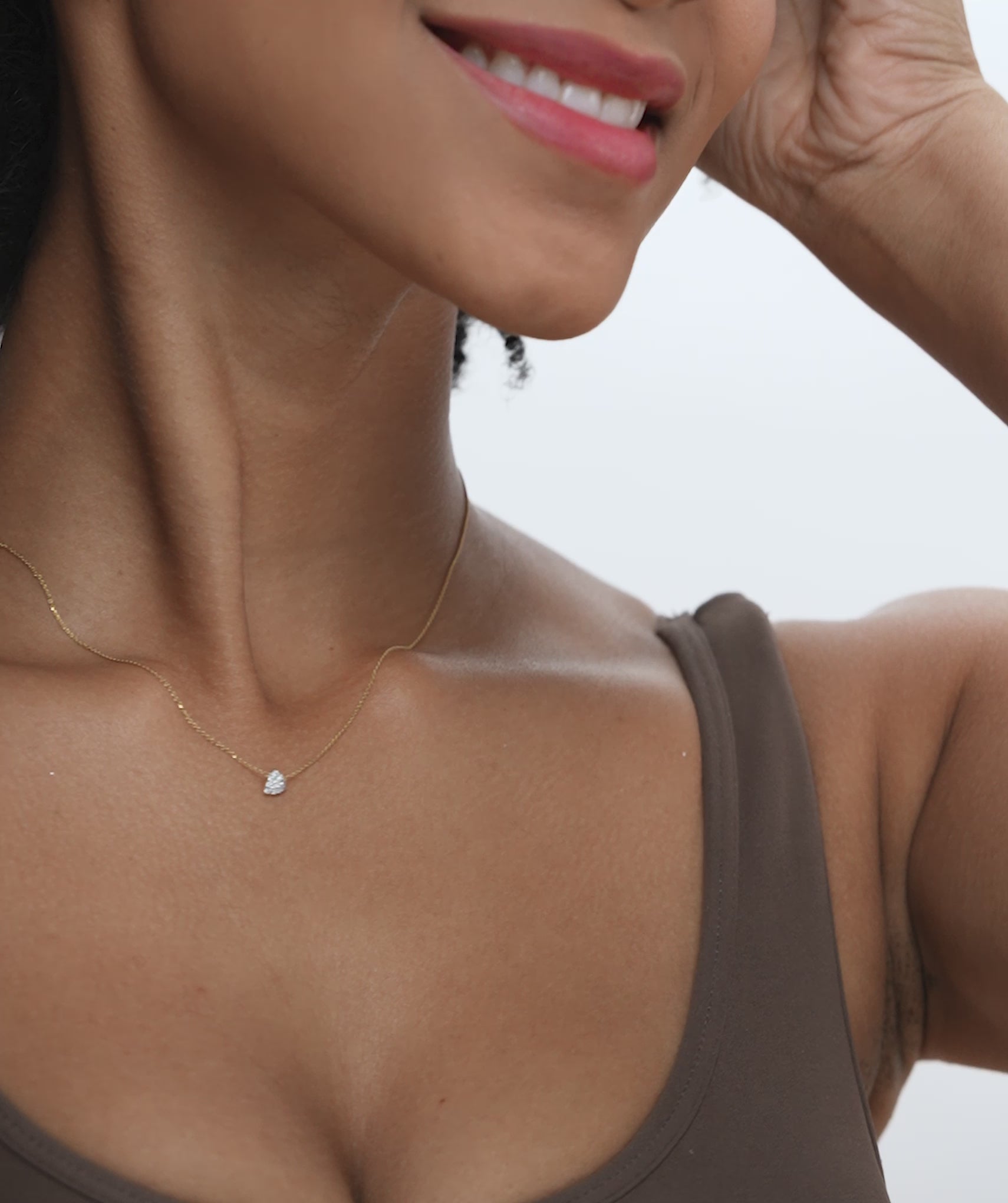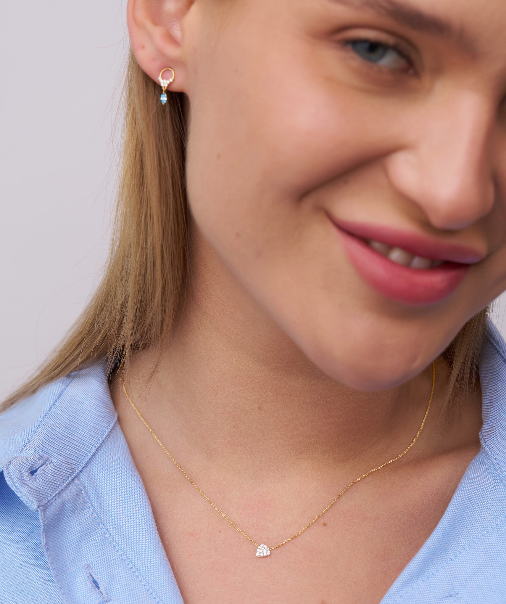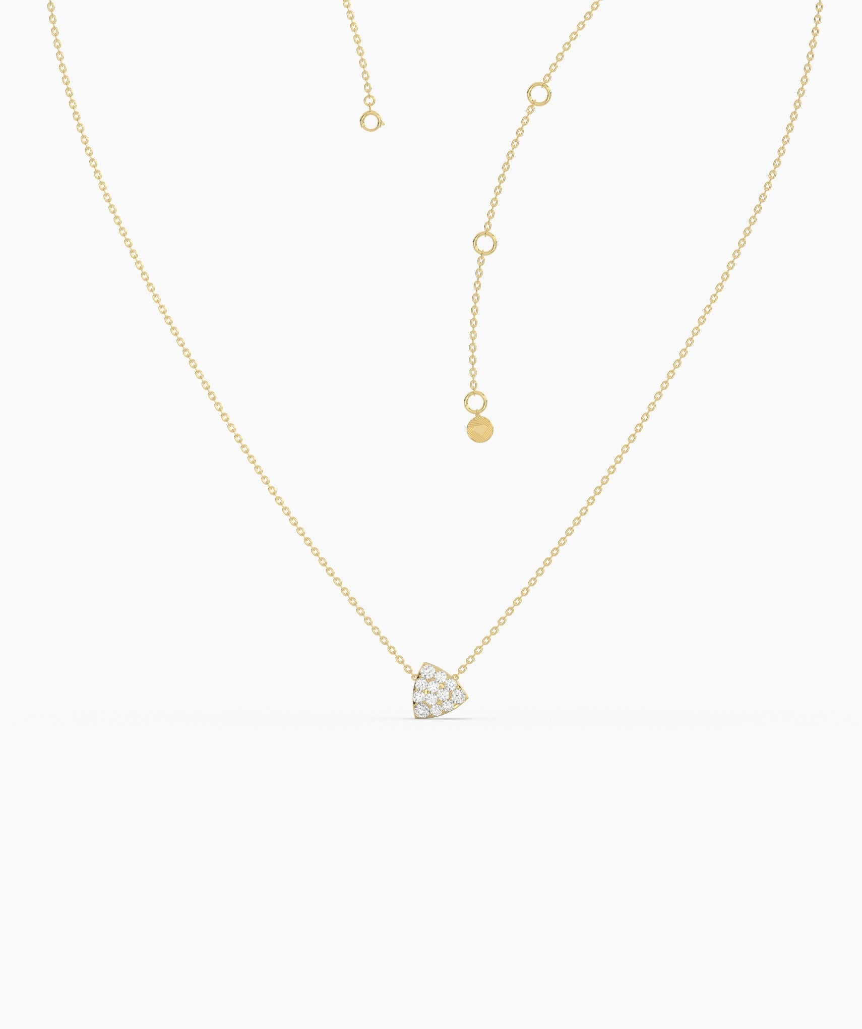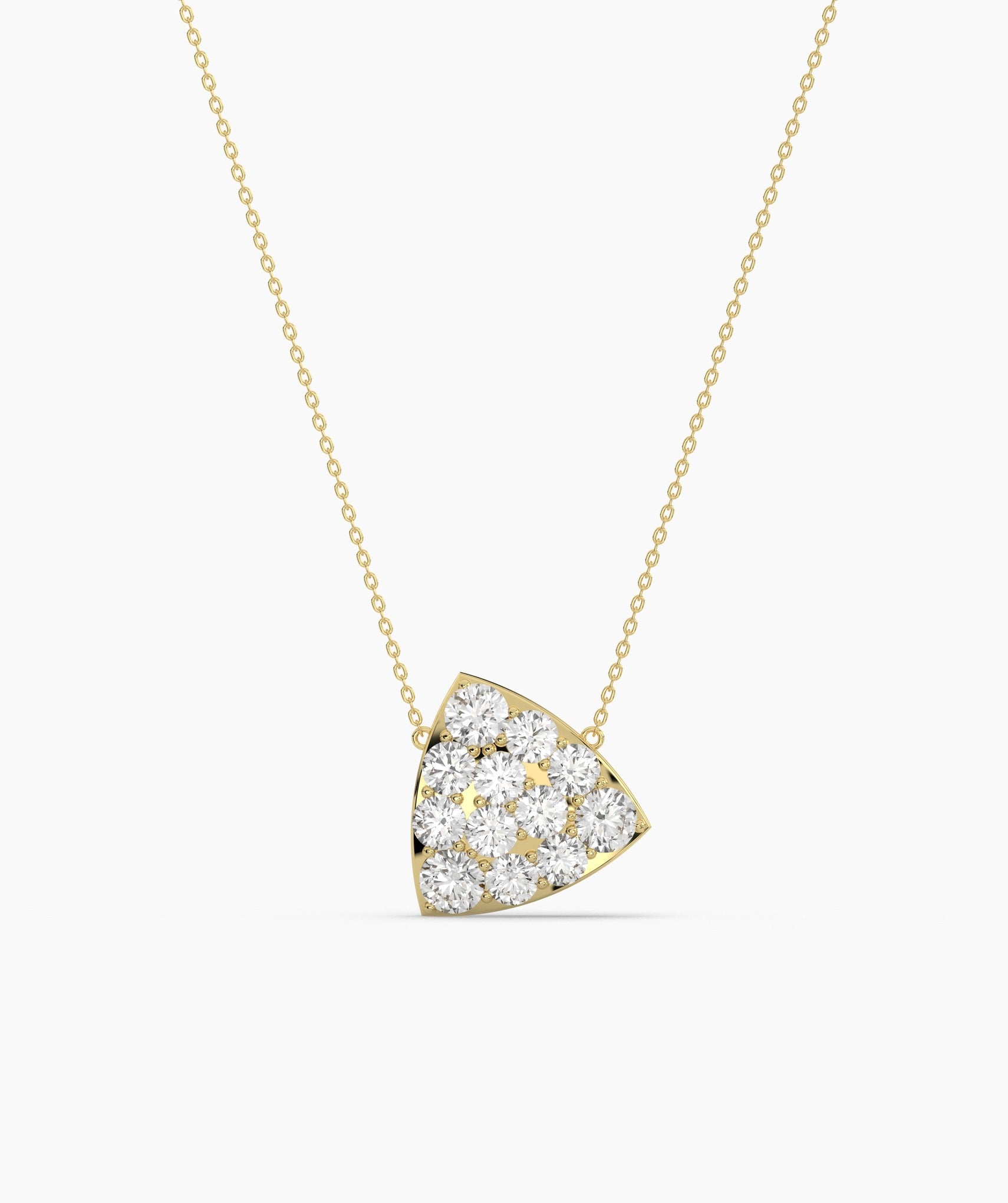 This elegant gold necklace features a unique trilliant-shaped pendant, beautifully set with radiant diamonds.