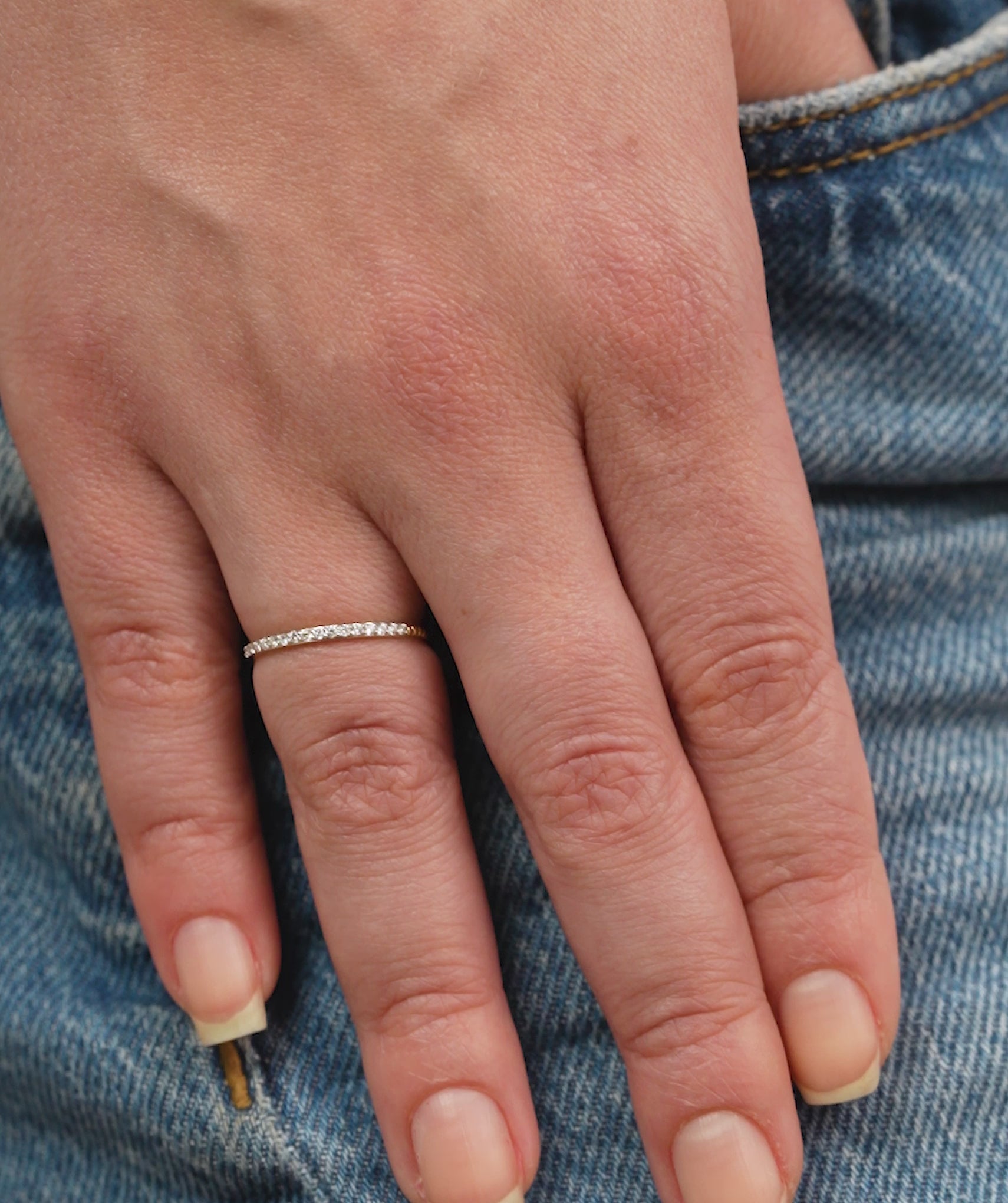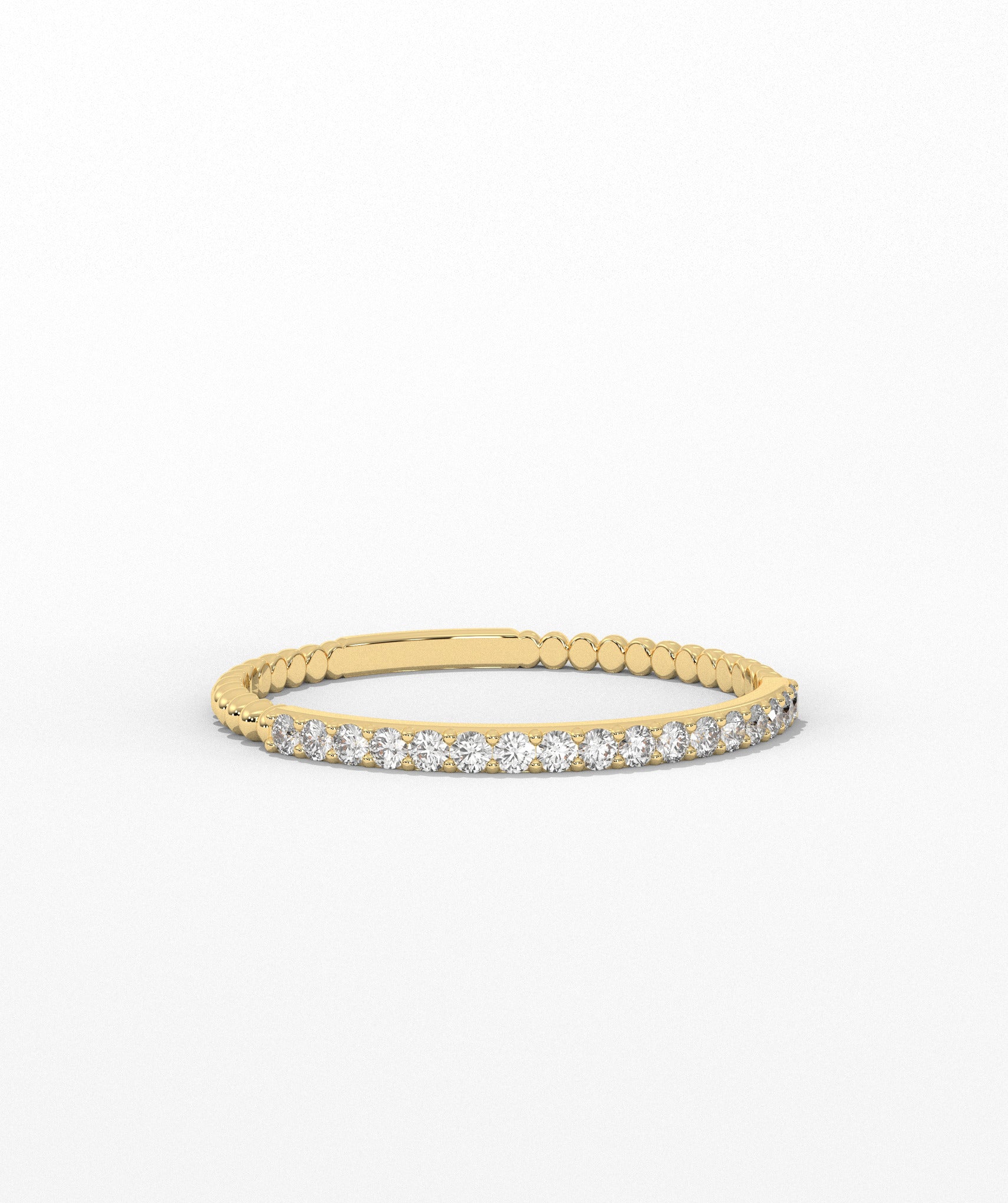Elevate your style with this slim gold ring, featuring a brilliant row of diamonds that catch the light at every turn.