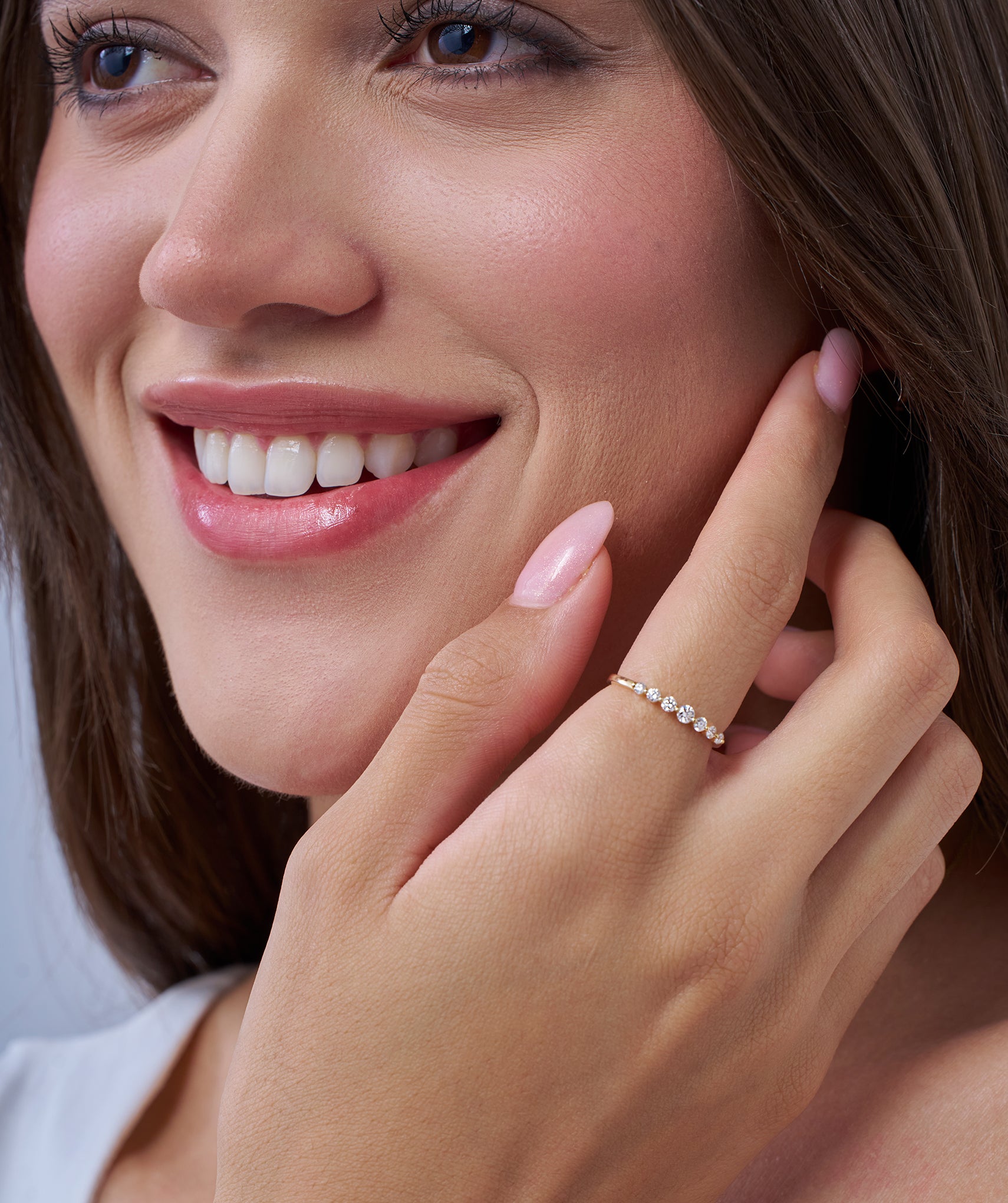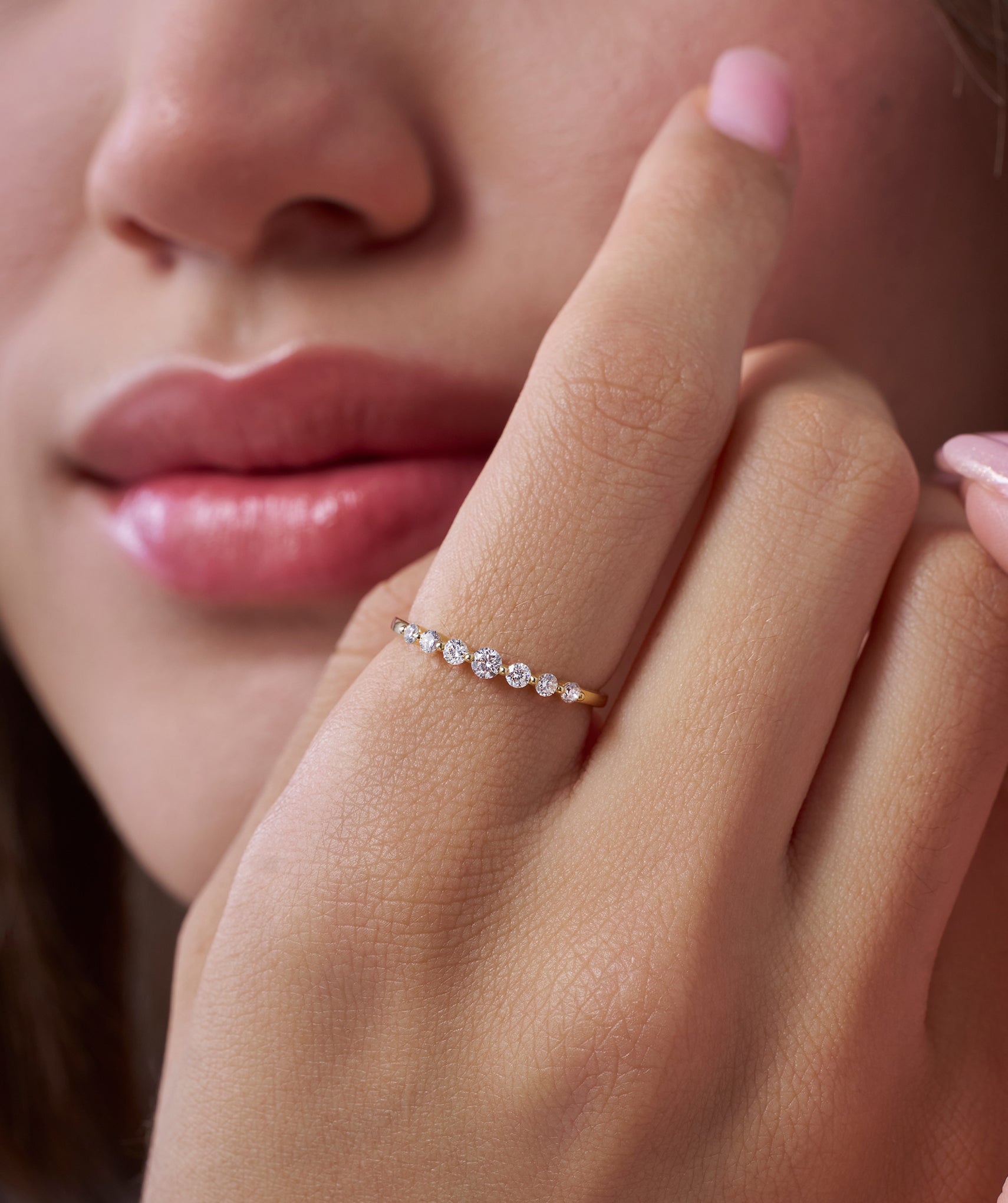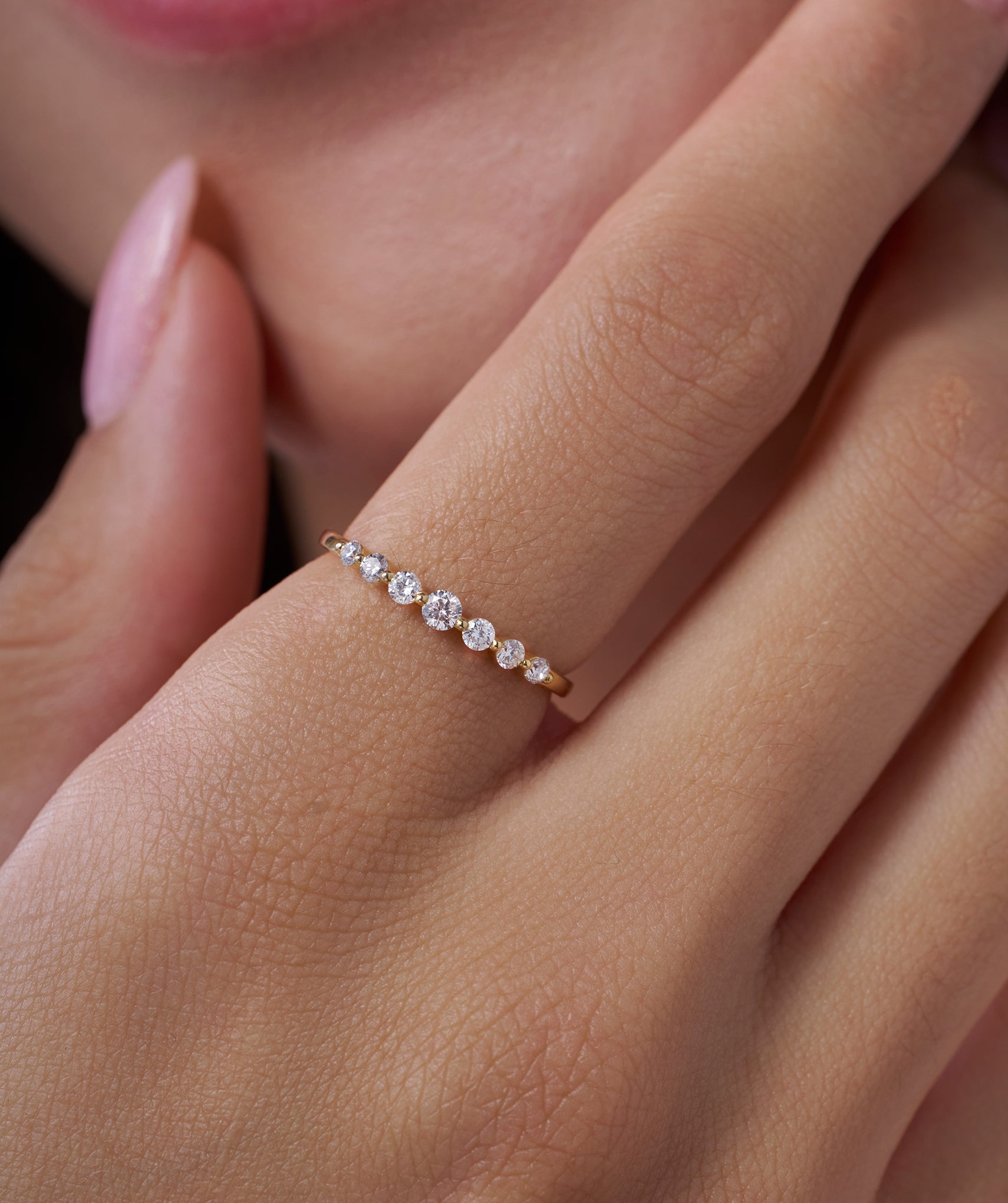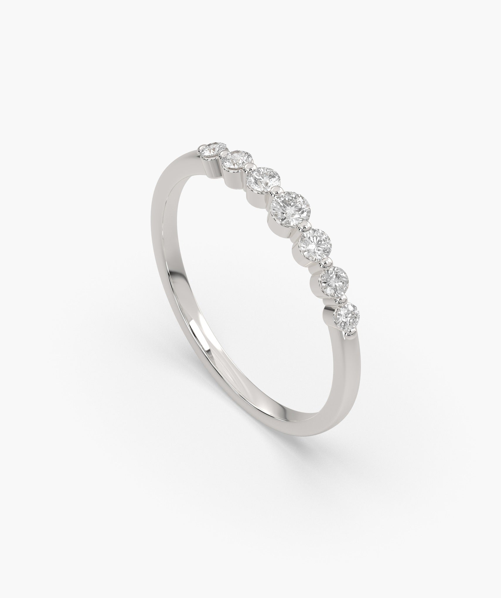 Delicately crafted in 14K white gold, this elegant stacking ring features a graduated row of round brilliant diamonds for a timeless and refined sparkle. Perfect for layering or wearing solo.