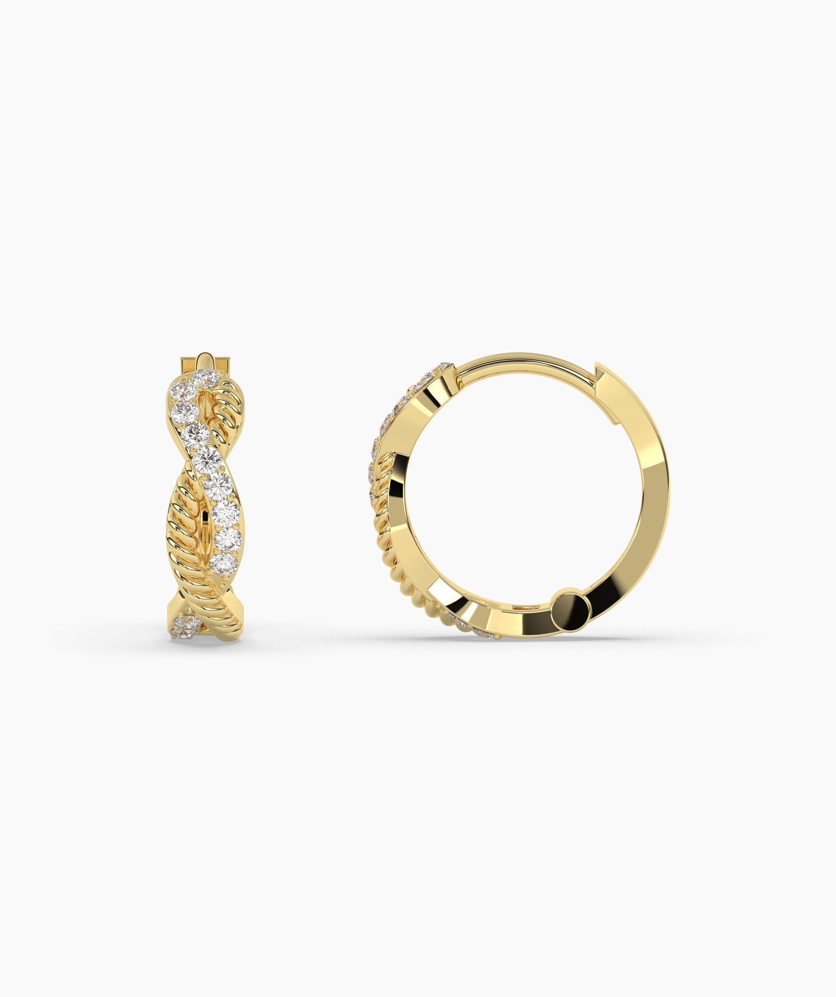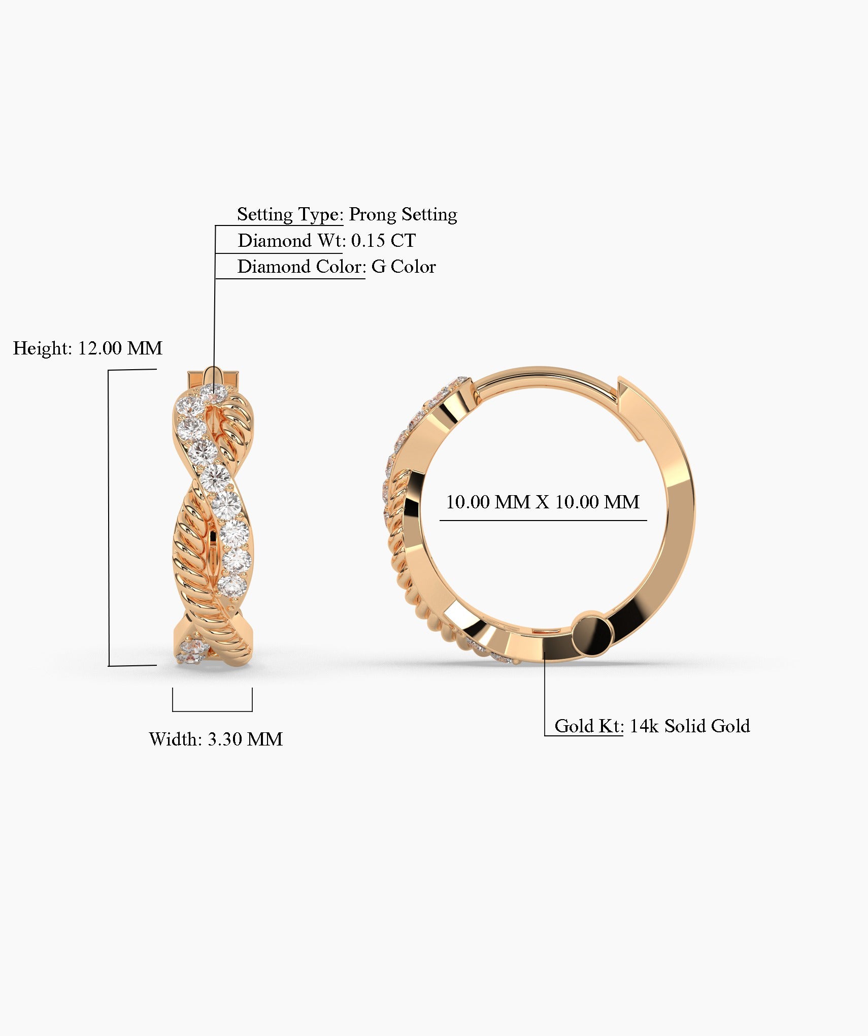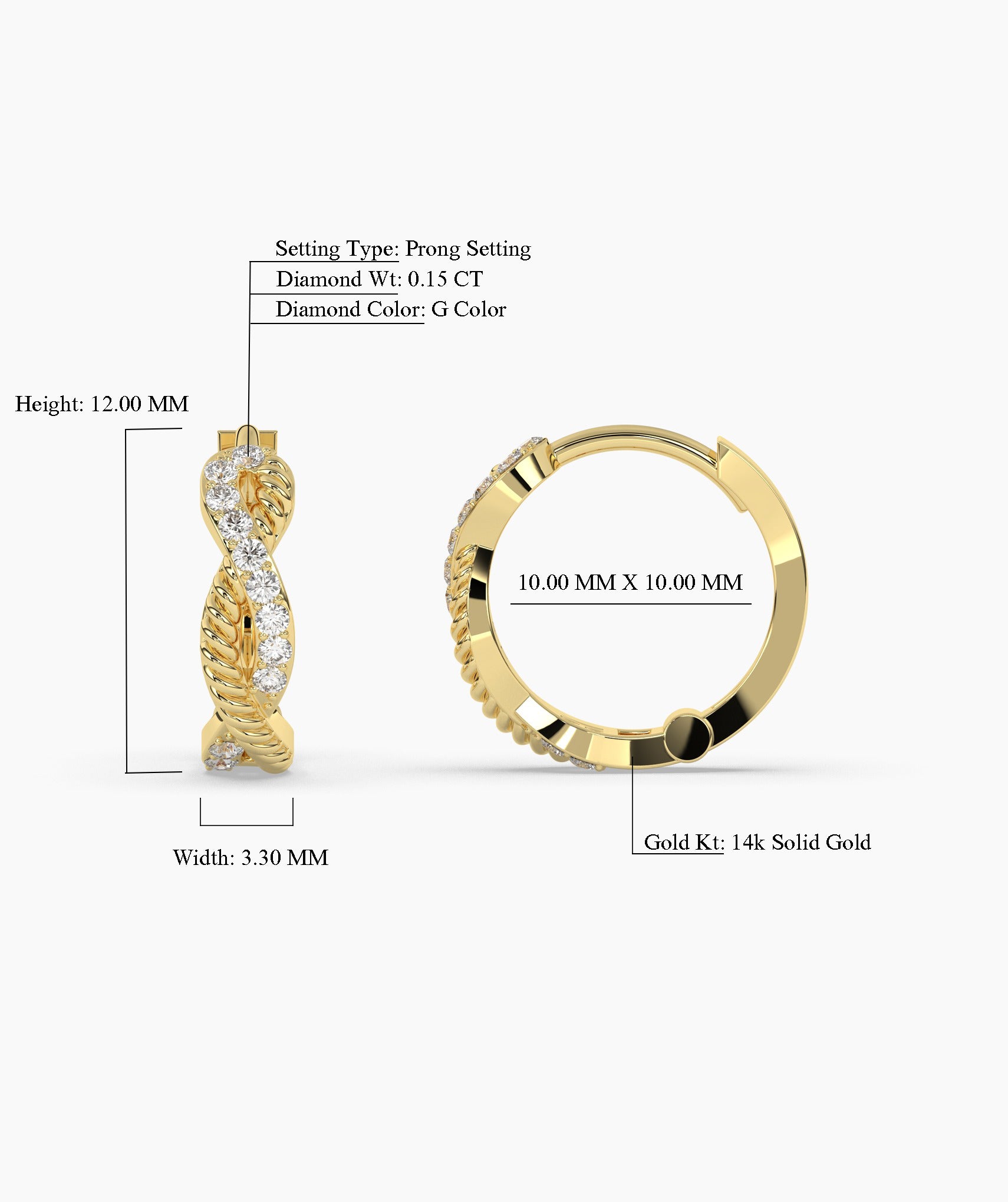 Elevate your style with these stunning 14K solid gold earrings, featuring a unique twist design adorned with sparkling diamonds.