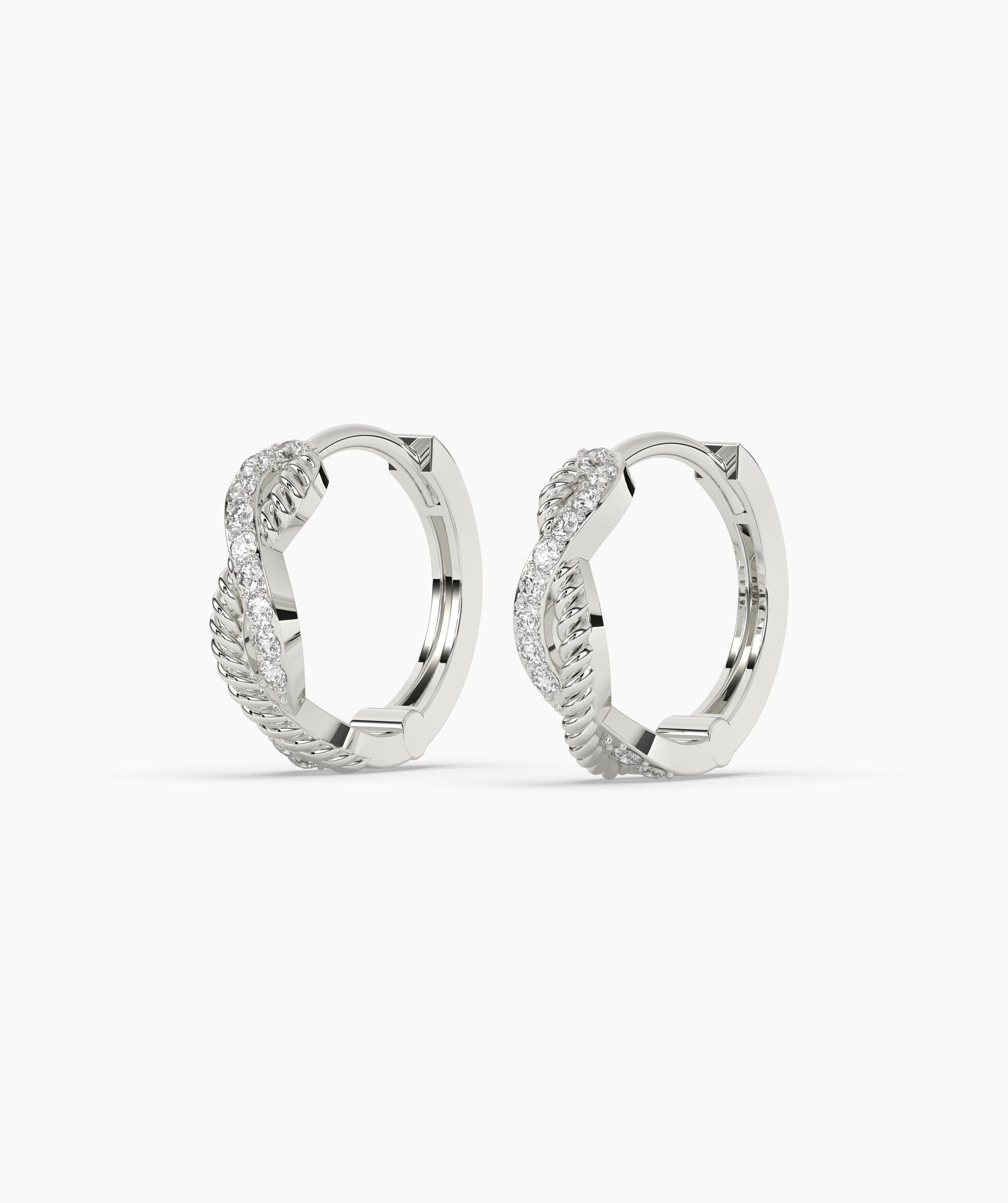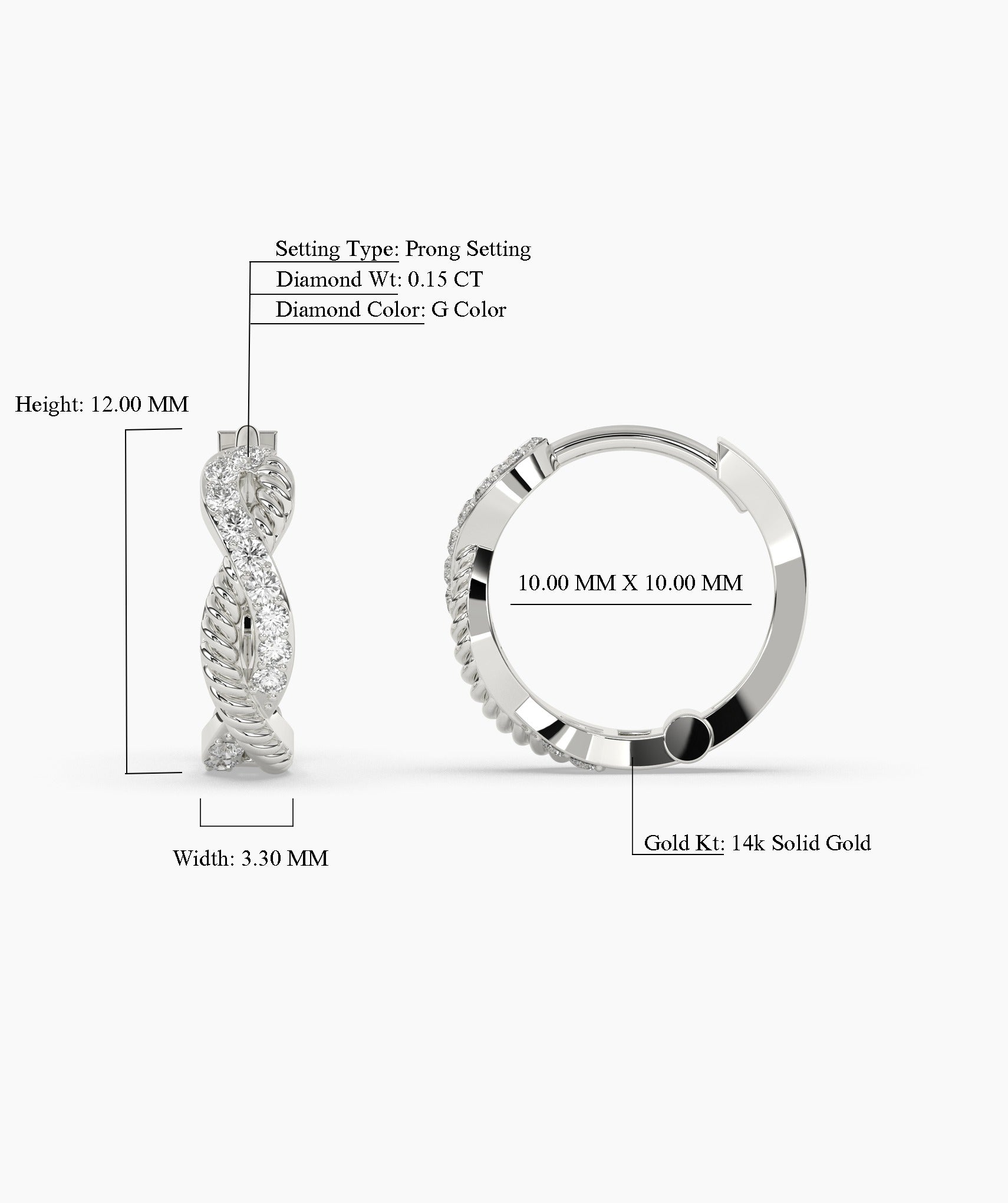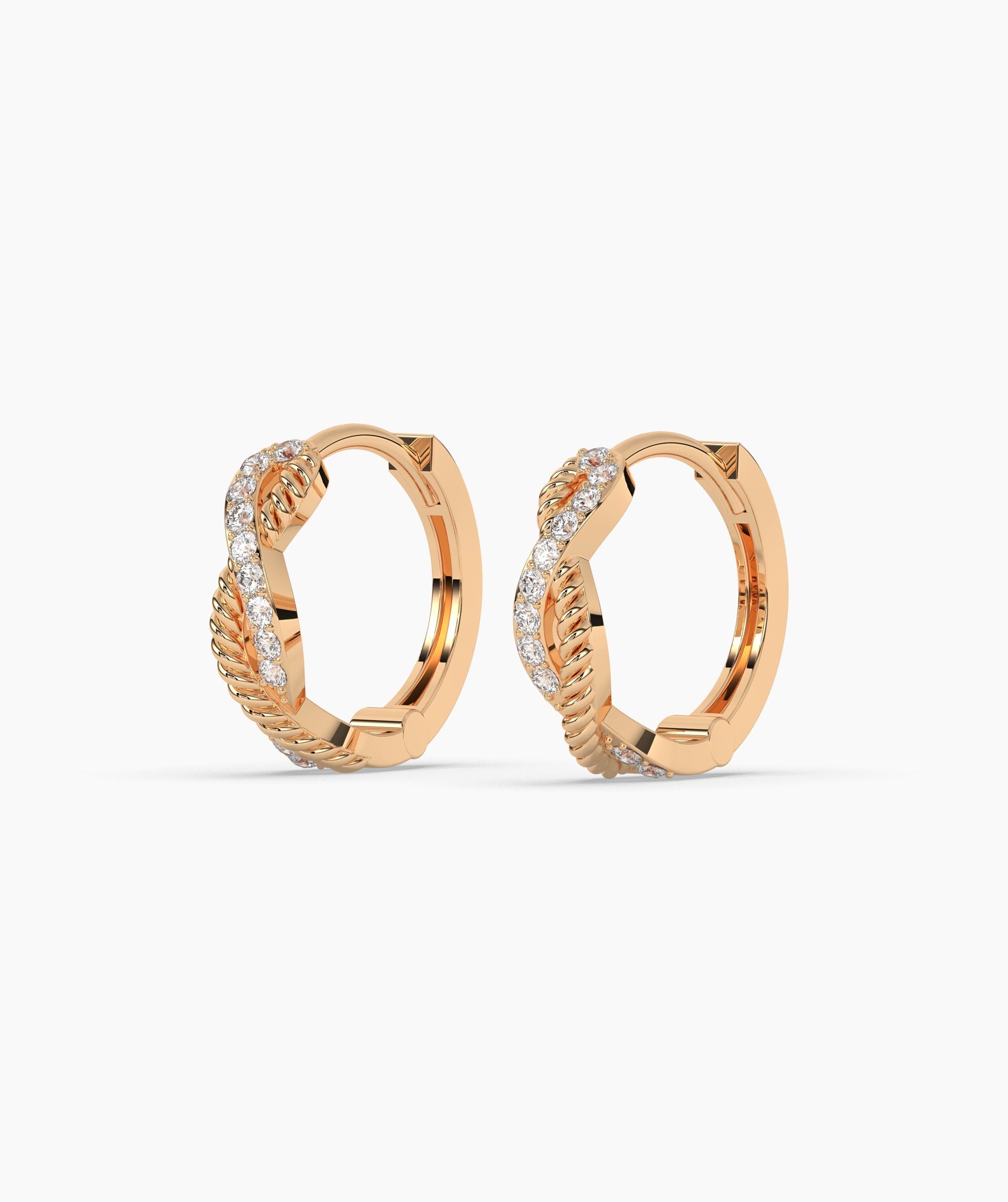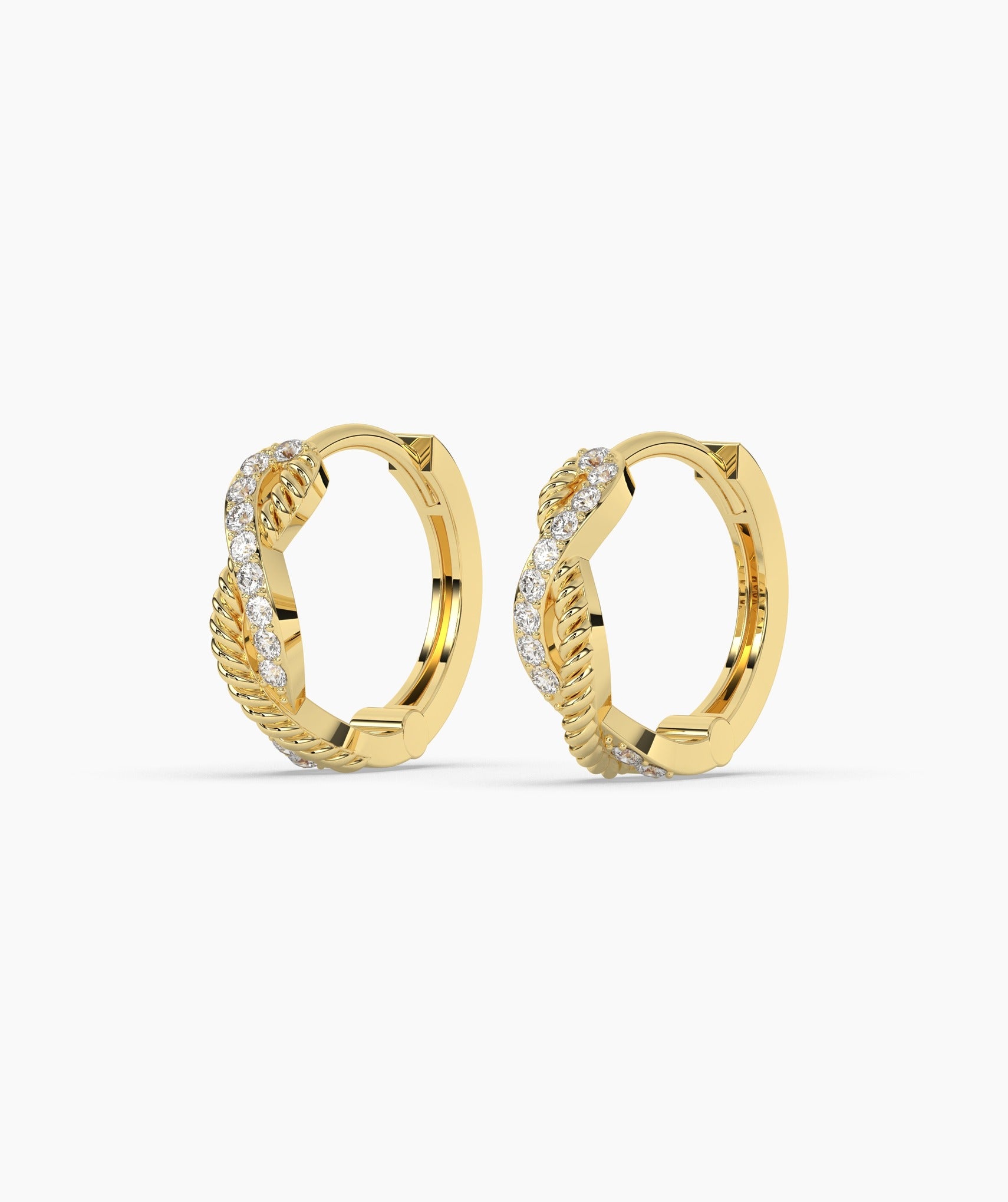 Elevate your style with these stunning 14K solid gold earrings, featuring a unique twist design adorned with sparkling diamonds.