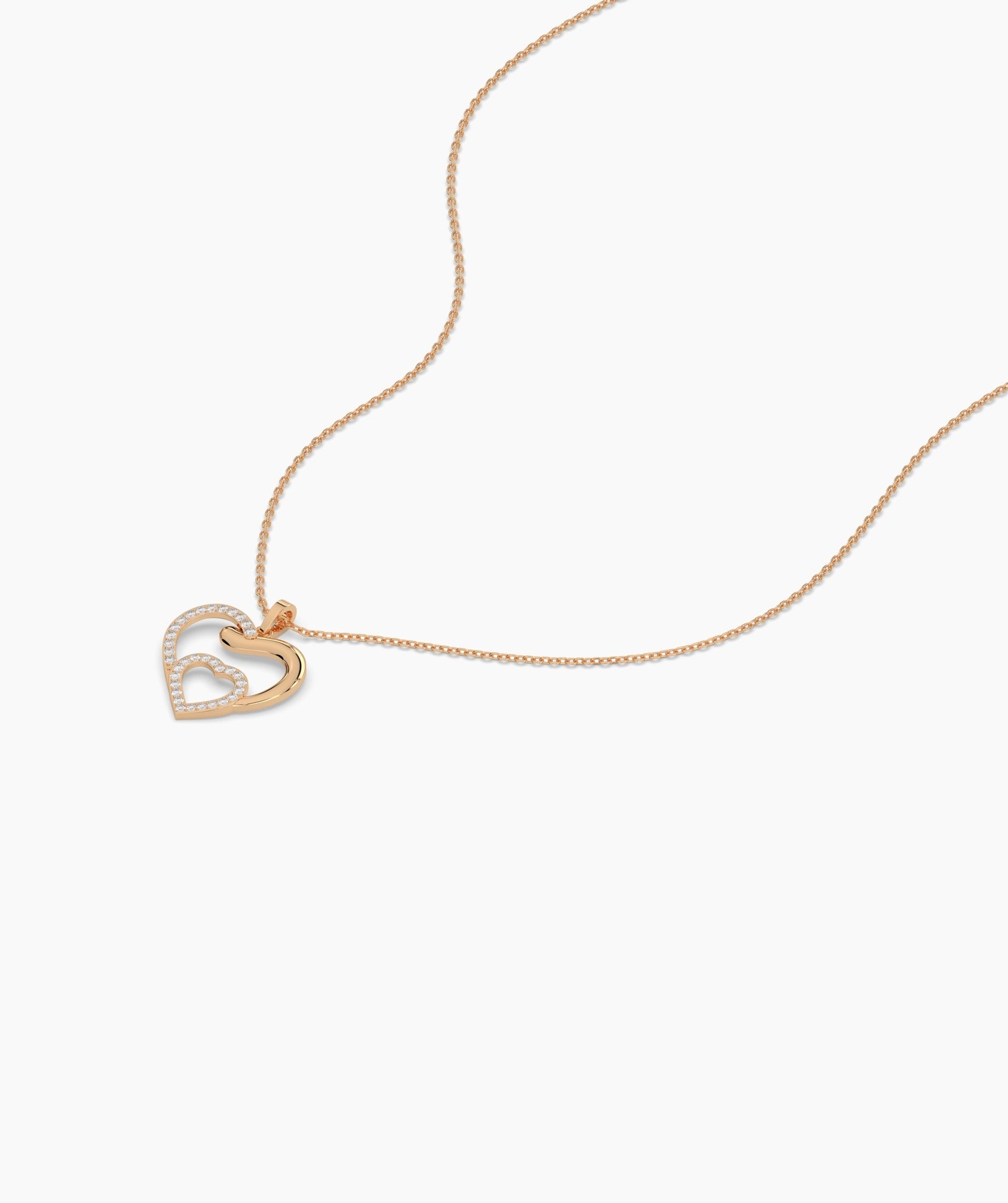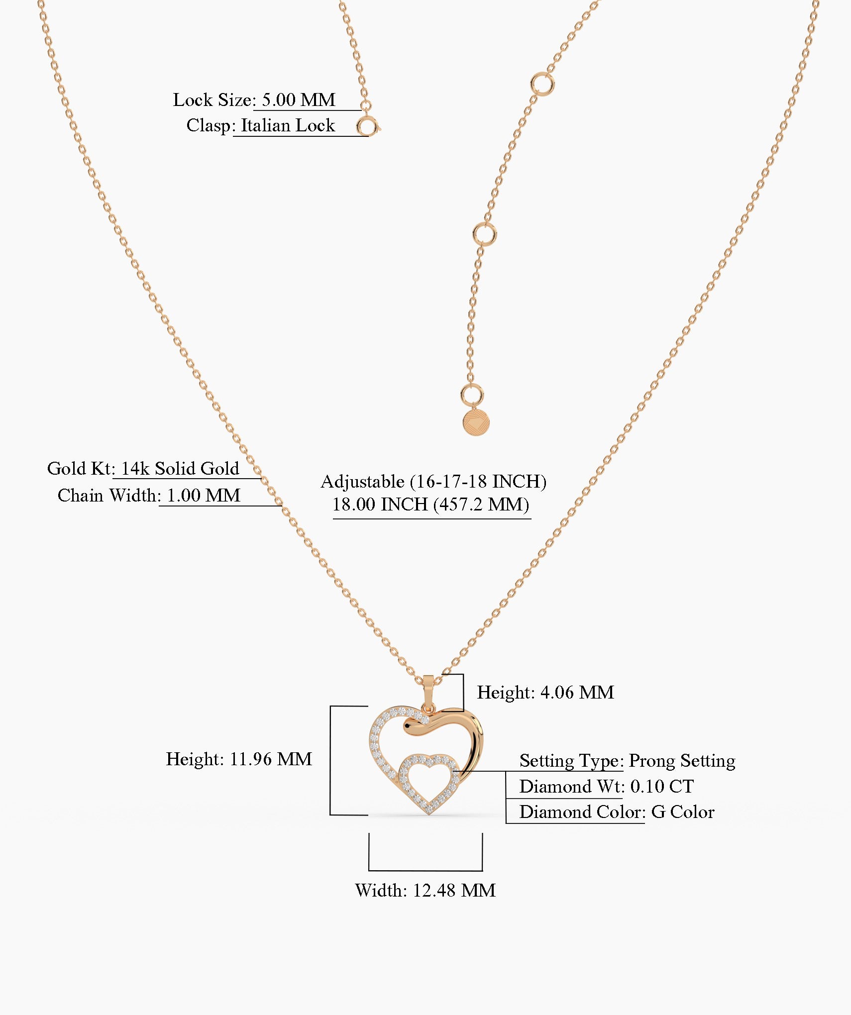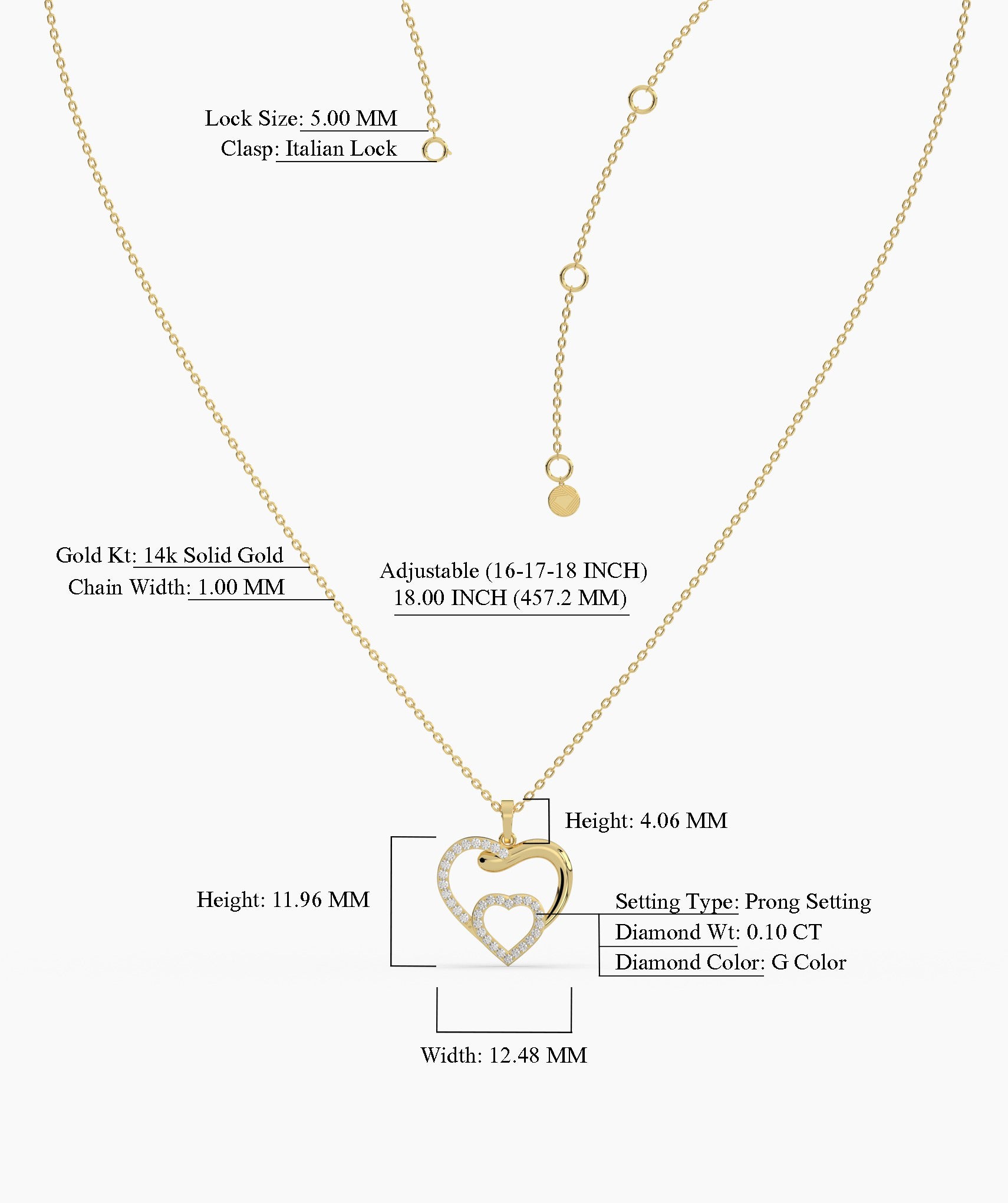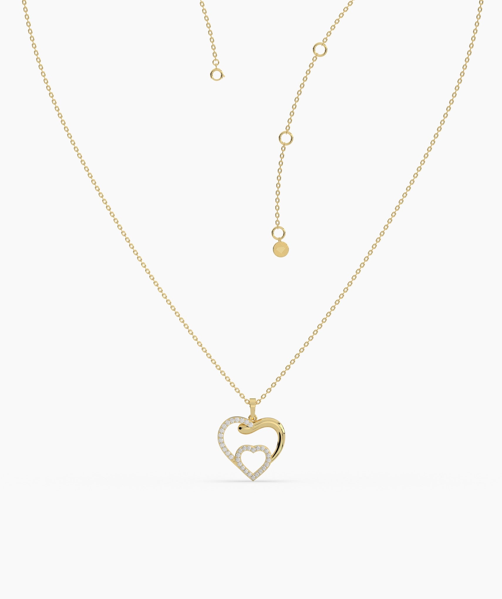 Embrace elegance with this 14K solid gold pendant, designed with two radiant hearts that capture the essence of enduring love.
