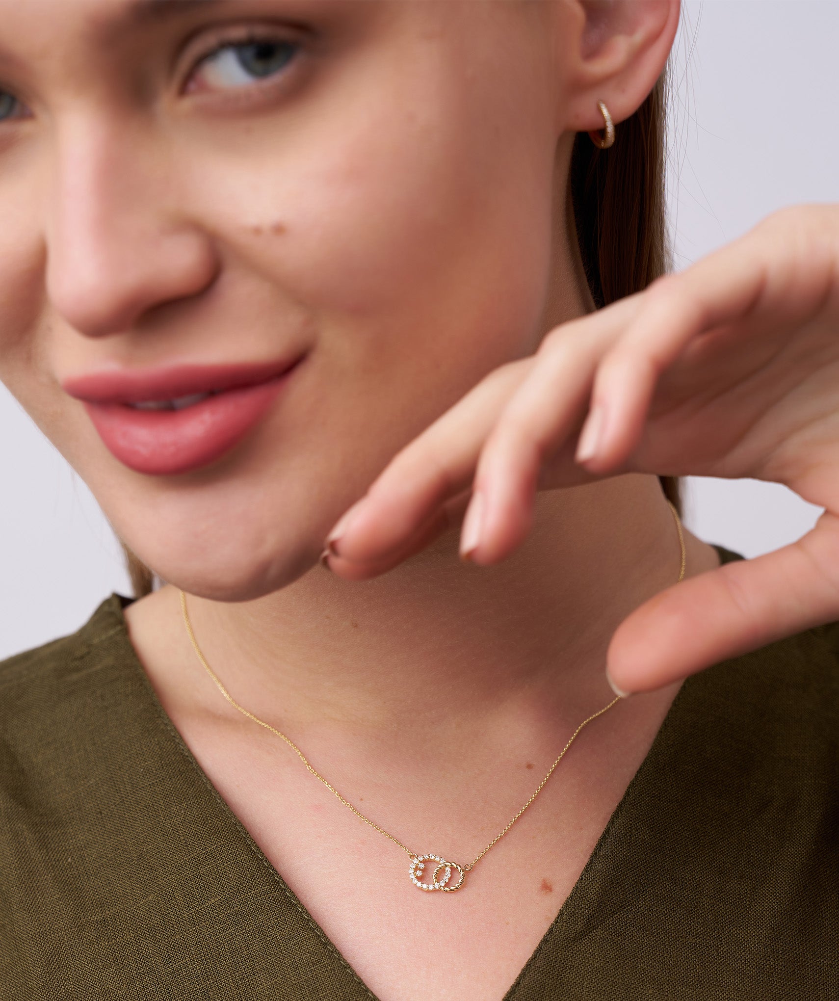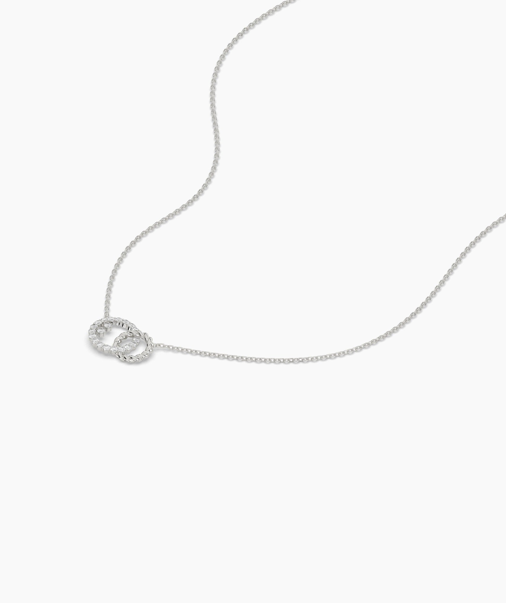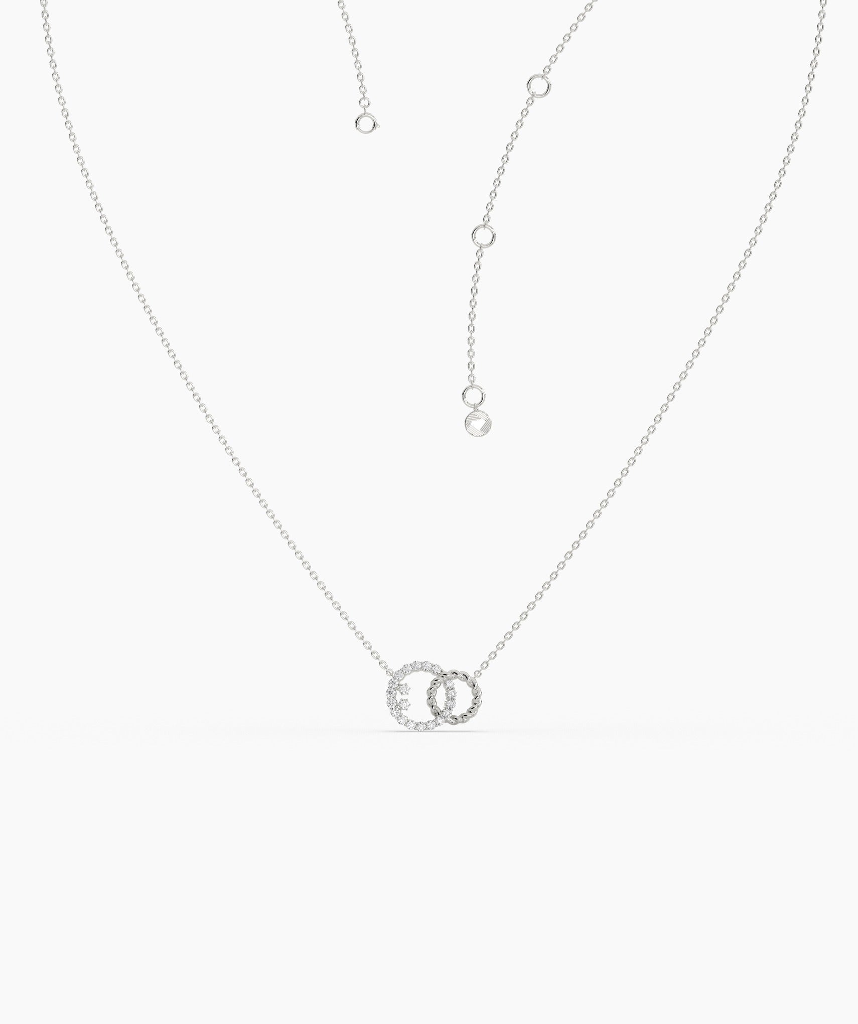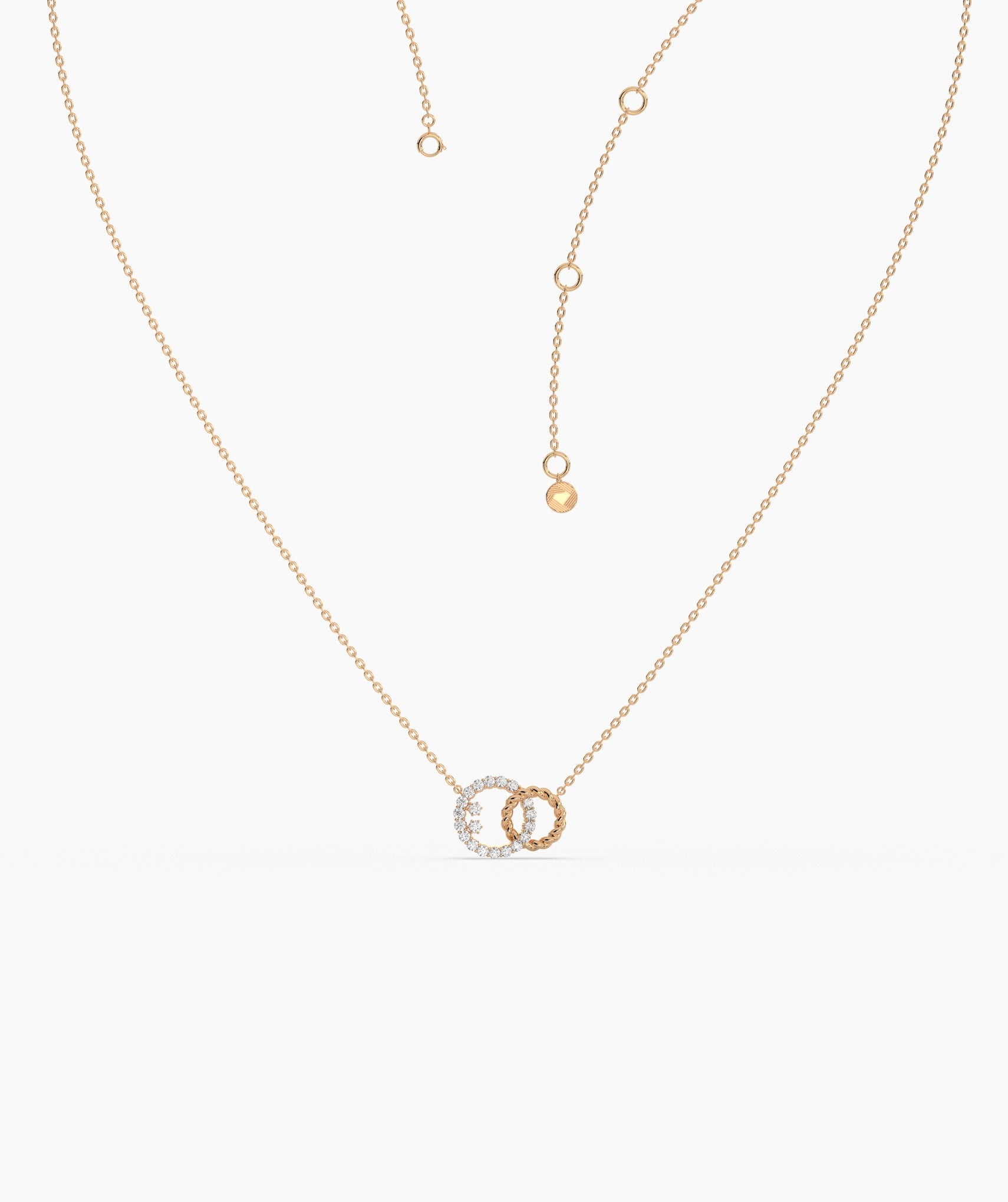 Elevate your everyday style with interlinked circles in solid 14k gold: one shimmering with diamonds, the other in a sleek rope finish.