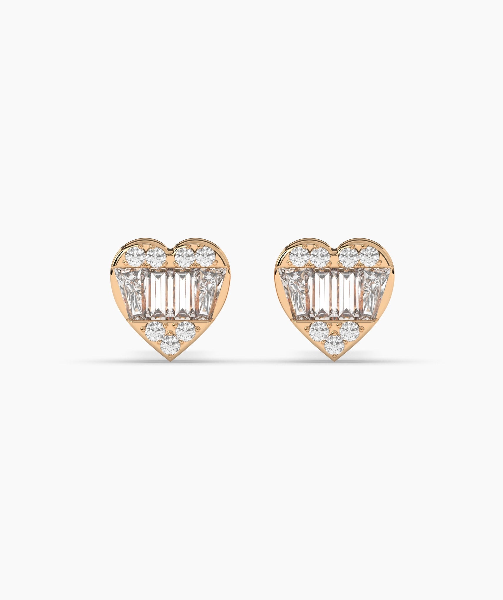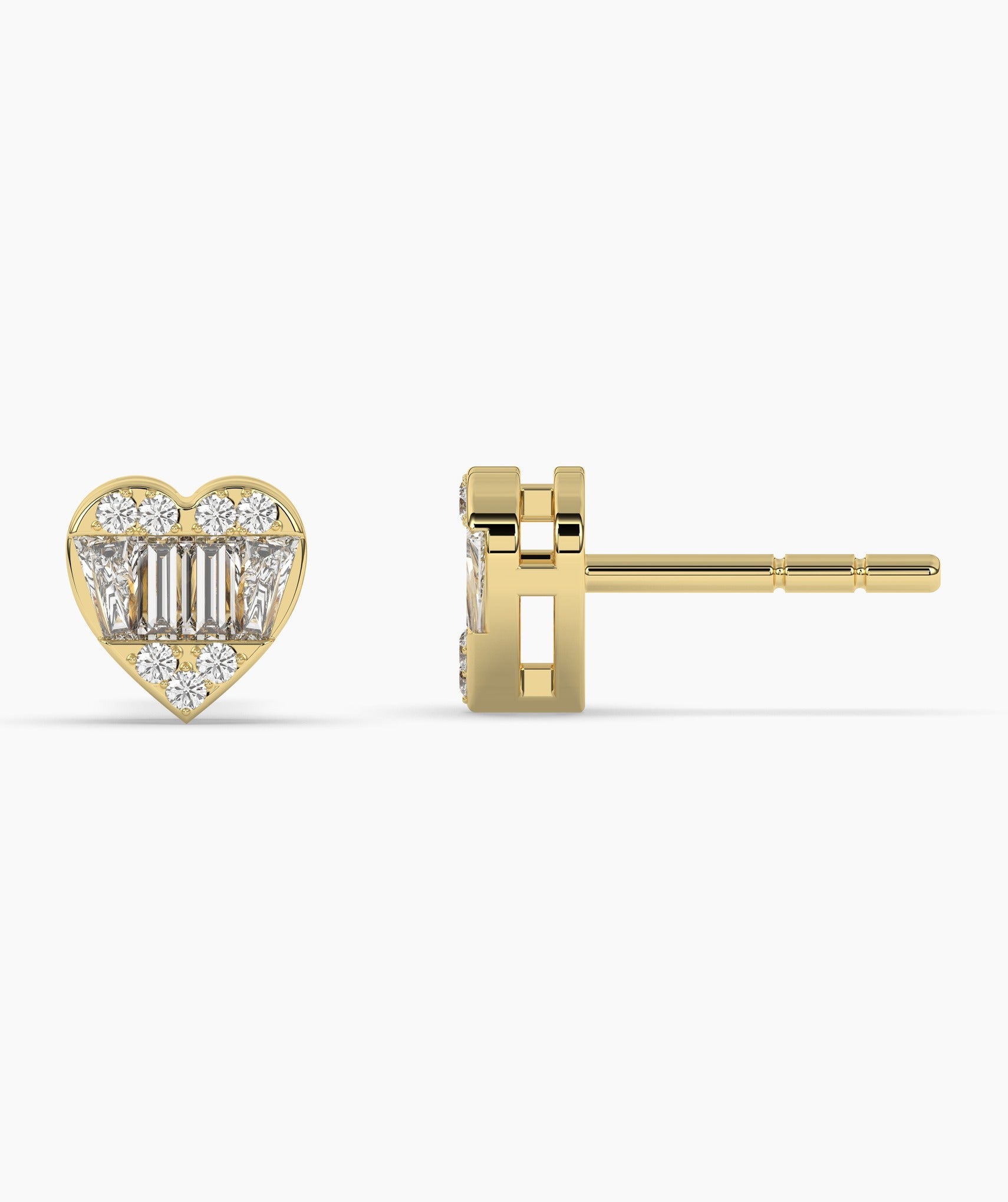 A romantic expression of elegance, these 14K gold heart earrings showcase dazzling diamonds in a sophisticated design.