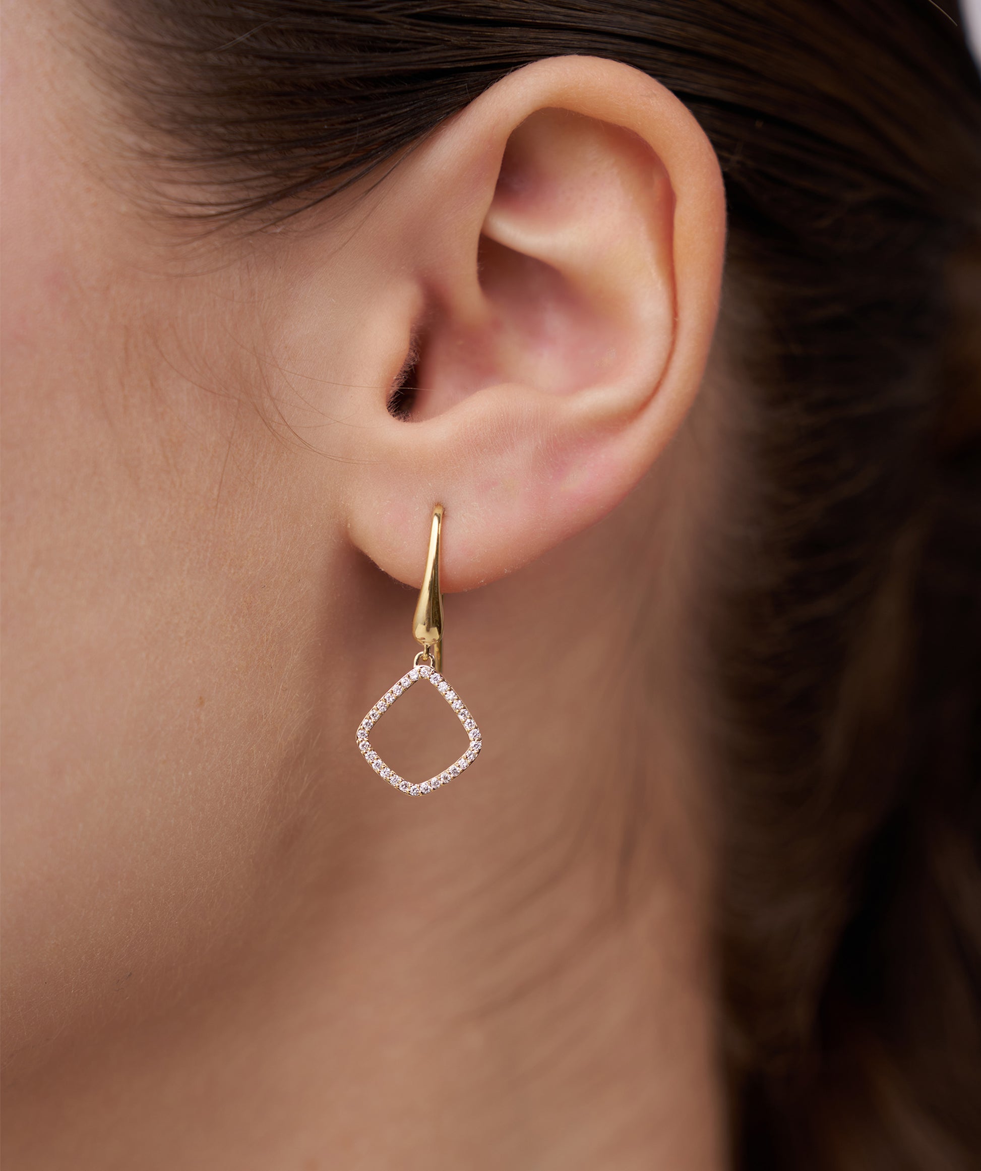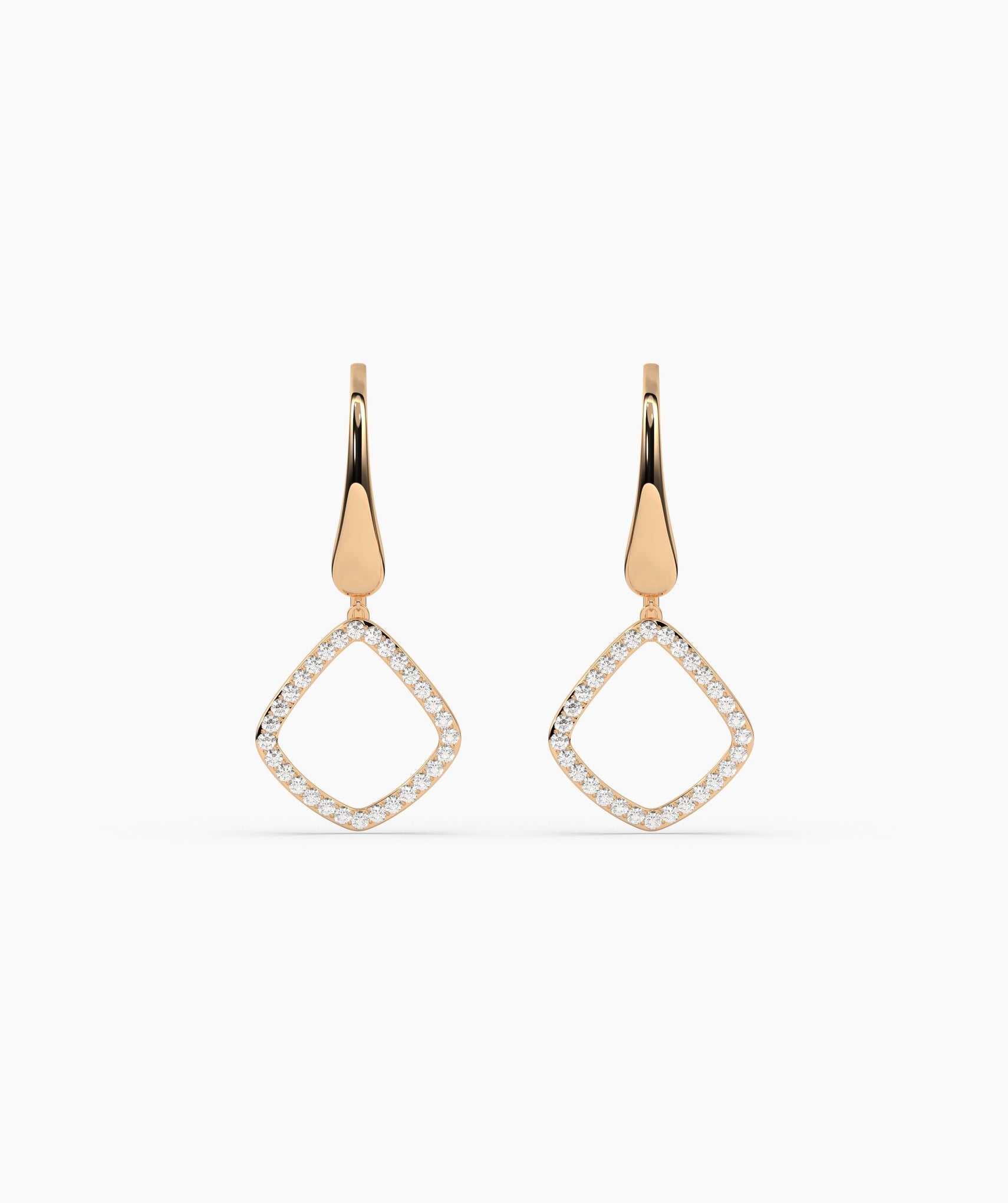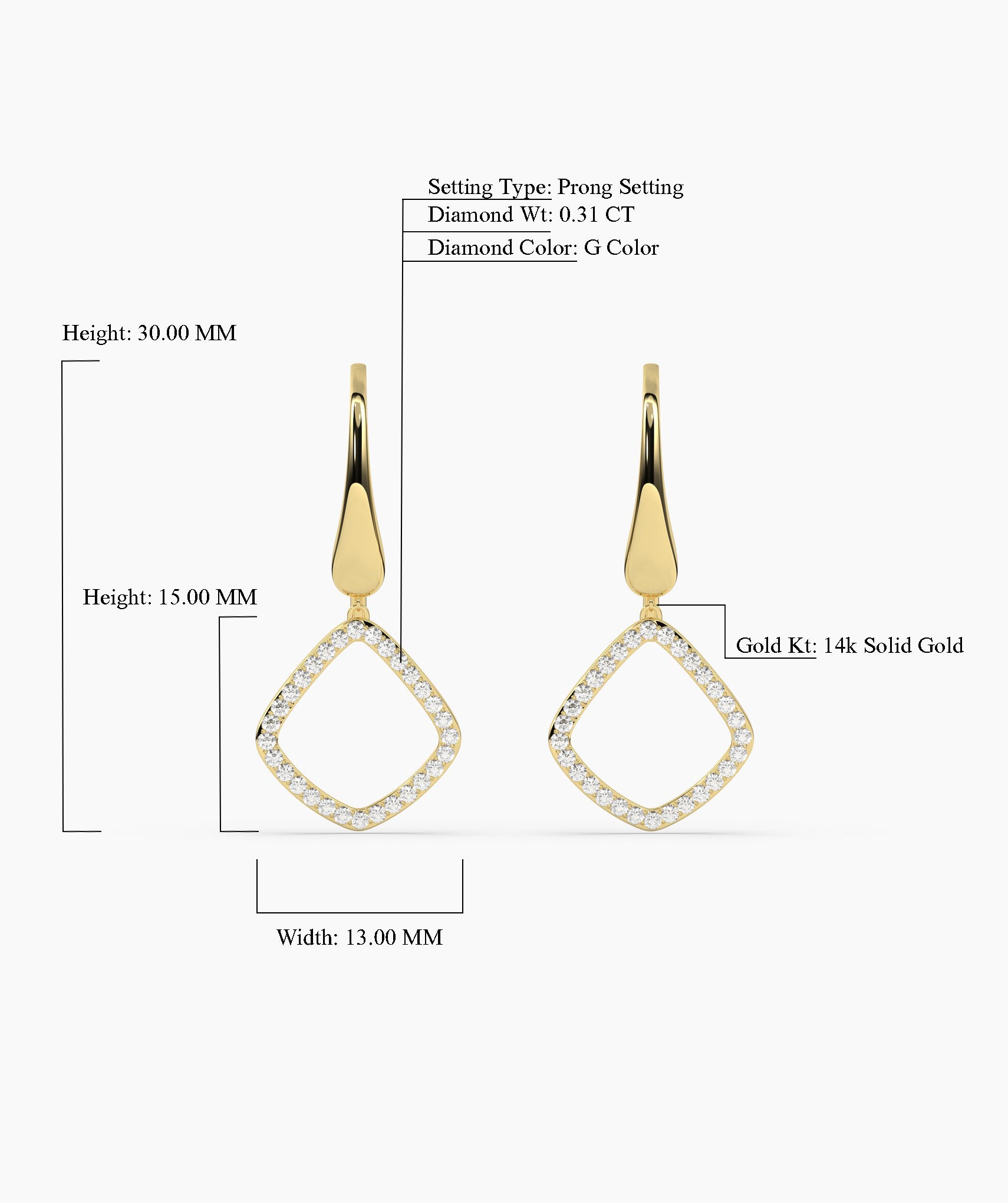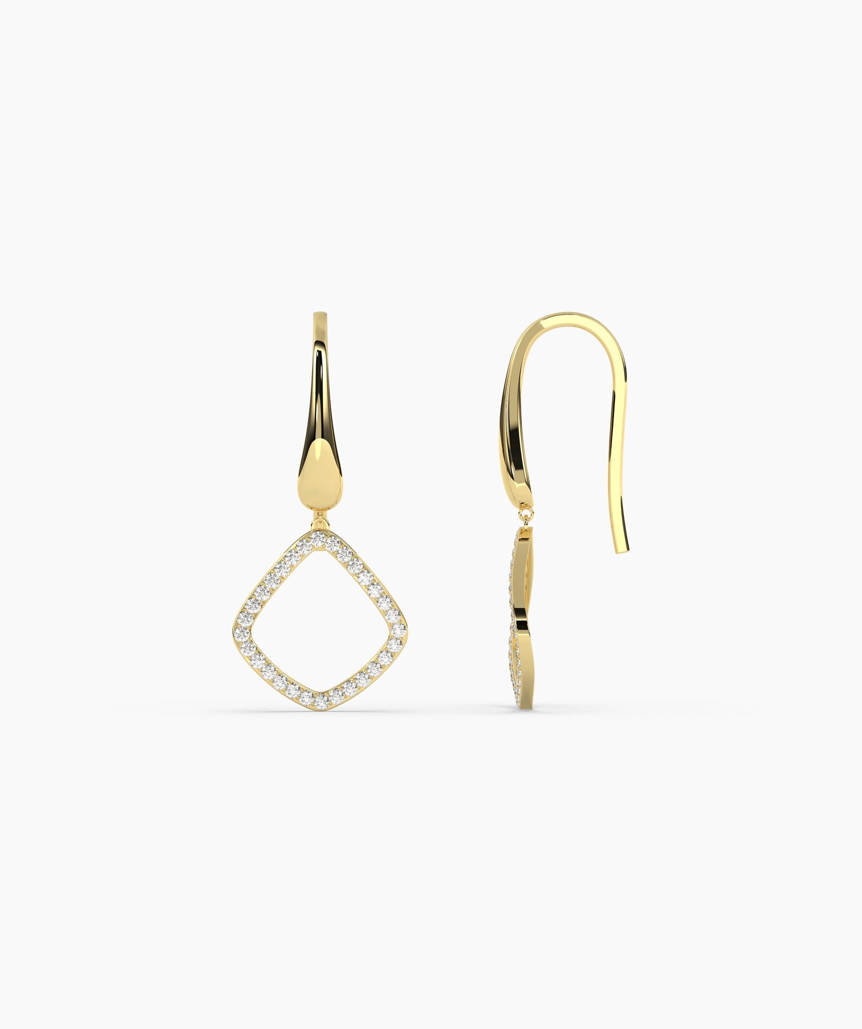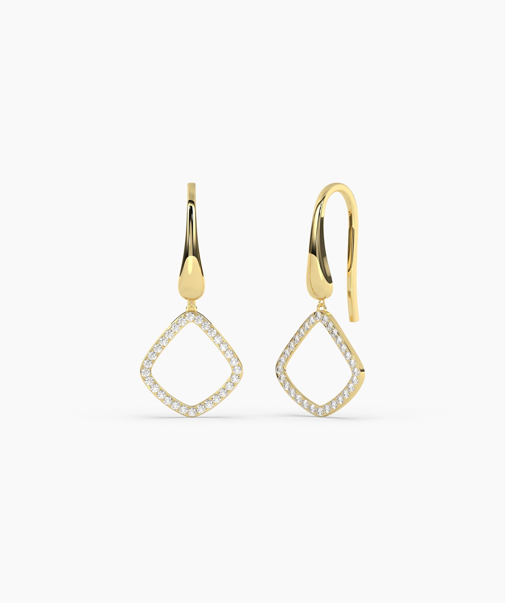 Crafted in solid 14K gold, these geometric drop earrings are accented with shimmering diamonds, perfect for adding a touch of sophistication.