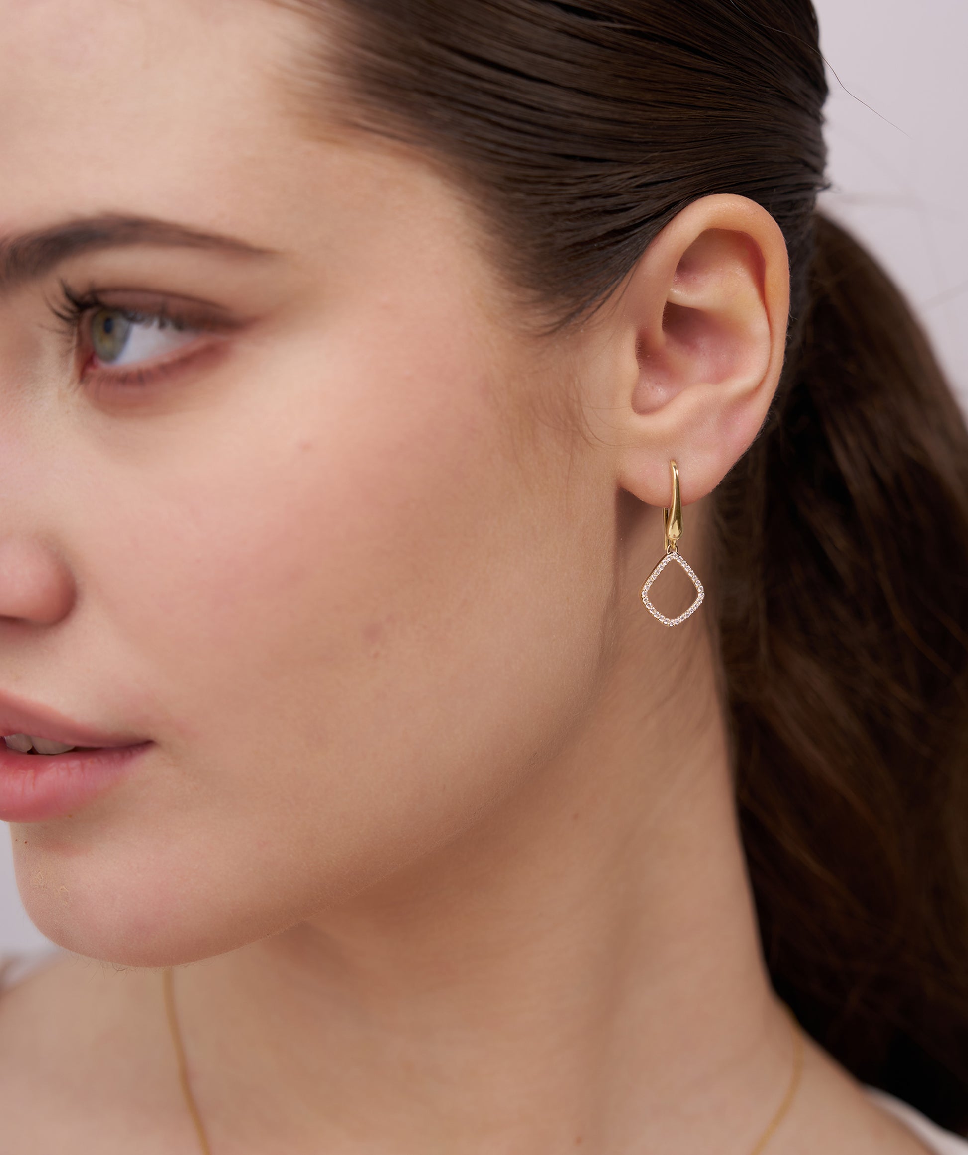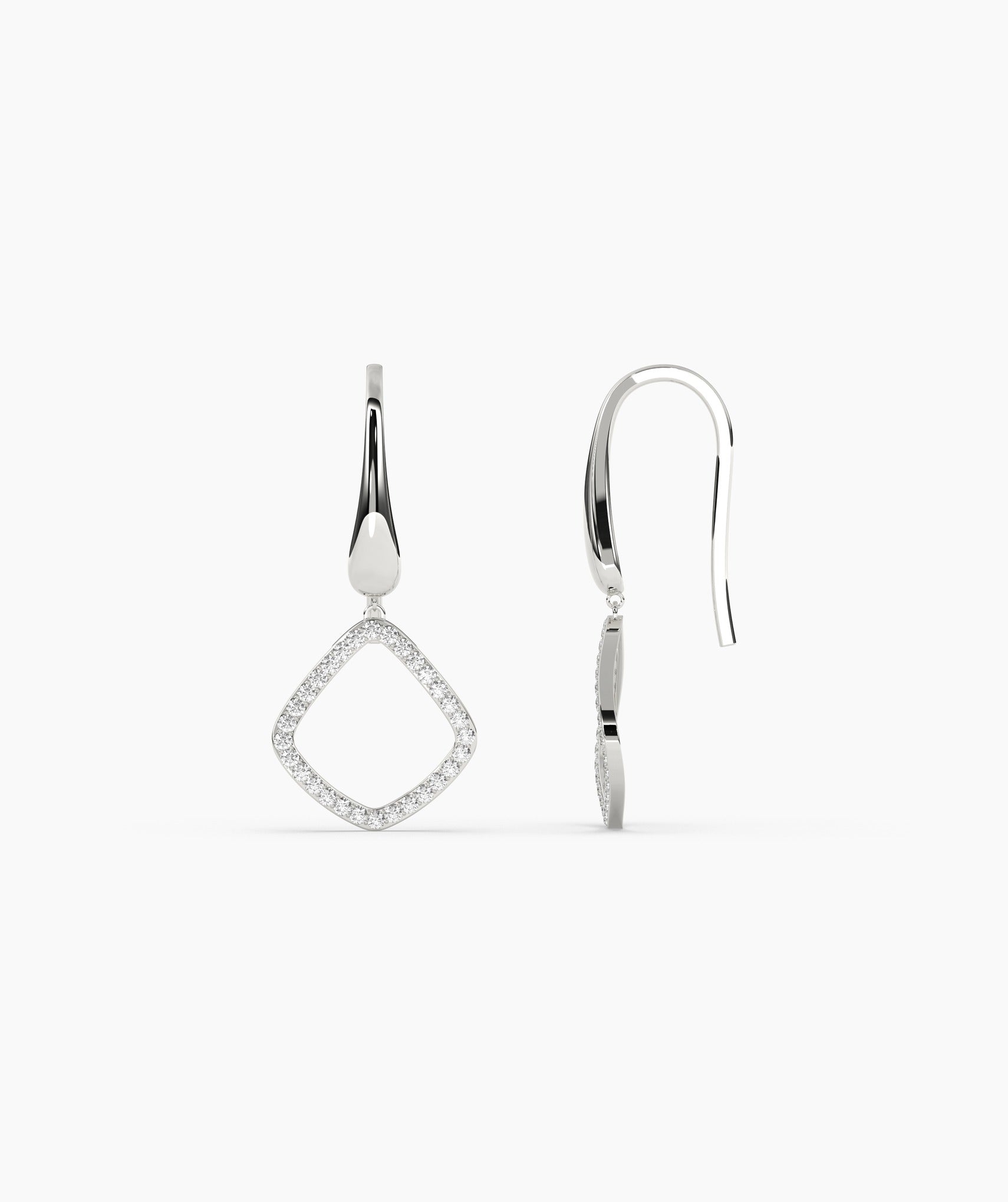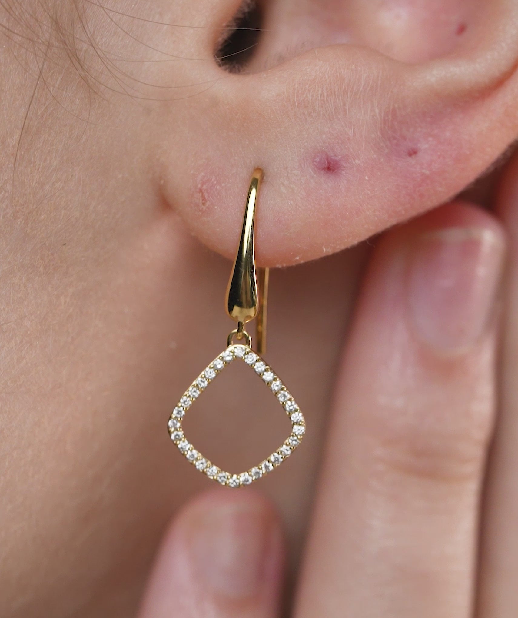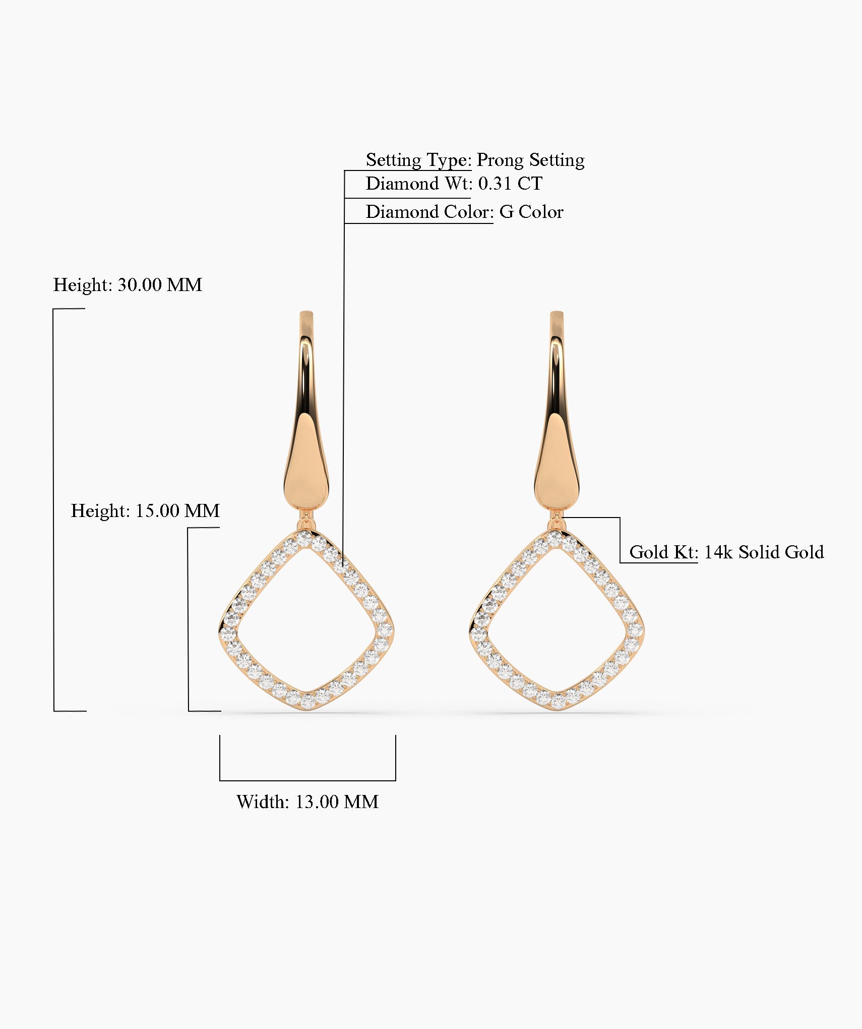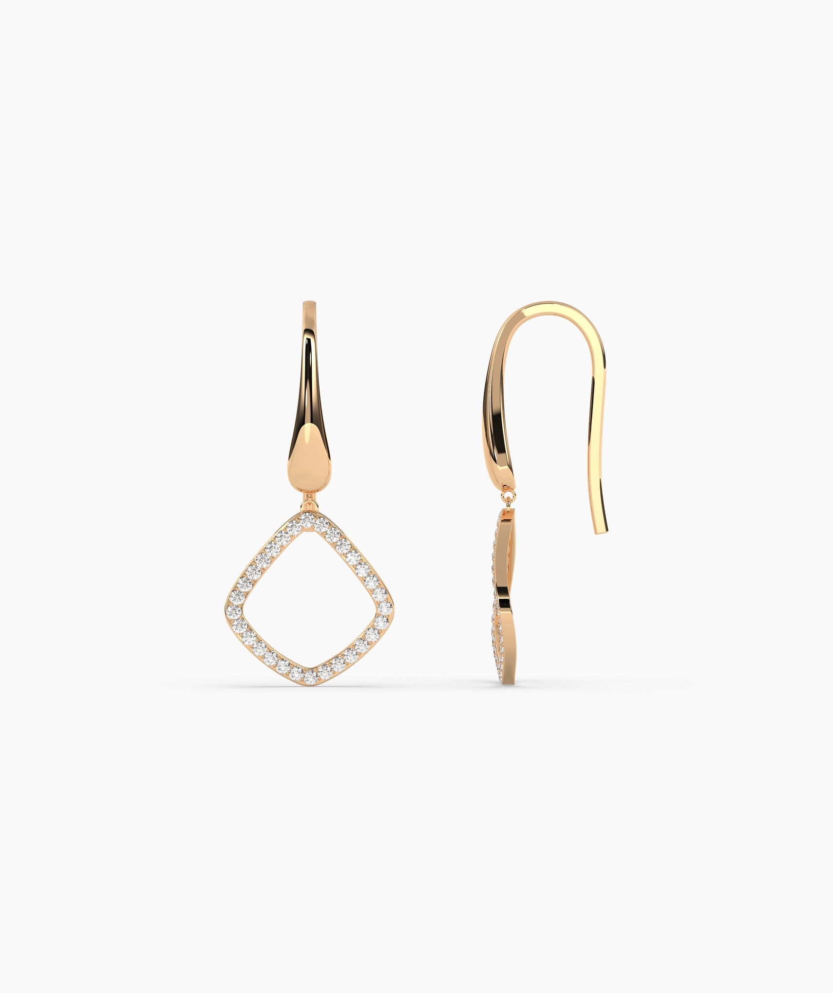 Crafted in solid 14K gold, these geometric drop earrings are accented with shimmering diamonds, perfect for adding a touch of sophistication.