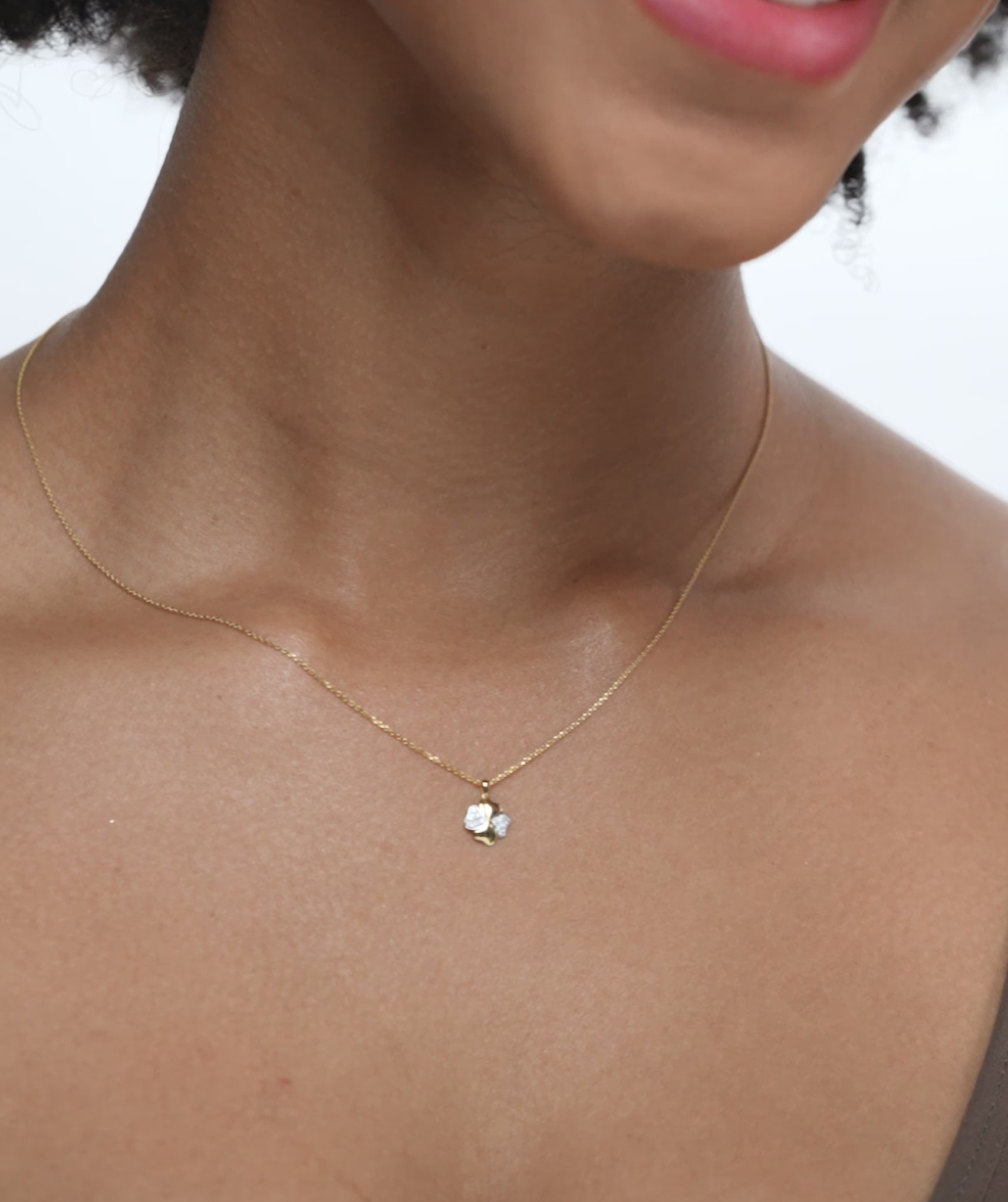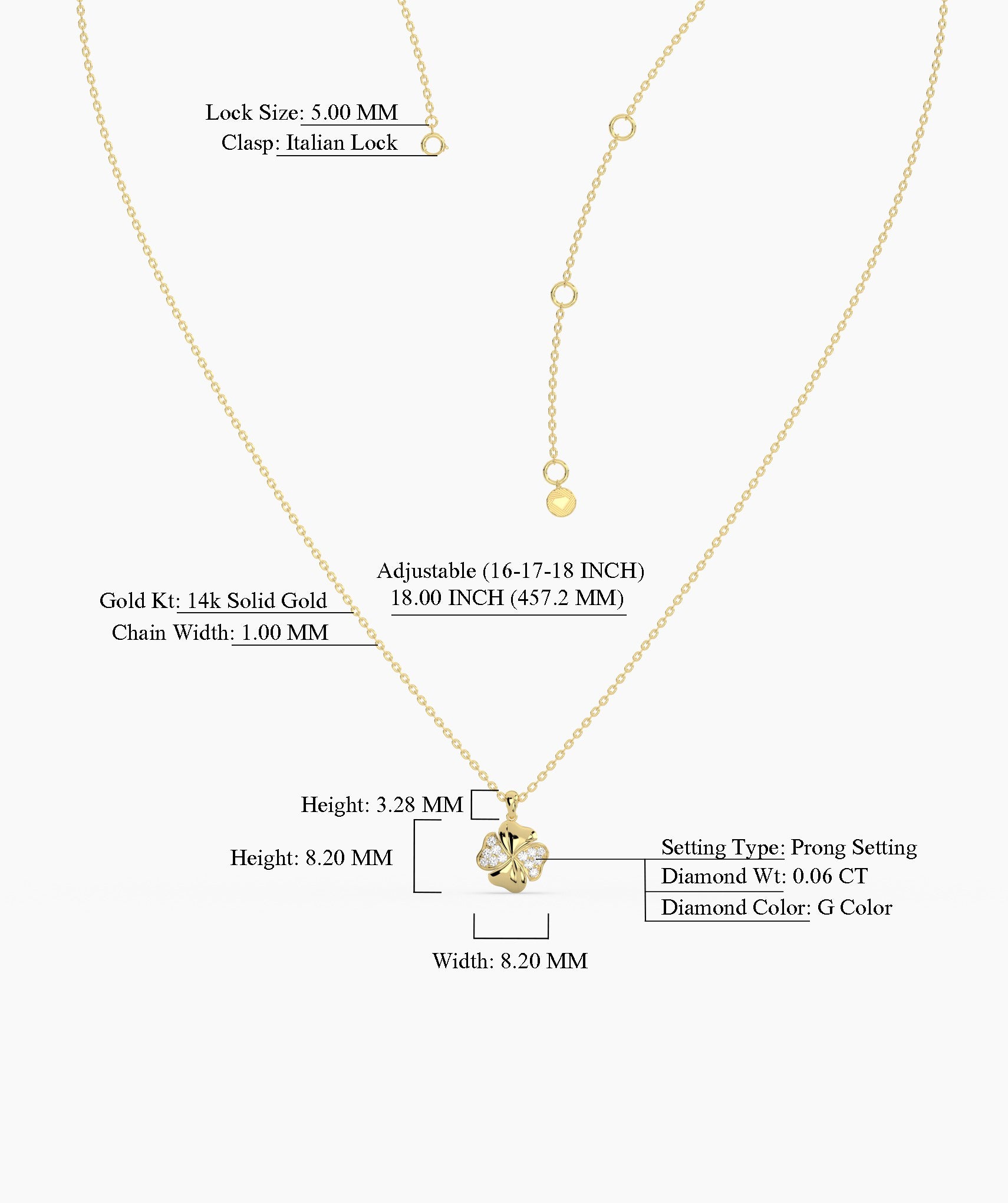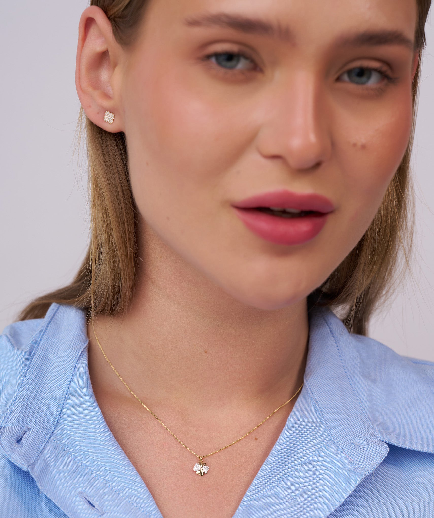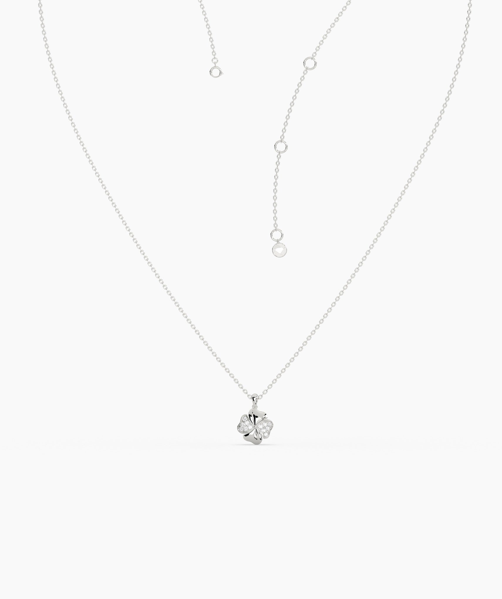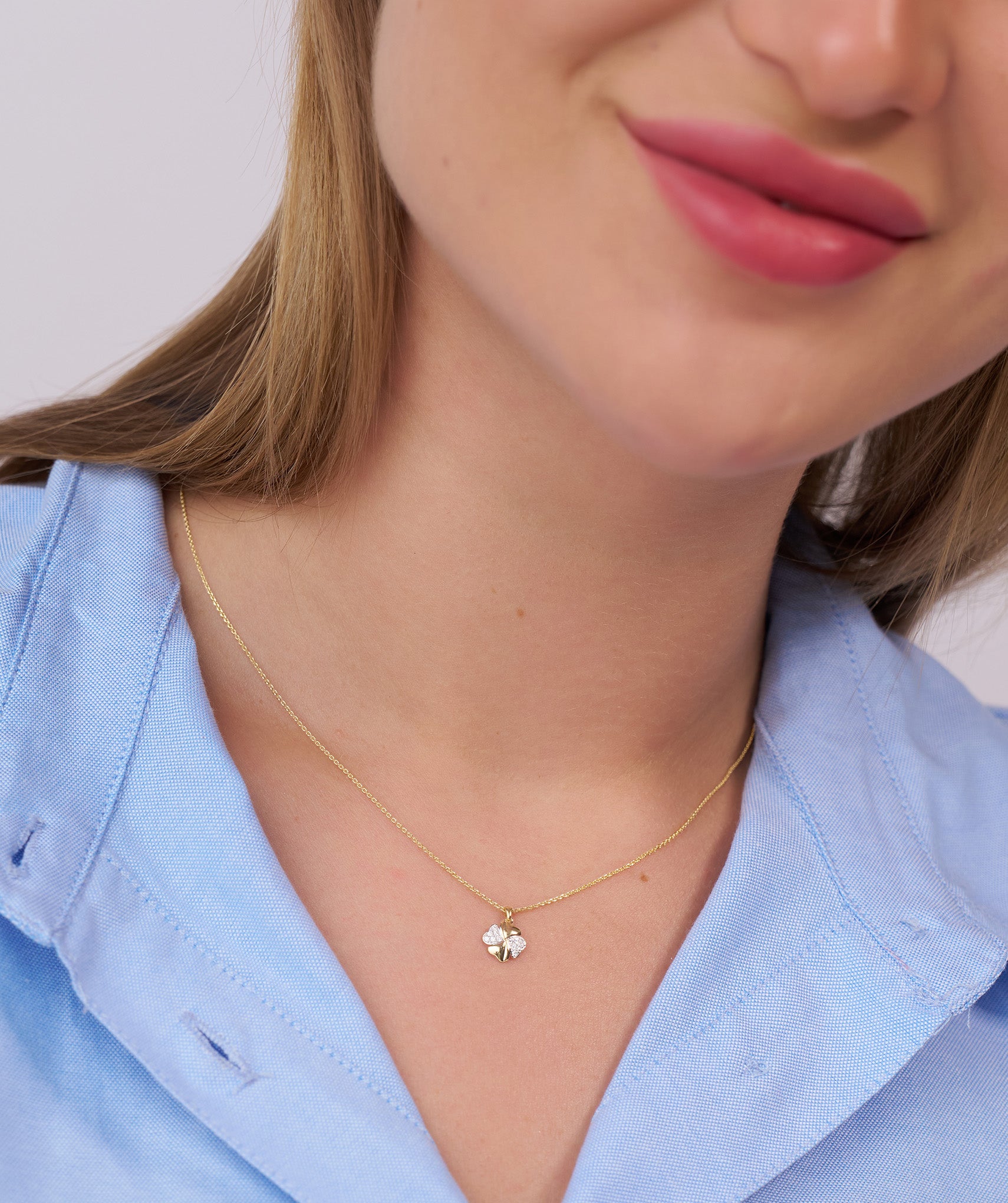 This exquisite gold necklace features a charming diamond-studded clover, symbolizing luck, love, and prosperity.
