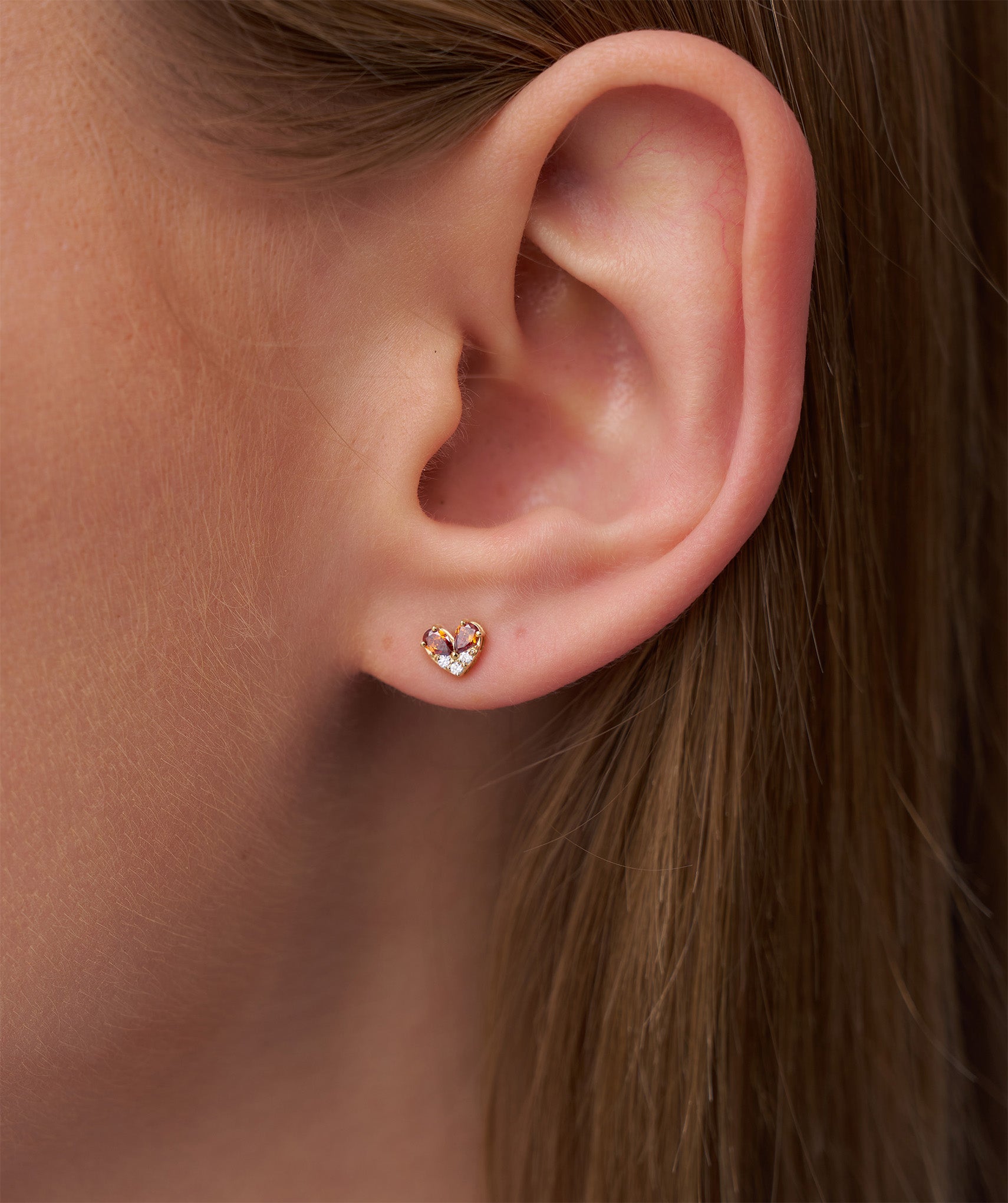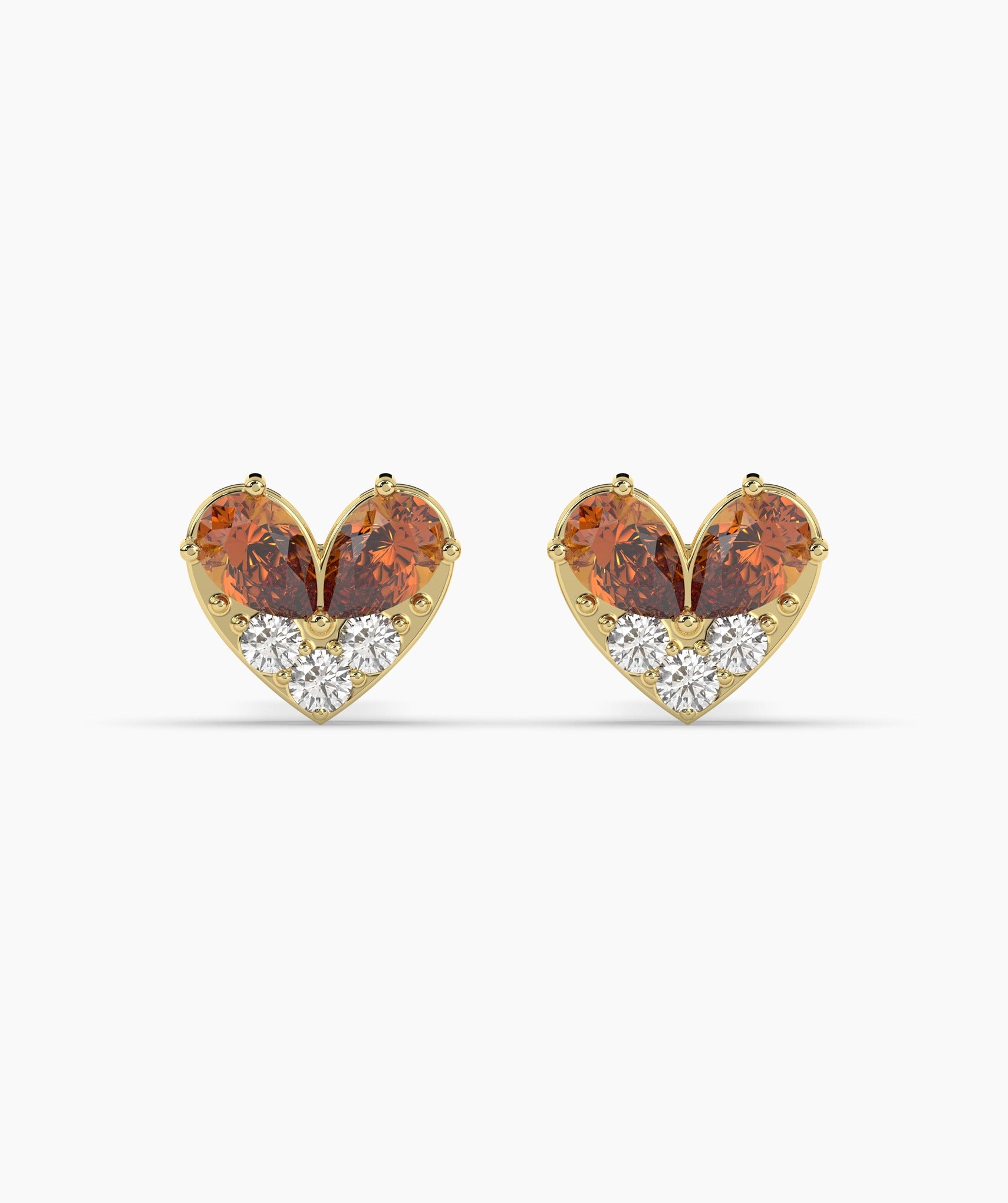A perfect blend of passion and sparkle, these 14K gold earrings feature rich garnets and diamonds in a charming heart design.