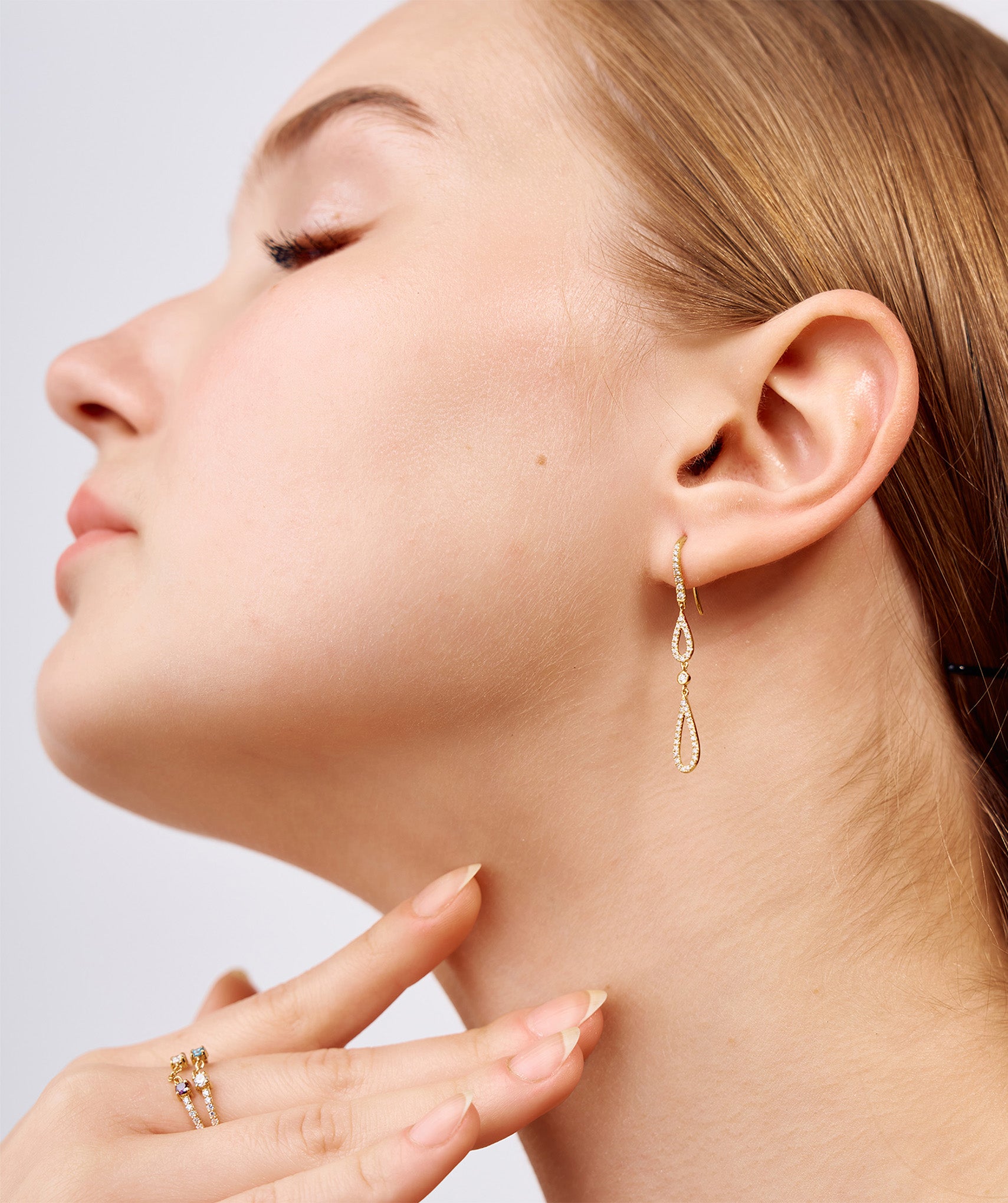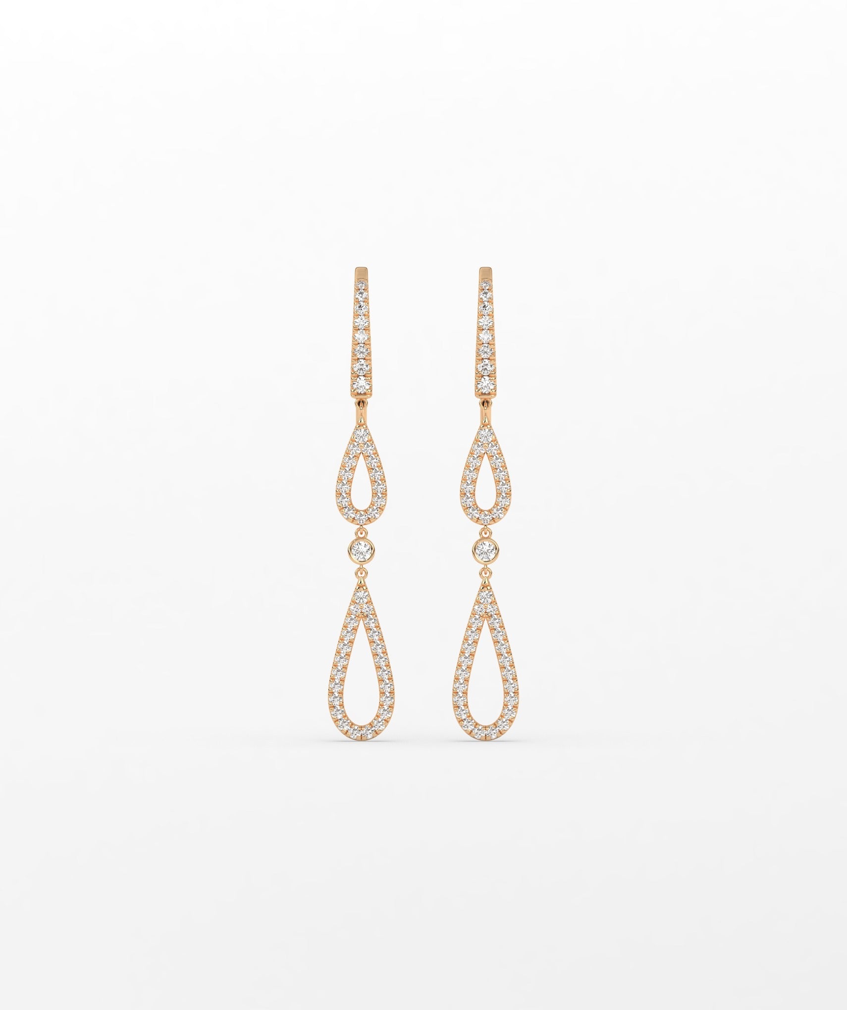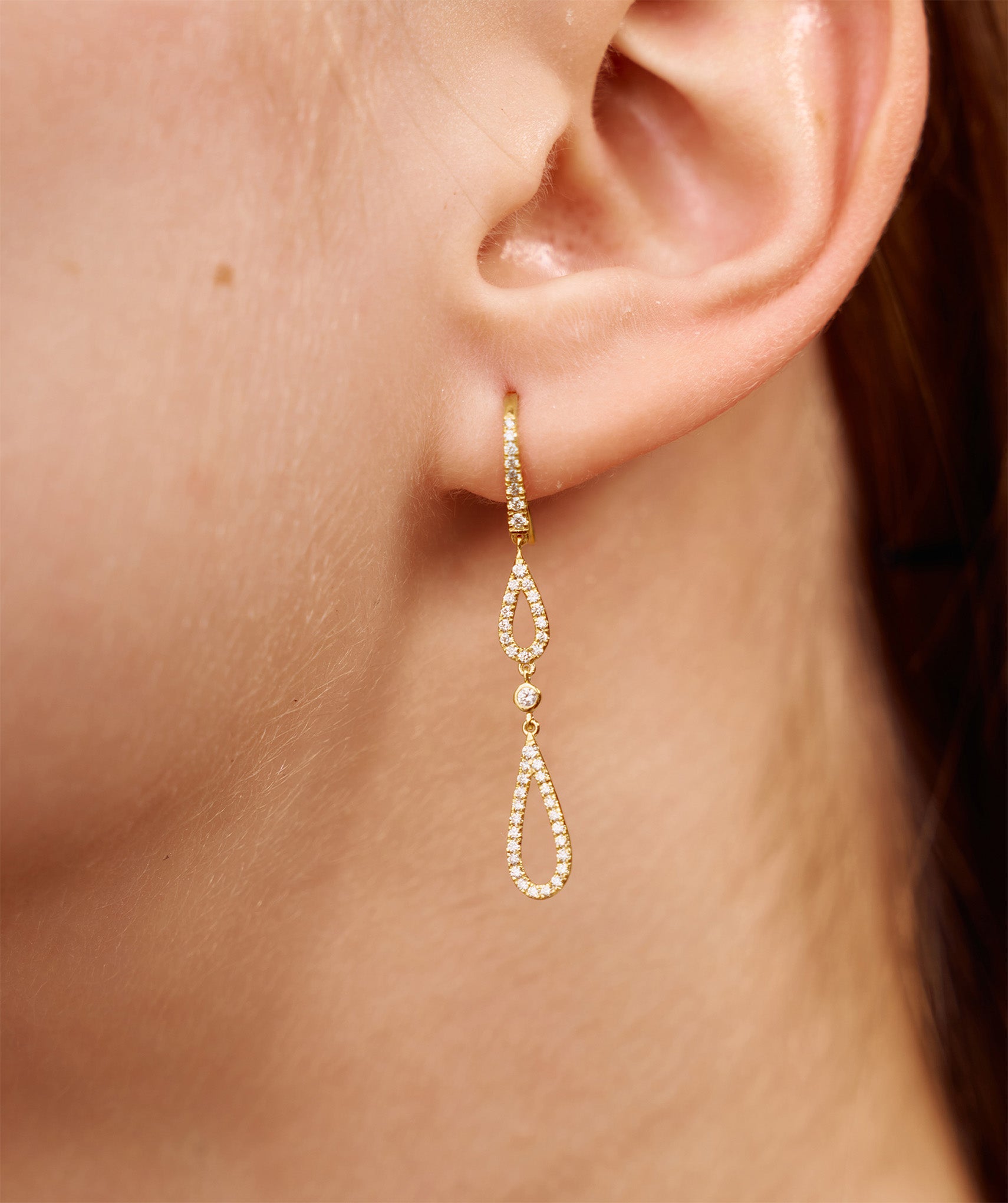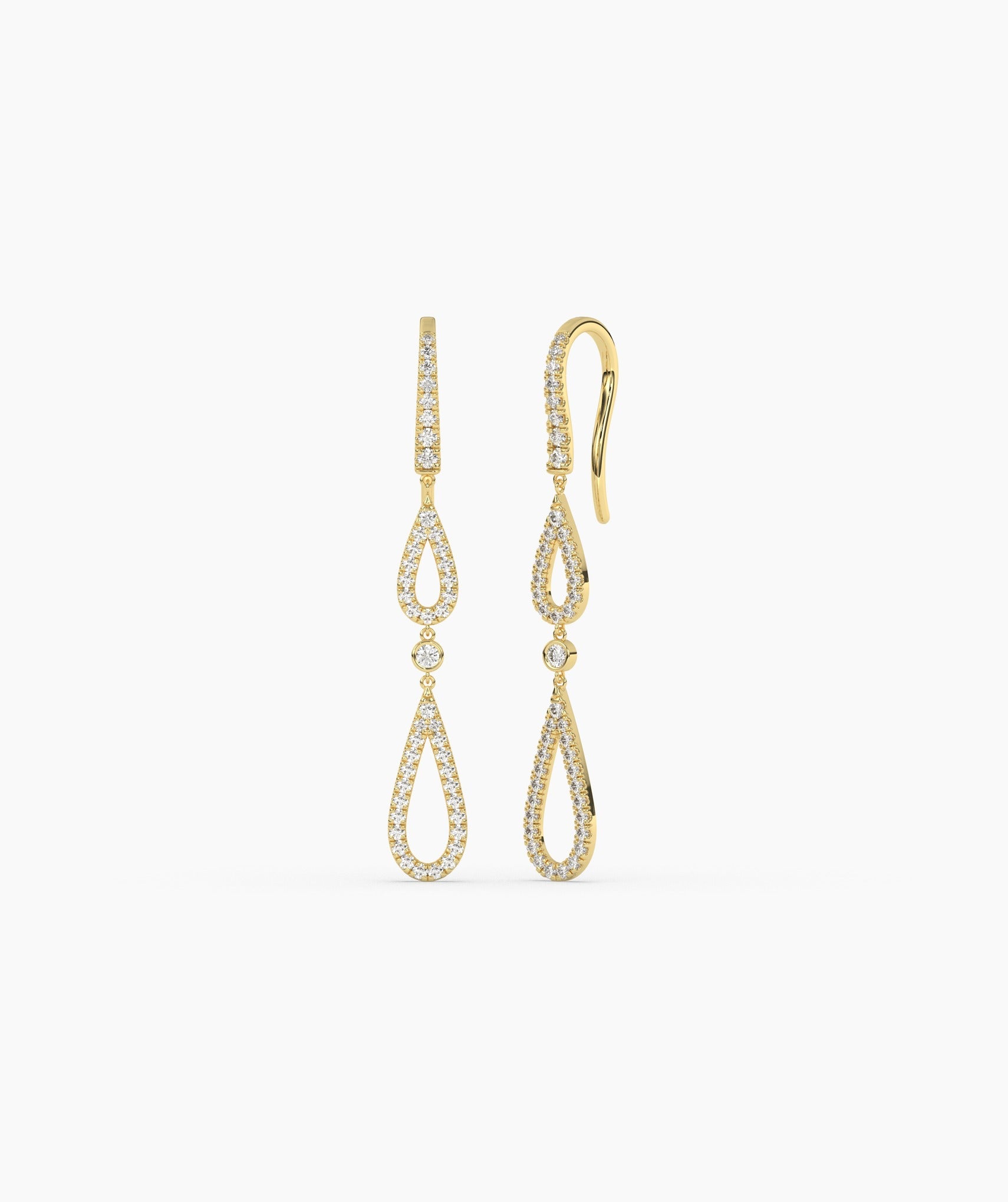 A stylish blend of minimalism and glamour, these three-stone diamond earrings with a delicate chain detail elevate any look.