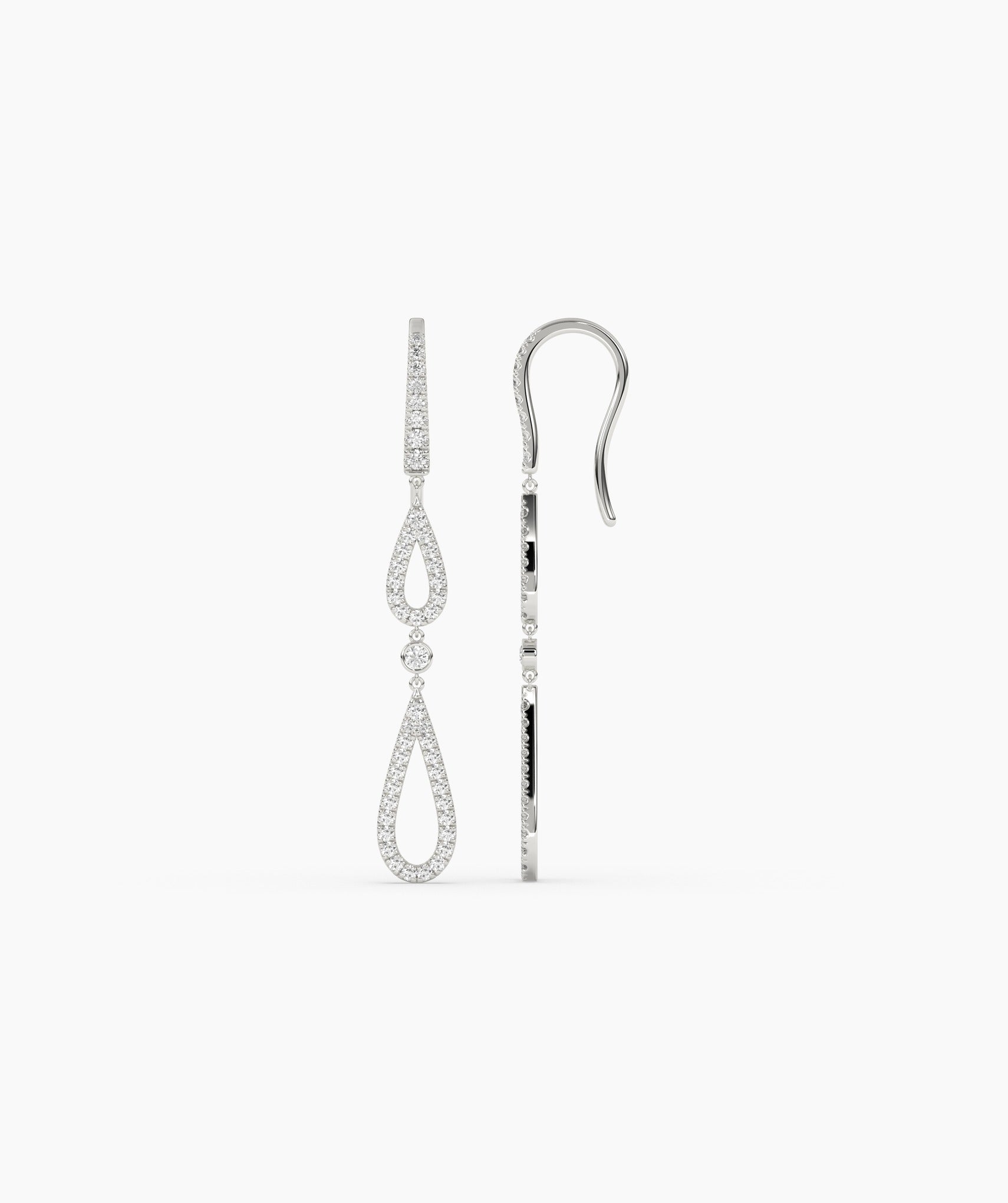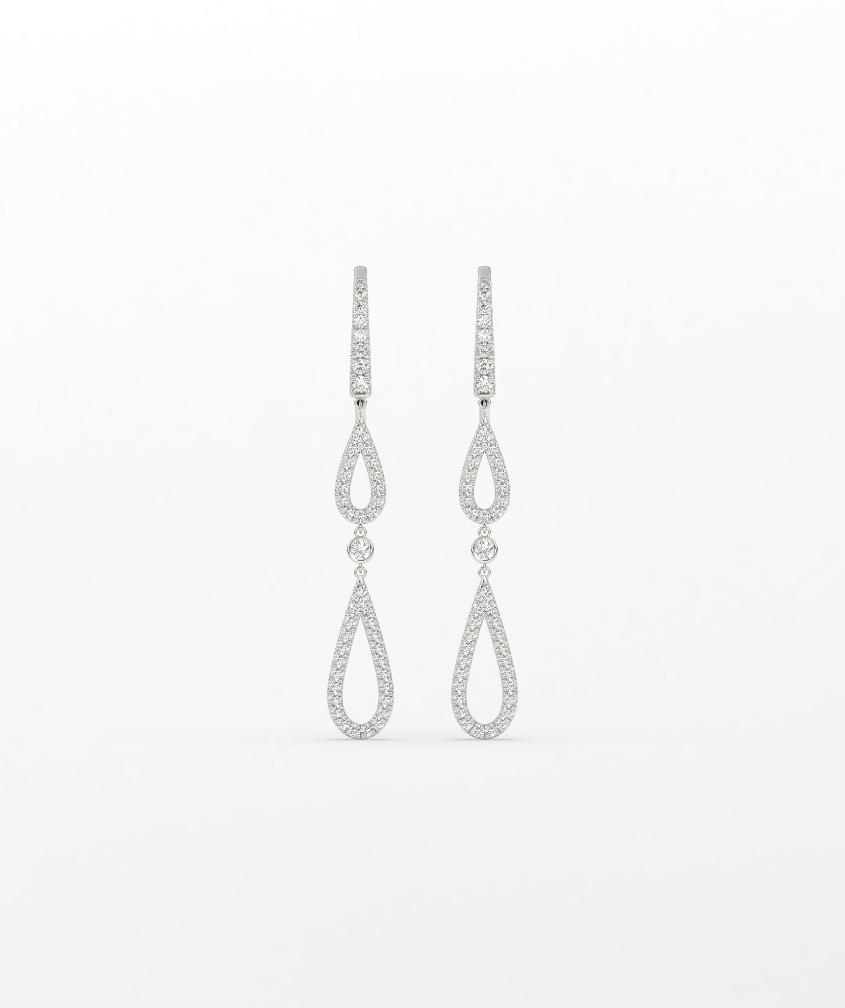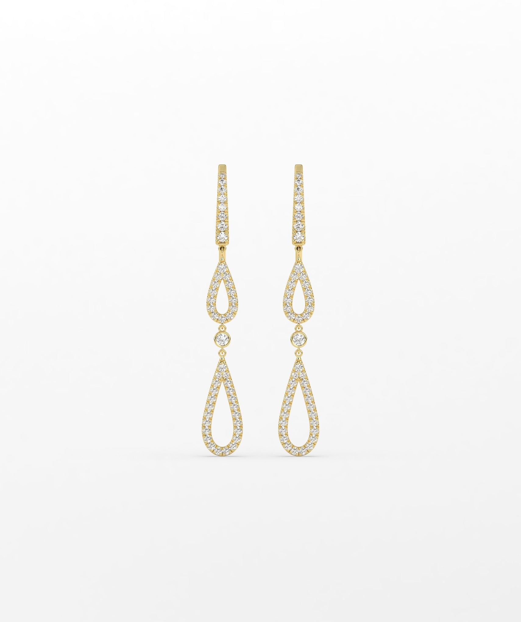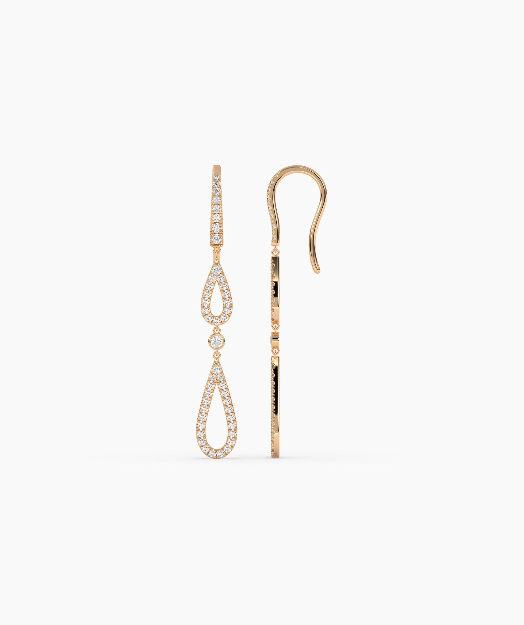 A stylish blend of minimalism and glamour, these three-stone diamond earrings with a delicate chain detail elevate any look.