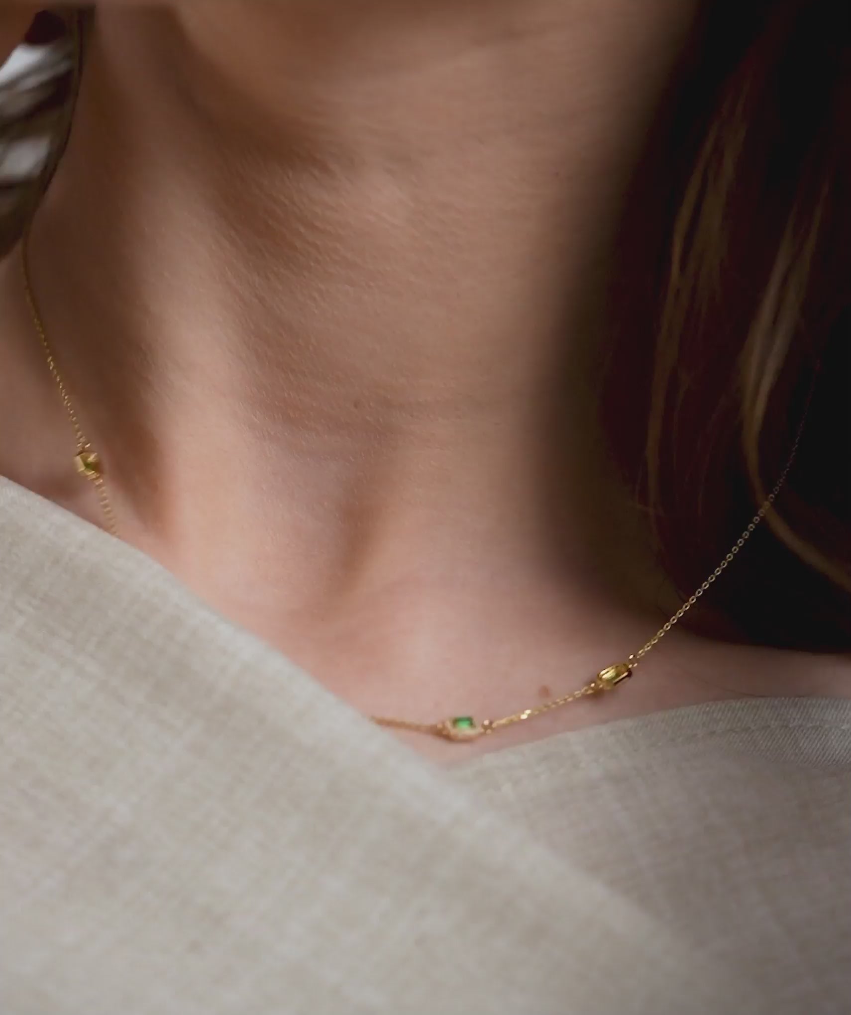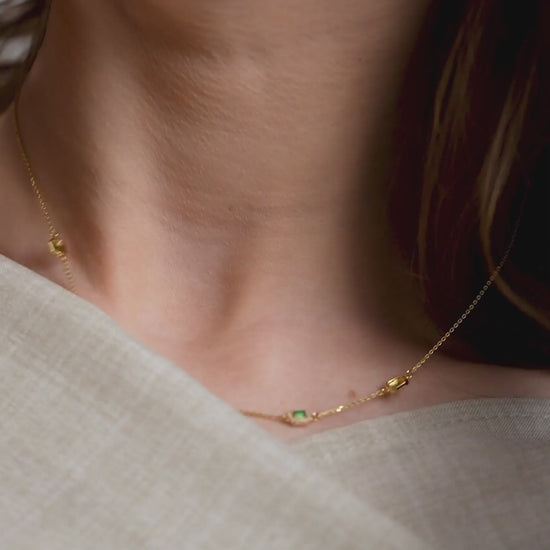 Bring a rich pop of color to your daily rotation. This necklace showcases five emerald cut natural emeralds, each framed by a delicate halo of diamonds in a classic station design. Set in 14K solid gold, the combination of 0.32ct emeralds and 0.22ct diamonds delivers a sophisticated contrast of deep green and brilliant light. The adjustable 16-18 inch chain ensures a perfect fit, whether styled solo for a meeting or layered for evening drinks. Available in yellow, white, and rose gold to suit your style.