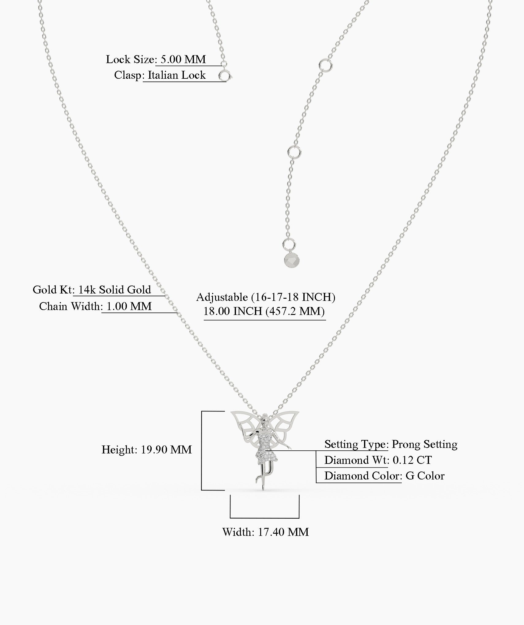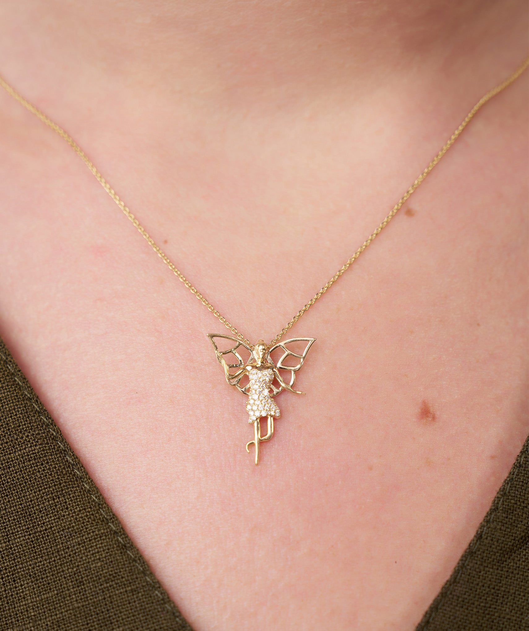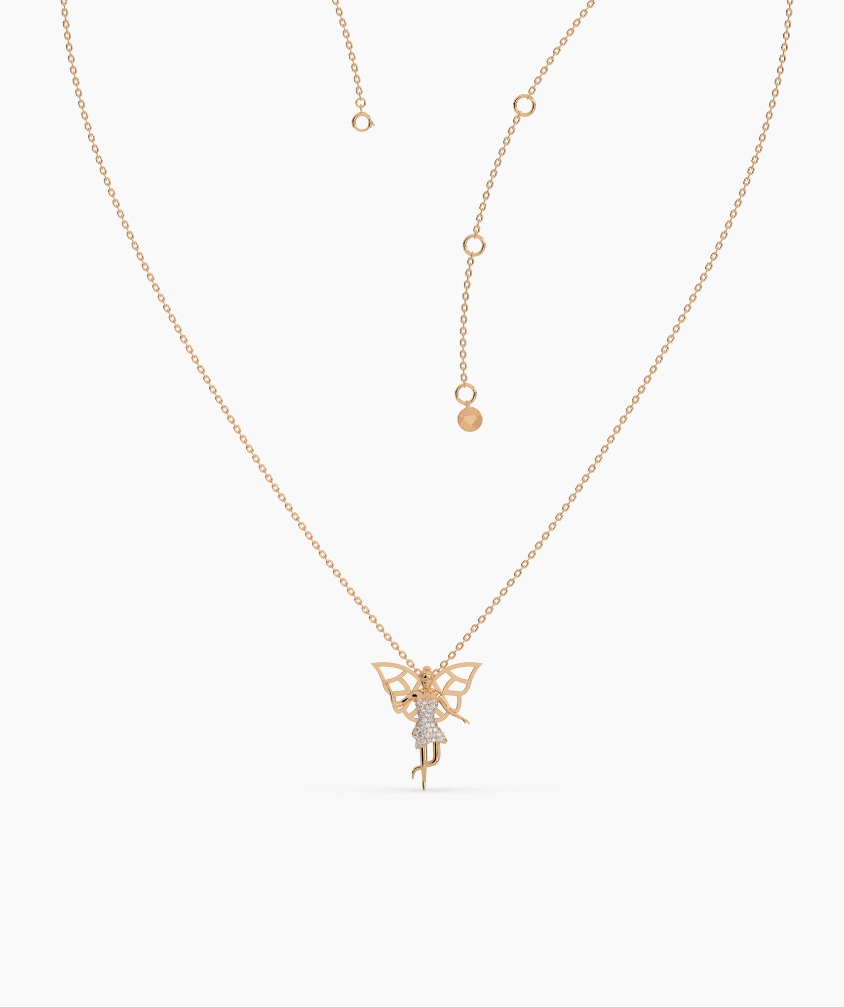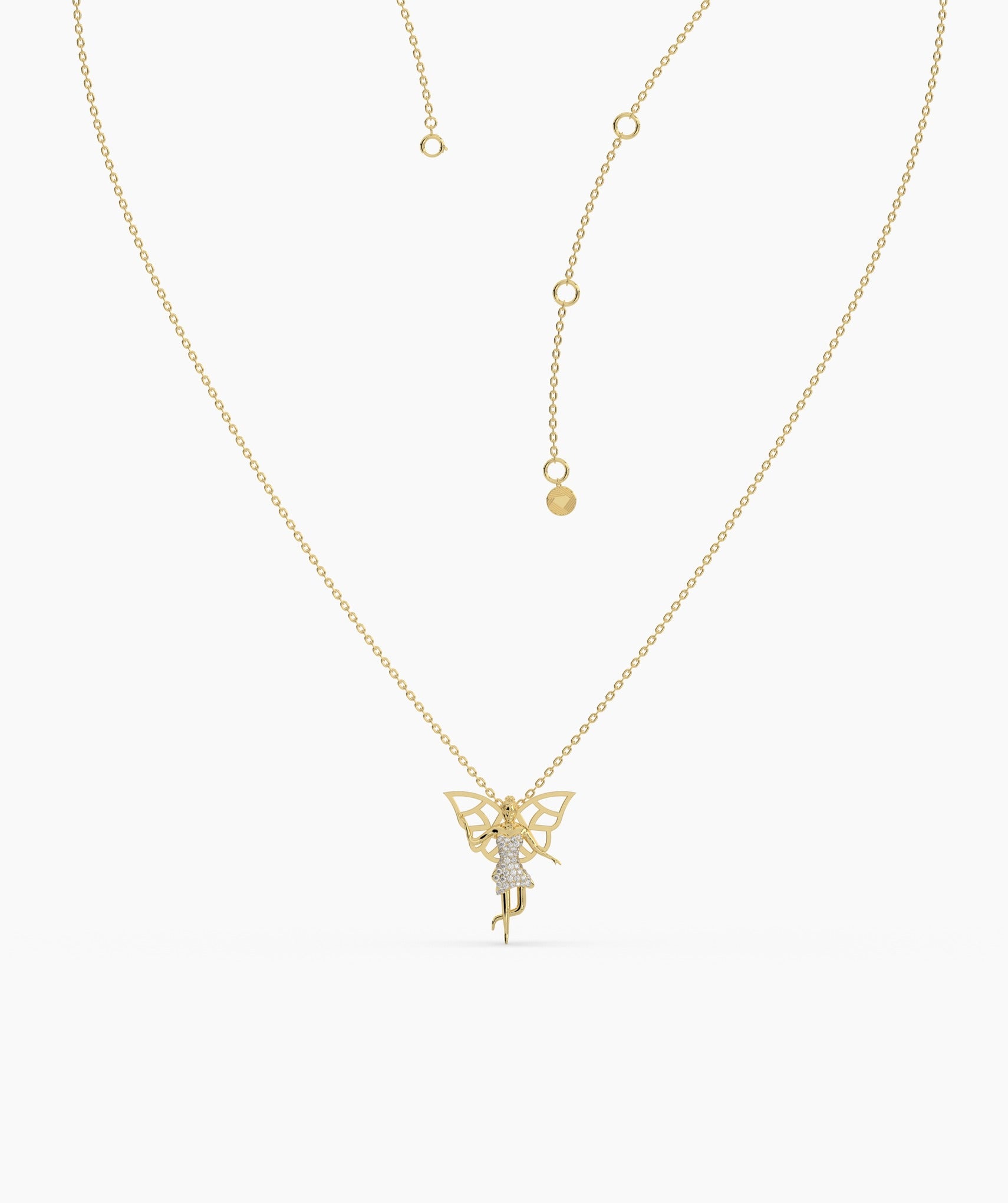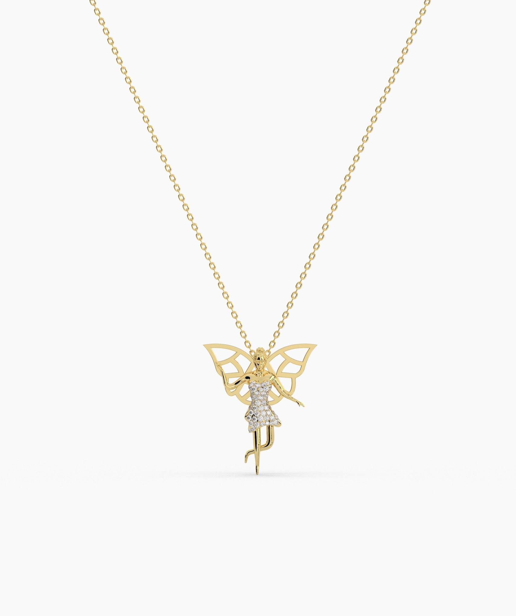 Add a dash of enchantment to any look with this solid 14K gold fairy necklace, a whimsical symbol of wonder.