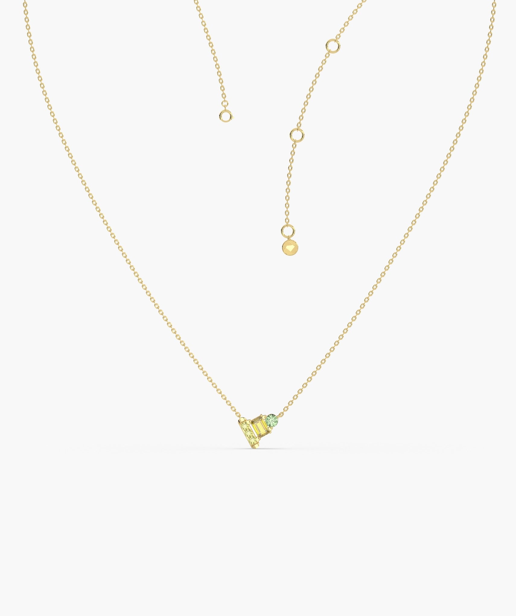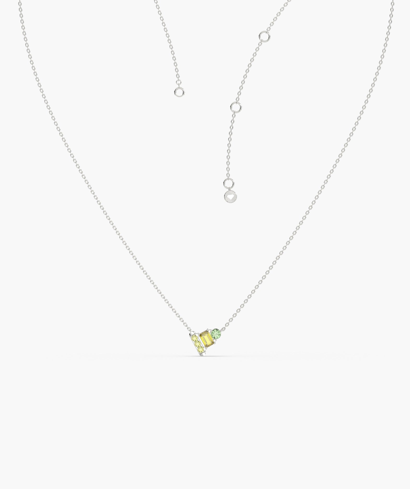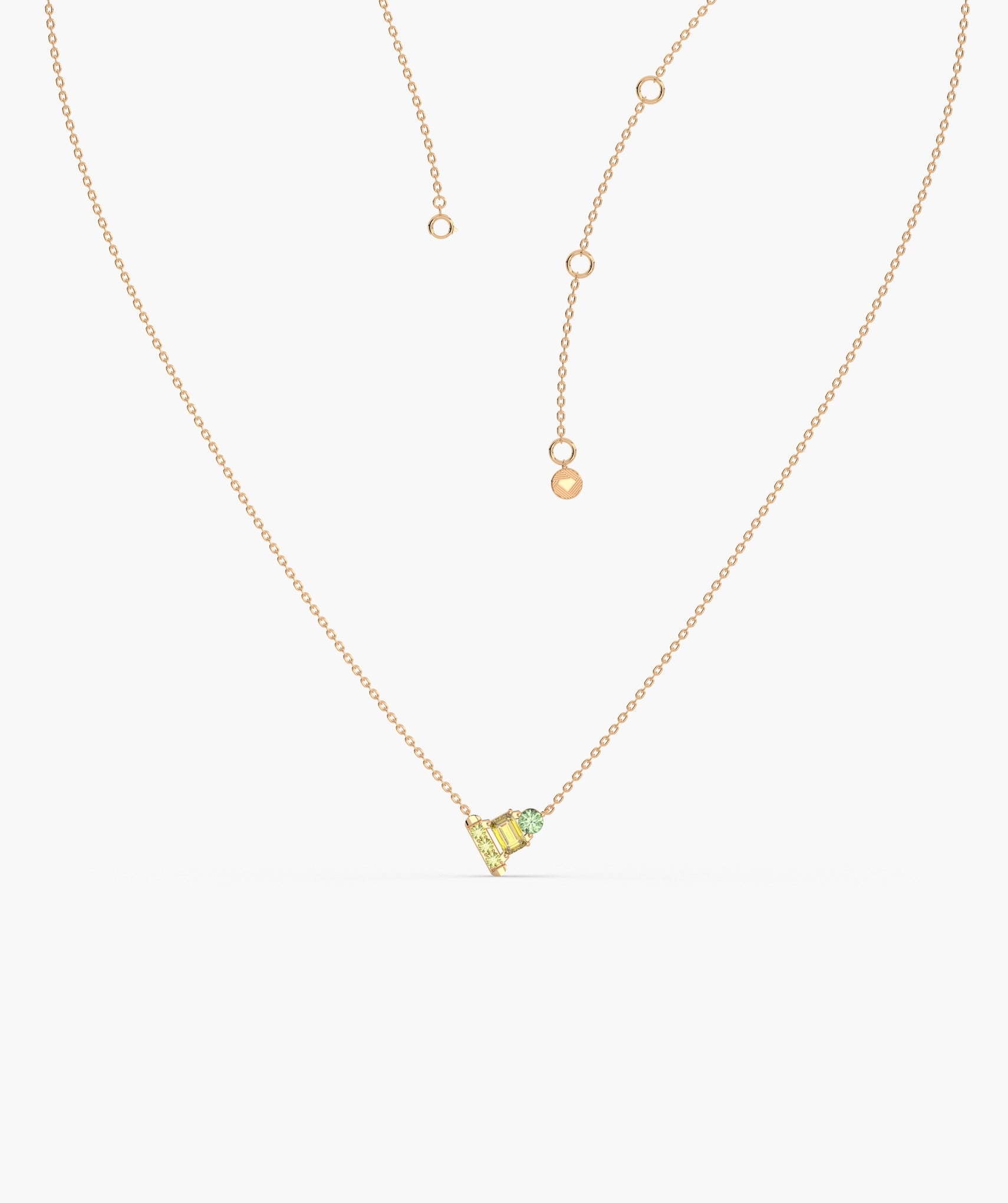 A delicate 14K solid gold chain accented with uniquely cut green diamonds, offering a fresh and vibrant look perfect for everyday.