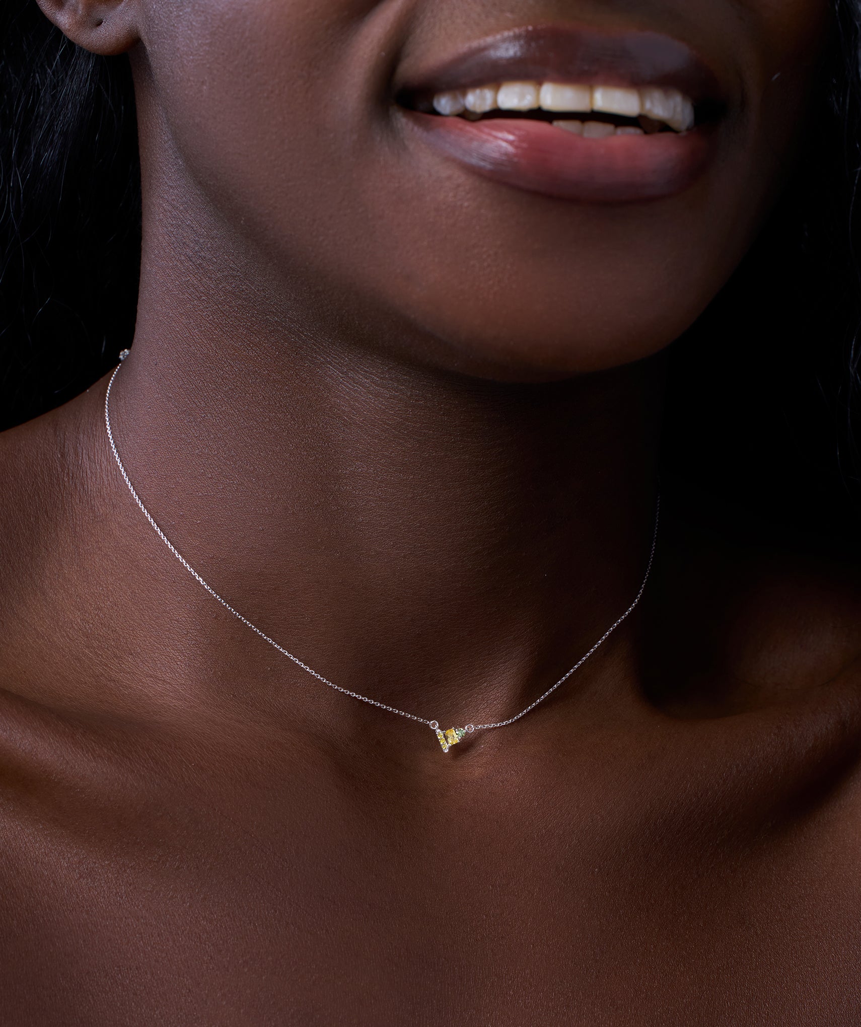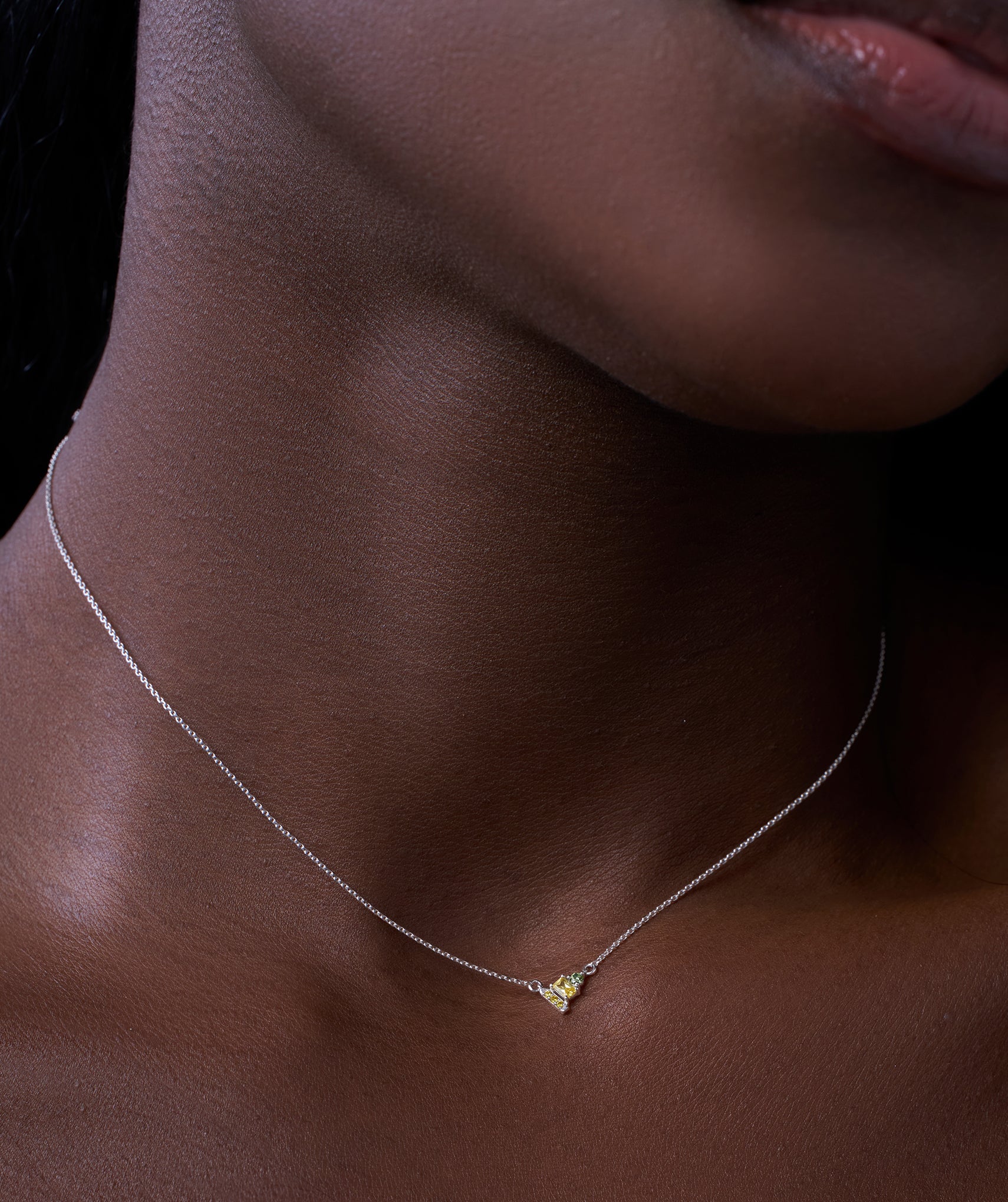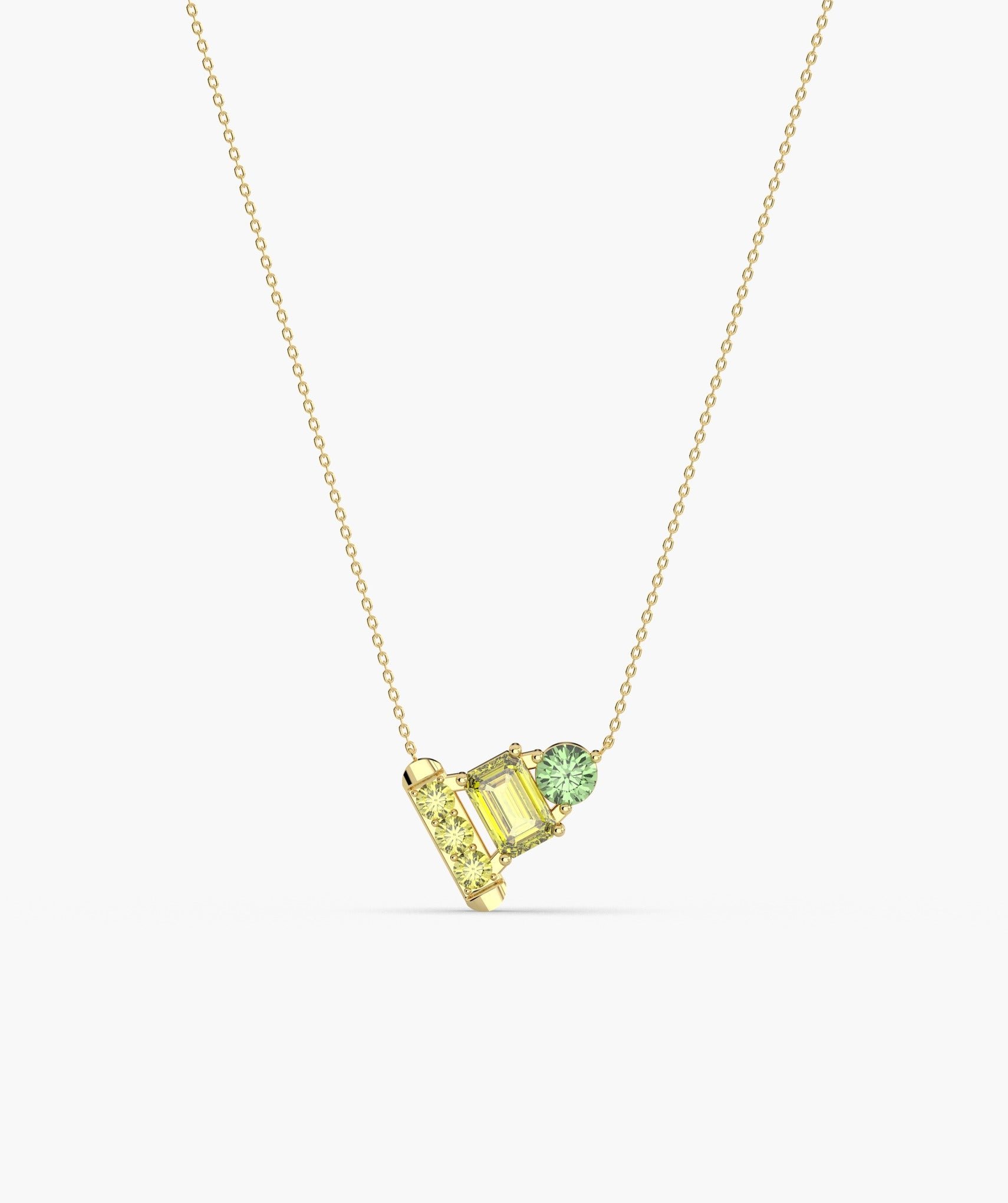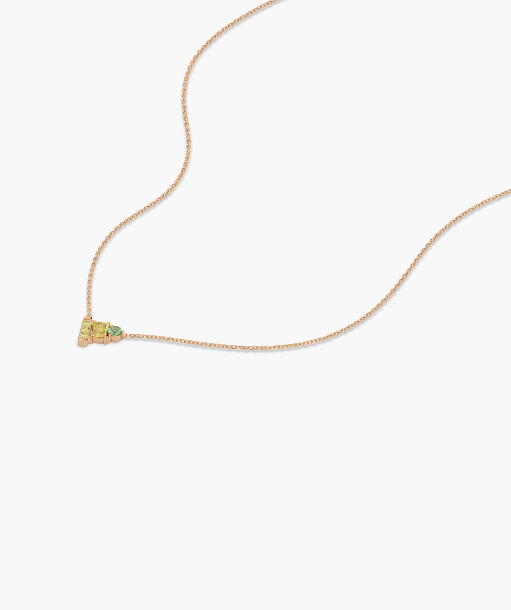 A delicate 14K solid gold chain accented with uniquely cut green diamonds, offering a fresh and vibrant look perfect for everyday.