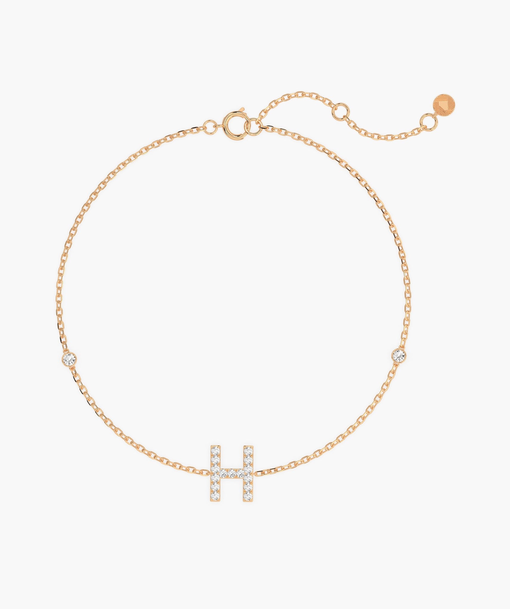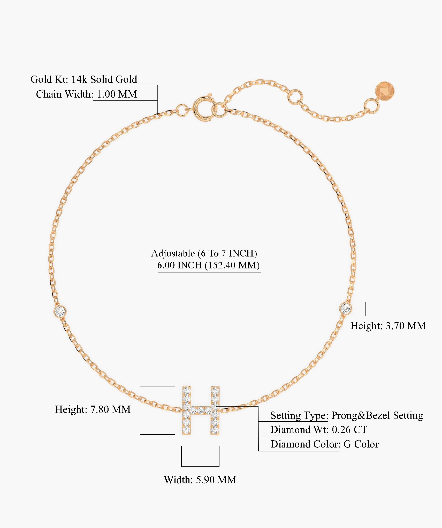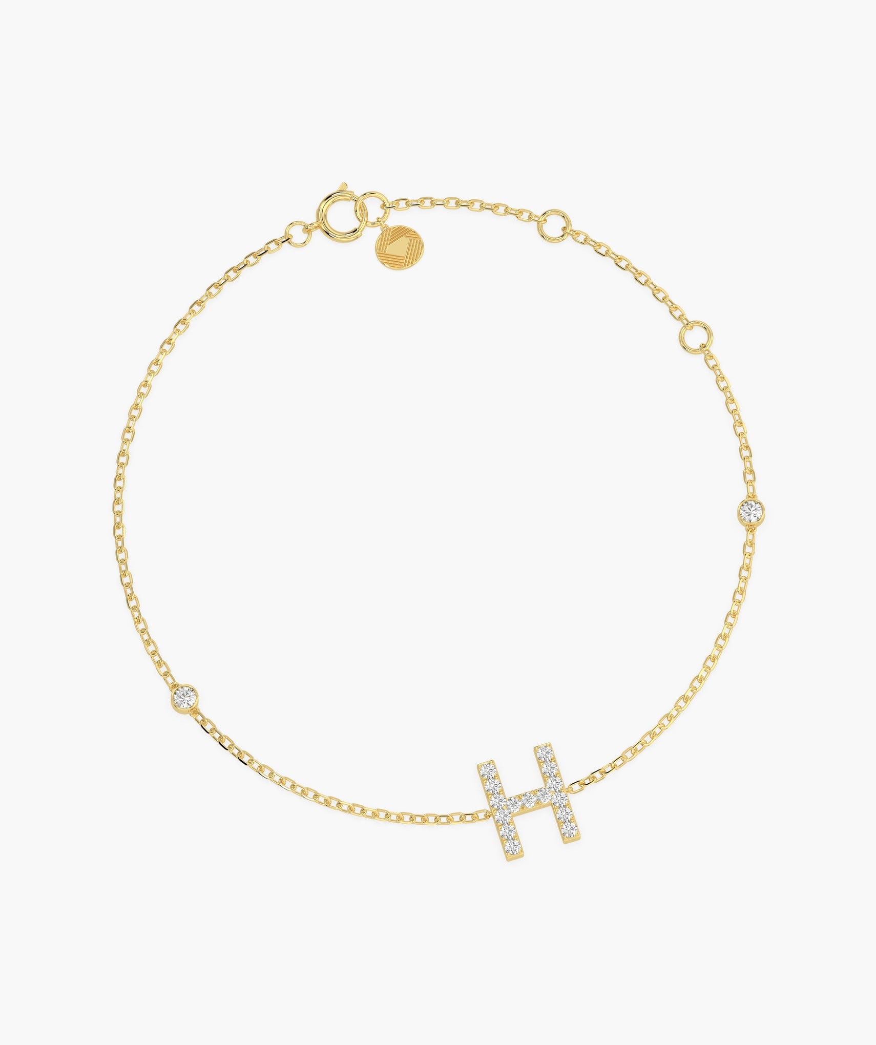 Crafted in 14K solid gold, this bracelet elegantly showcases the initial 'H' encrusted with fine diamonds. adding a personalized sparkle to your wrist.