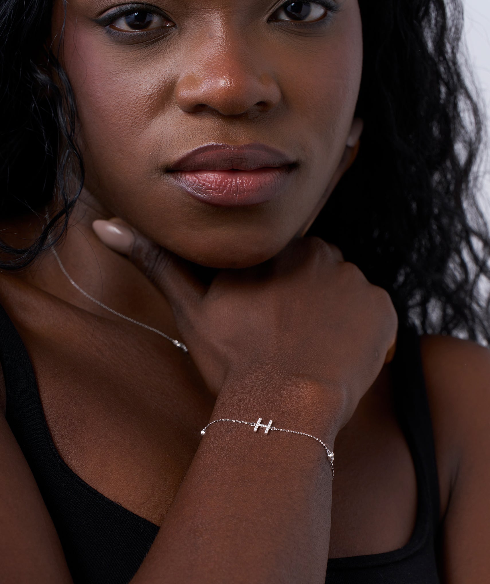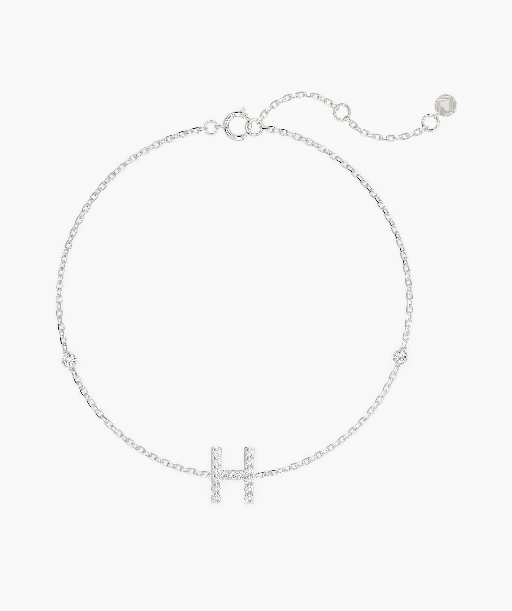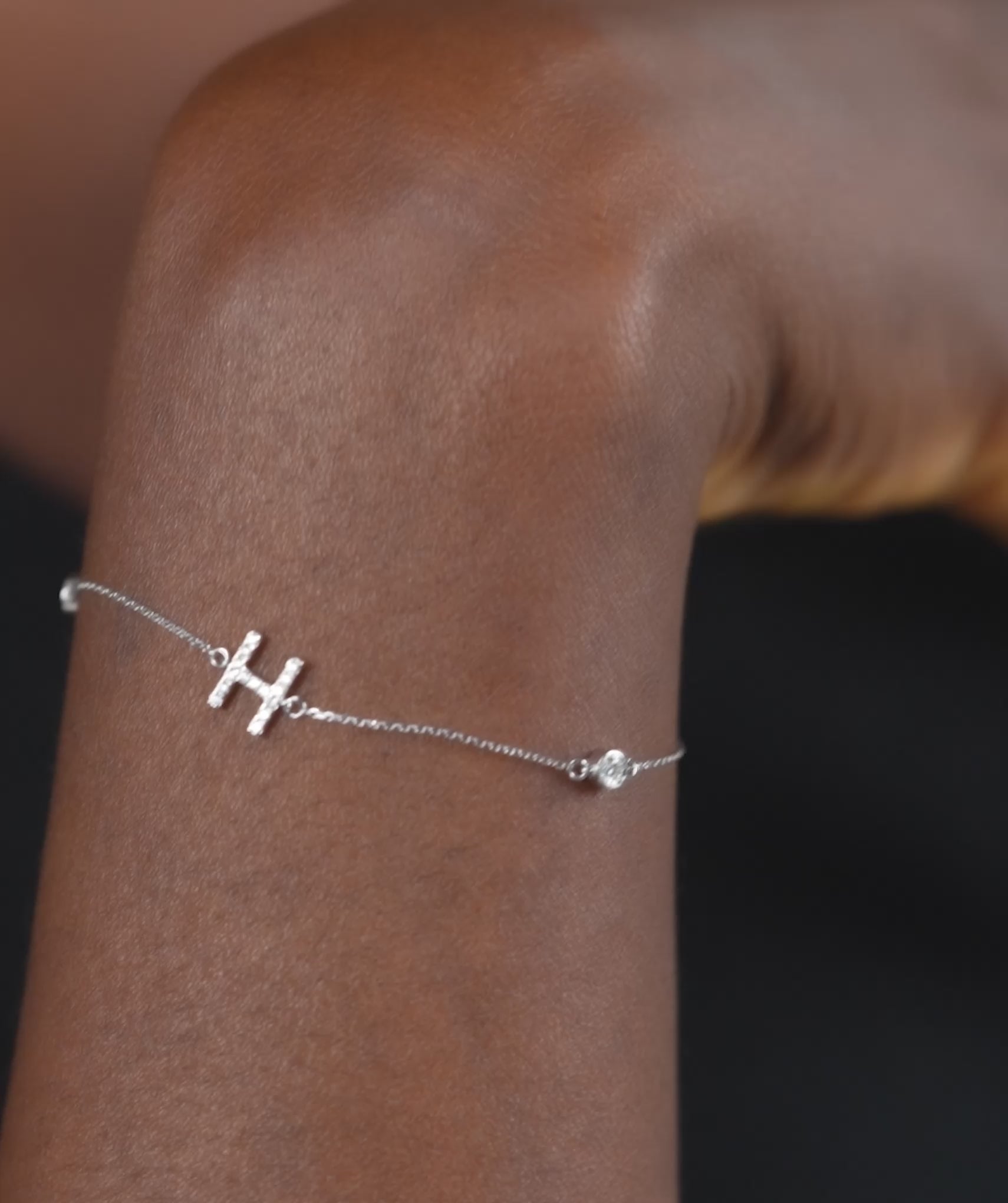Crafted in 14K solid gold, this bracelet elegantly showcases the initial 'H' encrusted with fine diamonds. adding a personalized sparkle to your wrist.