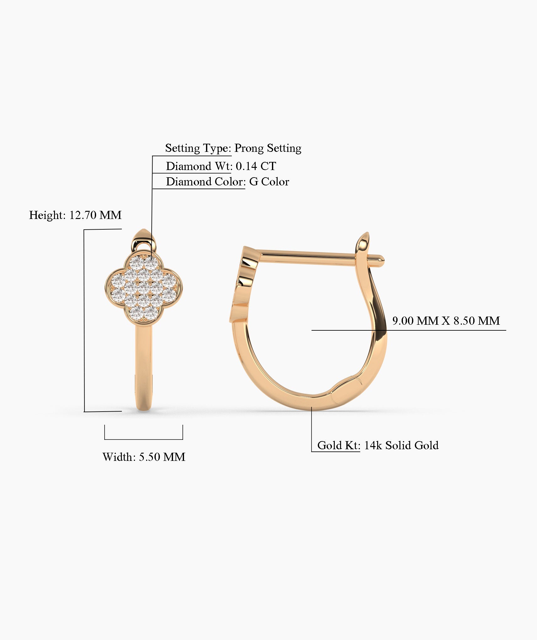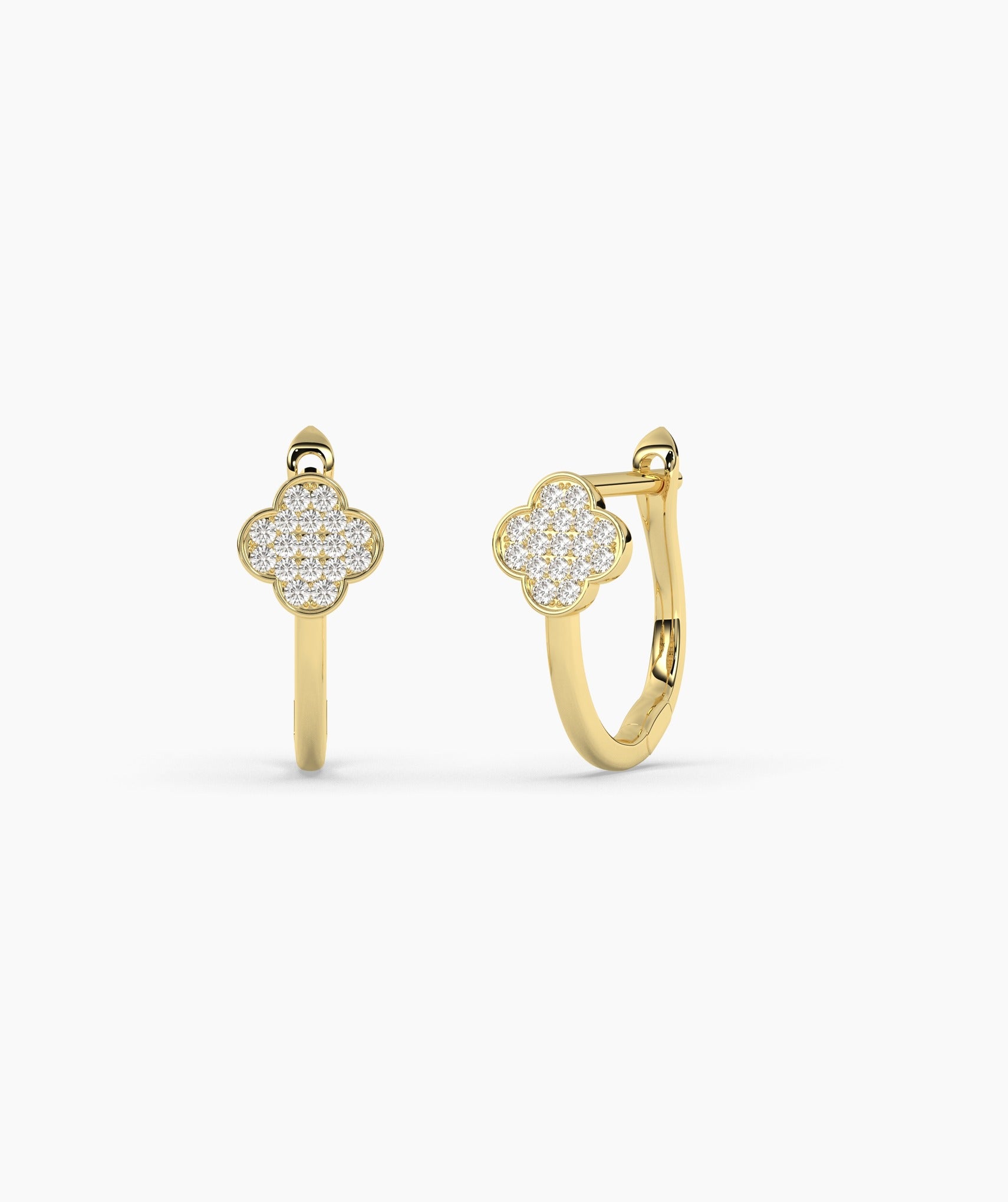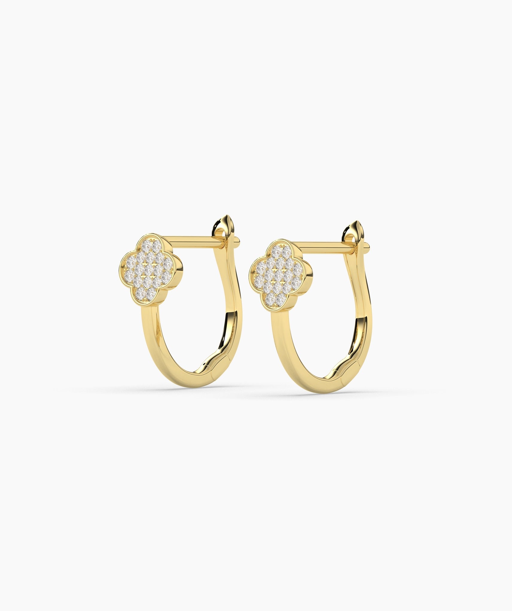 Discover the enchanting beauty of these 14K solid gold hoop earrings, adorned with a delicate floral pattern of dazzling diamonds.