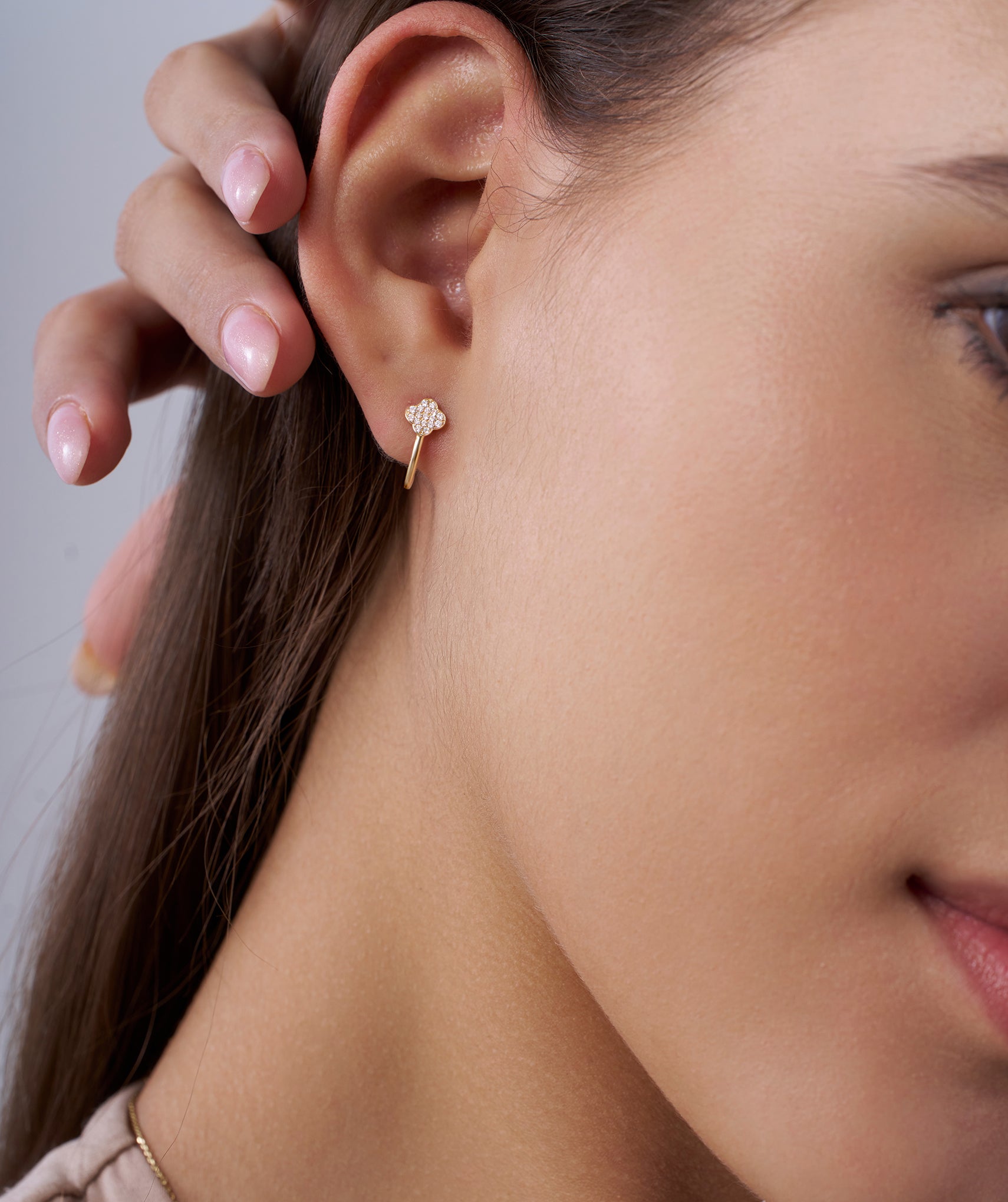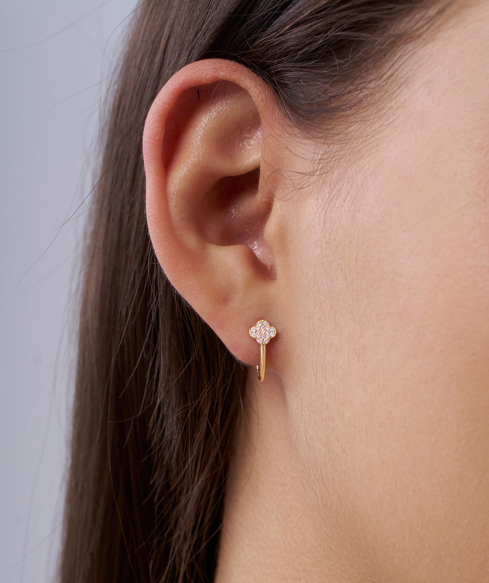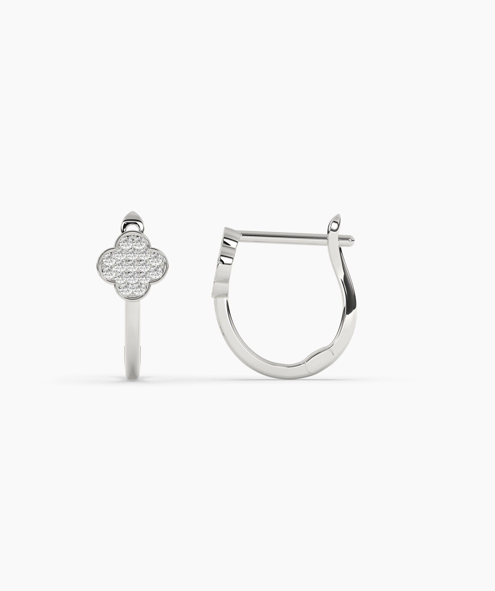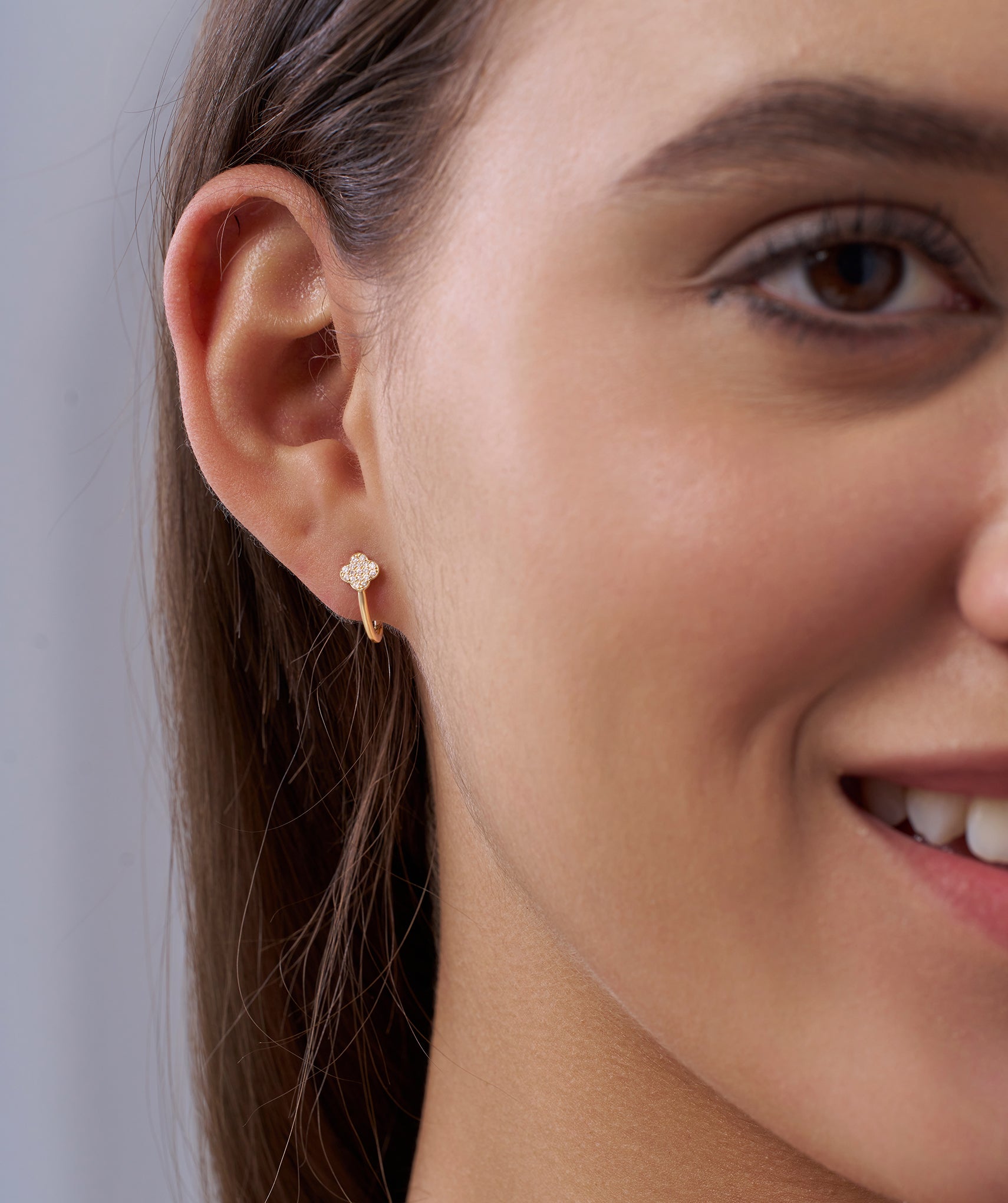 Discover the enchanting beauty of these 14K solid gold hoop earrings, adorned with a delicate floral pattern of dazzling diamonds.