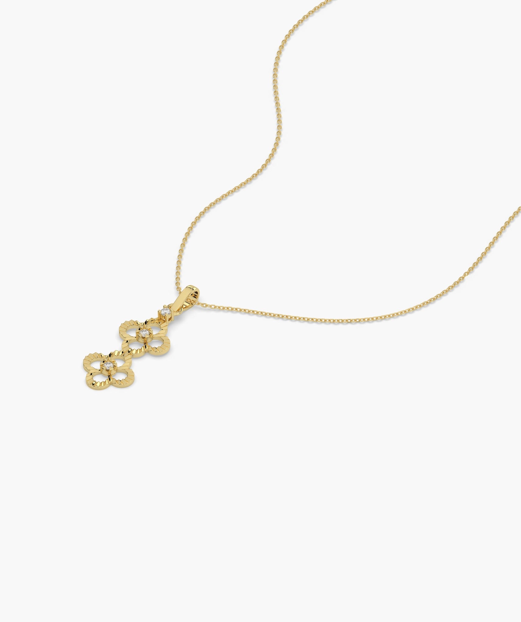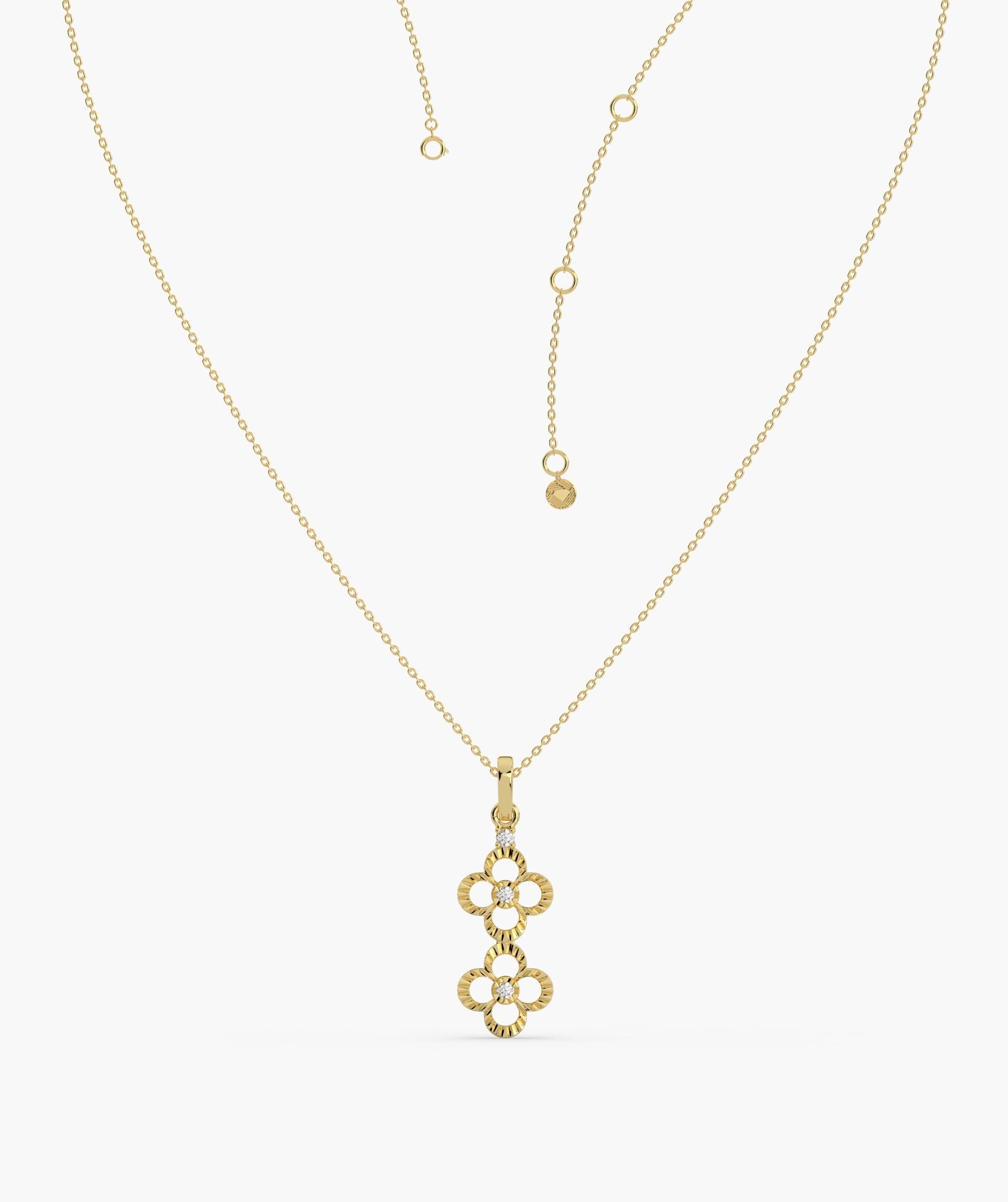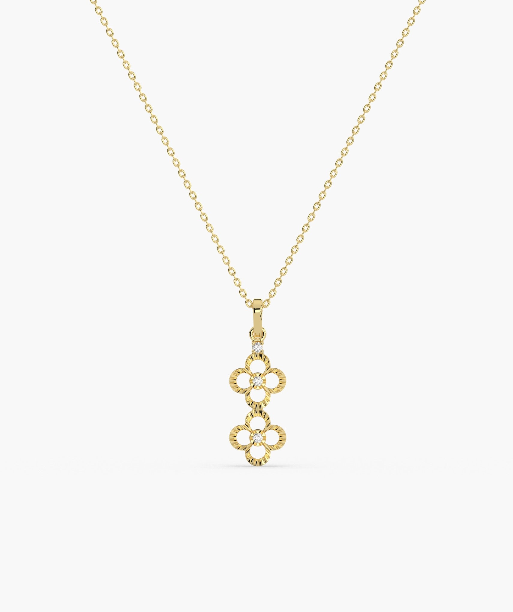 A graceful 14K solid gold necklace featuring a cascading floral pendant adorned with shimmering diamonds.