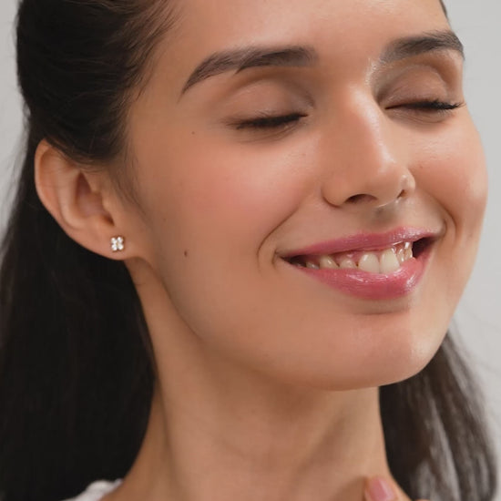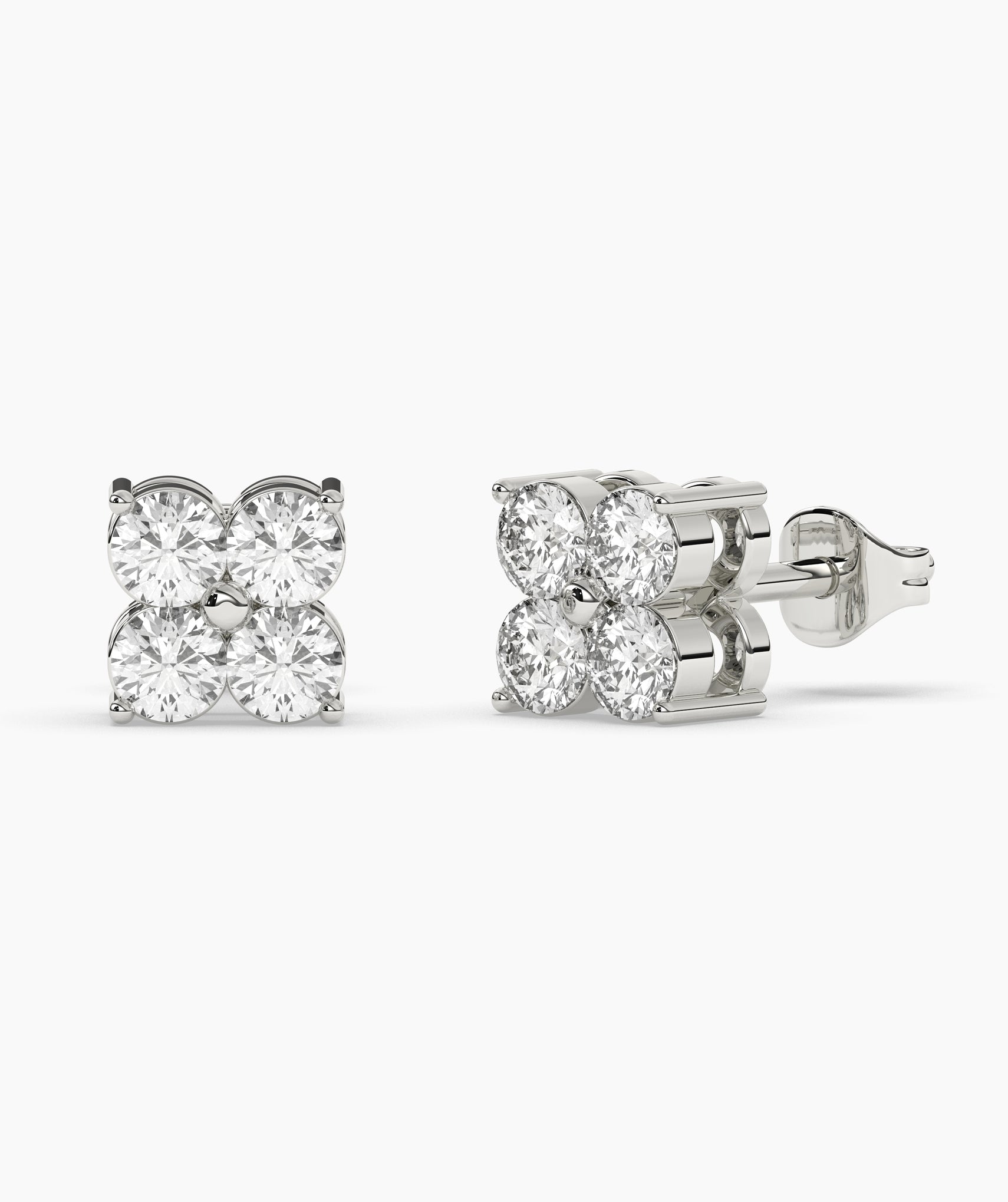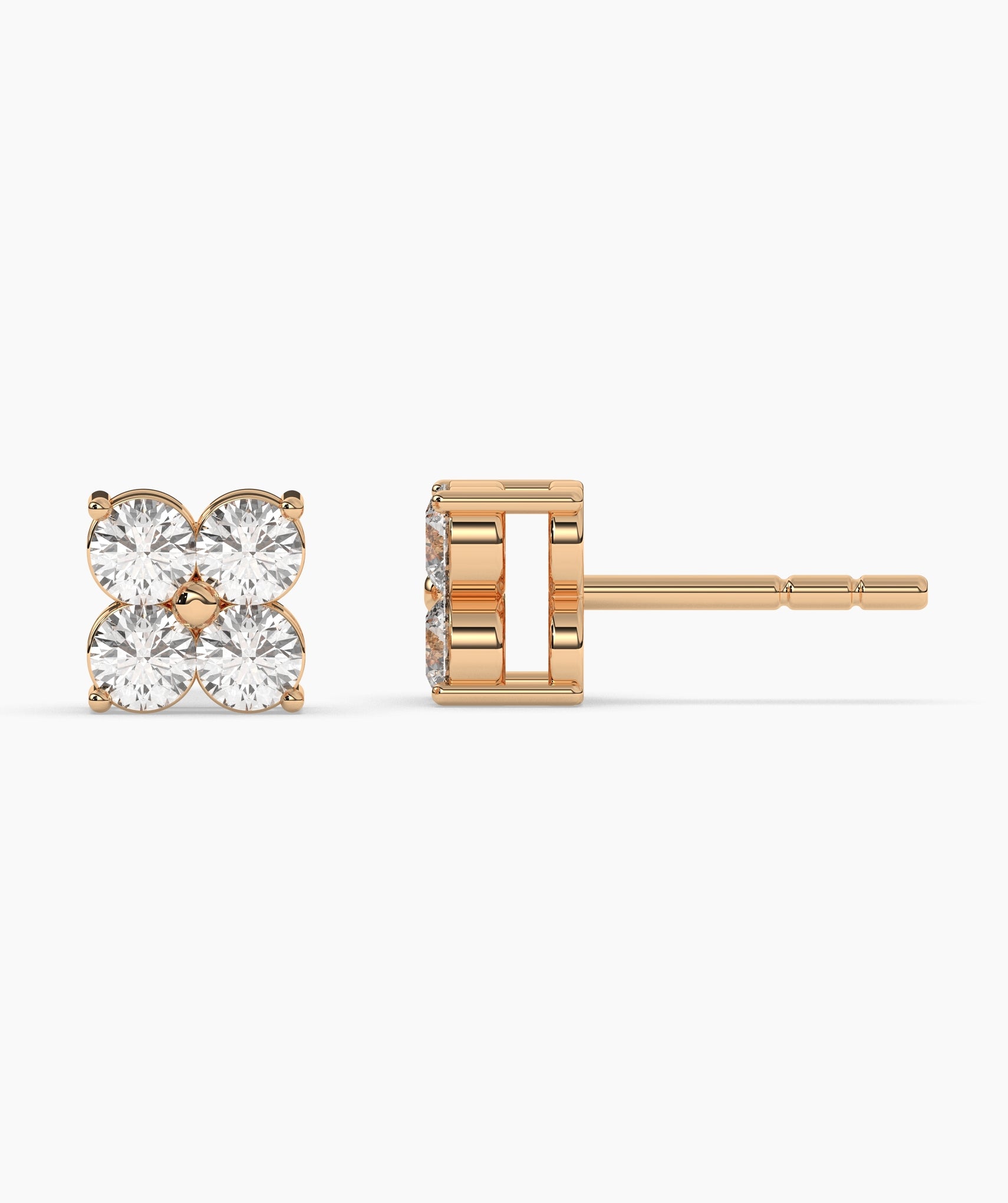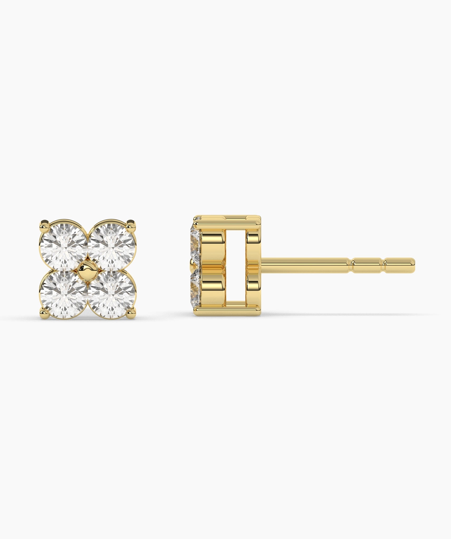 These elegant 14K gold stud earrings feature a dazzling floral cluster design, created with four brilliant round diamonds in each stud. Timeless and radiant, they add a sophisticated sparkle to any look — perfect for daily elegance or special occasions.