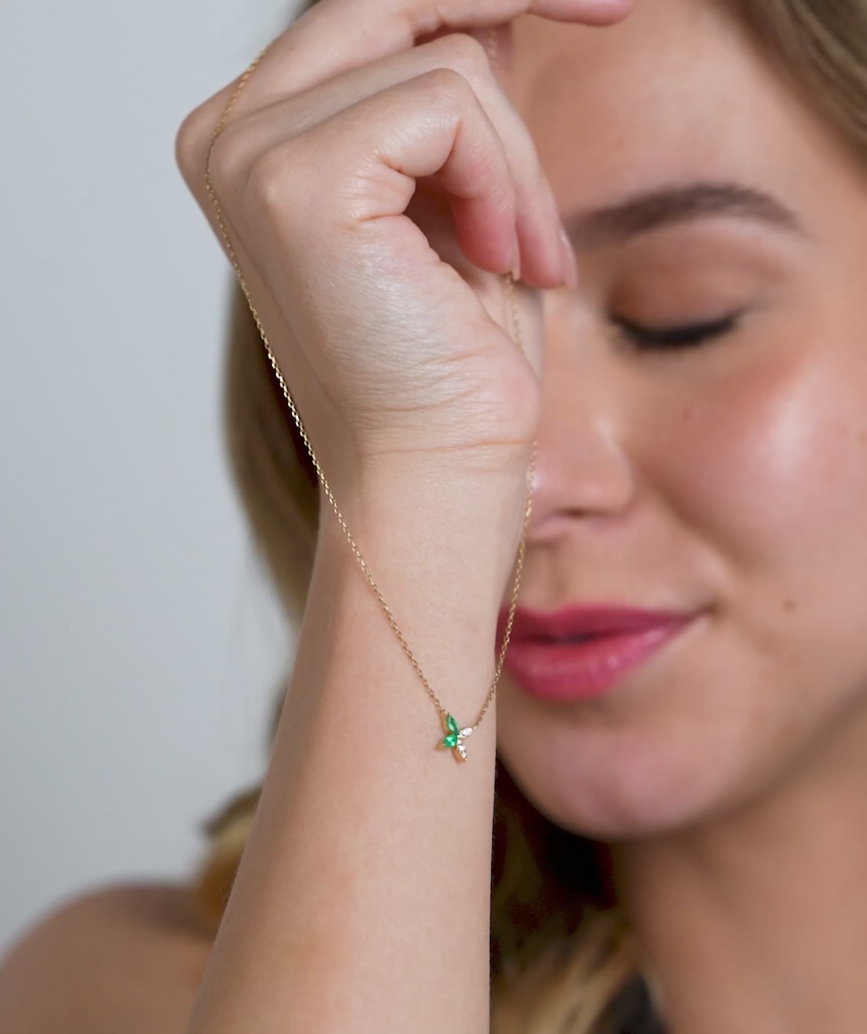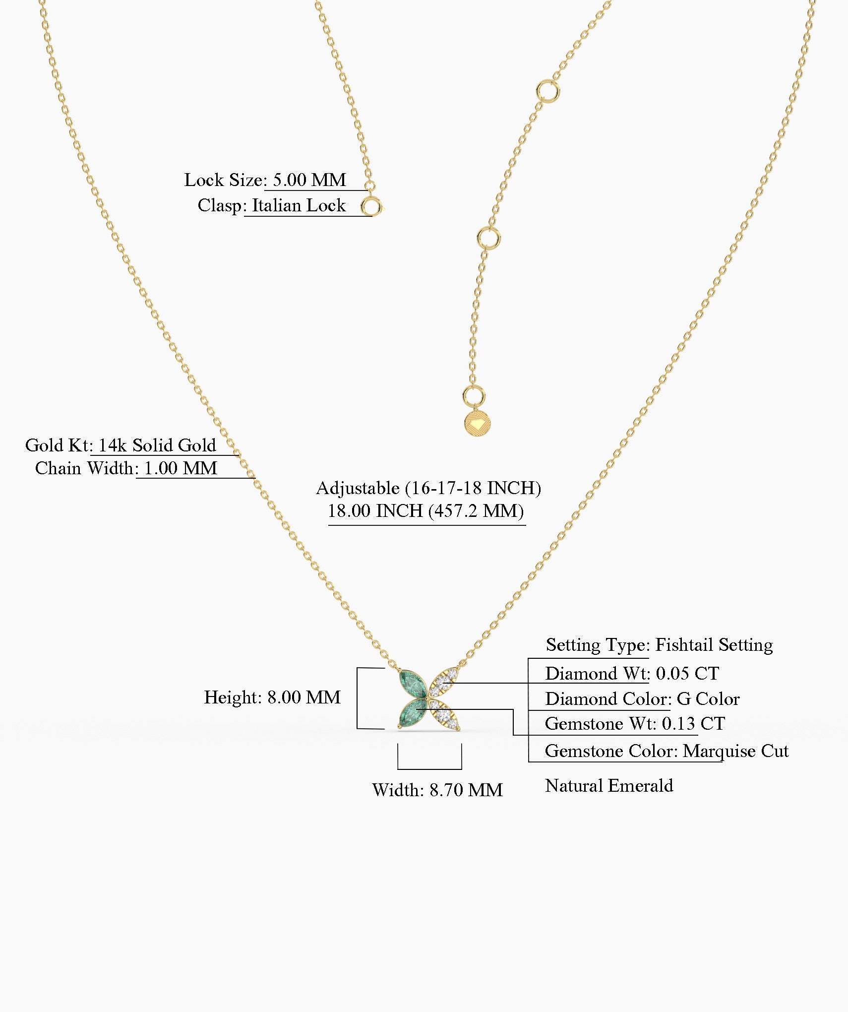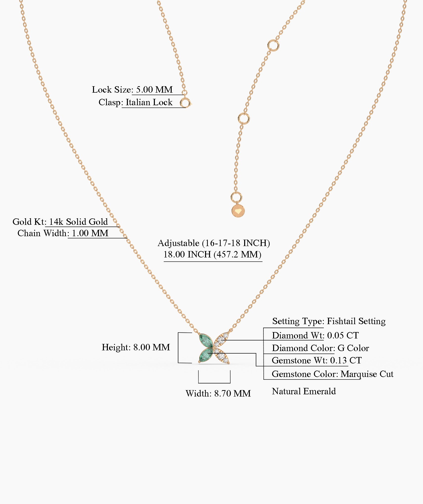 A delicate 14K solid gold necklace featuring a floral-inspired pendant adorned with marquise-cut diamonds and sparkling round diamonds.