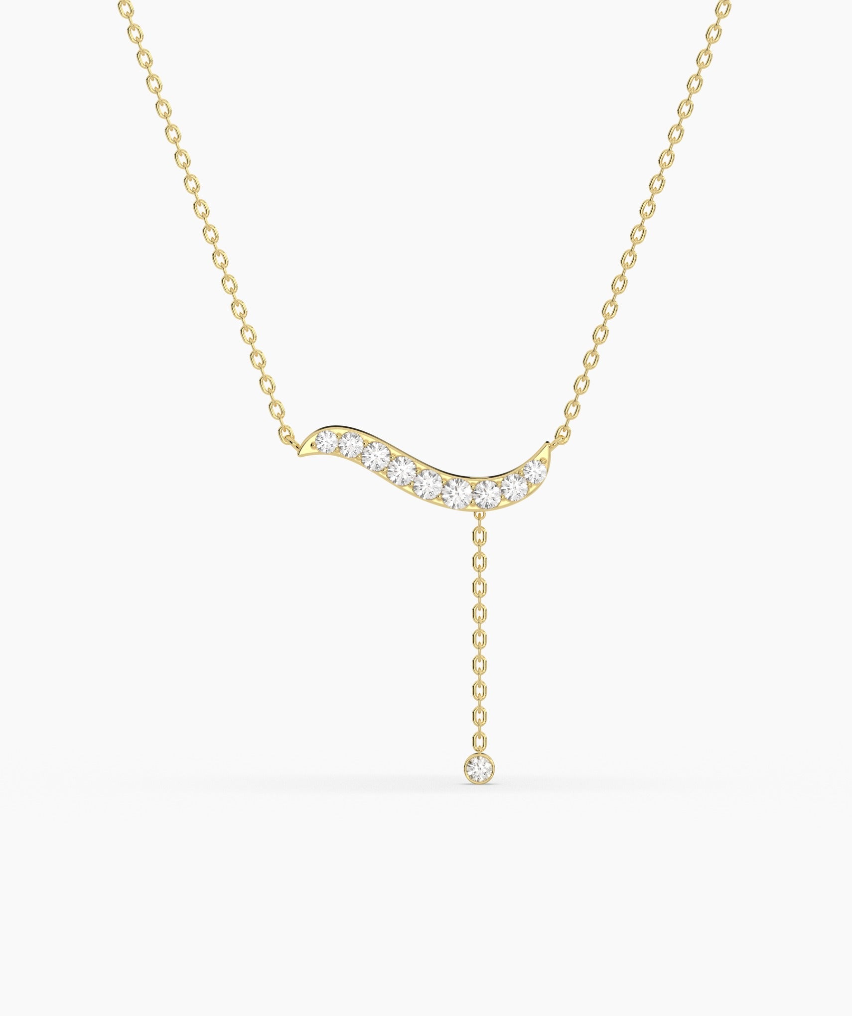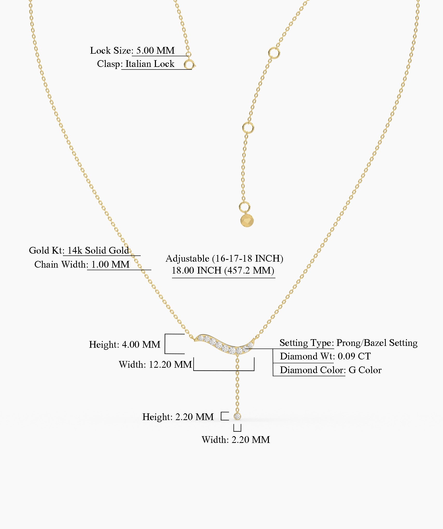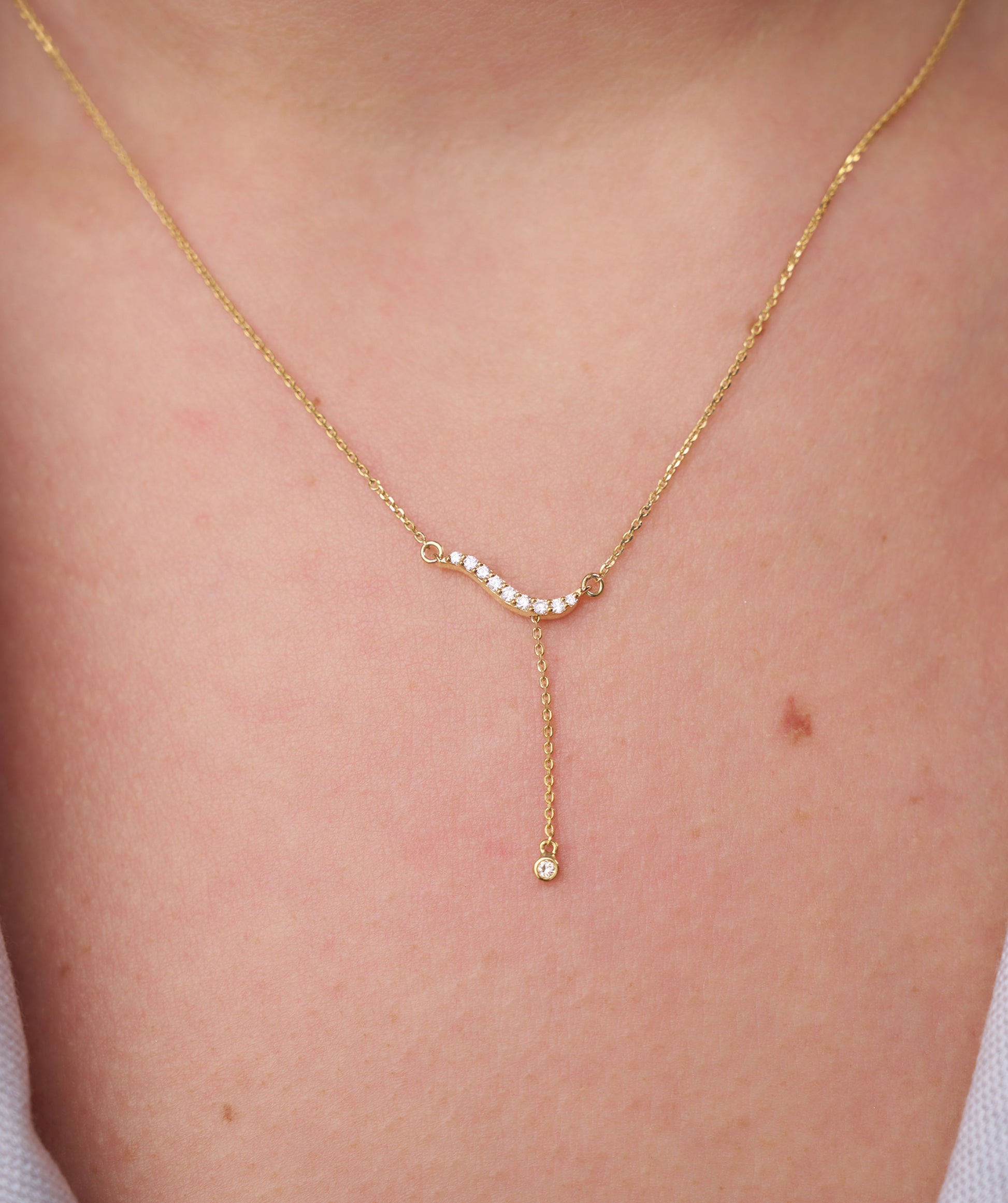 Inspired by the beauty of flowing waves, this gold necklace features sparkling diamonds and a dangling accent.