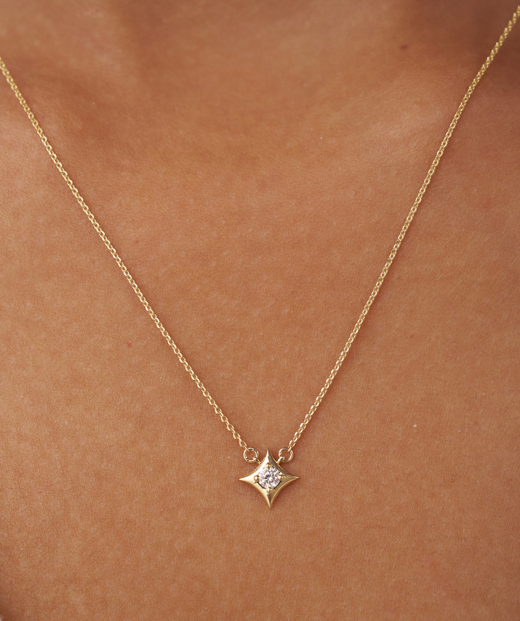 A radiant symbol of guidance and hope, this gold star pendant is adorned with a sparkling diamond for timeless sophistication.