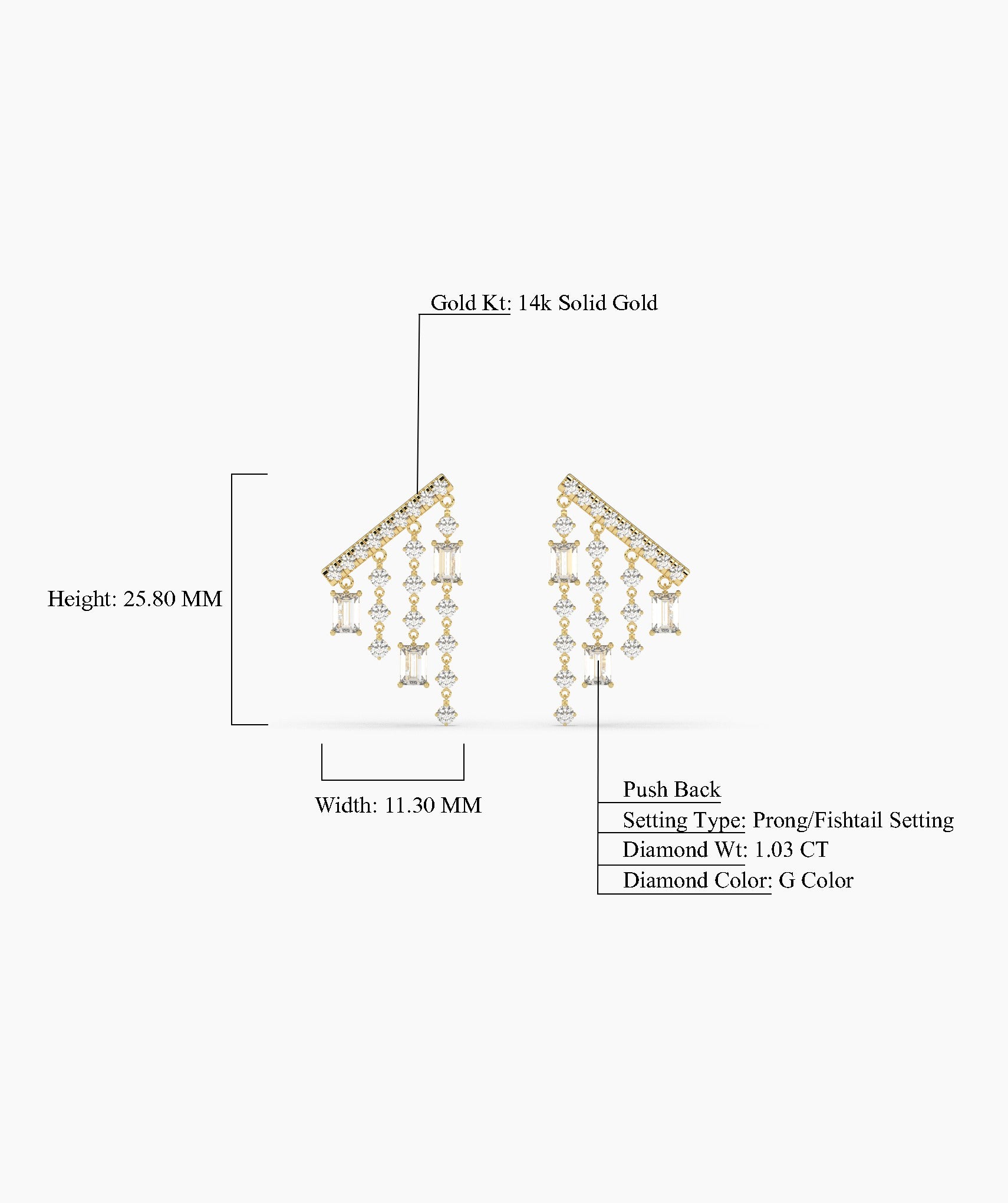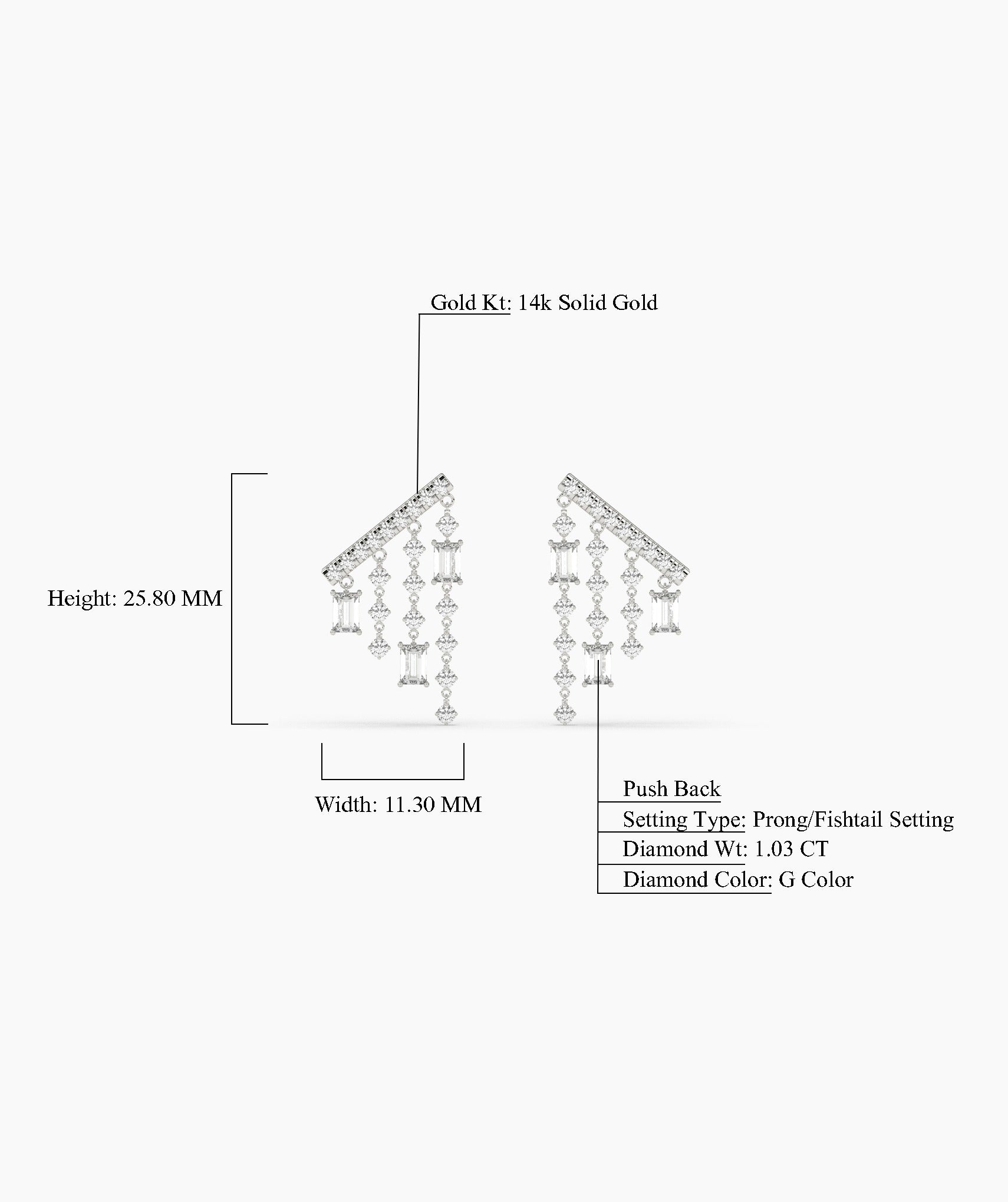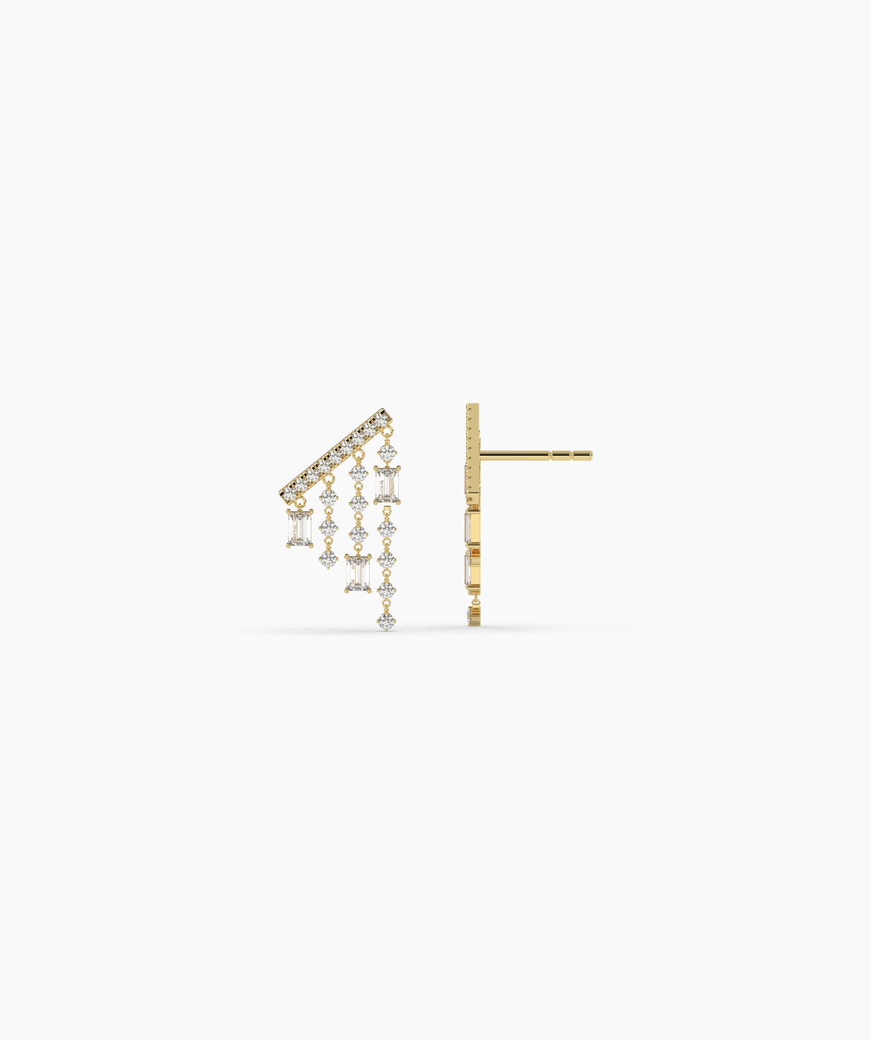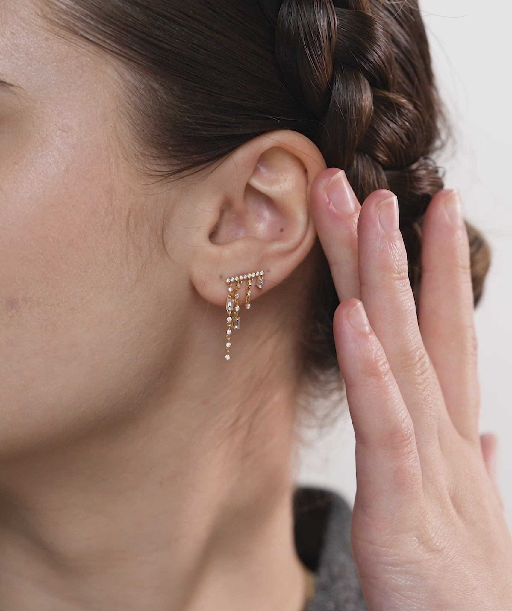 A stunning blend of sophistication and sparkle, these climber earrings drape beautifully with shimmering diamond strands.