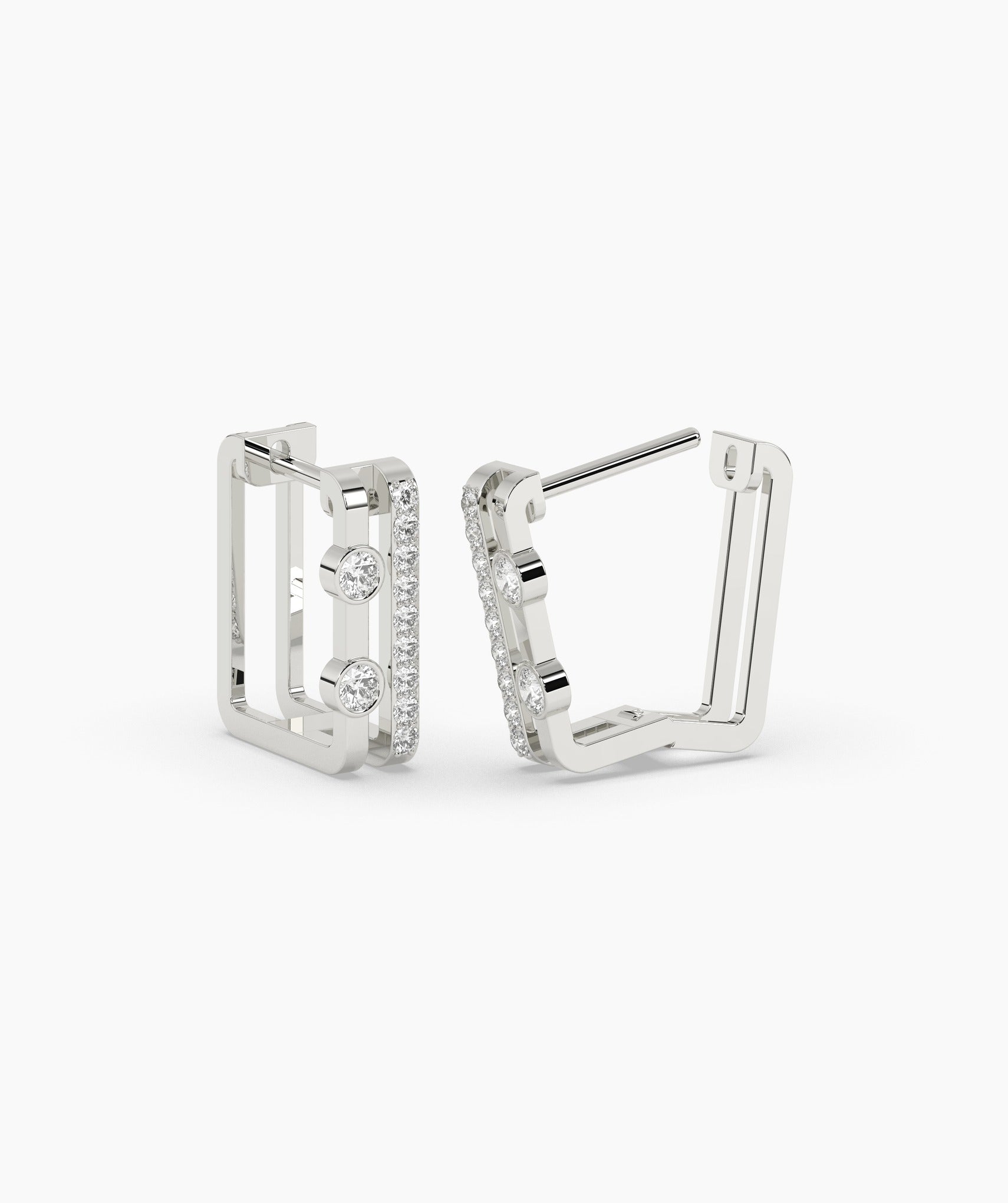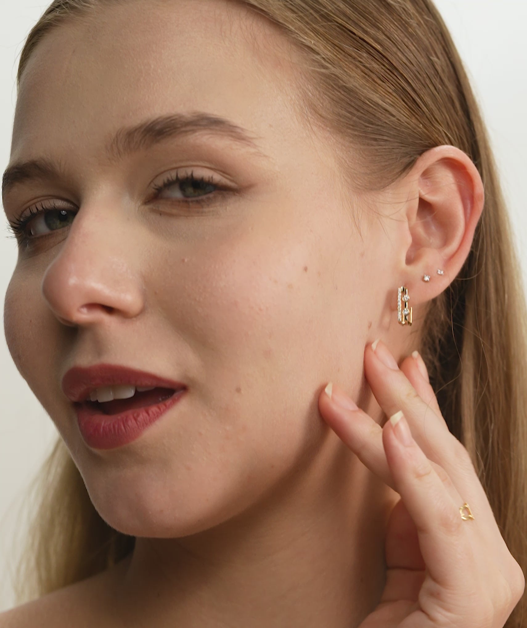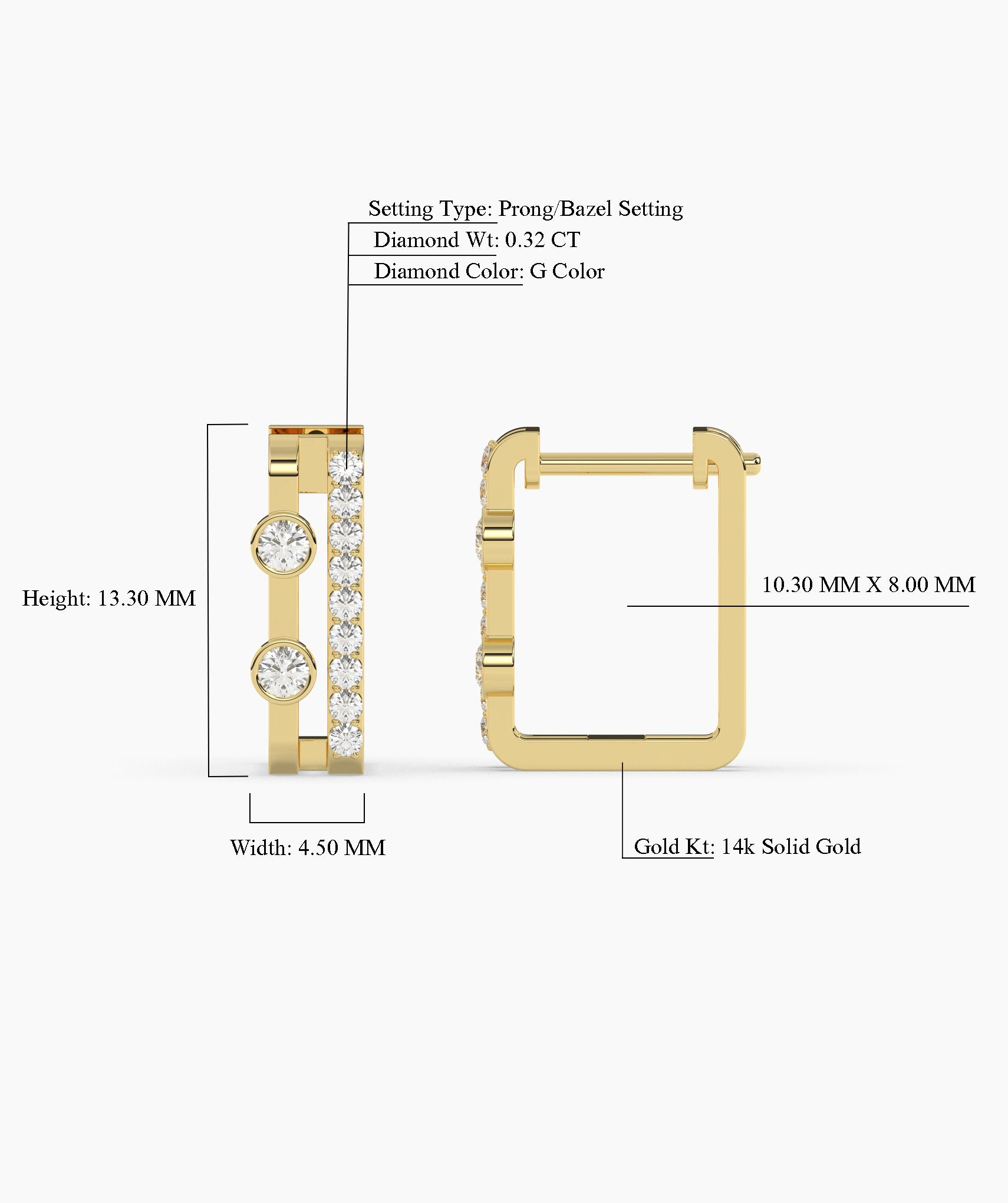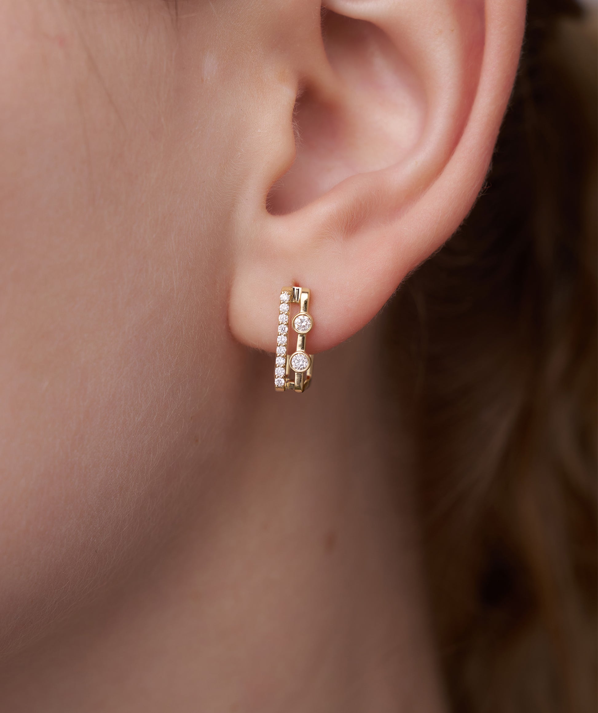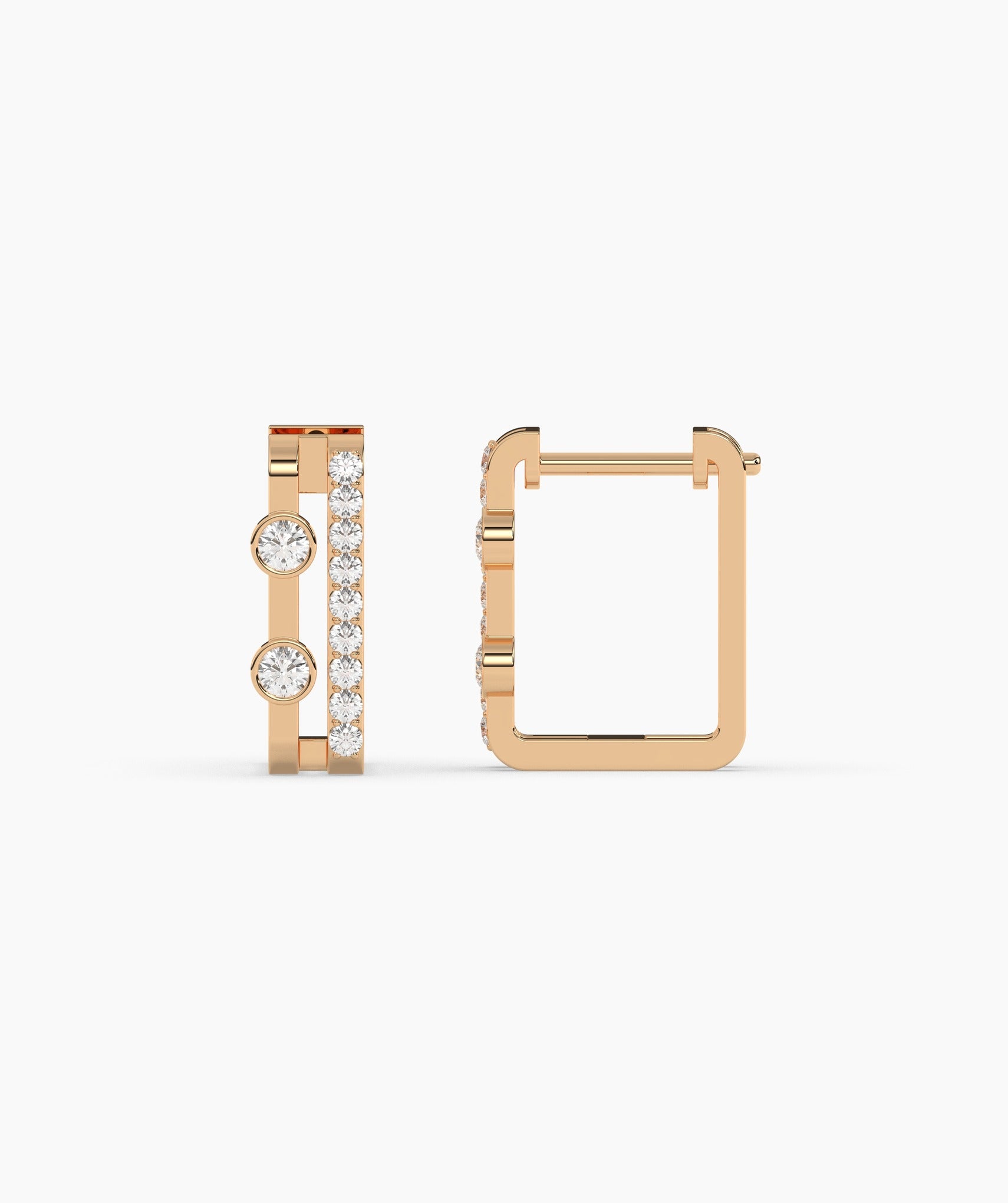 Designed for the modern jewelry lover, these gold & diamond huggie hoops combine a structured shape with brilliant diamonds, perfect for everyday elegance.