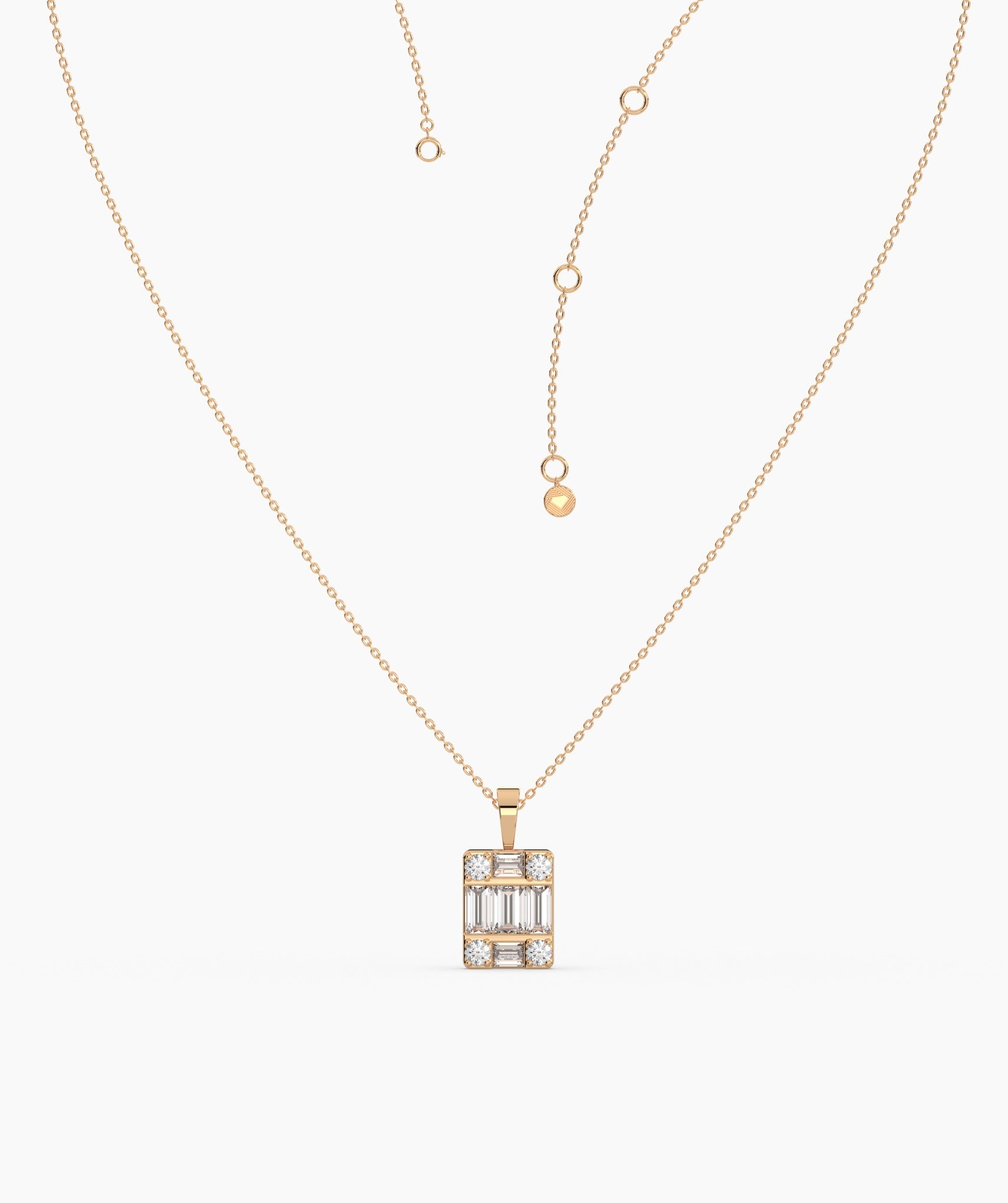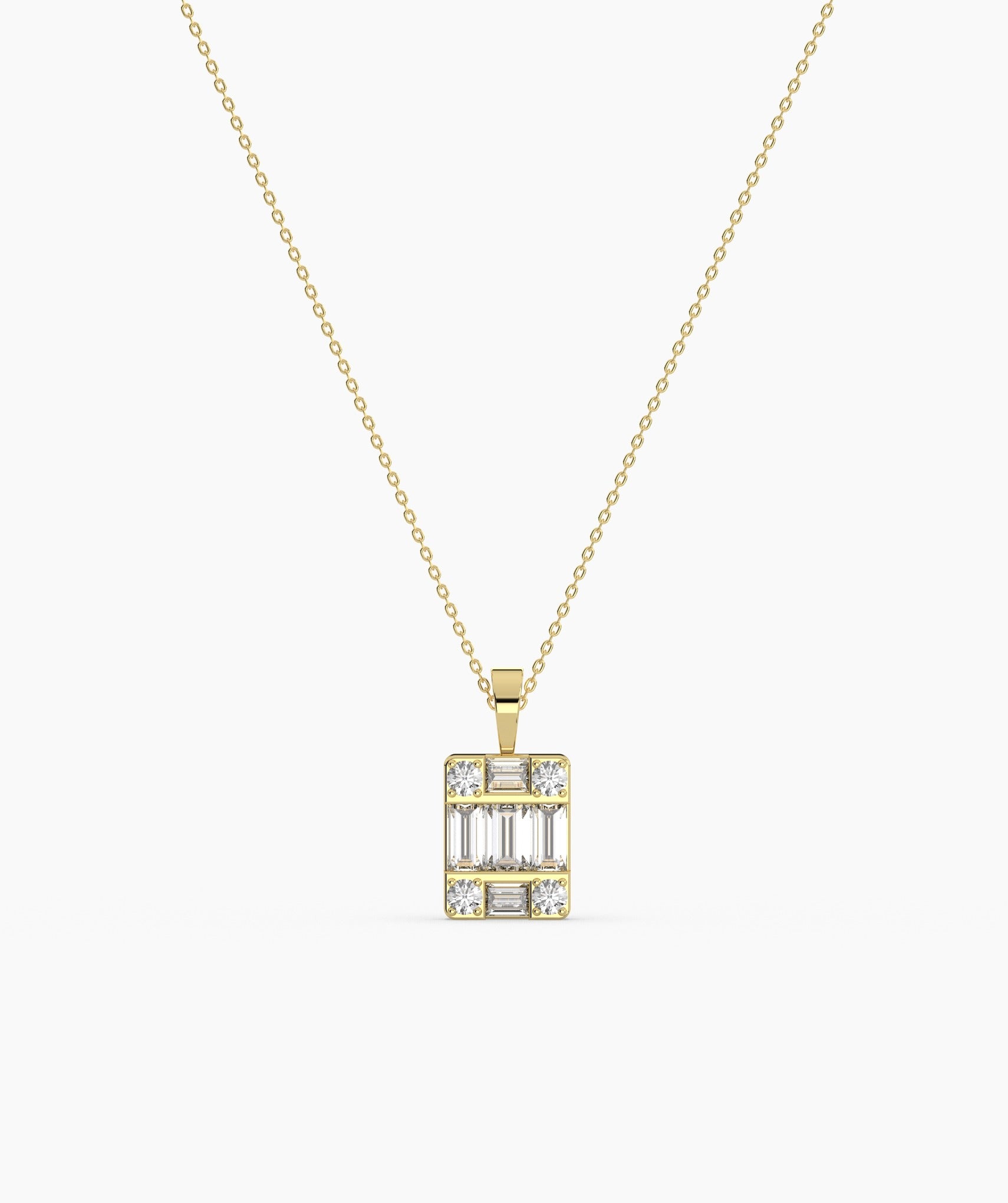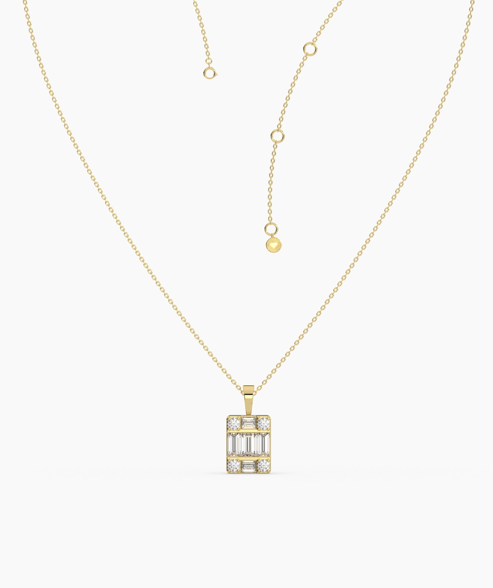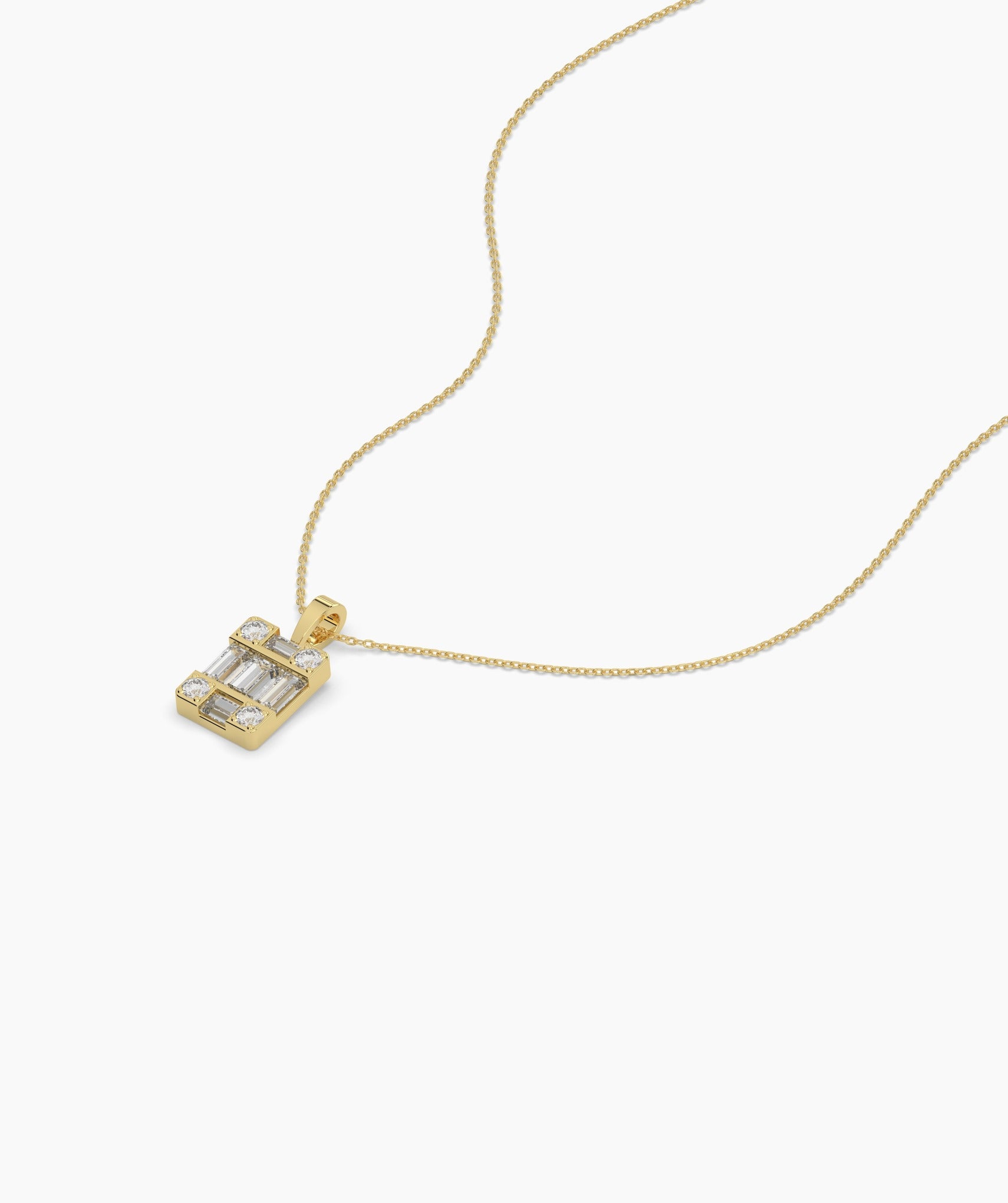 This geometric diamond pendant blends modern elegance with classic charm, set in lustrous yellow gold.