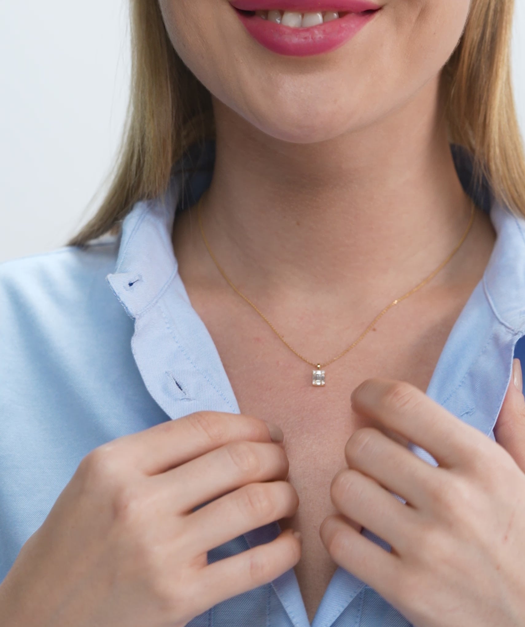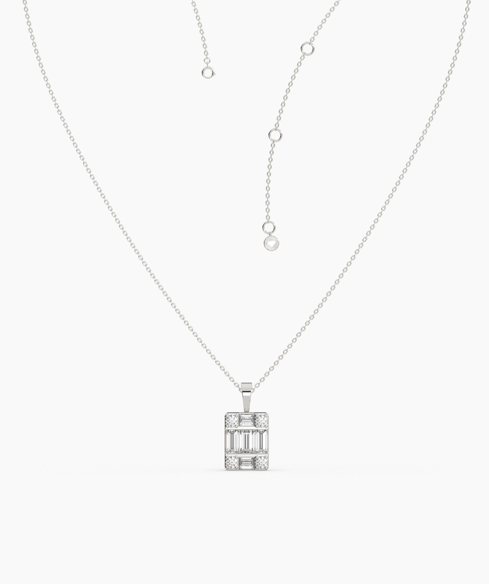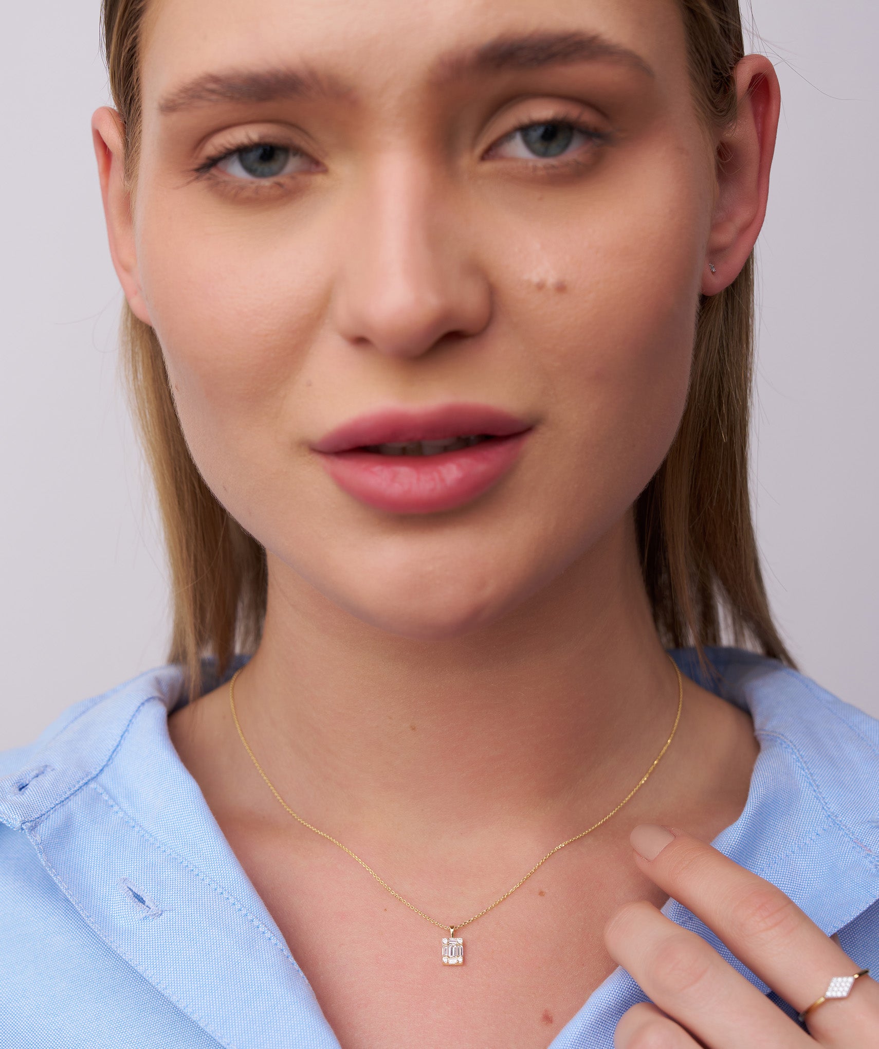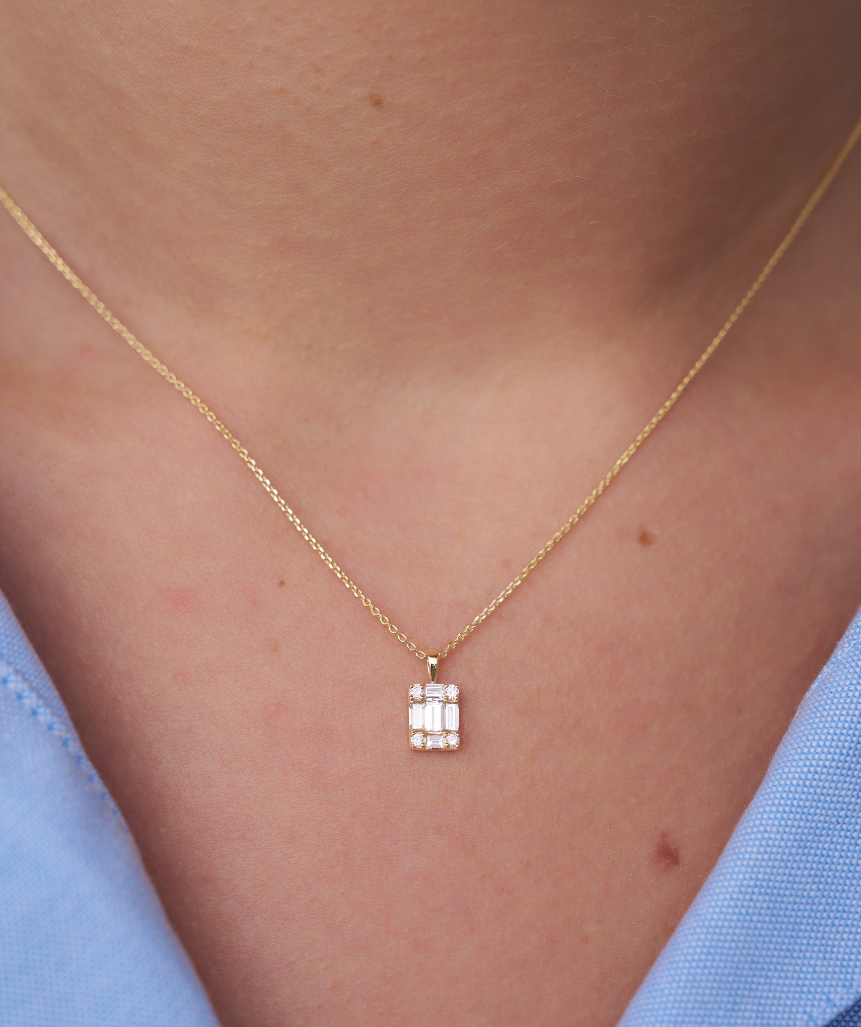 This geometric diamond pendant blends modern elegance with classic charm, set in lustrous yellow gold.