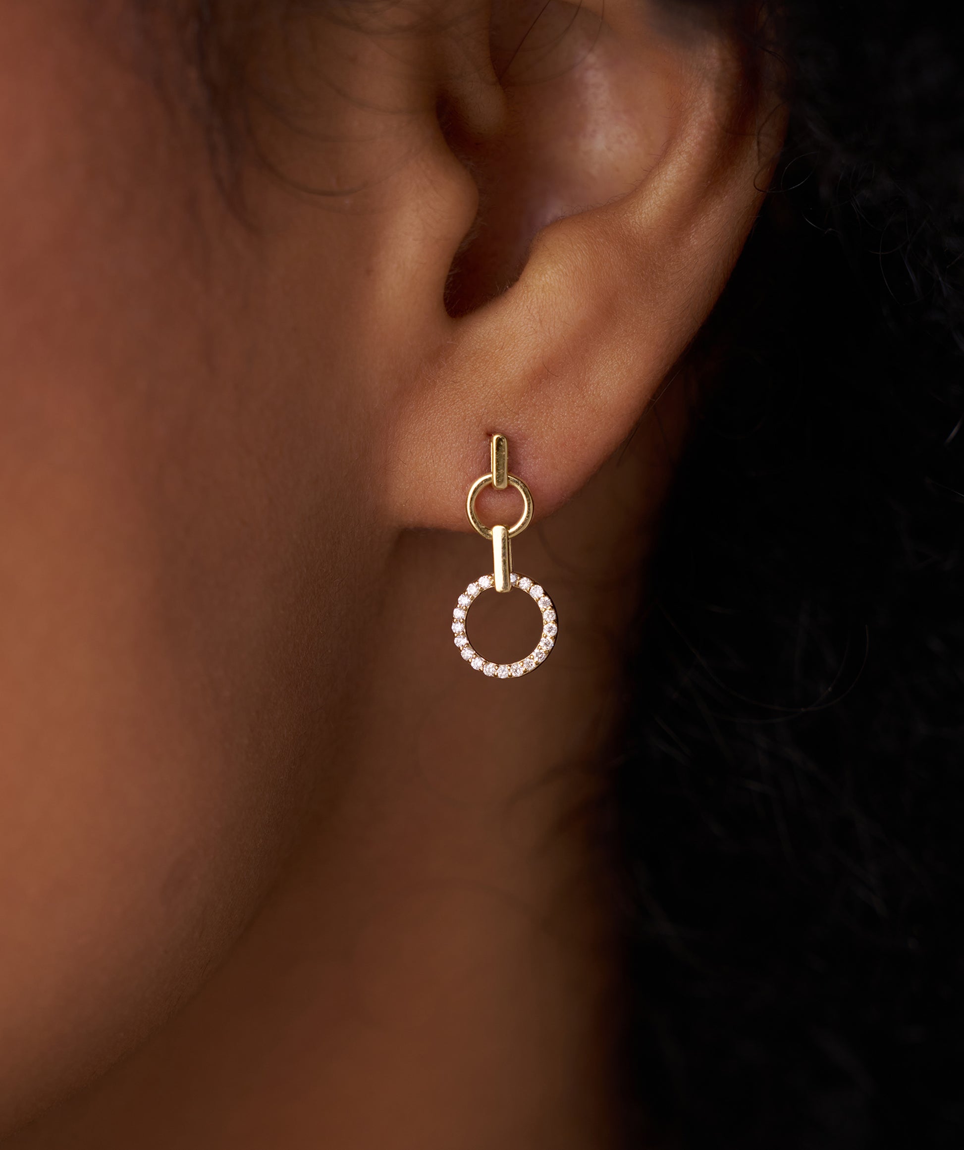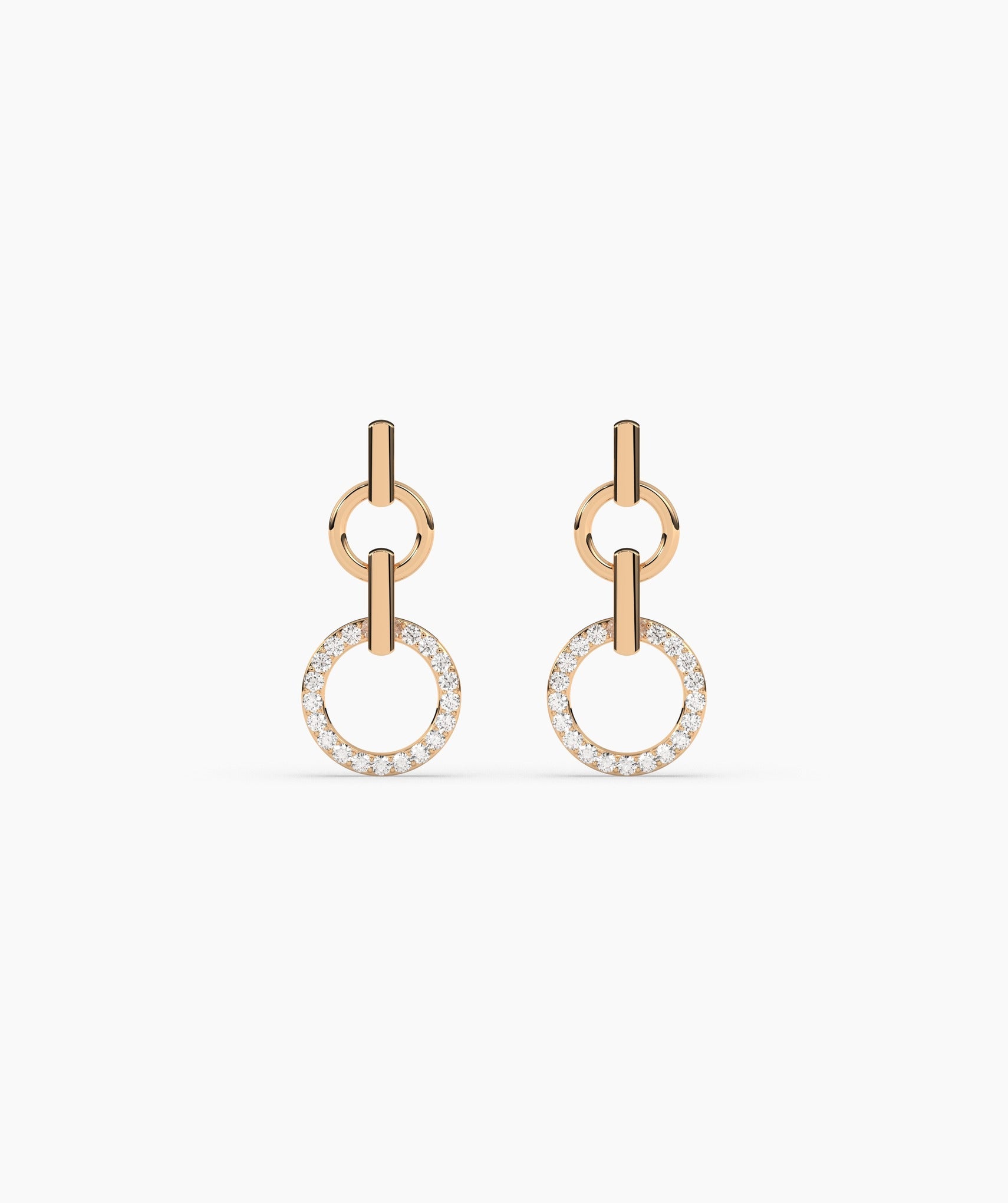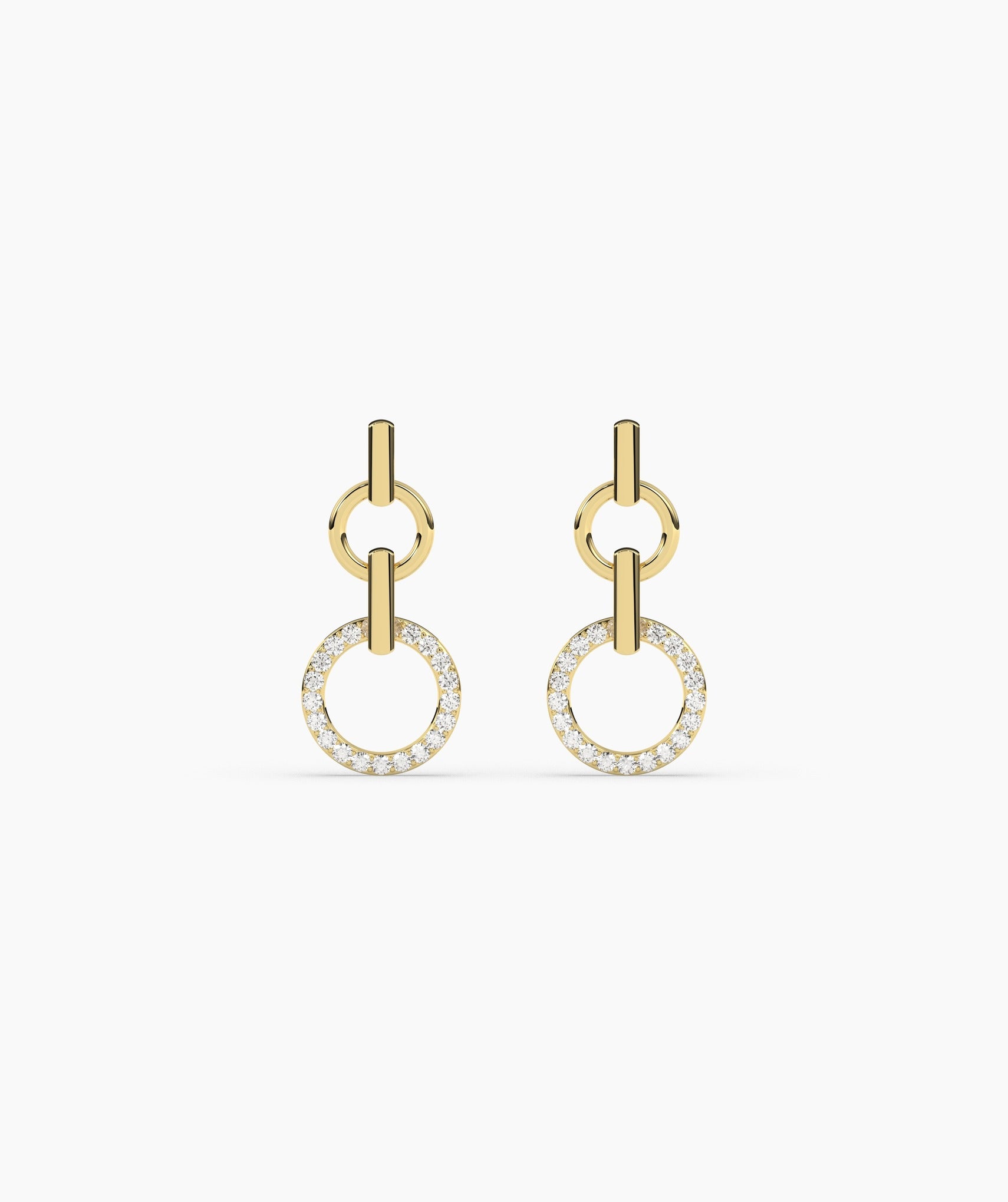 A stunning blend of minimalism and sparkle, these gold earrings feature linked circles with dazzling diamond accents.