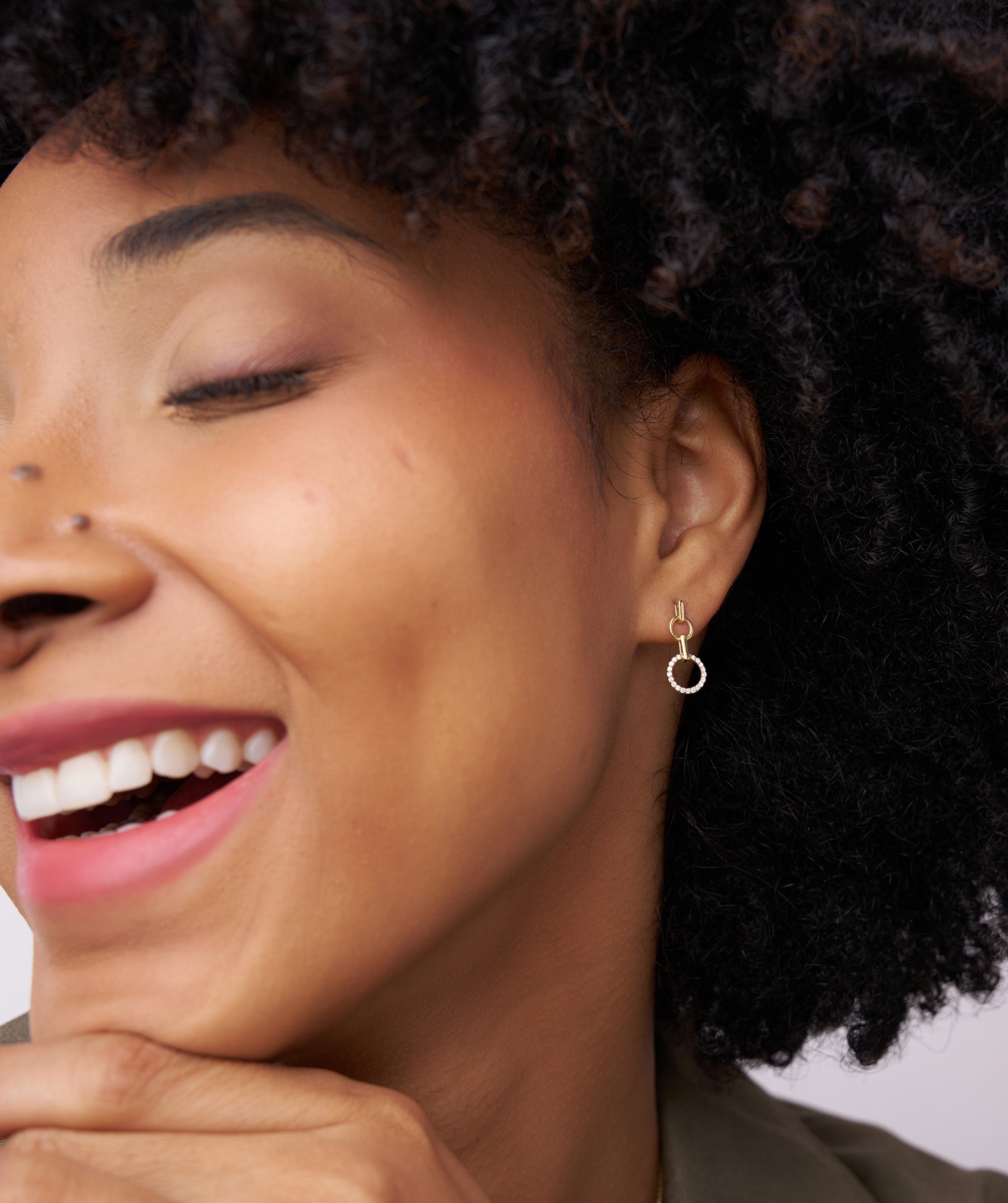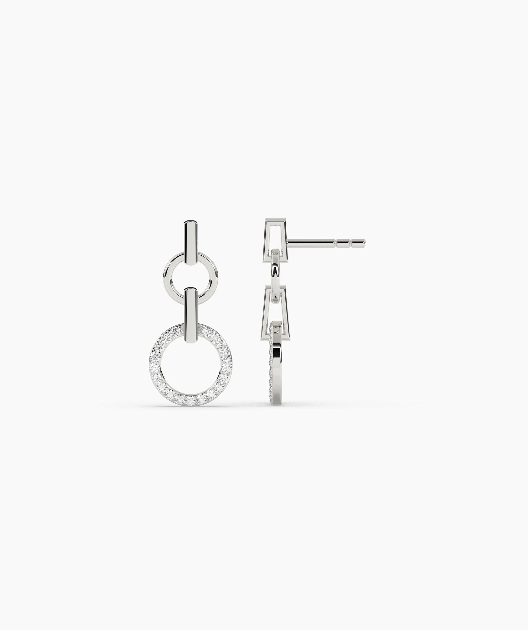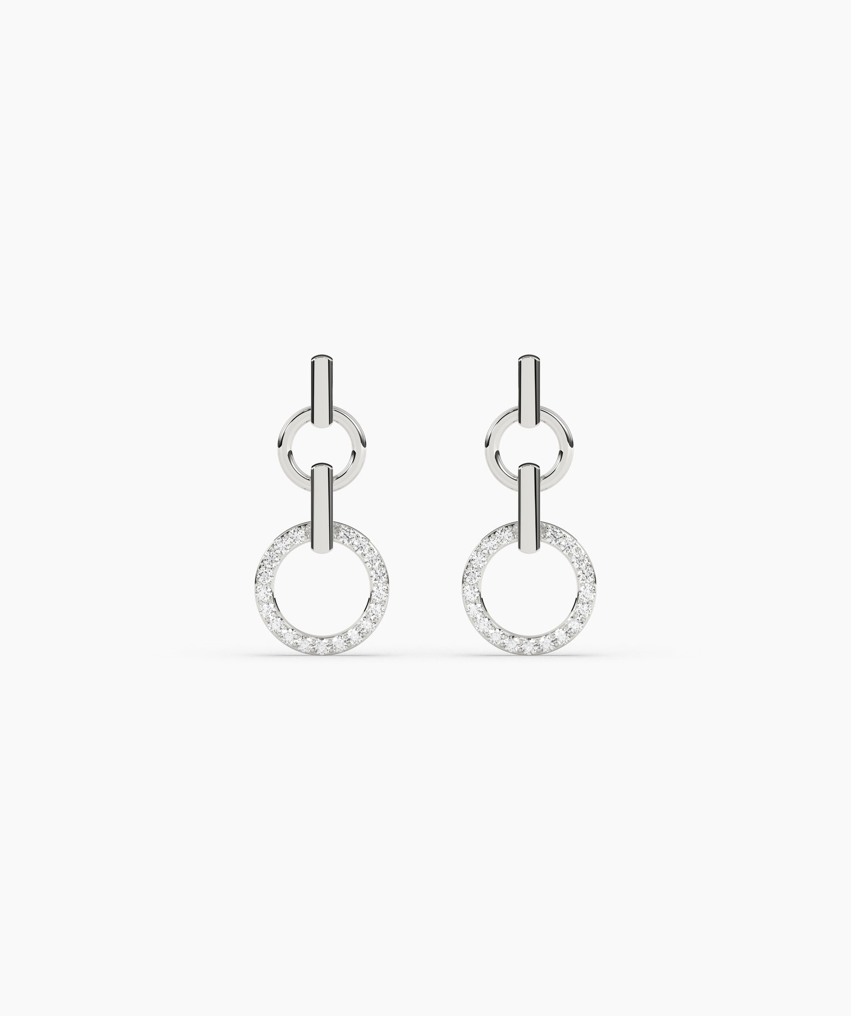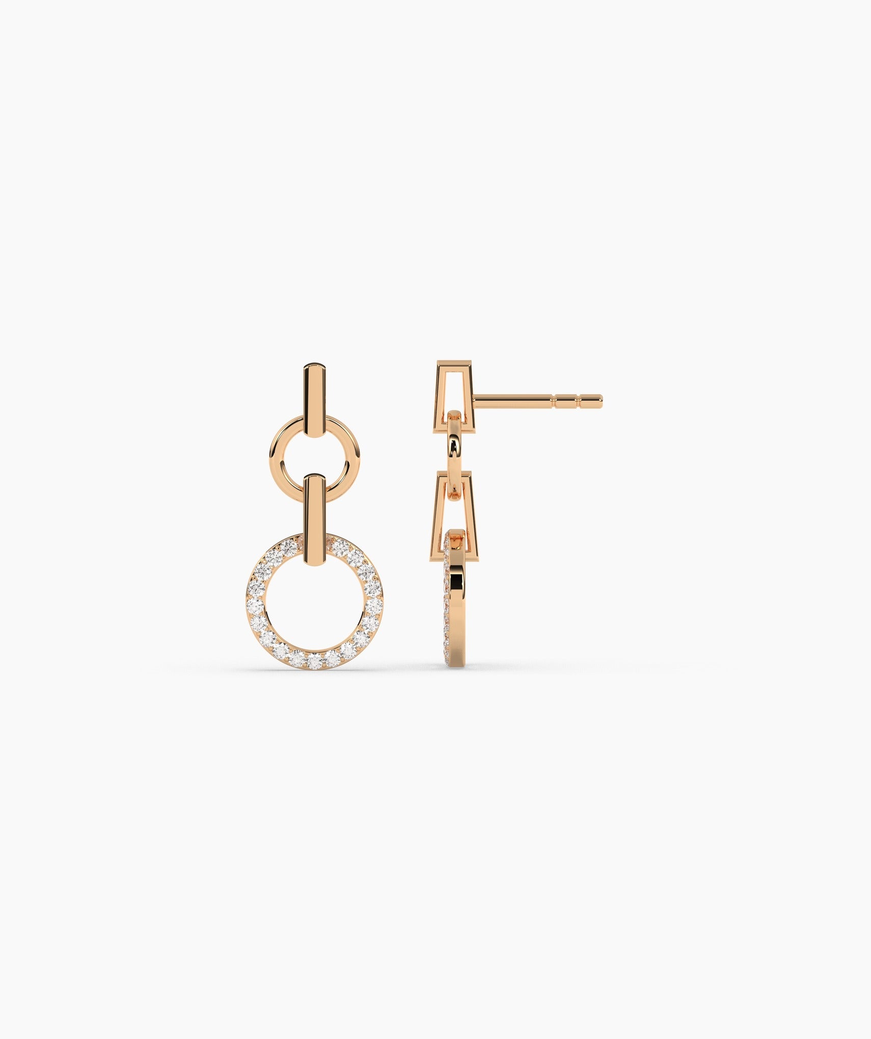 A stunning blend of minimalism and sparkle, these gold earrings feature linked circles with dazzling diamond accents.