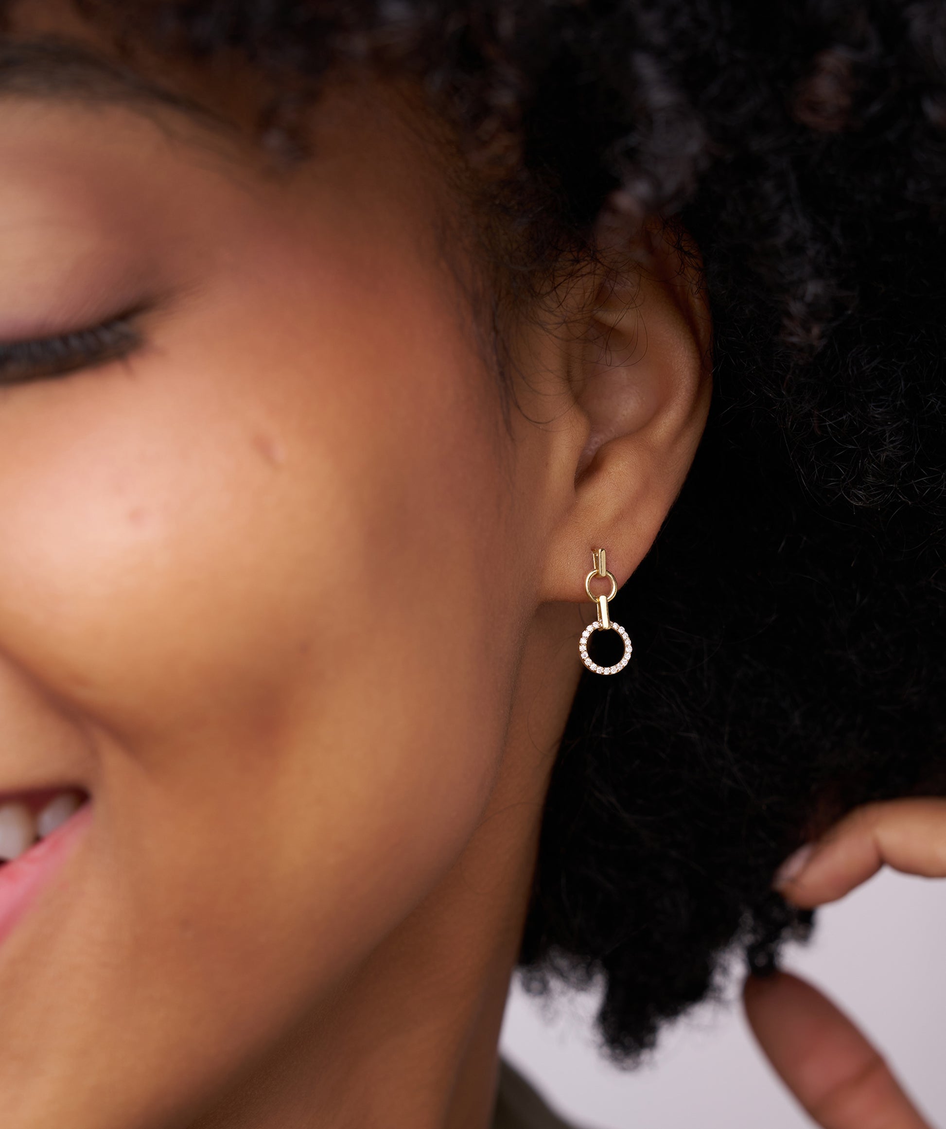 Gold and Diamond Circle Drop Earrings