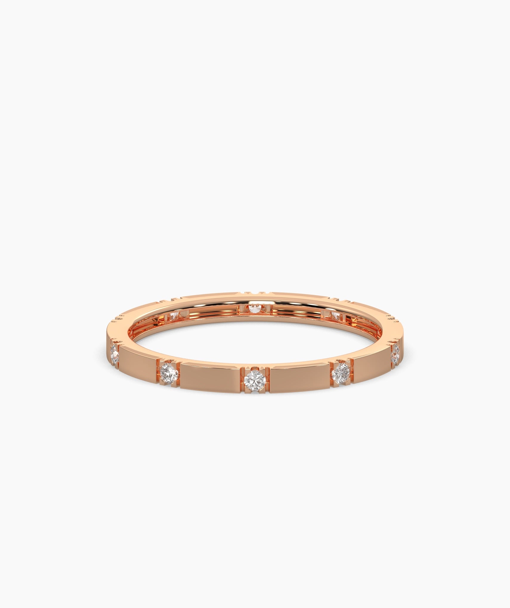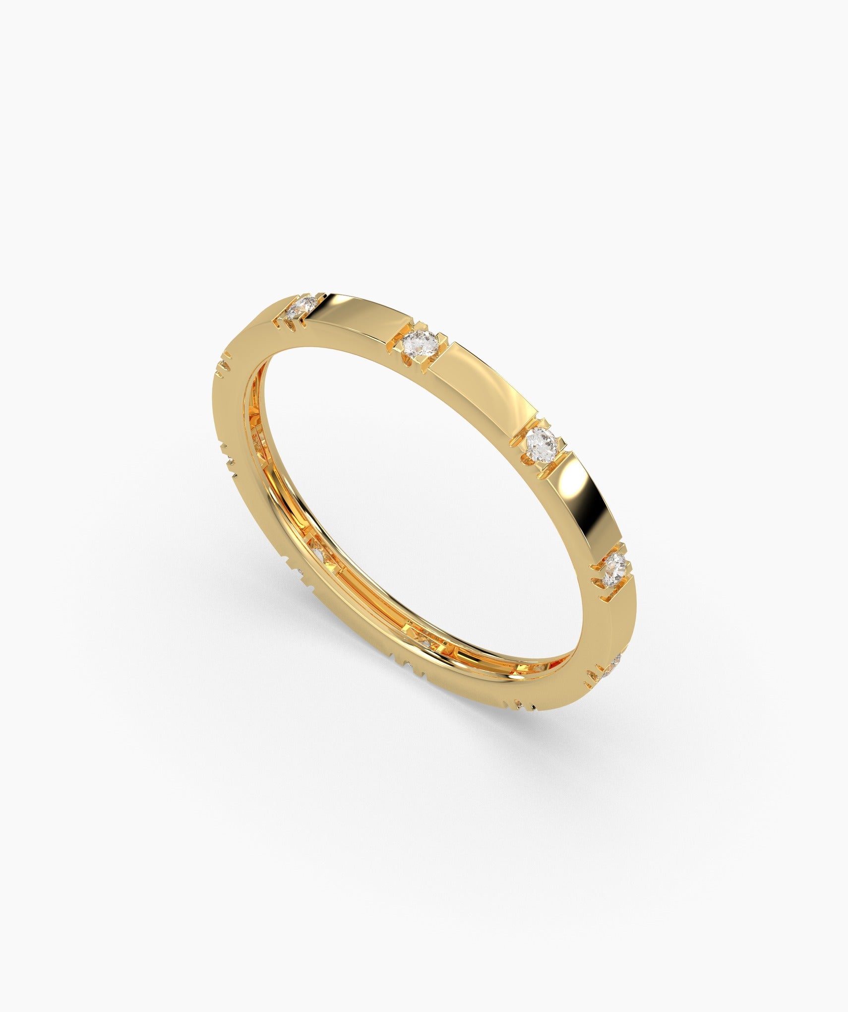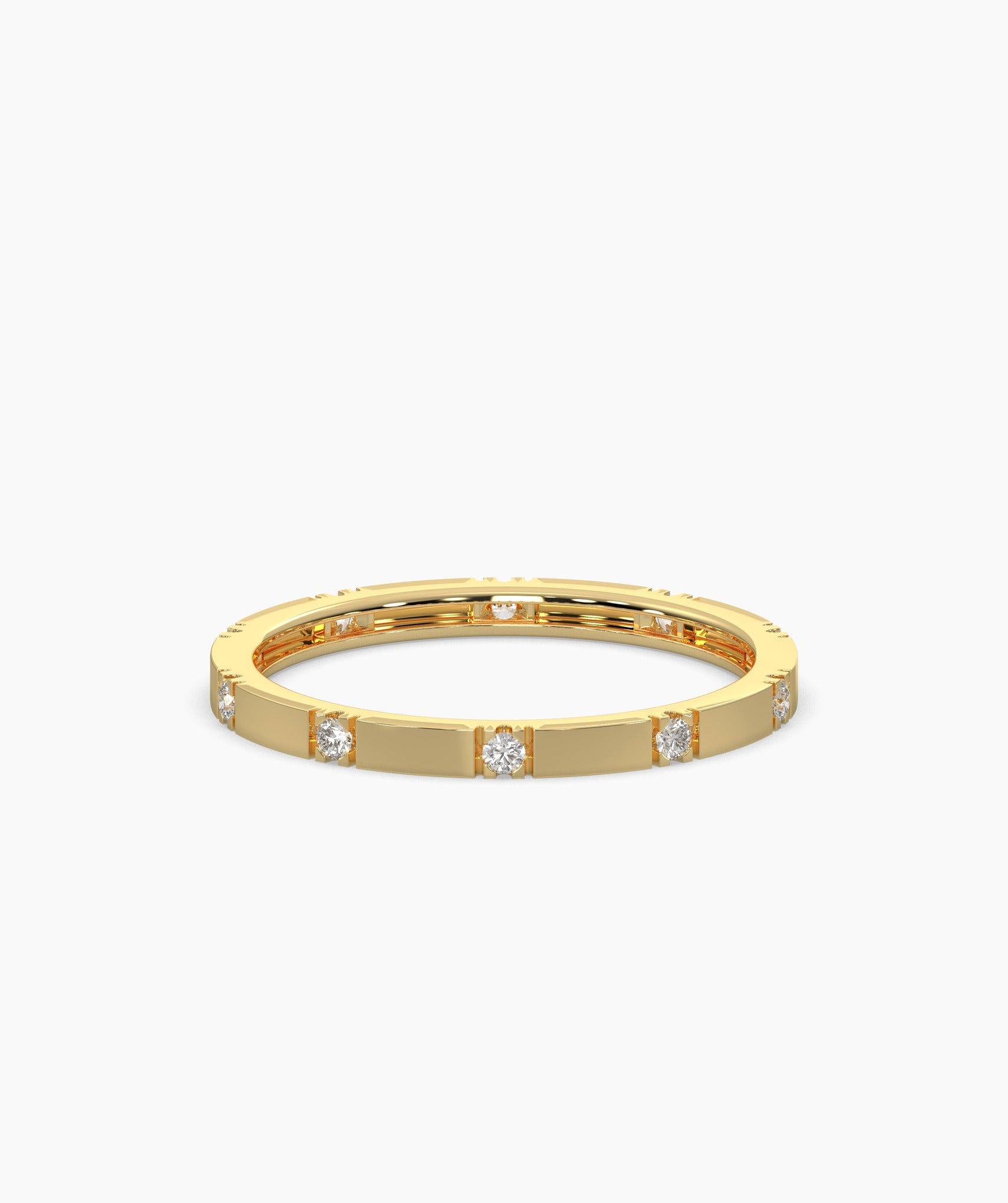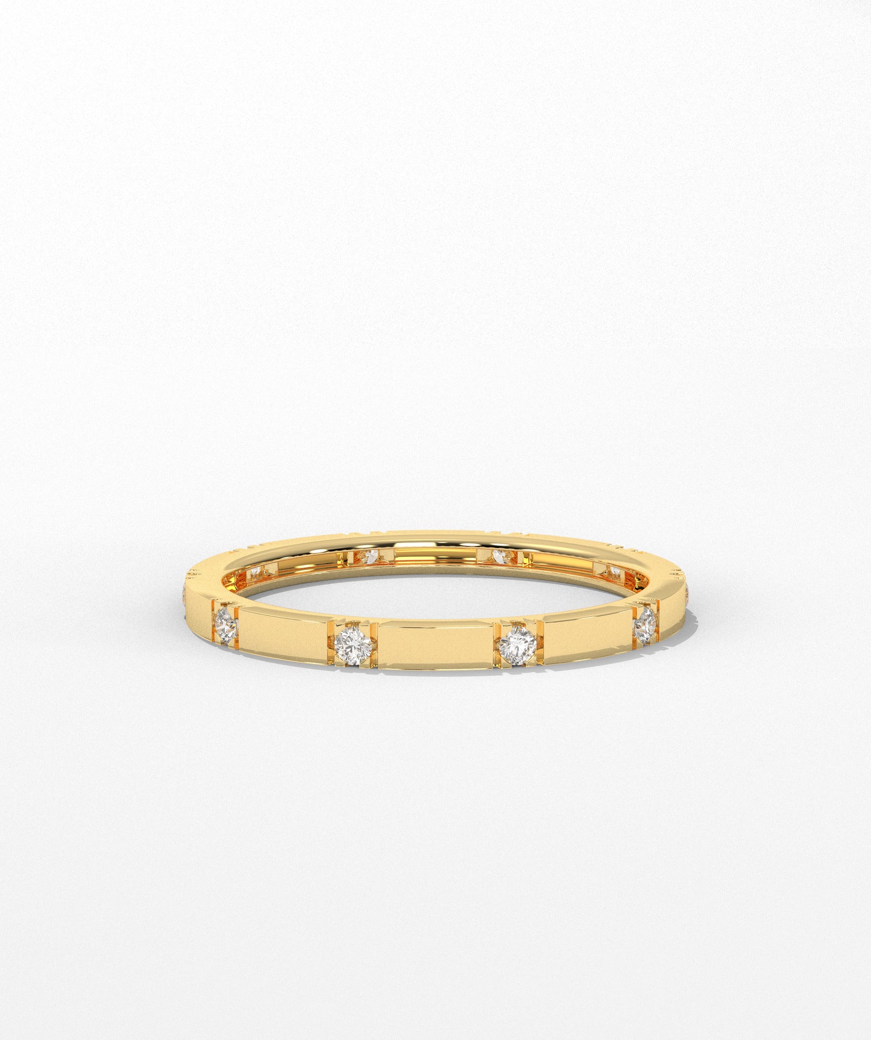 This dainty diamond ring is crafted in 14K gold with evenly spaced diamonds, offering a chic and timeless look. Ideal for daily wear or special occasions.