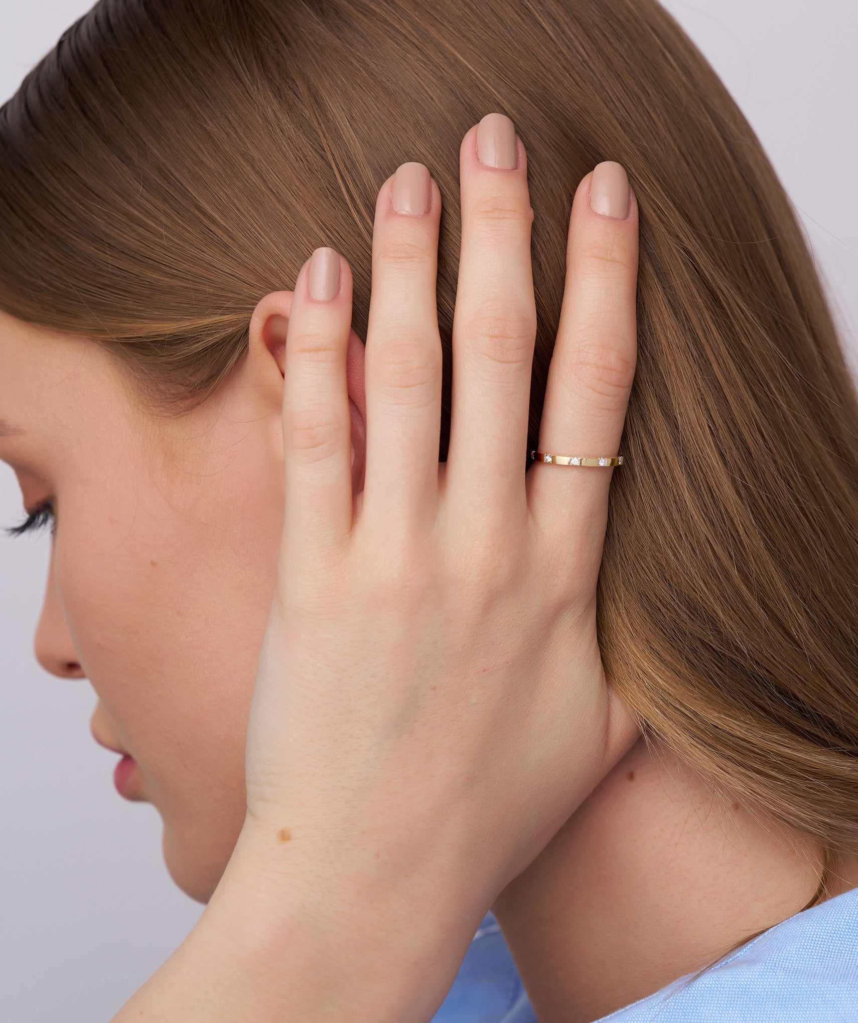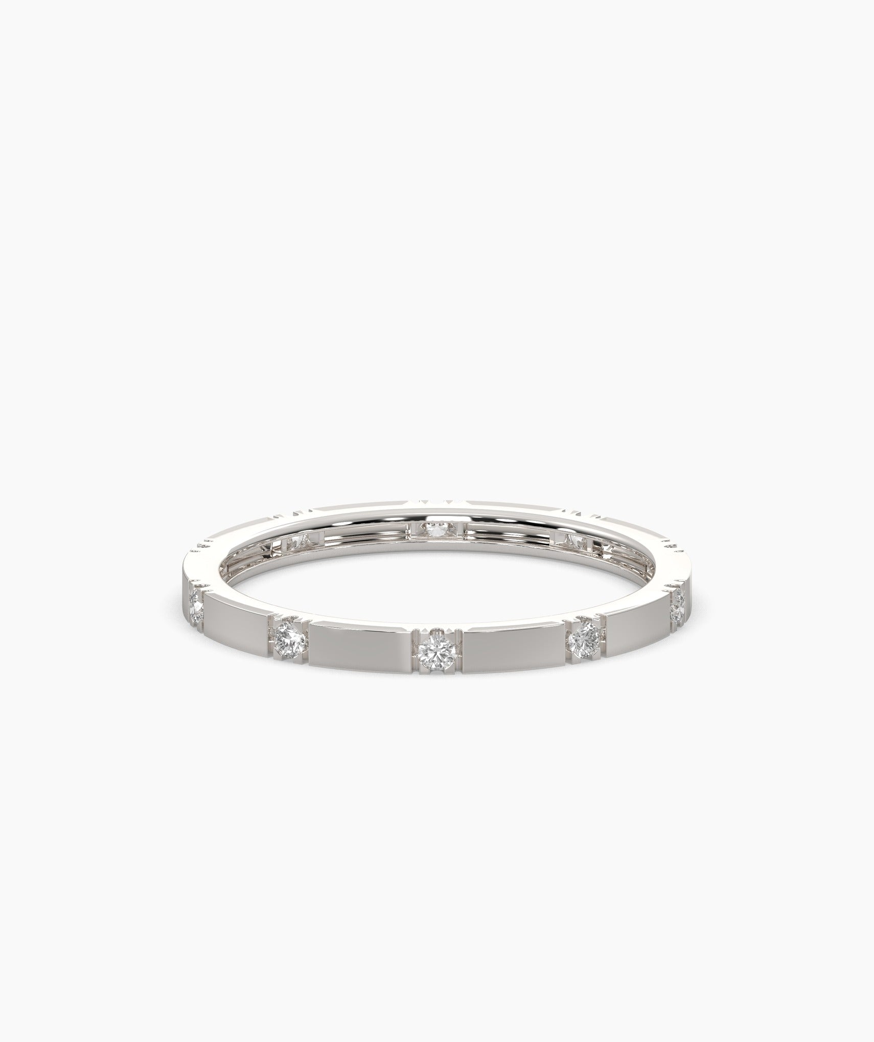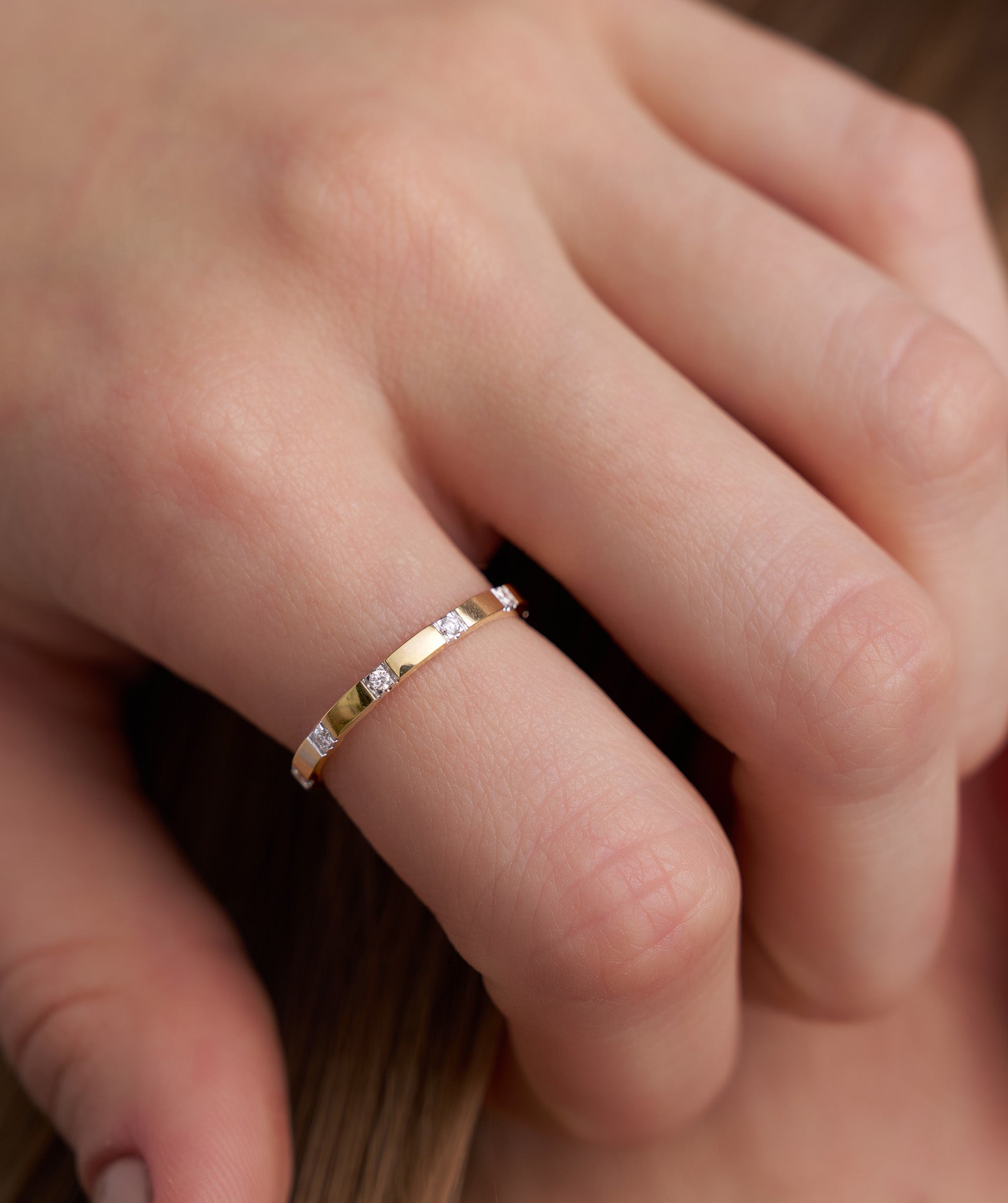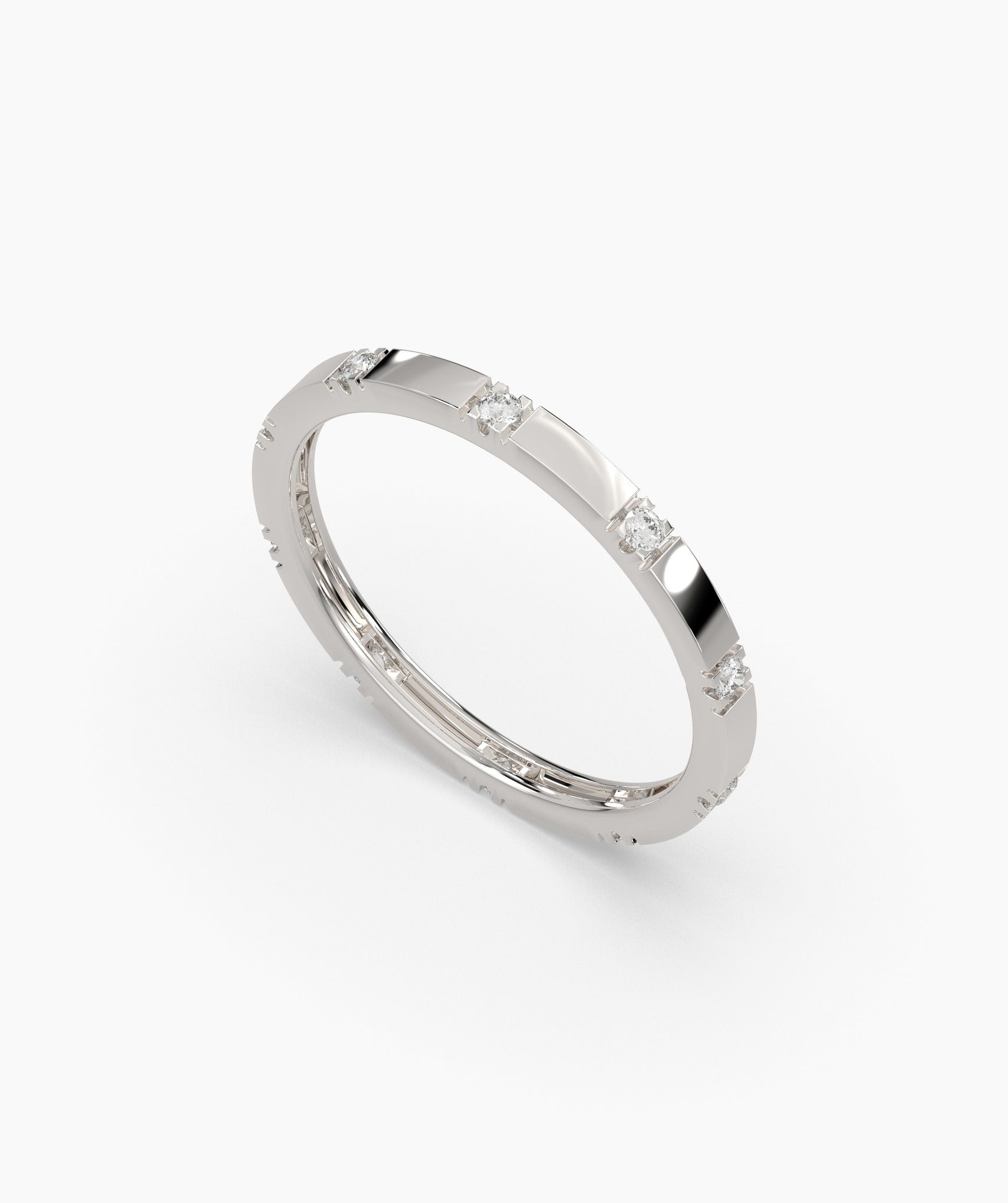 This dainty diamond ring is crafted in 14K gold with evenly spaced diamonds, offering a chic and timeless look. Ideal for daily wear or special occasions.