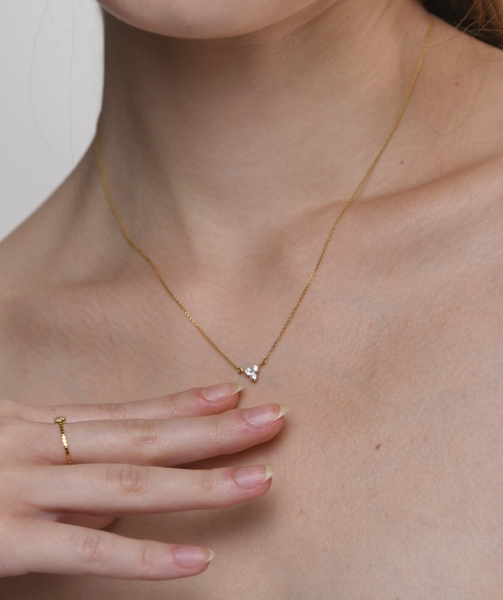 A dainty and modern piece, this triangle-shaped diamond pendant in 14K gold is a timeless addition to any jewelry collection.